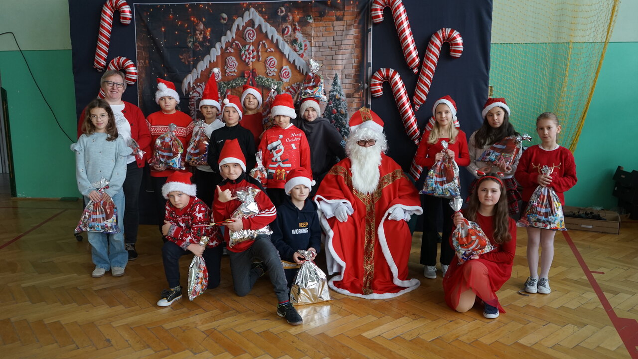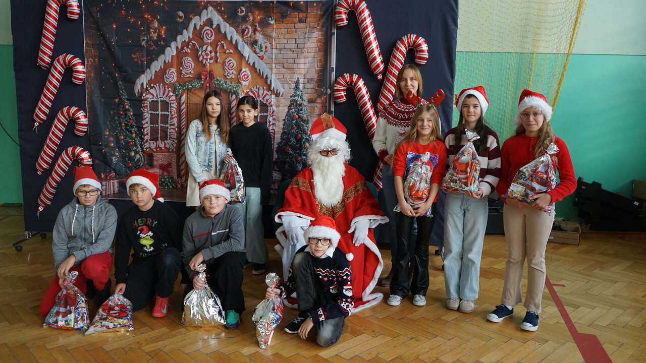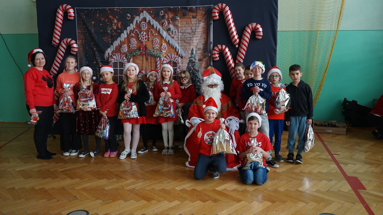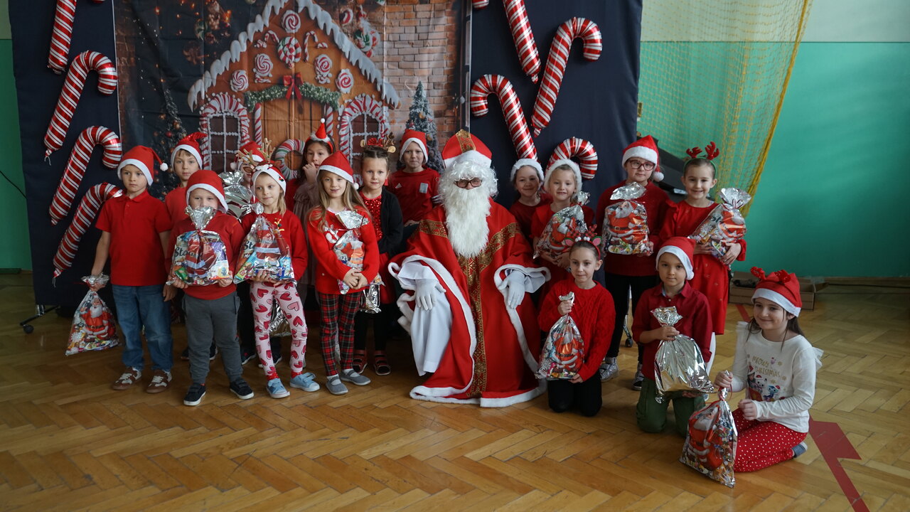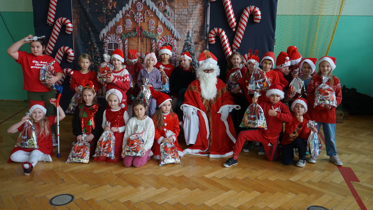 Aktualności 136 7-12-2025 5 grudnia 2025 roku naszą szkołę odwiedził bardzo miły i długo oczekiwany gość. Miał czerwony strój, długą, białą brodę, dźwigał na plecach bardzo ciężki worek a w nim prezenty. To nie mógł być nikt inny tylko MIKOŁAJ. Spotkanie z nim przebiegało w bardzo radosnej i przyjaznej atmosferze. Przedszkolaki przywitały Mikołaja wierszykami i piosenkami. Święty Mikołaj obdarował wszystkie dzieci słodkimi prezentami. Na twarzach dzieci malowała się wielka radość i przejęcie, a także nadzieja na kolejne spotkanie. ŚWIĘTY MIKOŁAJU – bardzo dziękujemy za odwiedziny i do zobaczenia już za rok!!! 0.0 Ostatnia modyfikacja: -/- Powiązane artykuły: Wycieczka uczniów klas 4–8 do Krakowa – 8 grudnia SPOTKANIE Z MIKOŁAJEM !!! Mikołajkowy wyjazd do kina 2024 Sukces uczennicy klasy 2 w Gminnym Konkursie Czytelniczym „Z Bajem w świecie lektur" IV miejsce w Powiecie dla naszych szczypiornistów! Mikołajkowy wyjazd do kina Mikołajki 2023 Wizyta Św. Mikołaja 2022 Mikołajki – skąd się wzięło to święto Mikołajkowy wyjazd do kina 2022 0