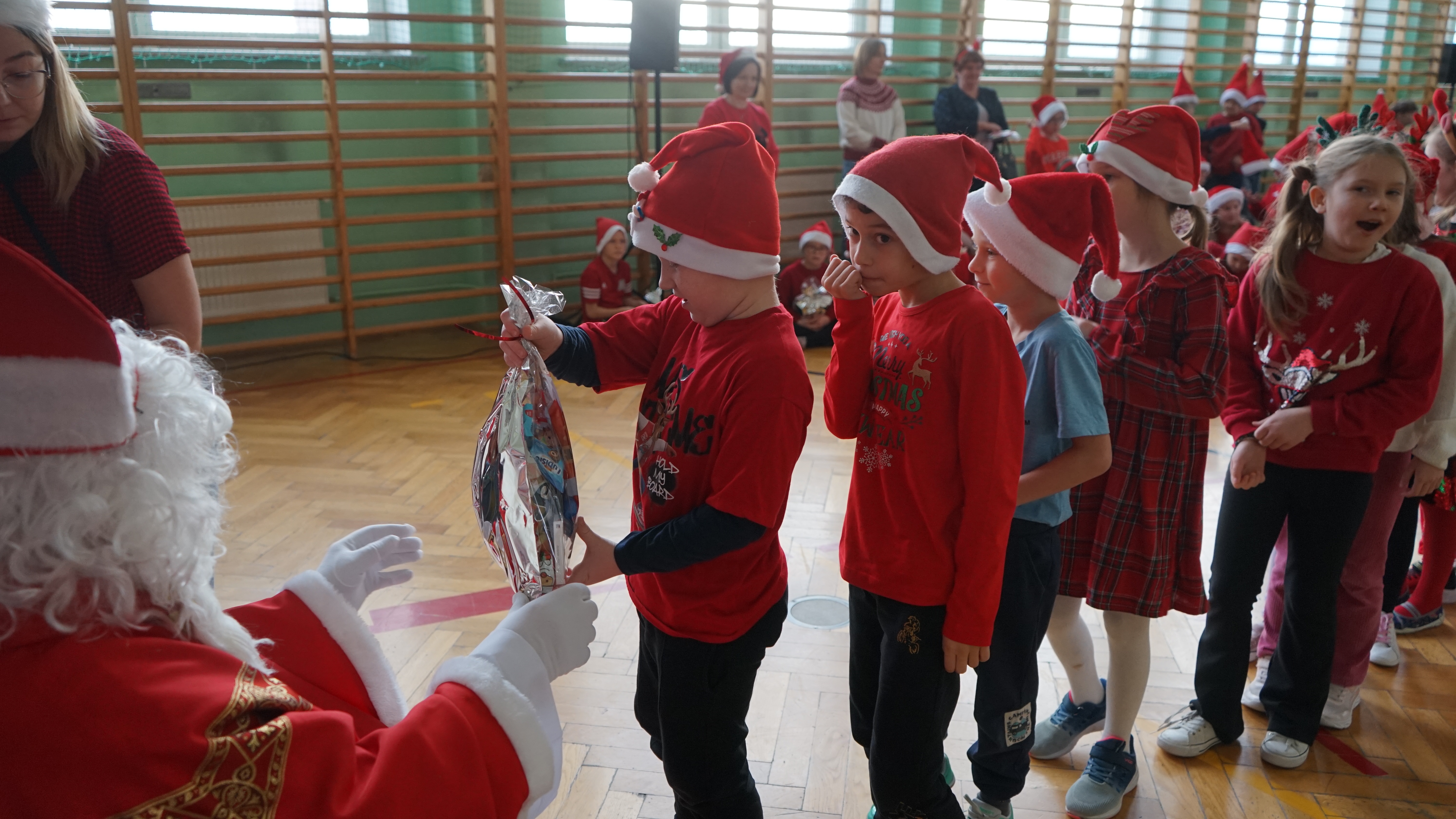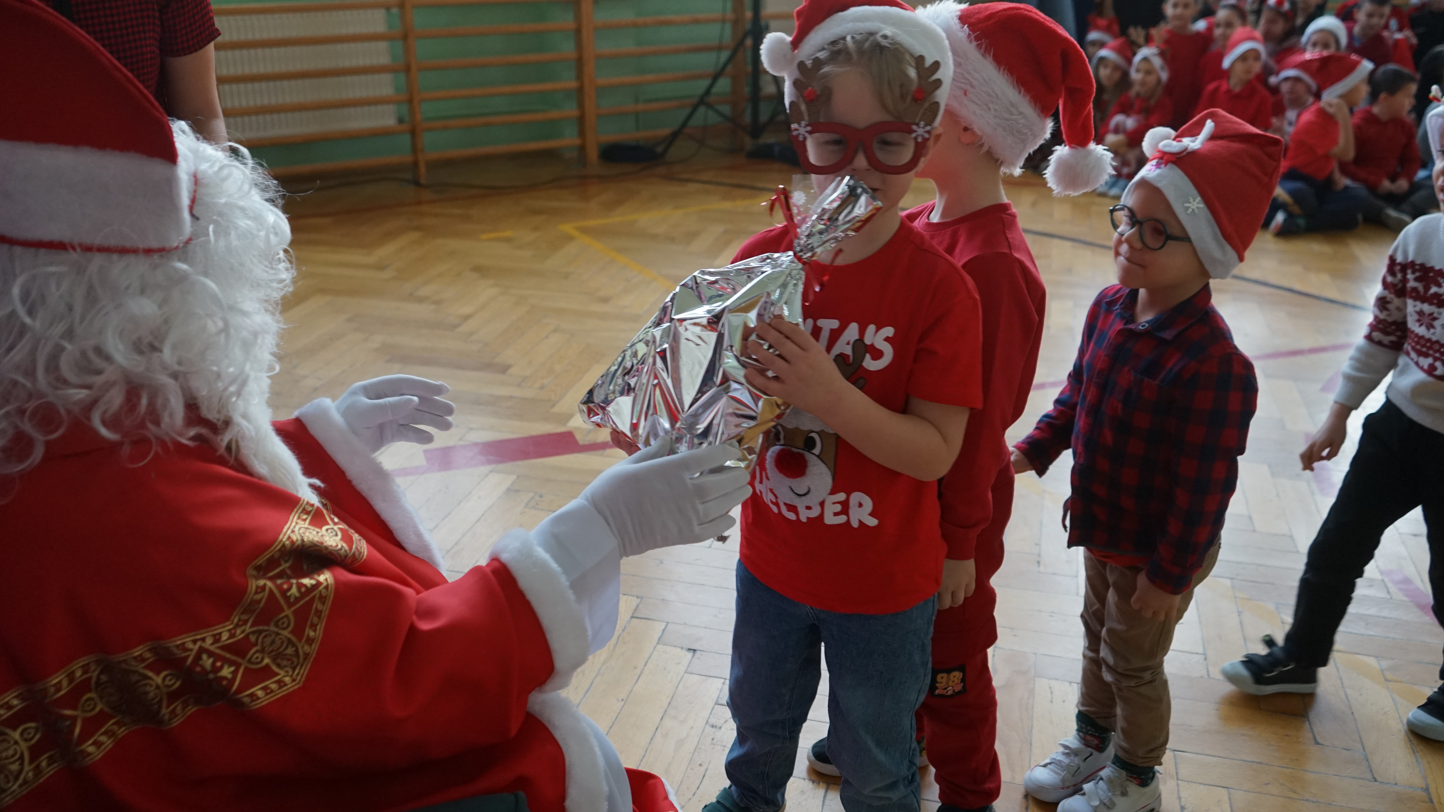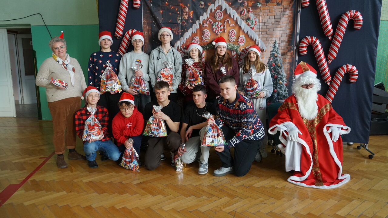 Aktualności 136 7-12-2025 5 grudnia 2025 roku naszą szkołę odwiedził bardzo miły i długo oczekiwany gość. Miał czerwony strój, długą, białą brodę, dźwigał na plecach bardzo ciężki worek a w nim prezenty. To nie mógł być nikt inny tylko MIKOŁAJ. Spotkanie z nim przebiegało w bardzo radosnej i przyjaznej atmosferze. Przedszkolaki przywitały Mikołaja wierszykami i piosenkami. Święty Mikołaj obdarował wszystkie dzieci słodkimi prezentami. Na twarzach dzieci malowała się wielka radość i przejęcie, a także nadzieja na kolejne spotkanie. ŚWIĘTY MIKOŁAJU – bardzo dziękujemy za odwiedziny i do zobaczenia już za rok!!! 0.0 Ostatnia modyfikacja: -/- Powiązane artykuły: Wycieczka uczniów klas 4–8 do Krakowa – 8 grudnia SPOTKANIE Z MIKOŁAJEM !!! Mikołajkowy wyjazd do kina 2024 Sukces uczennicy klasy 2 w Gminnym Konkursie Czytelniczym „Z Bajem w świecie lektur" IV miejsce w Powiecie dla naszych szczypiornistów! Mikołajkowy wyjazd do kina Mikołajki 2023 Wizyta Św. Mikołaja 2022 Mikołajki – skąd się wzięło to święto Mikołajkowy wyjazd do kina 2022 0