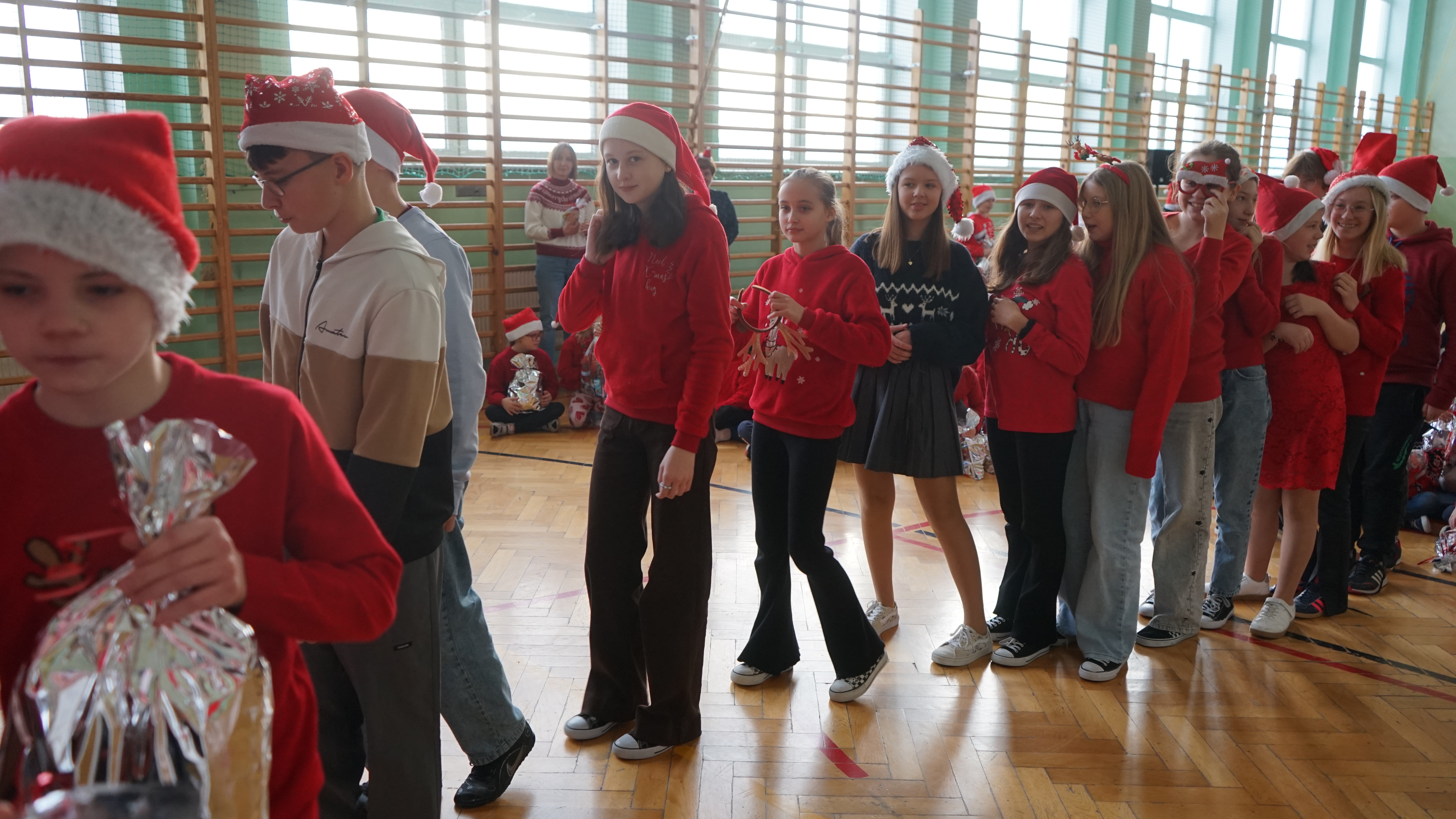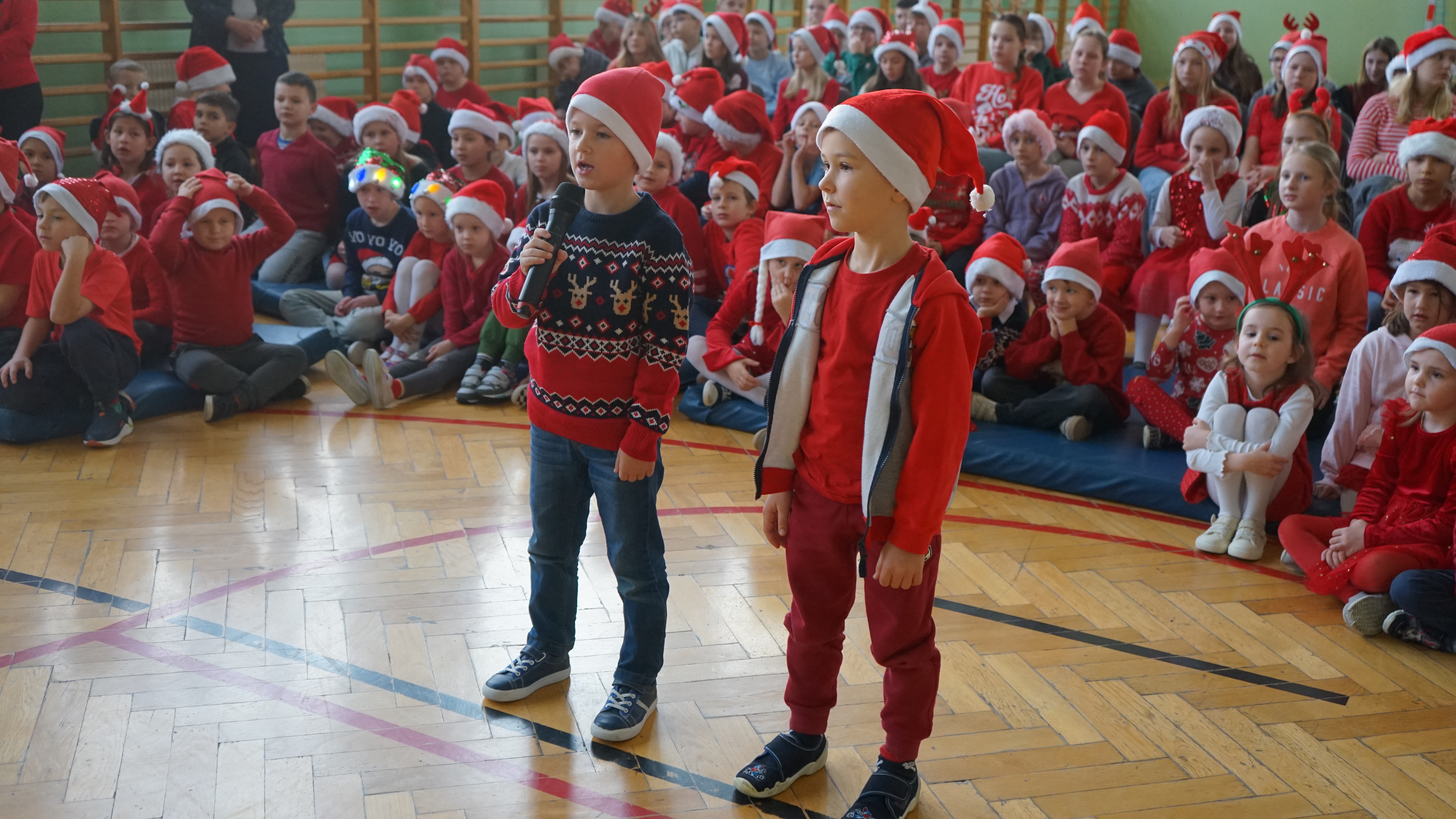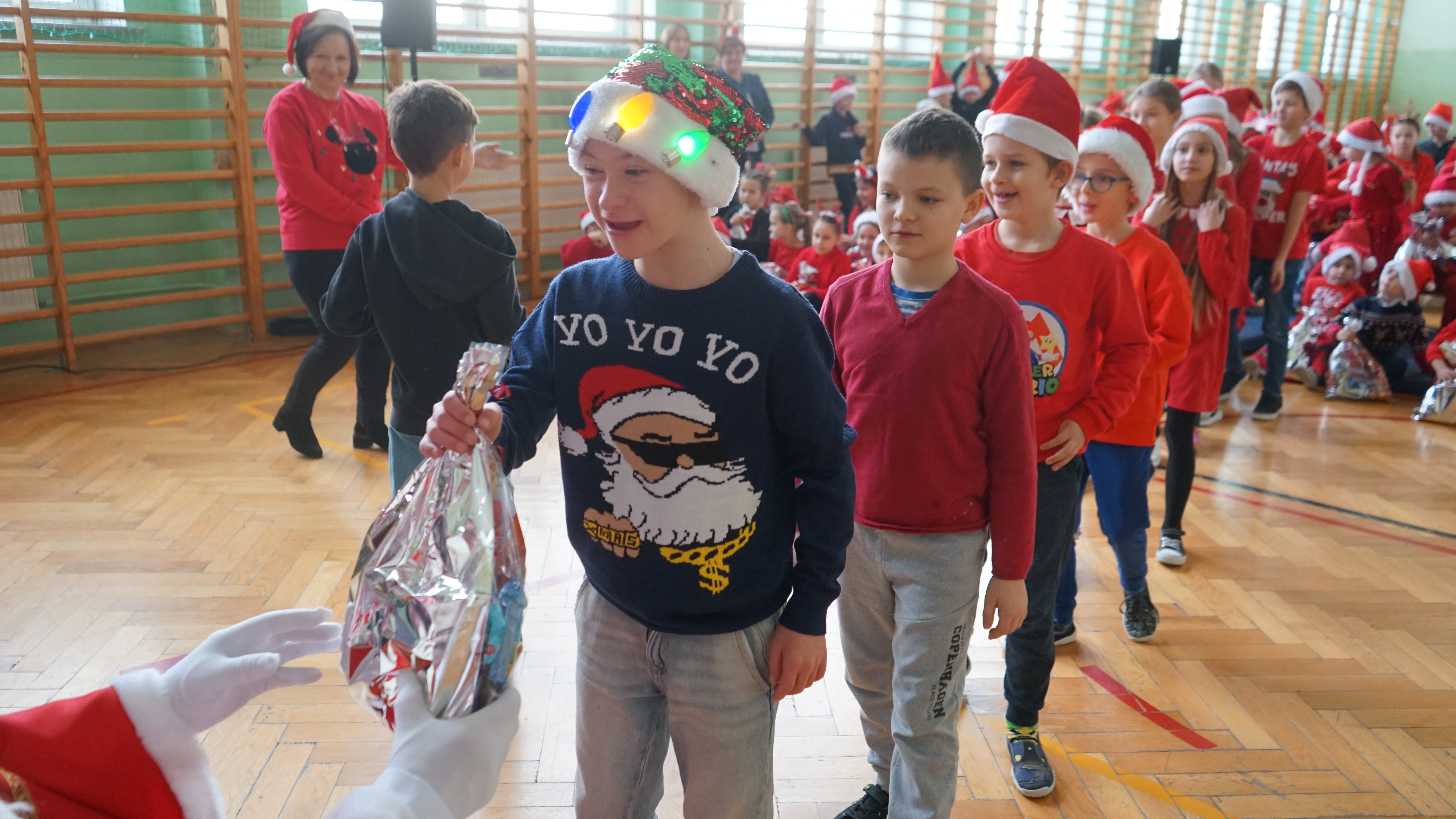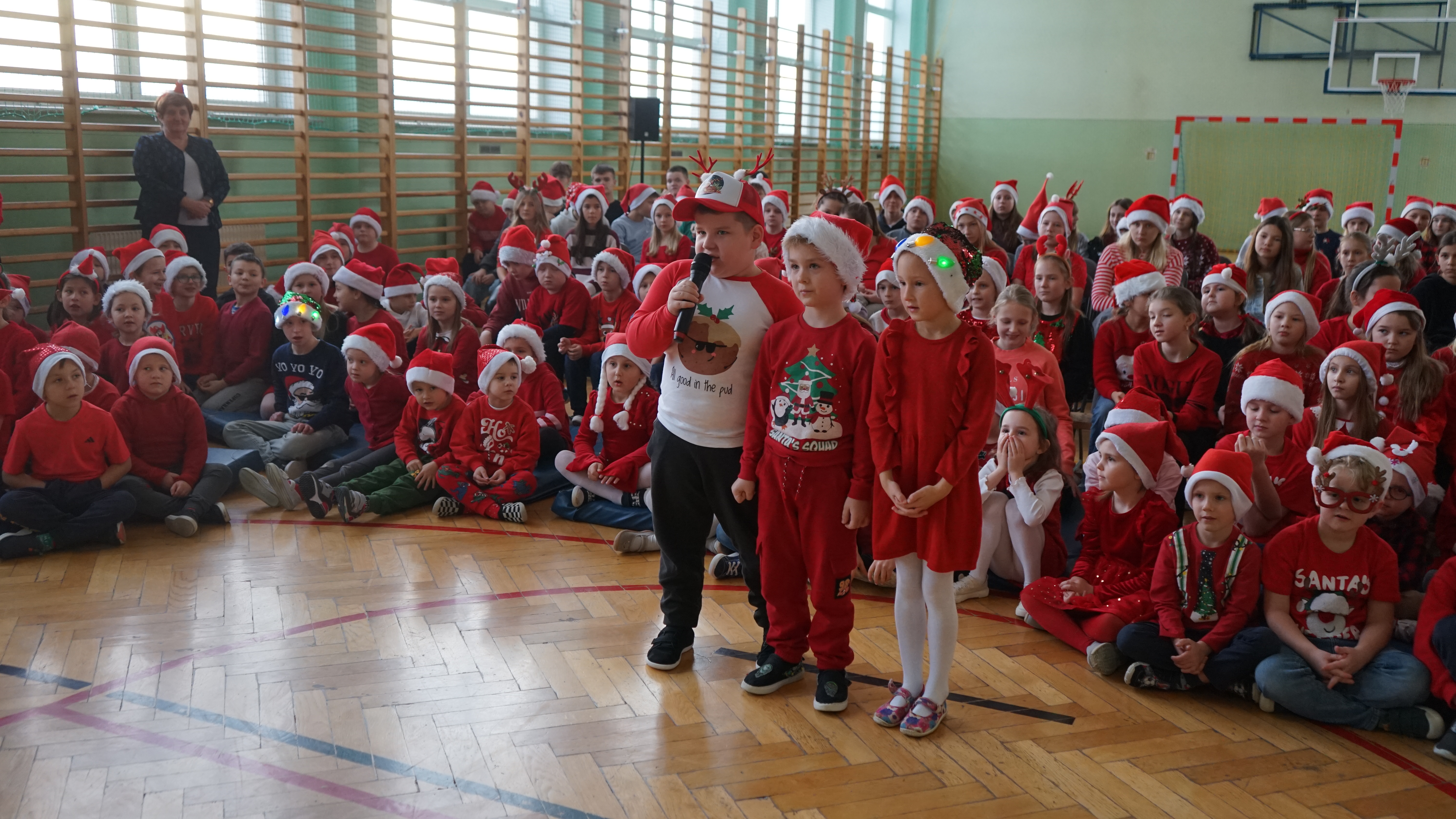 Aktualności 136 7-12-2025 5 grudnia 2025 roku naszą szkołę odwiedził bardzo miły i długo oczekiwany gość. Miał czerwony strój, długą, białą brodę, dźwigał na plecach bardzo ciężki worek a w nim prezenty. To nie mógł być nikt inny tylko MIKOŁAJ. Spotkanie z nim przebiegało w bardzo radosnej i przyjaznej atmosferze. Przedszkolaki przywitały Mikołaja wierszykami i piosenkami. Święty Mikołaj obdarował wszystkie dzieci słodkimi prezentami. Na twarzach dzieci malowała się wielka radość i przejęcie, a także nadzieja na kolejne spotkanie. ŚWIĘTY MIKOŁAJU – bardzo dziękujemy za odwiedziny i do zobaczenia już za rok!!! 0.0 Ostatnia modyfikacja: -/- Powiązane artykuły: Wycieczka uczniów klas 4–8 do Krakowa – 8 grudnia SPOTKANIE Z MIKOŁAJEM !!! Mikołajkowy wyjazd do kina 2024 Sukces uczennicy klasy 2 w Gminnym Konkursie Czytelniczym „Z Bajem w świecie lektur" IV miejsce w Powiecie dla naszych szczypiornistów! Mikołajkowy wyjazd do kina Mikołajki 2023 Wizyta Św. Mikołaja 2022 Mikołajki – skąd się wzięło to święto Mikołajkowy wyjazd do kina 2022 0