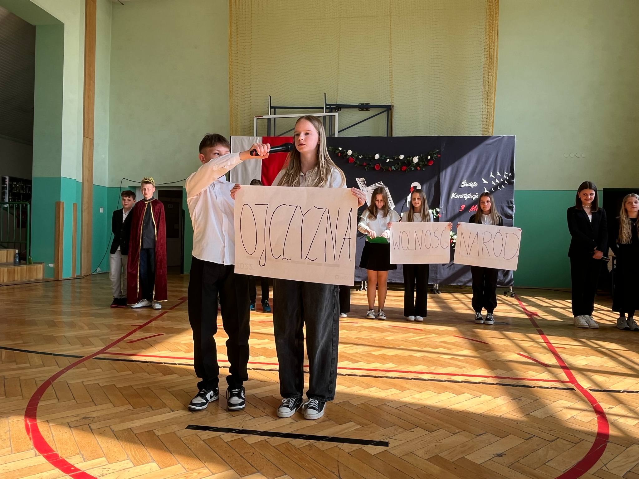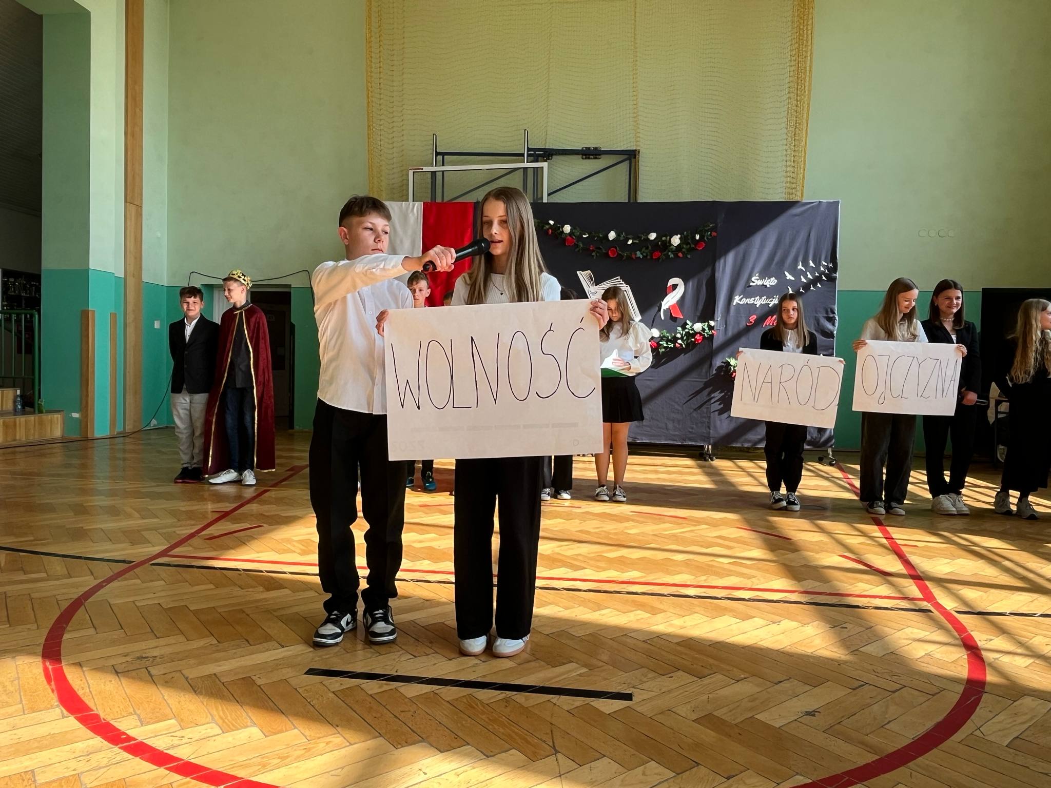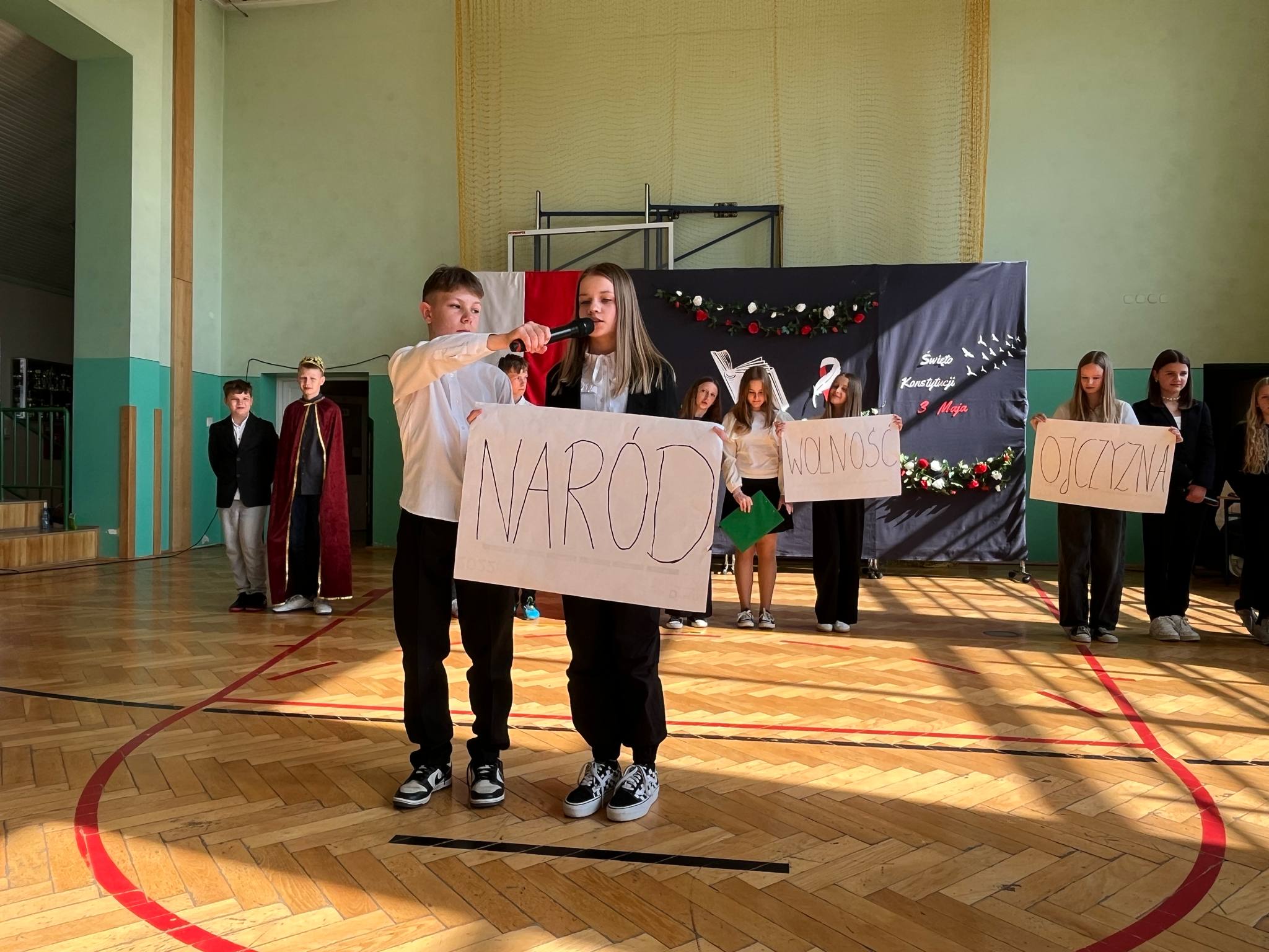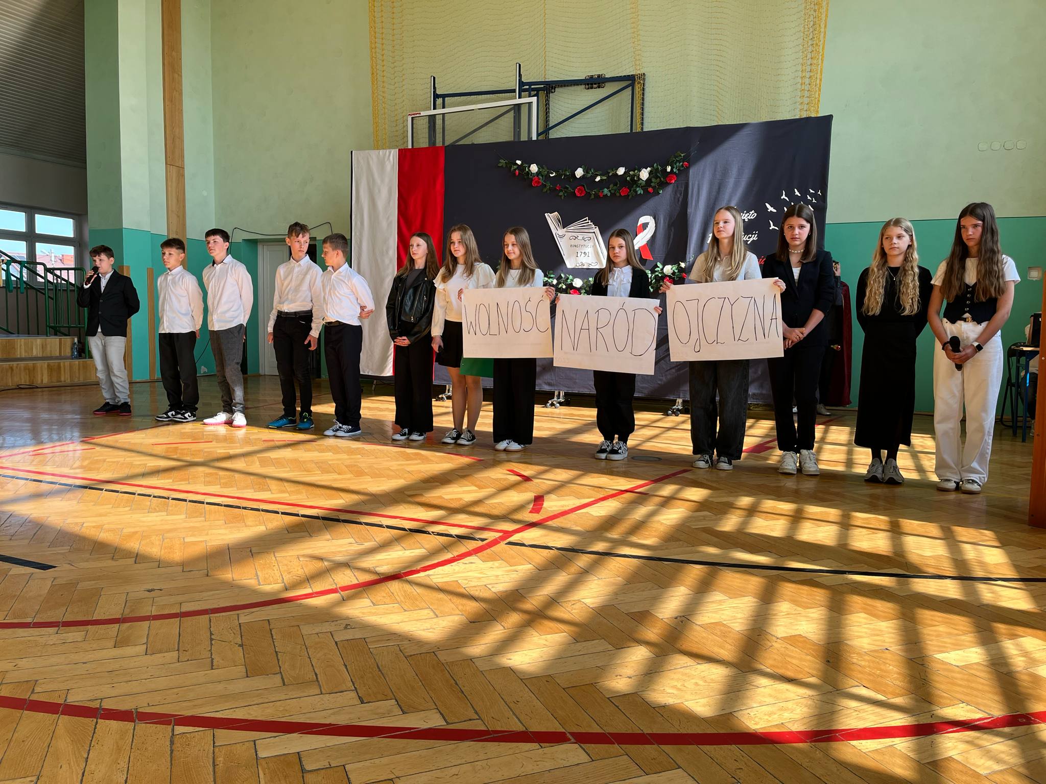 Aktualności 244 30-04-2025 Dnia 30 kwietnia 2025 roku w naszej szkole odbyła się uroczysta akademia z okazji obchodów 234. rocznicy uchwalenia Konstytucji 3 Maja. Uroczystość rozpoczęła się odśpiewaniem hymnu narodowego na sali gimnastycznej, która została pięknie udekorowana symbolami narodowymi oraz motywami historycznymi nawiązującymi do tego ważnego wydarzenia. Uczniowie klasy VI odtworzyli atmosferę tamtych wydarzeń prezentując krótki spektakl teatralny, ukazujący momenty poprzedzające uchwalenie Konstytucji, w tym dyskusje polityczne i patriotyczne postawy polskich działaczy. Występy teatralne, recytatorskie i muzyczne uczniów wzbudziły aplauz publiczności i stworzyły podniosły nastrój. Na zakończenie akademii dyrektor szkoły podziękowała wszystkim zaangażowanym w przygotowanie uroczystości oraz przypomniała, jak ważne jest pielęgnowanie pamięci o wydarzeniach historycznych, które kształtują naszą narodową tożsamość. 0.0 Ostatnia modyfikacja: roda 30 kwietnia 2025 20:02 Powiązane artykuły: 80 rocznica bitwy pod Monte Cassino - Święto Patrona Szkoły ŚWIĘTO NARODOWE TRZECIEGO MAJA 2023 VIII BIEG KONSTYTUCJI 3 MAJA ORAZ VIII MARSZ KOSTYTUCJI 3 MAJA 104 rocznica Odzyskania Niepodległości przez Polskę Święto uchwalenia Konstytucji 3 Maja - 2021 Biblioteka PSP w Leszczynie - 3 MAJA Biblioteka PSP w Leszczynie - 2 Maja Biblioteka PSP w Leszczynie - 1 MAJA Otwarcie Gminnego Klubu Malucha "Maja" 101 rocznica ODZYSKANIA NIEPODLEGŁOŚCI PRZEZ POLSKĘ 0