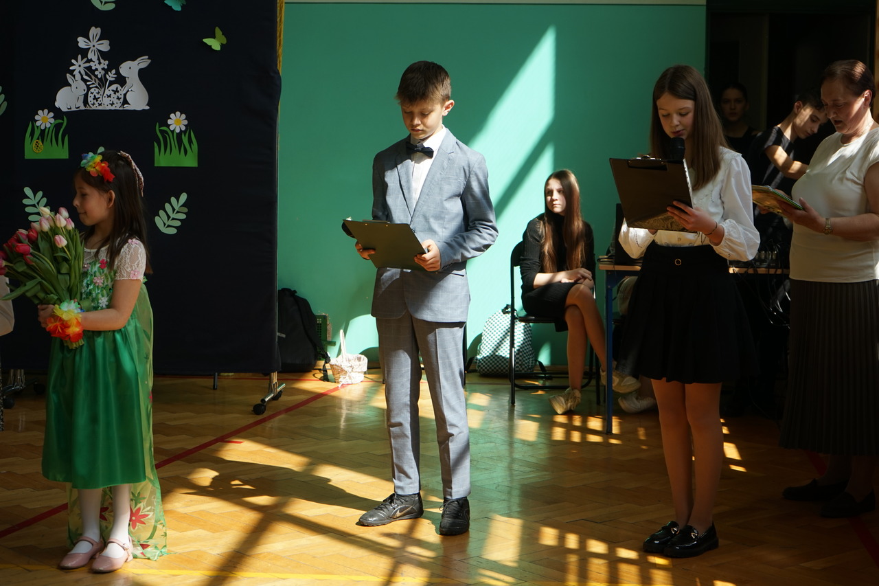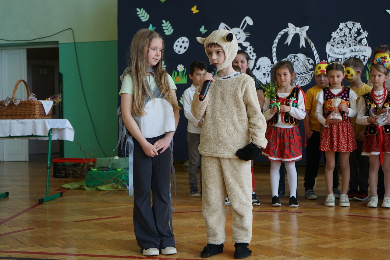 Aktualności 334 16-04-2025 W ostatnim dniu nauki przed przerwą świąteczną tj. 16 kwietnia 2025 roku odbył się w naszej szkole apel z okazji Świąt Wielkanocnych. W montażu słowno – muzycznym klasa 1 pod opieką p. Wiesławy Opyd przypomniała wszystkim zgromadzonym najważniejsze tradycje i zwyczaje związane z Wielkanocą. Malwina z klasy VIII pięknie zaśpiewała utwór Hallelujah Leonarda Cohena. Całość poprowadzili uczniowie klasy V: Antonina Dutka oraz Franciszek Chojecki. Na koniec p. dyrektor Anna Dziedzic złożyła życzenia dla całej społeczności szkolnej. To właśnie Zmartwychwstanie Jezusa jest fundamentem i sensem naszej wiary, które daje nadzieję na lepsze jutro. W ten sposób rozpoczęliśmy radosne świętowanie. 0.0 Ostatnia modyfikacja: -/- Powiązane artykuły: Apel Wielkanocny 2026 Udział w ogólnopolskiej akcji BohaterON - 2025/2026 Olimpiada Mitologiczna 2025 Wyniki konkursu Alfik Matematyczny 2025 Boże Narodzenie 2025 - życzenia Akcja charytatywna „Paczuszka dla Maluszka" 2025 Jasełka i Wigilia - 2025 „Mała książka – wielki człowiek" - 2025 Spotkanie z podróżnikiem - Indie 2025 Paczuszka dla Maluszka - 2025 0
