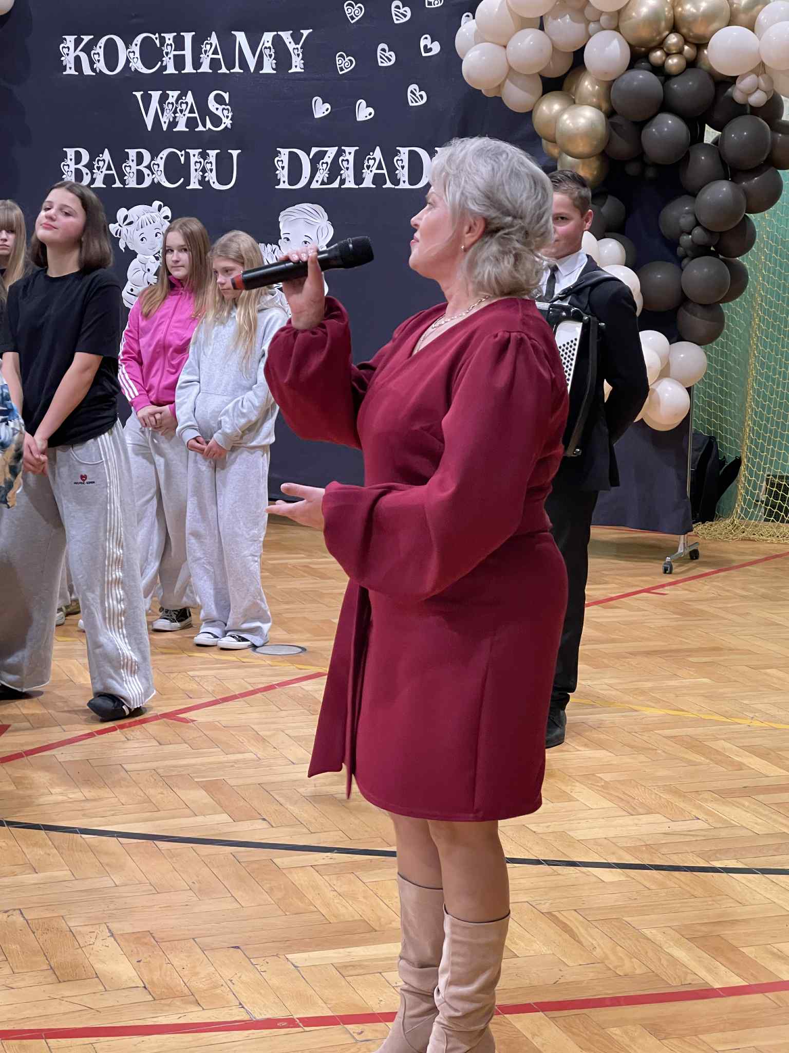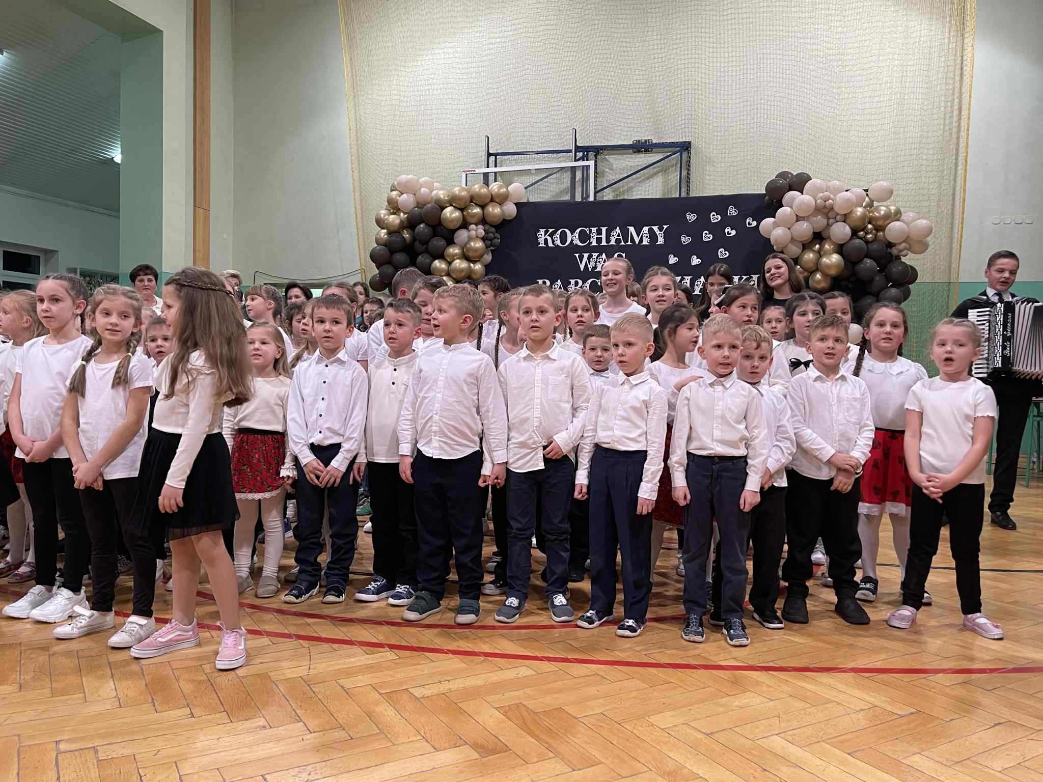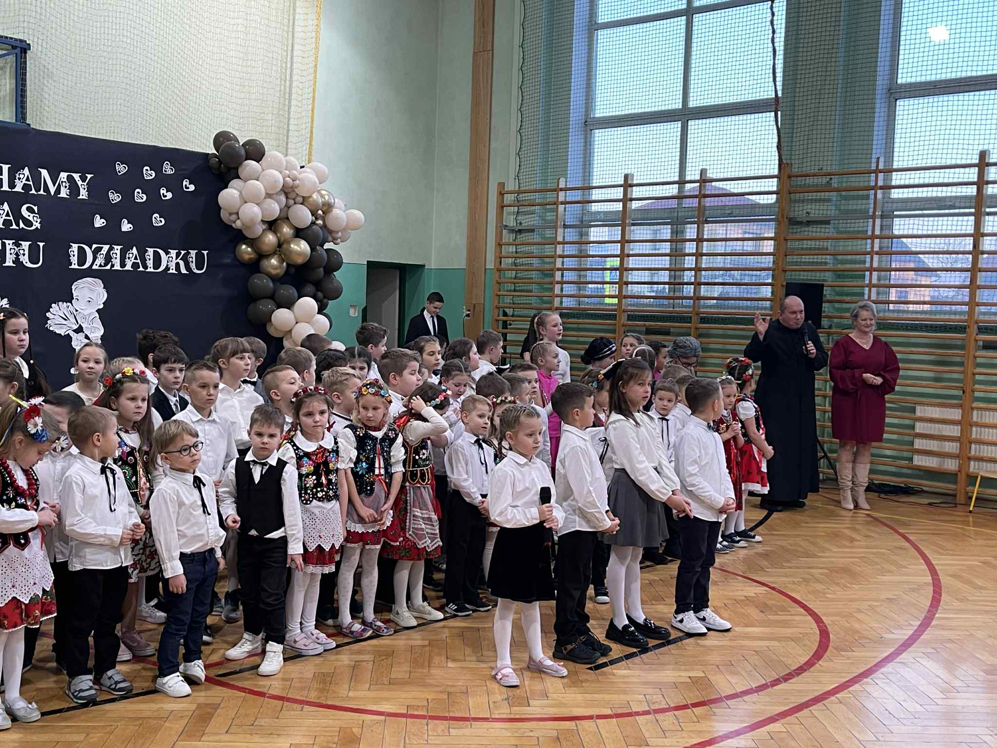 Aktualności 195 20-01-2026 W dniu 20.01.2026r. w naszej szkole odbyła się uroczystość z okazji Dnia Babci i Dziadka, na którą licznie przybyli zaproszeni goście, wypełniając salę radosną i serdeczną atmosferą. To wyjątkowe spotkanie było okazją do wyrażenia wdzięczności, miłości i szacunku dla naszych kochanych Seniorów. Uroczystość rozpoczęła się serdecznym powitaniem gości przez Panią Dyrektor Annę Dziedzic, która podkreśliła ogromną rolę Babć i Dziadków w życiu dzieci oraz złożyła im najcieplejsze życzenia zdrowia, radości i uśmiechu na co dzień. Następnie odbyło się przedstawienie artystyczne przygotowane przez uczniów. Występy rozpoczęły przedszkolaki, które z wielkim zaangażowaniem zaprezentowały wesołe wierszyki, piosenki oraz układy taneczne. Starsze dzieci i uczniowie kontynuowali część artystyczną, recytując wzruszające i radosne wiersze, śpiewając piosenki, prezentując scenki kabaretowe oraz tańce, które spotkały się z ogromnym entuzjazmem publiczności. Występy wywołały wiele uśmiechów, wzruszeń oraz gromkie brawa. Dzieci z dumą prezentowały swoje umiejętności, a Babcie i Dziadkowie nie kryli radości i wzruszenia. Na zakończenie uroczystości wszyscy odśpiewali 100 lat, do którego na akordeonie akompaniował Jakub Pławecki i dzieci złożyły swoim Babciom i Dziadkom serdeczne życzenia zdrowia, szczęścia, długich lat życia oraz podziękowały za miłość, troskę i cierpliwość. Następnie wręczyły własnoręcznie wykonane prezenty, które były piękną pamiątką tego wyjątkowego dnia. Obchody tego dnia były nie tylko szansą na artystyczne występy dzieci, ale przede wszystkim na budowanie więzi między pokoleniami i tworzenie wspólnych, cennych wspomnień. Nie zabrakło również słodkiego poczęstunku dla zgromadzonych gości, przygotowanego przez Radę Rodziców. Uroczystość przebiegła w ciepłej, rodzinnej atmosferze i na długo pozostanie w pamięci zarówno dzieci, jak i zaproszonych gości. 0.0 Ostatnia modyfikacja: wtorek 20 stycznia 2026 20:11 Powiązane artykuły: Strażacka wiedza w praktyce – etap powiatowy OTWP 2026 Gminny Turniej Piłki Ręcznej chłopców klas 4-6 "Igrzyska Dzieci" 2026 Gminny Konkurs Ortograficzny 2026 Wielkanoc 2026 - życzenia Konkurs Recytatorski 2026 Apel Wielkanocny 2026 OGÓLNOPOLSKI STRAŻACKI KONKURS PLASTYCZNY 2026 Dzień Świętego Patryka - świętujemy po irlandzku Igrzyska Młodzieży Gminny Turniej Piłki Ręcznej Chłopców 2026 I Dzień Wiosny 2026 0