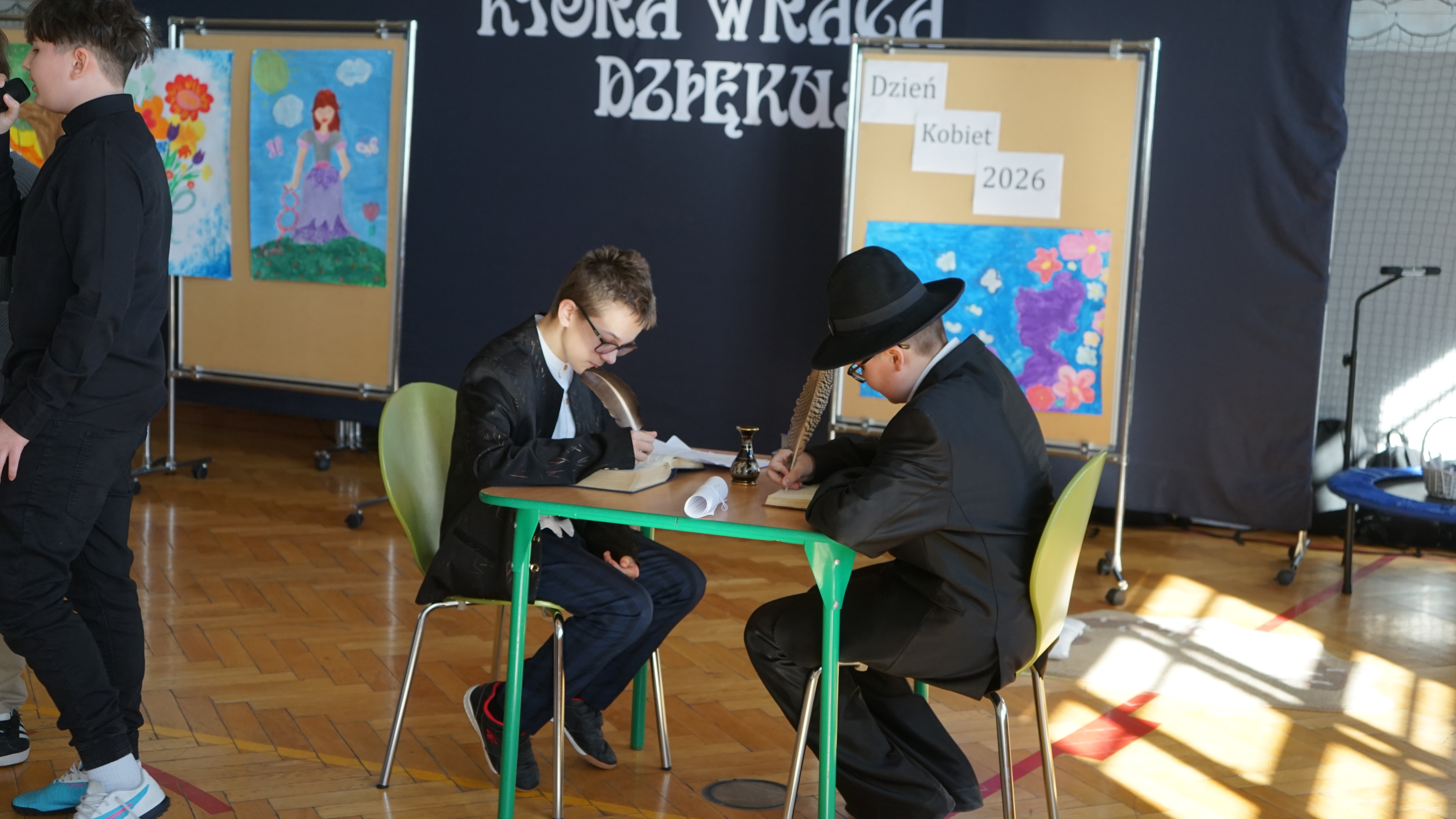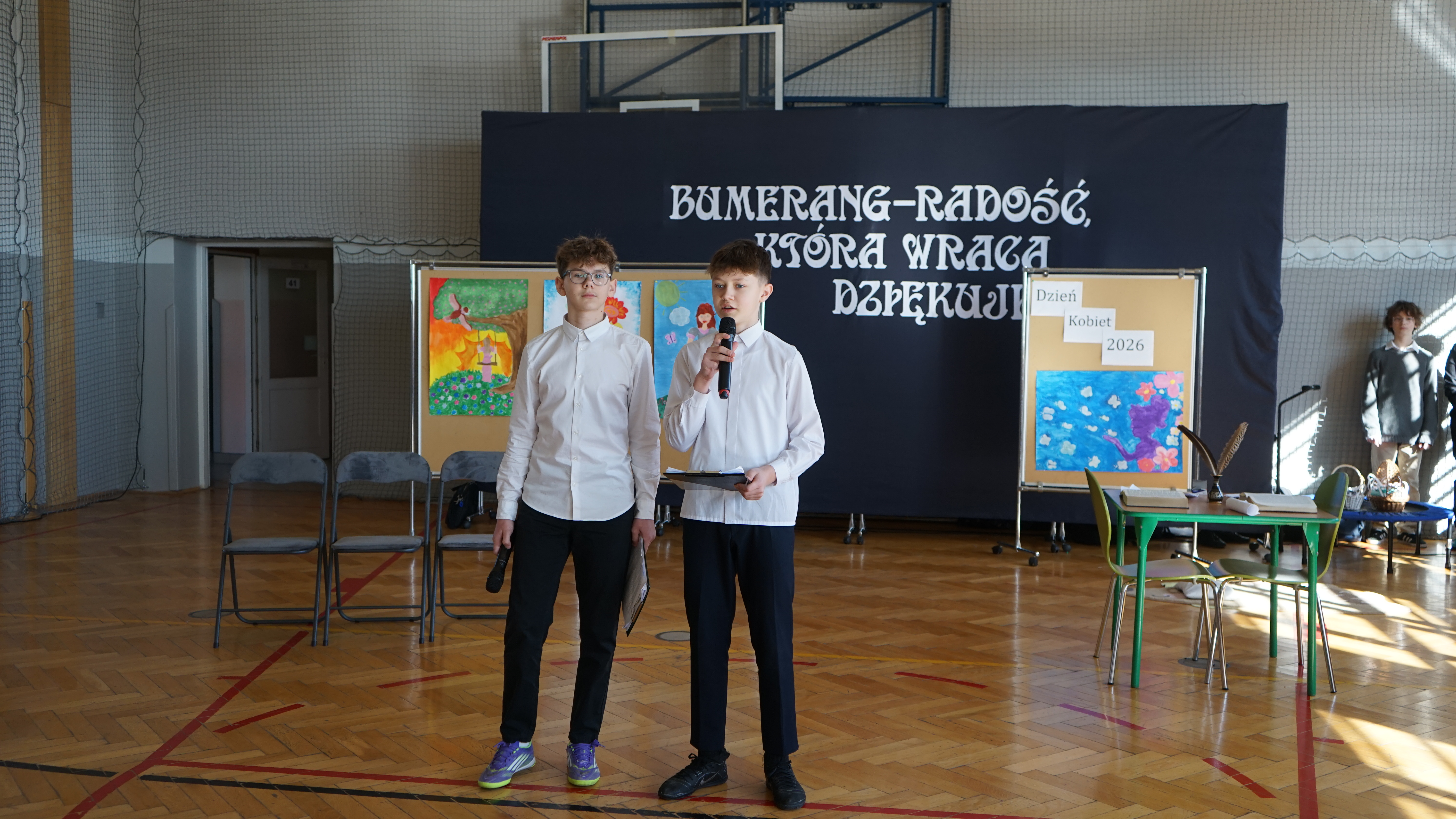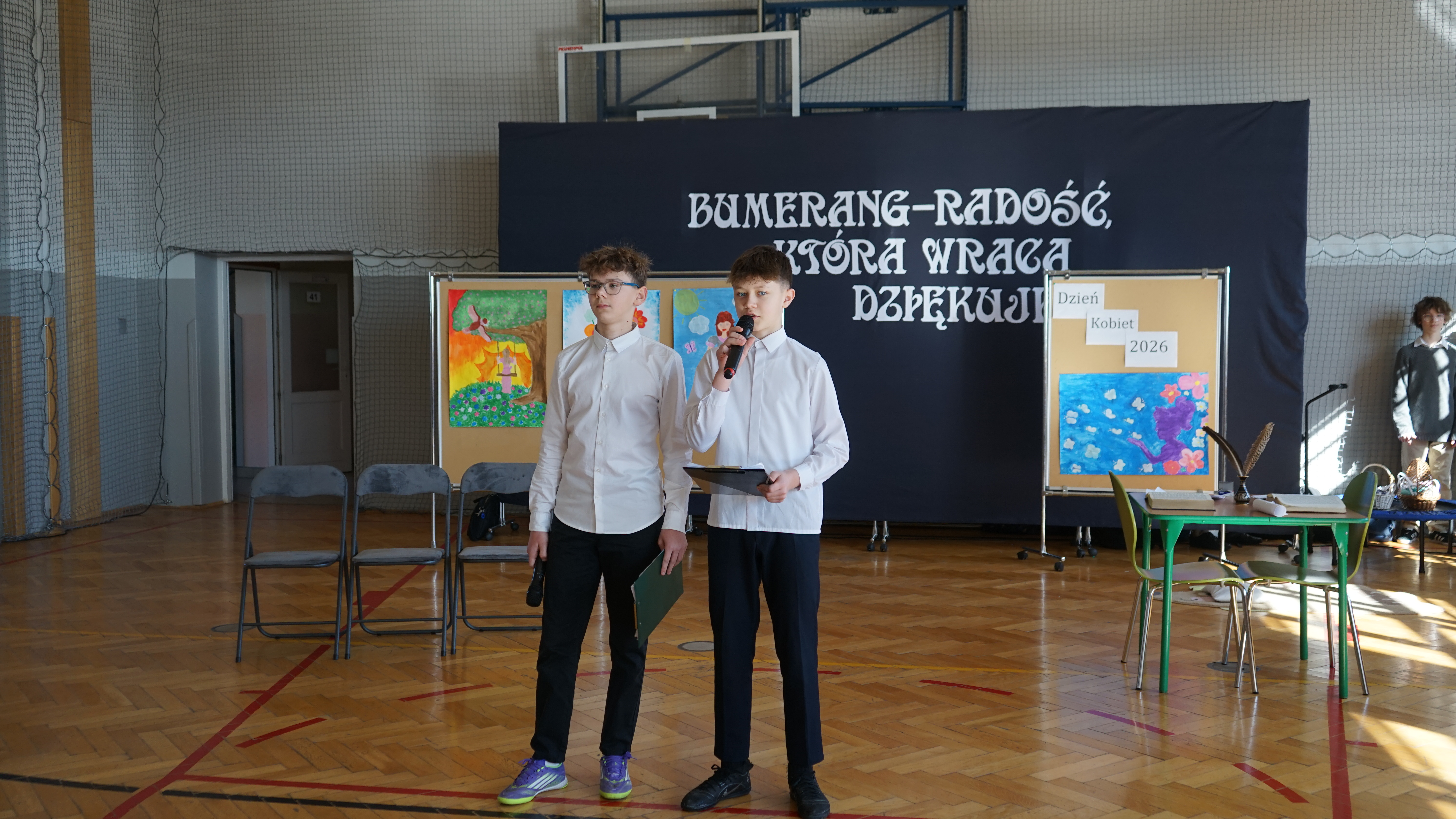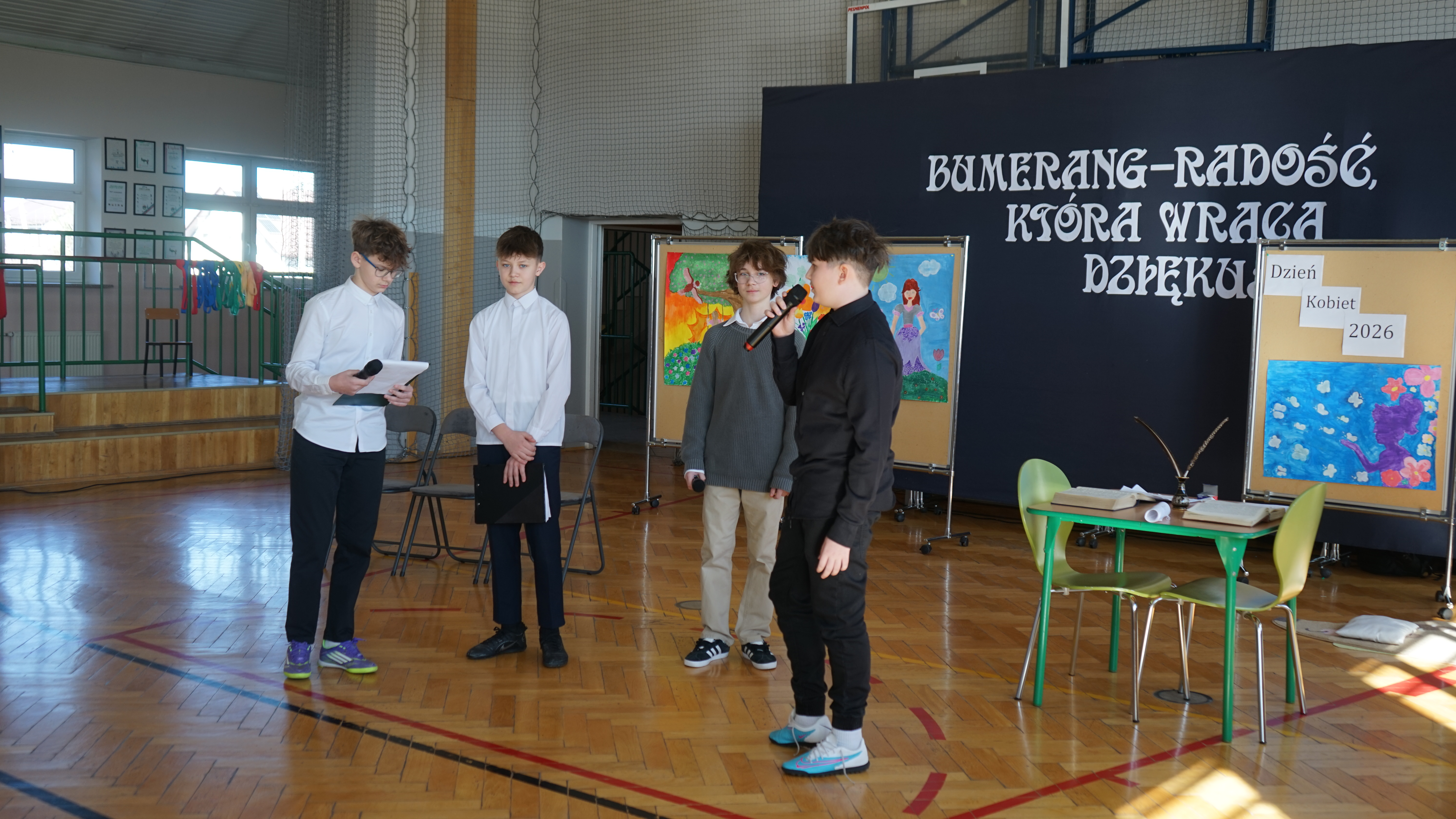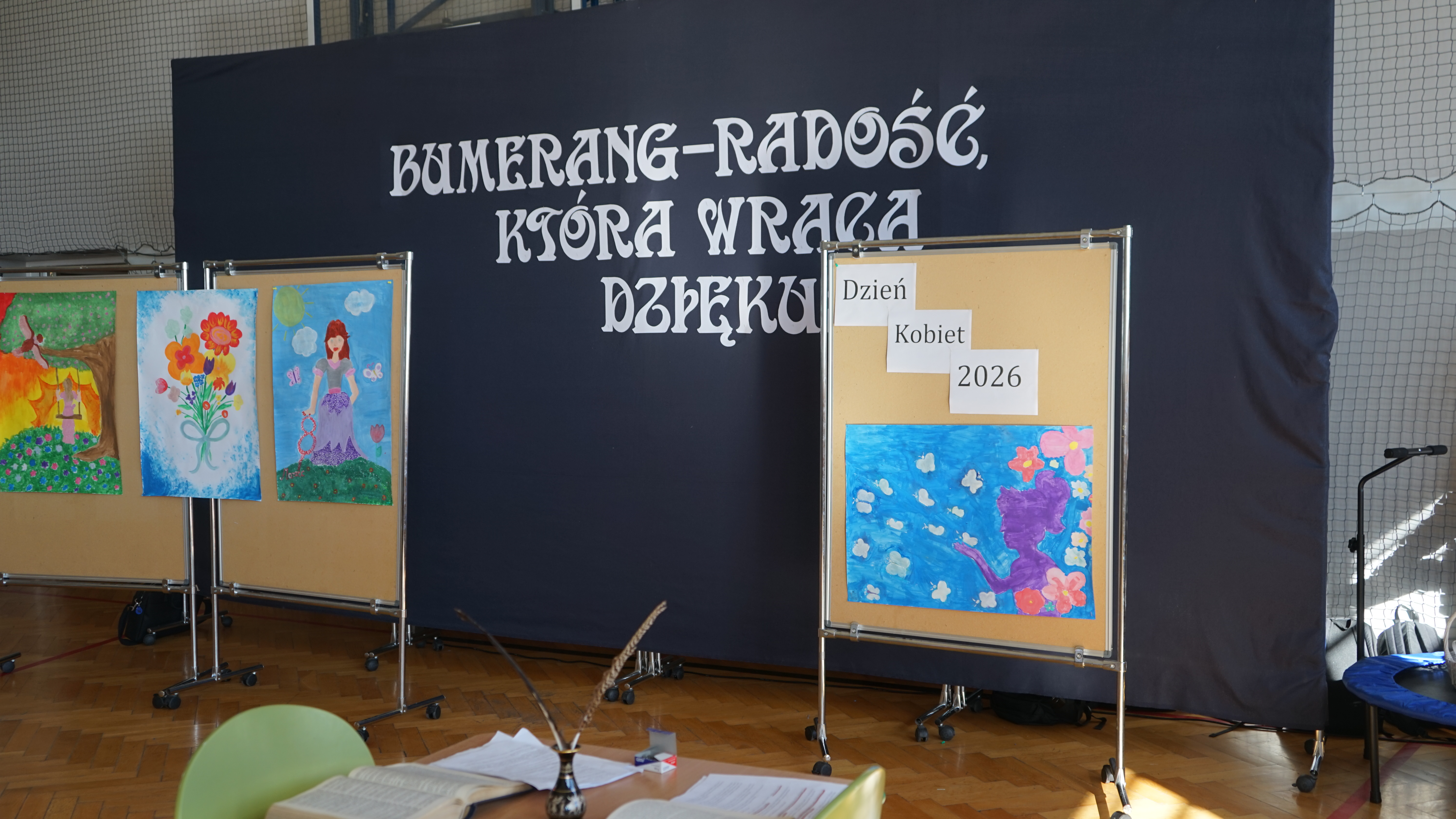 Aktualności 126 7-03-2026 Z okazji Dnia Kobiet w piątek w naszej szkole odbył się apel przygotowany przez uczniów klasy 6, pod opieką pana Grzegorza Mecha. Program artystyczny nawiązywał do znanych bajek, w których występują księżniczki. Uczniowie przypomnieli, że bohaterki bajek są odważne, dobre i pomagają innym, a przesłaniem występu było to, że każda kobieta jest wyjątkowa i można ją nazwać prawdziwą księżniczką. Występy były bardzo ciekawe i zostały nagrodzone gromkimi brawami przez publiczność. Tego dnia nie zabrakło również miłych gestów – dziewczęta i panie otrzymały słodkie upominki, które wywołały wiele uśmiechów. W całej szkole panowała serdeczna i radosna atmosfera pełna życzliwości. Obchody Dnia Kobiet były doskonałą okazją do okazania szacunku i wdzięczności wszystkim kobietom oraz do wspólnego świętowania w miłej atmosferze. 0.0 Ostatnia modyfikacja: sobota 07 marca 2026 18:40 Powiązane artykuły: Strażacka wiedza w praktyce – etap powiatowy OTWP 2026 Gminny Turniej Piłki Ręcznej chłopców klas 4-6 "Igrzyska Dzieci" 2026 Gminny Konkurs Ortograficzny 2026 Wielkanoc 2026 - życzenia Konkurs Recytatorski 2026 Apel Wielkanocny 2026 OGÓLNOPOLSKI STRAŻACKI KONKURS PLASTYCZNY 2026 Dzień Świętego Patryka - świętujemy po irlandzku Igrzyska Młodzieży Gminny Turniej Piłki Ręcznej Chłopców 2026 I Dzień Wiosny 2026 0