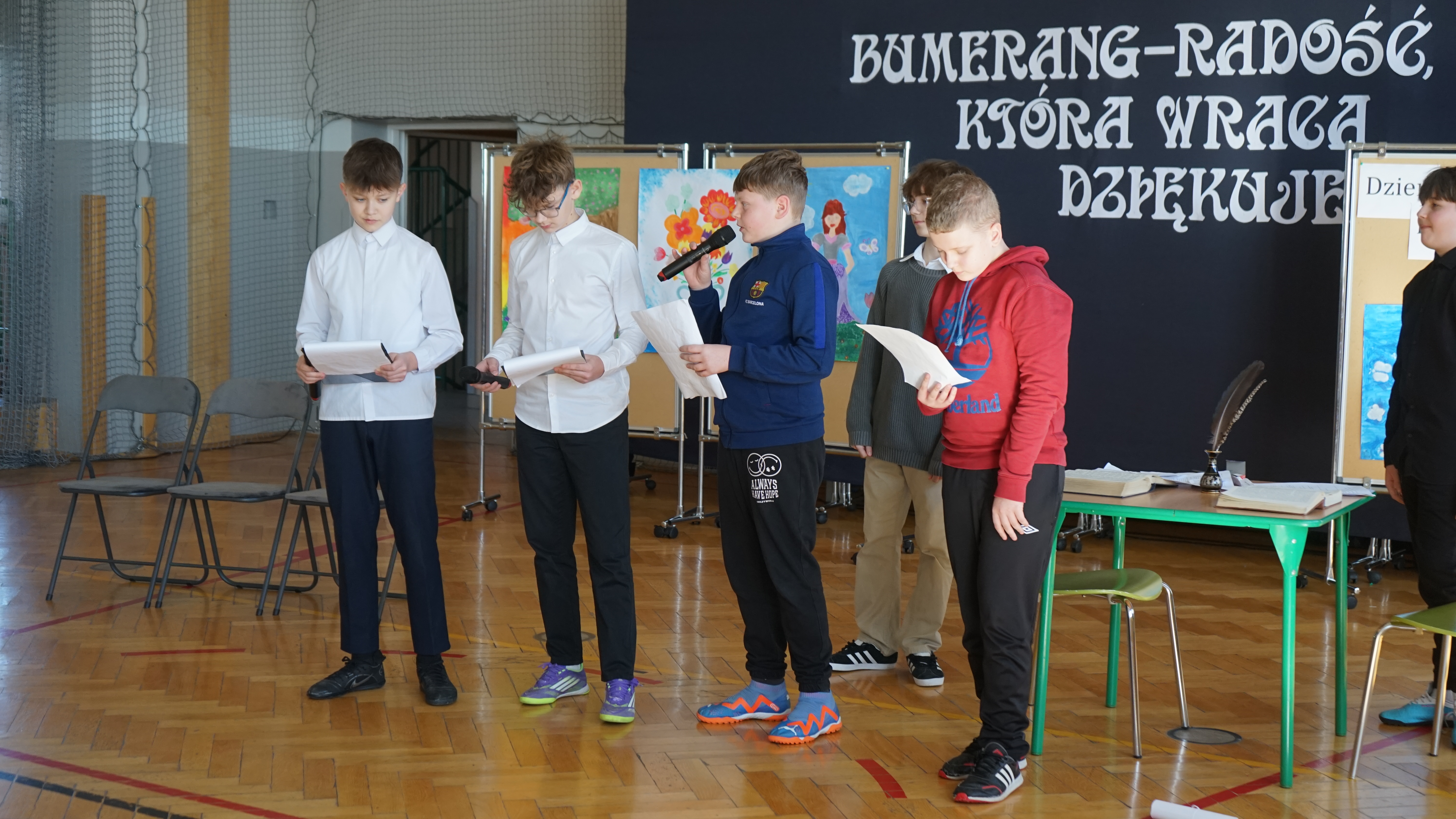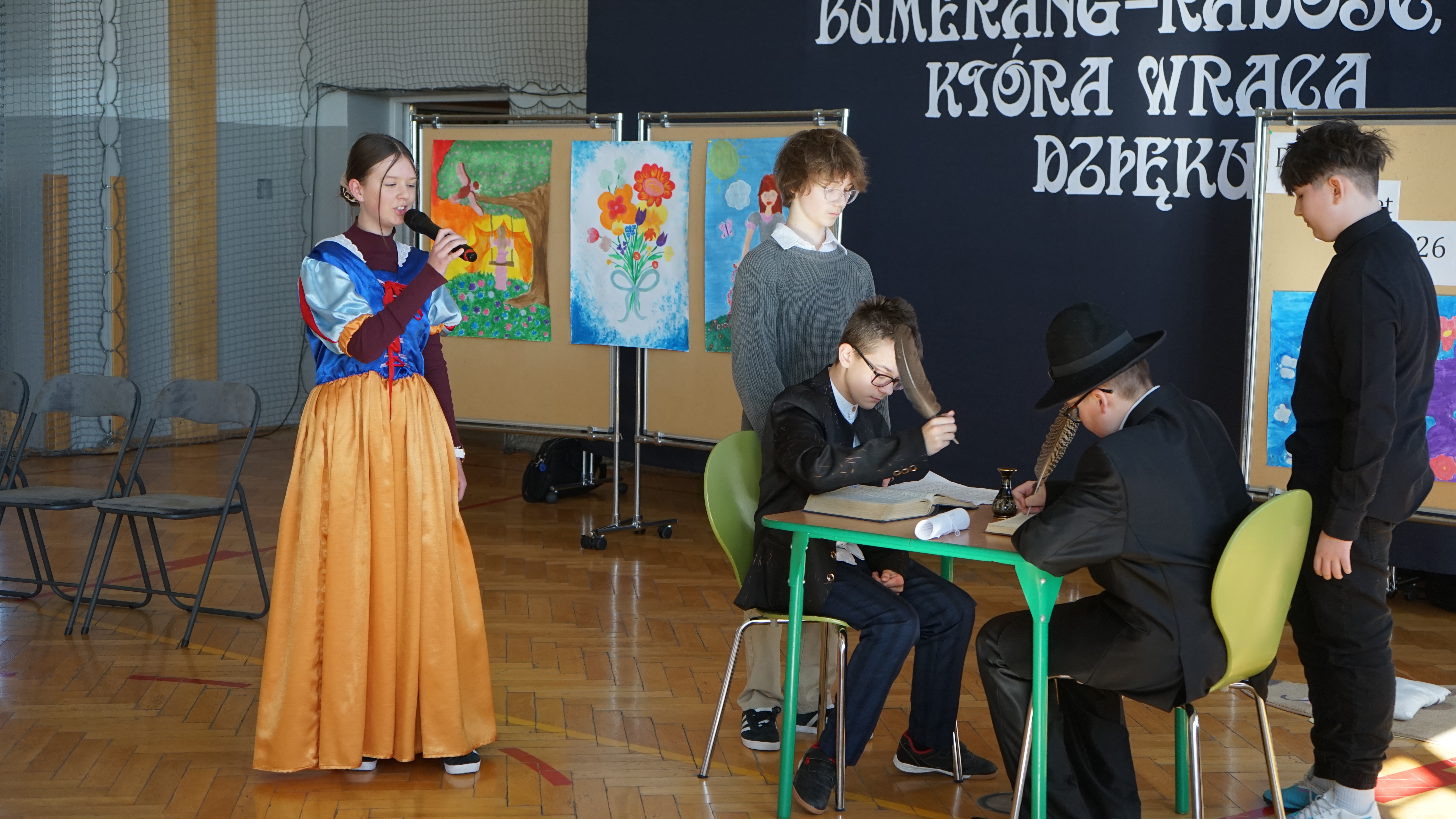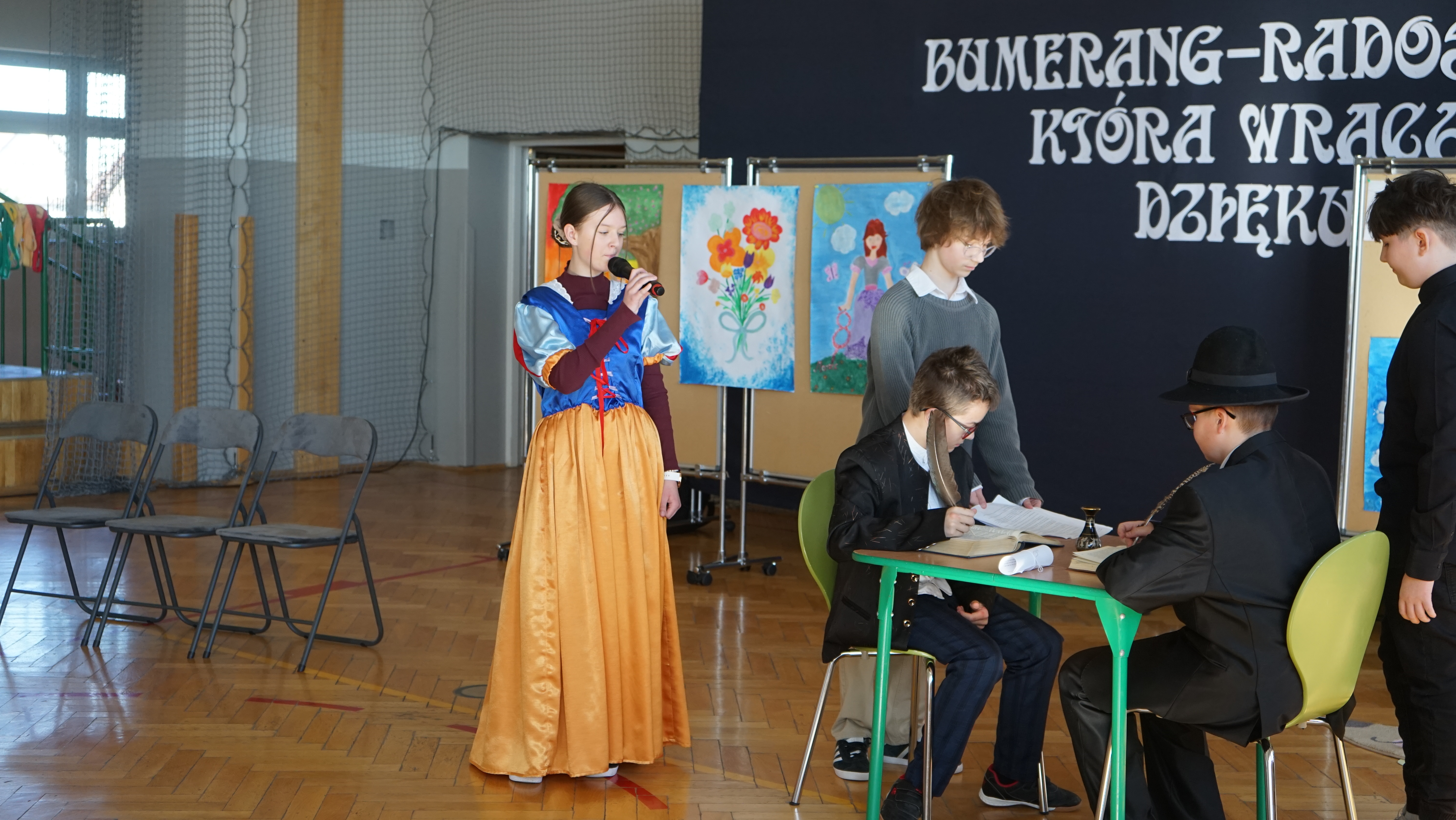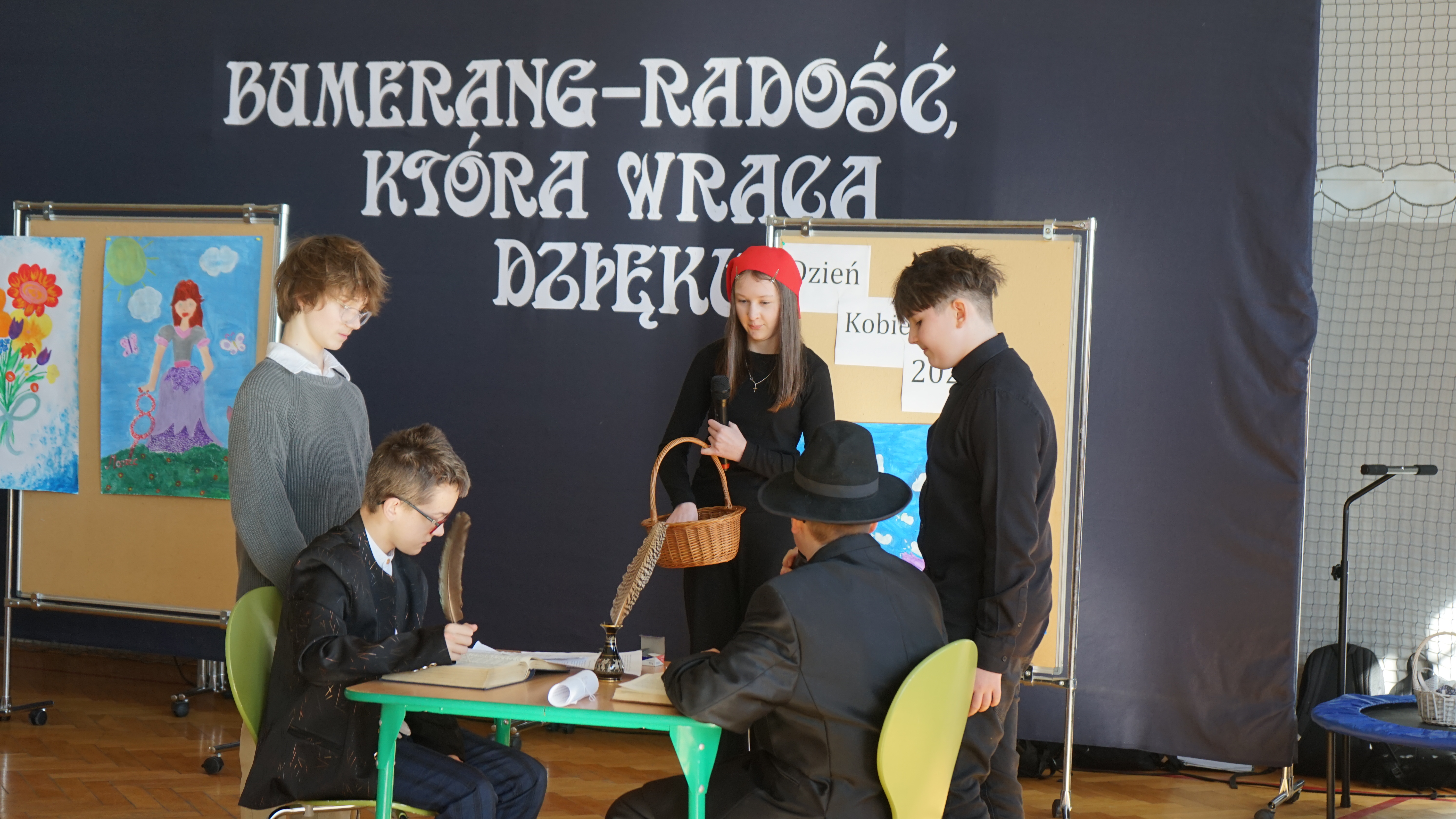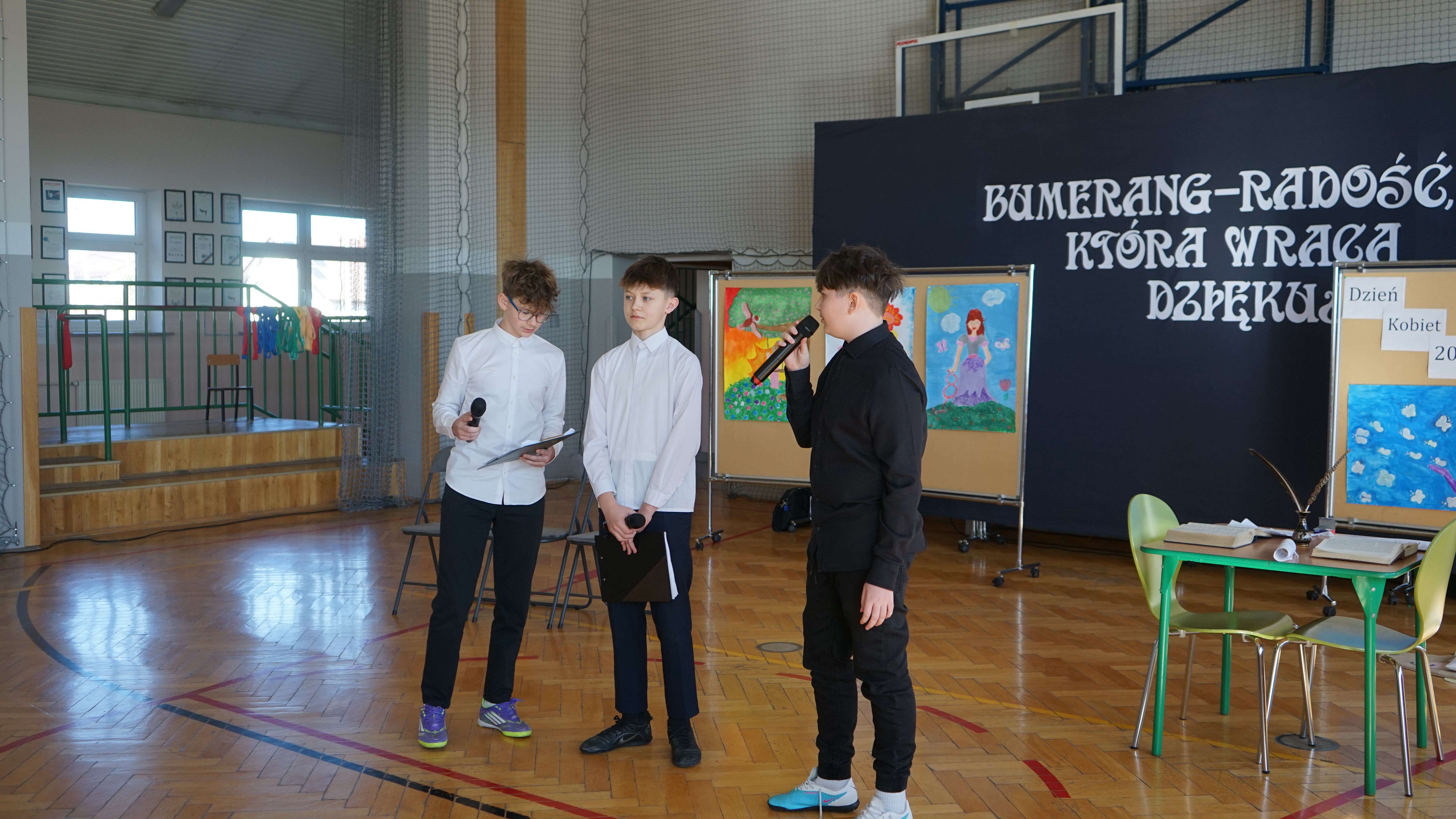 Aktualności 126 7-03-2026 Z okazji Dnia Kobiet w piątek w naszej szkole odbył się apel przygotowany przez uczniów klasy 6, pod opieką pana Grzegorza Mecha. Program artystyczny nawiązywał do znanych bajek, w których występują księżniczki. Uczniowie przypomnieli, że bohaterki bajek są odważne, dobre i pomagają innym, a przesłaniem występu było to, że każda kobieta jest wyjątkowa i można ją nazwać prawdziwą księżniczką. Występy były bardzo ciekawe i zostały nagrodzone gromkimi brawami przez publiczność. Tego dnia nie zabrakło również miłych gestów – dziewczęta i panie otrzymały słodkie upominki, które wywołały wiele uśmiechów. W całej szkole panowała serdeczna i radosna atmosfera pełna życzliwości. Obchody Dnia Kobiet były doskonałą okazją do okazania szacunku i wdzięczności wszystkim kobietom oraz do wspólnego świętowania w miłej atmosferze. 0.0 Ostatnia modyfikacja: sobota 07 marca 2026 18:40 Powiązane artykuły: Strażacka wiedza w praktyce – etap powiatowy OTWP 2026 Gminny Turniej Piłki Ręcznej chłopców klas 4-6 "Igrzyska Dzieci" 2026 Gminny Konkurs Ortograficzny 2026 Wielkanoc 2026 - życzenia Konkurs Recytatorski 2026 Apel Wielkanocny 2026 OGÓLNOPOLSKI STRAŻACKI KONKURS PLASTYCZNY 2026 Dzień Świętego Patryka - świętujemy po irlandzku Igrzyska Młodzieży Gminny Turniej Piłki Ręcznej Chłopców 2026 I Dzień Wiosny 2026 0