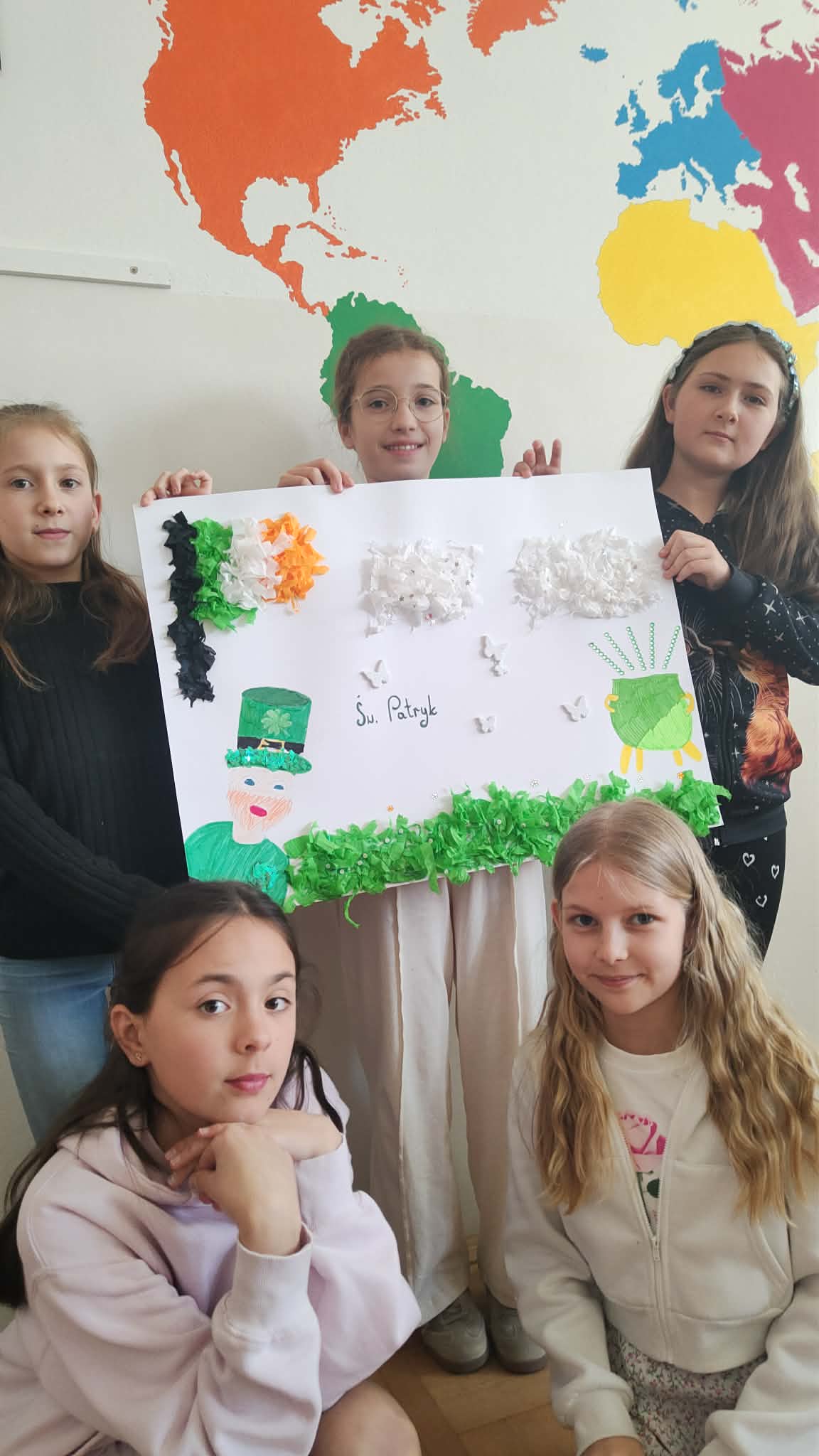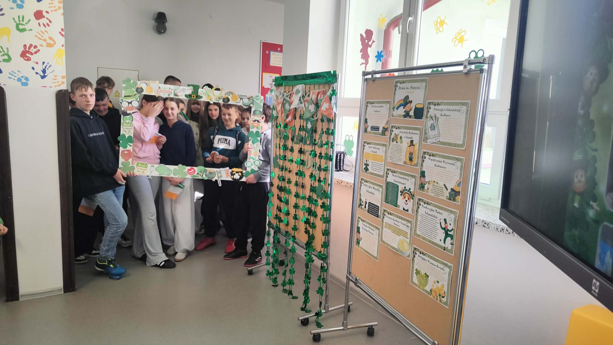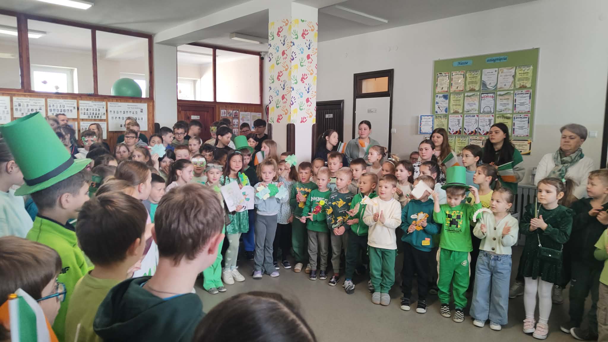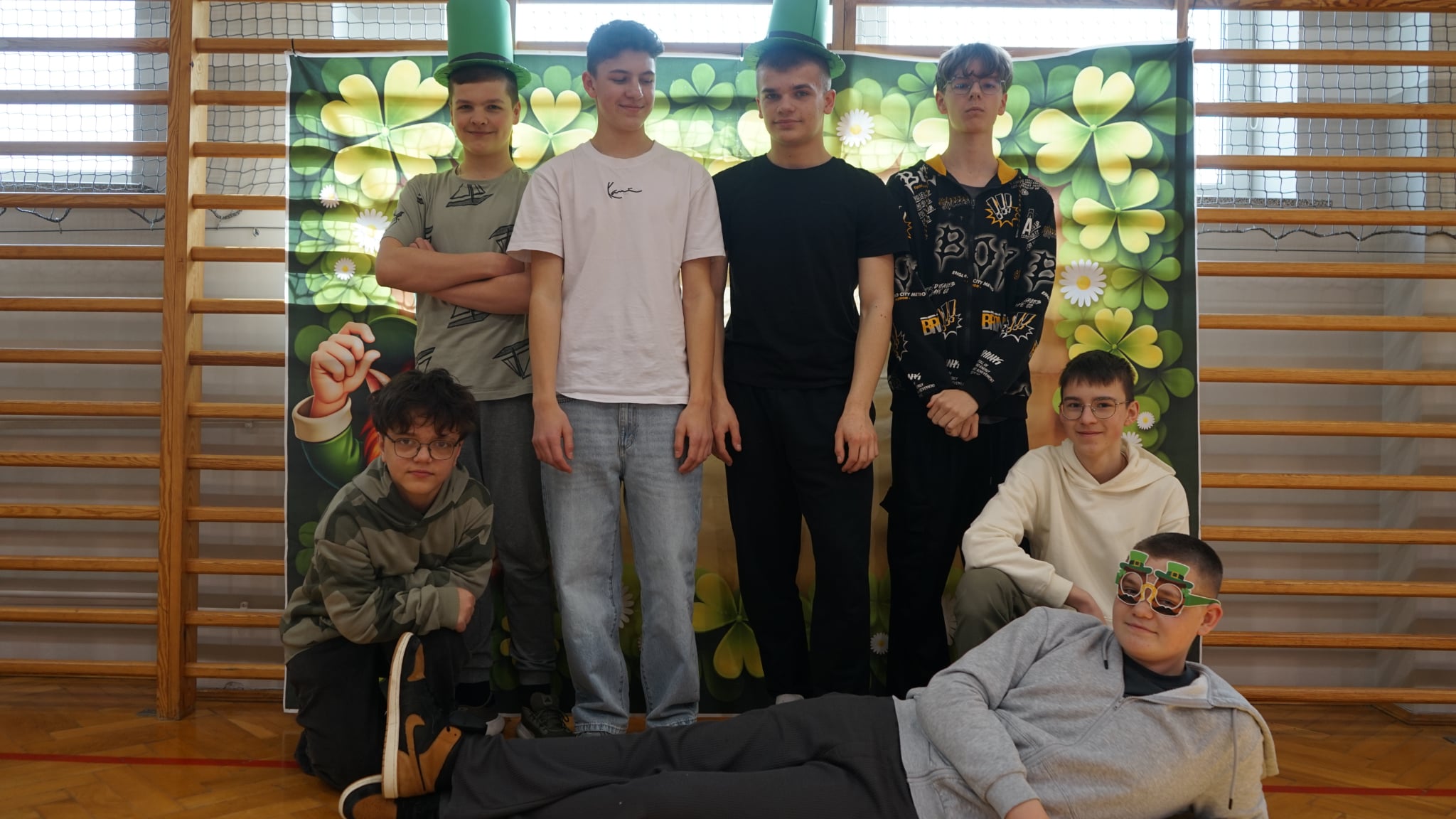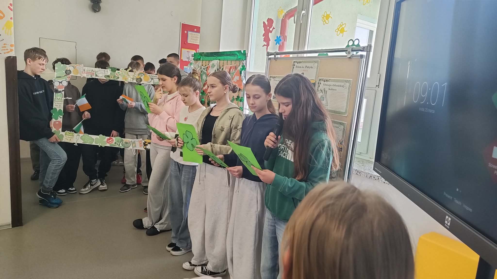 Aktualności 53 26-03-2026 25 marca nasza szkoła zamieniła się w prawdziwe irlandzkie święto! Sala gimnastyczna przystrojona były w zielone dekoracje, kapelusze i koniczynki, a uczniowie i nauczyciele ubrali się w odcienie zieleni, podkreślając atmosferę radosnego dnia. Dzień rozpoczął się od krótkiego apelu, na którym przedstawiono historię Świętego Patryka – patrona Irlandii. Uczniowie mieli okazję dowiedzieć się, jak ten dzień jest obchodzony na całym świecie, a także poznać irlandzkie tradycje i symbole, takie jak muzyka, taniec czy mityczne leprechauny. Apel zakończył się grą w „Milionerów” podczas której młodzież udowodniła, że znają historię i symbole związane z naszym dzisiejszym świętem. Lekcje języka angielskiego również zamieniły się w wyjątkowe spotkania z kulturą irlandzką. Uczniowie tworzyli plakaty i ozdoby związane z tym świętem, wzięli udział w quizie wiedzy o Irlandii, w trakcie którego mogli sprawdzić swoją znajomość tradycji i kultury tego kraju, rozwiązywali krzyżówki, a nawet grali w karty „St Patrick`s Day”. Jednym z najciekawszych punktów programu było nauczanie irlandzkich słów i wyrażeń związanych z Dniem Świętego Patryka, takich jak "shamrock" czy "pot of gold". Uczniowie mieli również okazję napisać krótkie opowiadania o magicznych przygodach leprechaunów, ćwicząc swoje umiejętności pisania po angielsku. Młodzież oglądała krótki film w języku angielskim o tradycjach irlandzkich, który wzbudził wiele ciekawości i zachęcił do dalszego zgłębiania tematu. To były nie tylko lekcje języka, ale także inspirująca podróż kulturowa. Uczniowie z pewnością zapamiętają te lekcje jako świetną zabawę i doskonałą okazję do nauki poprzez zabawę. 0.0 Ostatnia modyfikacja: czwartek 26 marca 2026 16:12 Powiązane artykuły: I Dzień Wiosny 2026 Pierwszy Dzień Wiosny i Dzień Kolorowej Skarpetki w naszej szkole Dzień Kobiet 2026 Dzień Babci i Dziadka 2026 XVIII Gminny konkurs językowo-ortograficzny Z polszczyzną na co dzień Tydzień życzliwości 2025 Dzień Postaci z Bajek 2025 Dzień Edukacji Narodowej 2025 Europejski Tydzień Świadomości Dysleksji 2025 Dzień Chłopaka 2025 0