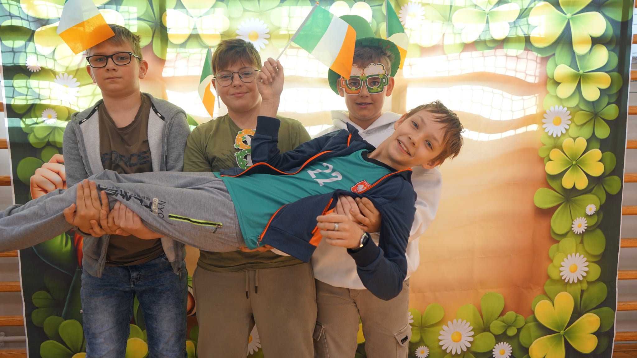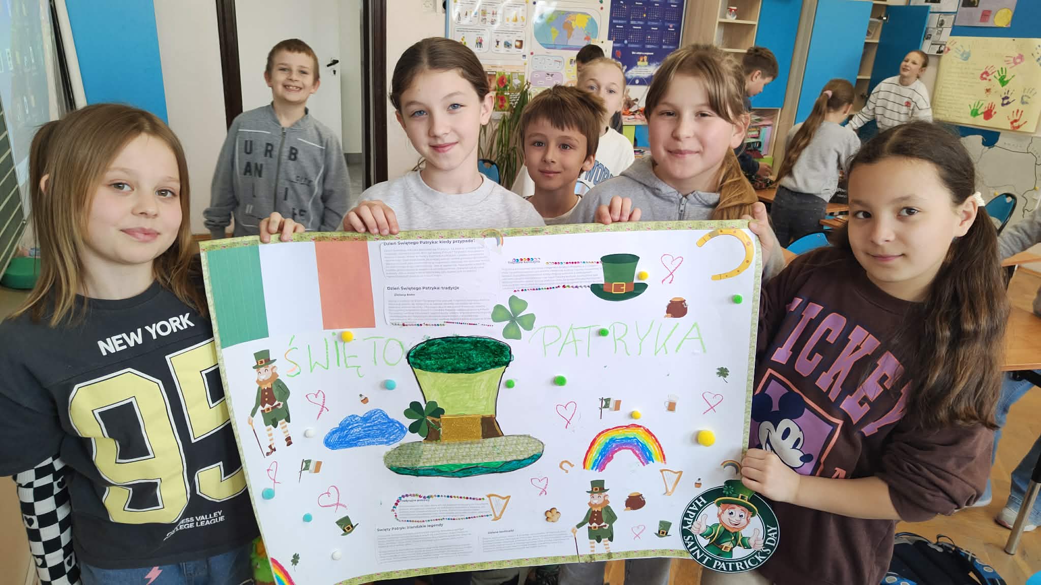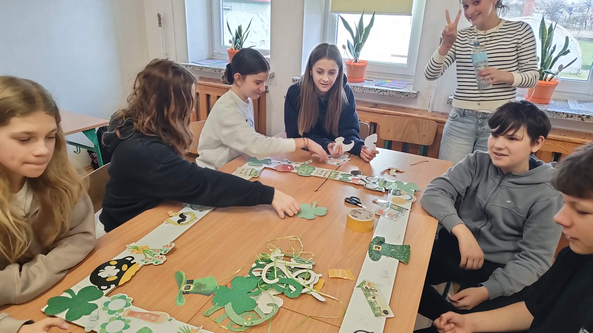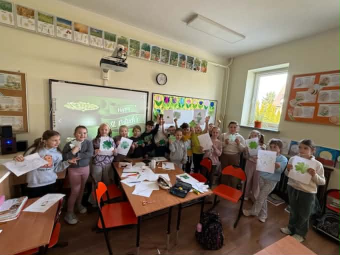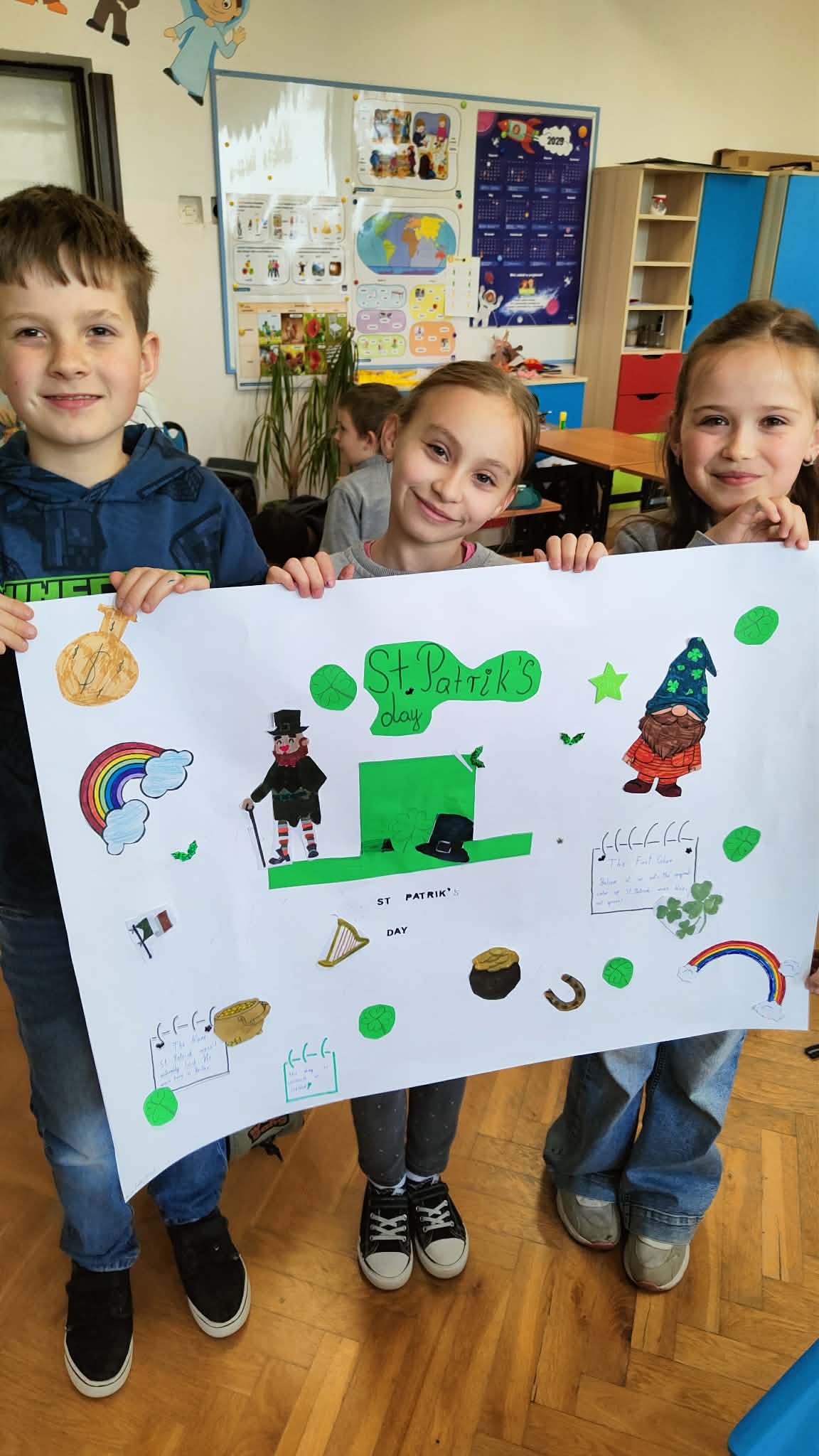Aktualności 53 26-03-2026 25 marca nasza szkoła zamieniła się w prawdziwe irlandzkie święto! Sala gimnastyczna przystrojona były w zielone dekoracje, kapelusze i koniczynki, a uczniowie i nauczyciele ubrali się w odcienie zieleni, podkreślając atmosferę radosnego dnia. Dzień rozpoczął się od krótkiego apelu, na którym przedstawiono historię Świętego Patryka – patrona Irlandii. Uczniowie mieli okazję dowiedzieć się, jak ten dzień jest obchodzony na całym świecie, a także poznać irlandzkie tradycje i symbole, takie jak muzyka, taniec czy mityczne leprechauny. Apel zakończył się grą w „Milionerów” podczas której młodzież udowodniła, że znają historię i symbole związane z naszym dzisiejszym świętem. Lekcje języka angielskiego również zamieniły się w wyjątkowe spotkania z kulturą irlandzką. Uczniowie tworzyli plakaty i ozdoby związane z tym świętem, wzięli udział w quizie wiedzy o Irlandii, w trakcie którego mogli sprawdzić swoją znajomość tradycji i kultury tego kraju, rozwiązywali krzyżówki, a nawet grali w karty „St Patrick`s Day”. Jednym z najciekawszych punktów programu było nauczanie irlandzkich słów i wyrażeń związanych z Dniem Świętego Patryka, takich jak "shamrock" czy "pot of gold". Uczniowie mieli również okazję napisać krótkie opowiadania o magicznych przygodach leprechaunów, ćwicząc swoje umiejętności pisania po angielsku. Młodzież oglądała krótki film w języku angielskim o tradycjach irlandzkich, który wzbudził wiele ciekawości i zachęcił do dalszego zgłębiania tematu. To były nie tylko lekcje języka, ale także inspirująca podróż kulturowa. Uczniowie z pewnością zapamiętają te lekcje jako świetną zabawę i doskonałą okazję do nauki poprzez zabawę. 0.0 Ostatnia modyfikacja: czwartek 26 marca 2026 16:12 Powiązane artykuły: I Dzień Wiosny 2026 Pierwszy Dzień Wiosny i Dzień Kolorowej Skarpetki w naszej szkole Dzień Kobiet 2026 Dzień Babci i Dziadka 2026 XVIII Gminny konkurs językowo-ortograficzny Z polszczyzną na co dzień Tydzień życzliwości 2025 Dzień Postaci z Bajek 2025 Dzień Edukacji Narodowej 2025 Europejski Tydzień Świadomości Dysleksji 2025 Dzień Chłopaka 2025 0
