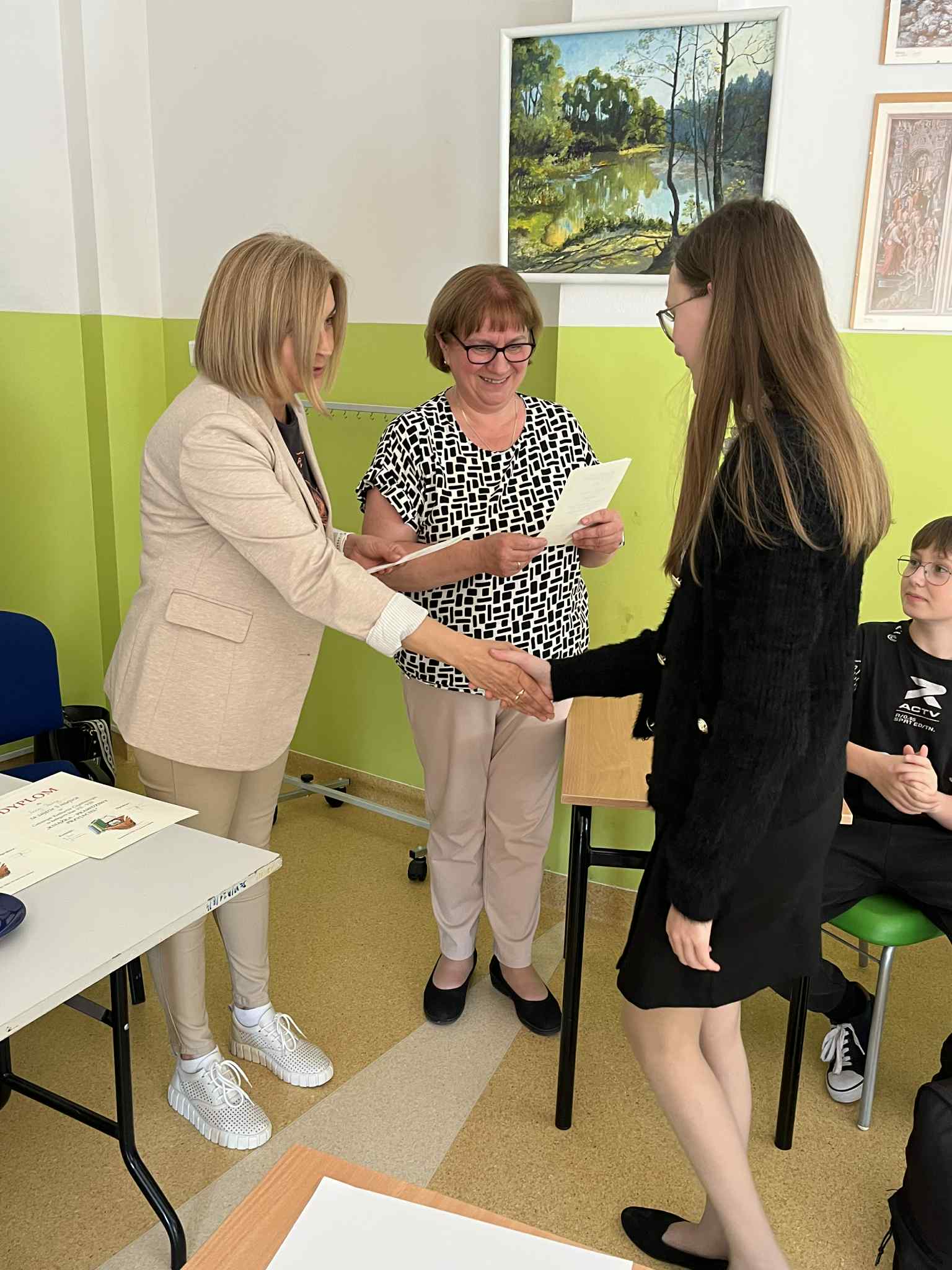 Aktualności 118 11-06-2025 W dniu 10.06.2025r. uczniowie naszej szkoły: Kasjan Burkowicz kl. V, Lena Sławęta kl. V, Marta Gacek kl. VIII, oraz Dominika Kolarz kl. VIII wzięli udział w Gminnym Konkursie Czytelniczym dla klas IV-VIII, organizowanym przez PSP w Kamionnej. Reprezentacja naszej szkoły wyłoniona została na drodze eliminacji szkolnych. Zadaniem uczniów było przeczytać wyznaczone książki, oraz skrupulatnie zapoznać się z ich treścią i szczegółami. Test konkursowy zawierał pytania dotyczące tych książek. Uczestnikom nie udało się zająć miejsca na podium, jednak była to świetna okazja by sprawdzić samego siebie i poziom zapamiętywania informacji z czytanych tekstów. Wszystkim uczestnikom gratulujemy i życzymy dalszych sukcesów. 0.0 Ostatnia modyfikacja: -/- Powiązane artykuły: Gminny Turniej Piłki Ręcznej chłopców klas 4-6 "Igrzyska Dzieci" 2026 I POWIATOWY KONKURS W UDZIELANIU PIERWSZEJ POMOCY PRZEDMEDYCZNEJ Gminny Konkurs Ortograficzny 2026 Nasze utalentowane laureatki Gminnego Konkursu Piosenki Anglojęzycznej „I can sing" Konkurs Recytatorski 2026 OGÓLNOPOLSKI STRAŻACKI KONKURS PLASTYCZNY 2026 Młodzi strażacy w akcji! Sukcesy w konkursie „Młodzież Zapobiega Pożarom" Igrzyska Młodzieży Gminny Turniej Piłki Ręcznej Chłopców 2026 Gminny Turniej Tenisa Stołowego 2026 Udział w ogólnopolskiej akcji BohaterON - 2025/2026 0