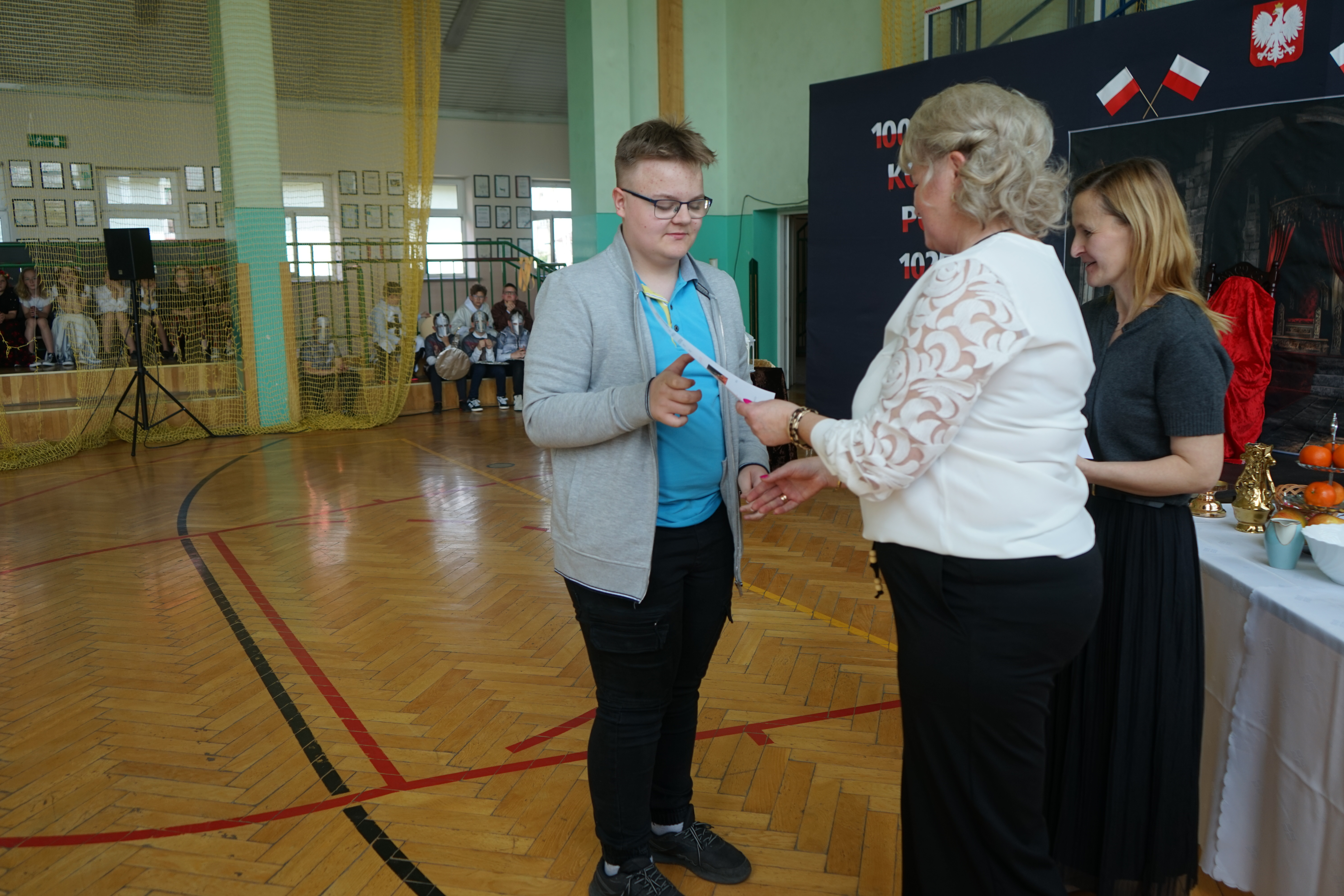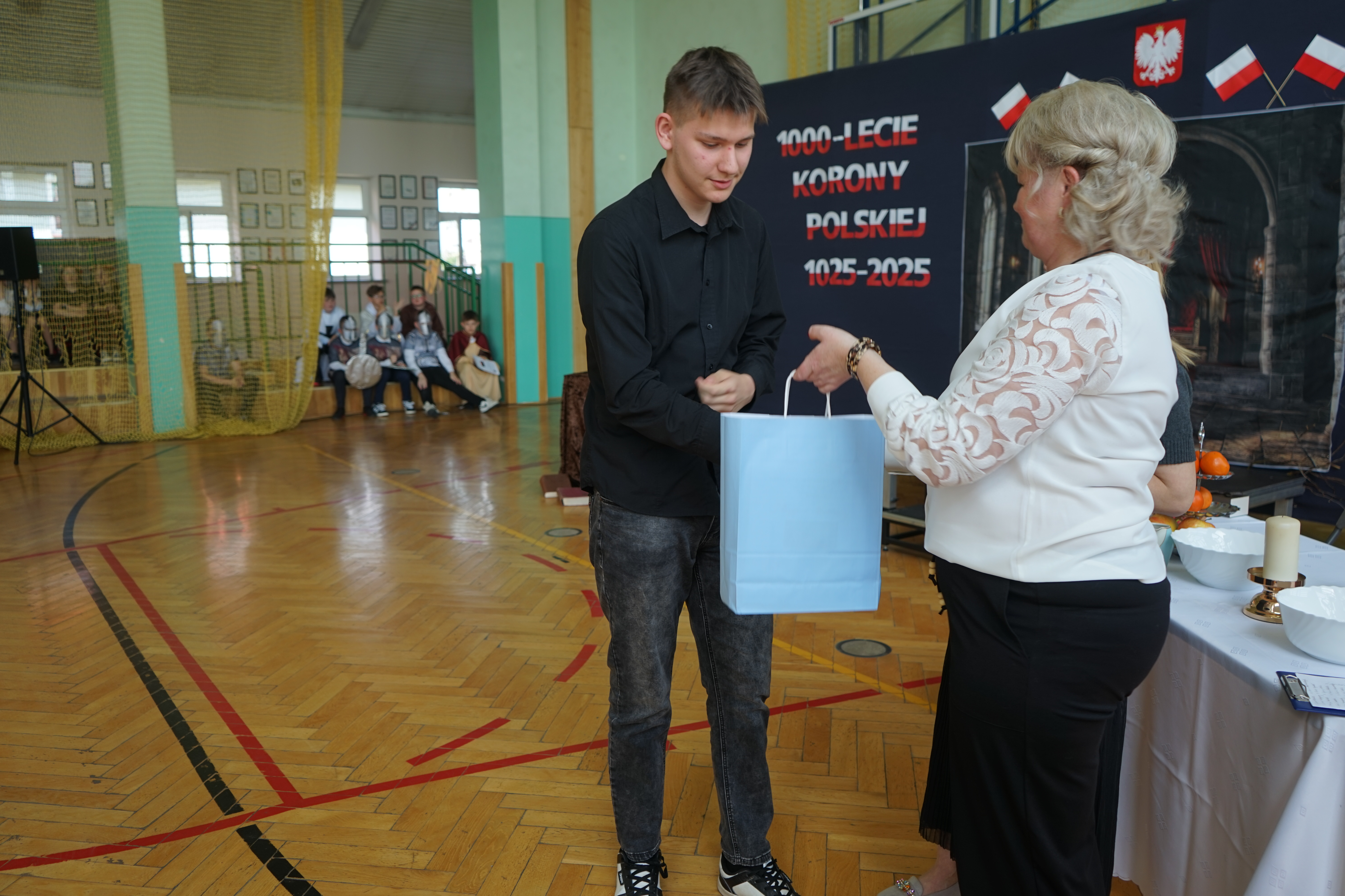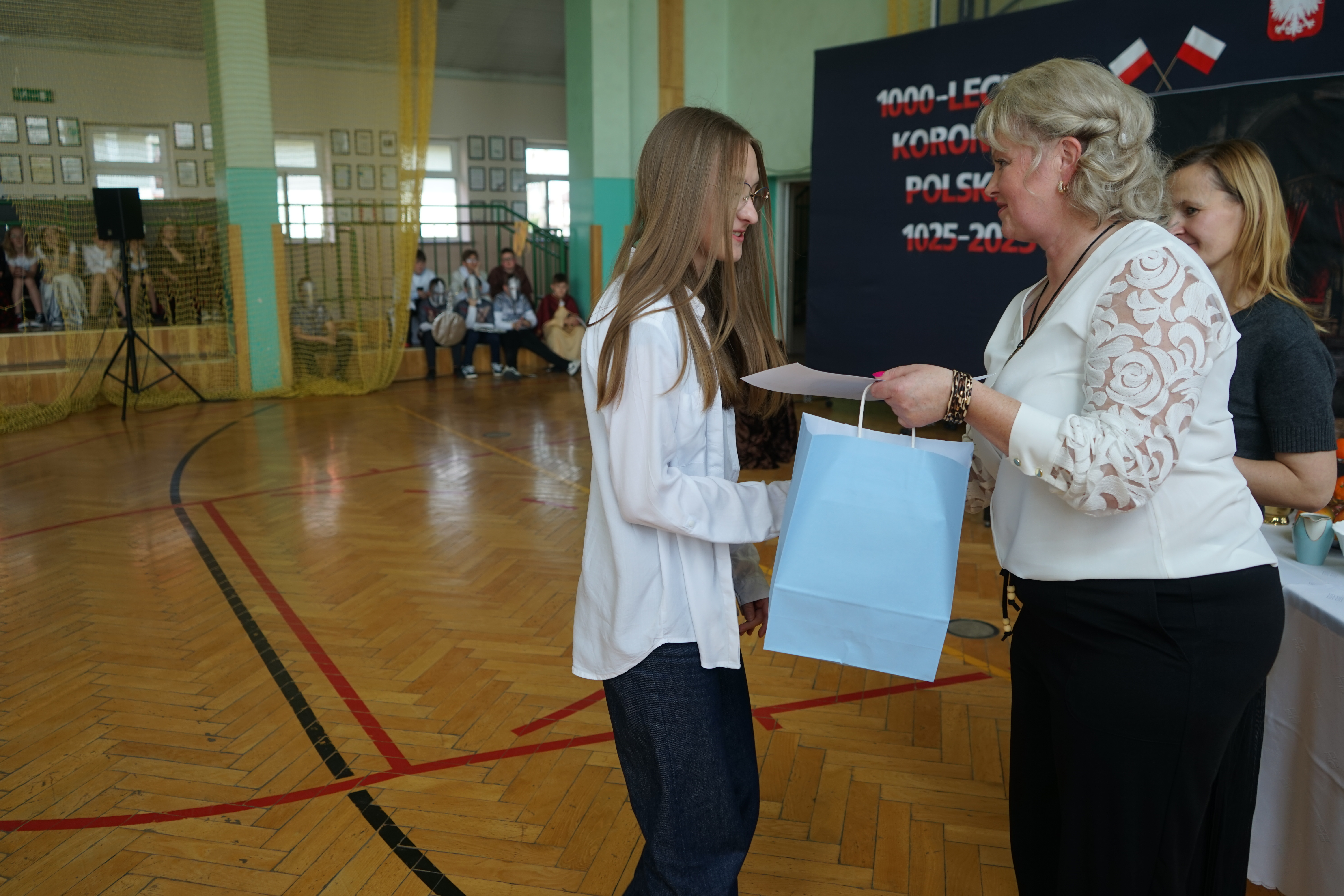 Aktualności 338 28-04-2025 Tysięczna rocznica pierwszej koronacji w Polsce to świetna okazja do zorganizowania konkursu historycznego. Dlatego też 24 kwietnia br. (gdyż prawdopodobnie w kwietniu, w Wielkanoc 1025 roku odbyła się koronacja Bolesława Chrobrego), w naszej szkole odbył się Gminny Konkurs Historyczny pt.: “1000-lecie pierwszej koronacji w Polsce”. Szkoły z terenu naszej gminy wyłoniły swoich reprezentantów, zatem w Leszczynie spotkali sie najlepsi znawcy życia i panowania Bolesława Chrobrego. Naszą szkołę reprezentowali: Natalia Halek – kl. VIII Franciszek Chojecki – kl. V Anna Ujejska – kl. V. Wszyscy uczniowie wykazali sie ogromną wiedzą o naszym pierwszym królu, pamiętali najdrobniejsze szczegóły, choć jedni okazali się wiedzieć troszkę więcej niż inni. Komisja po sprawdzeniu testu konkursowego wyłoniła zwycięzców, a pani Dyrektor wręczyła dyplomy i nagrody. Na podium uplasowali się: I miejsce – Anita Pytel – Kamionna II miejsce – Natalia Halek – Leszczyna II miejsce – Szymon Burkowicz – Kierlikówka III miejsce – Nikodem Leśniak – Trzciana III miejsce – Antoni Dziedzic – Łąkta Dolna Serdecznie gratulujemy wszystkim uczestnikom konkursu! 0.0 Ostatnia modyfikacja: poniedziaek 28 kwietnia 2025 19:27 Powiązane artykuły: Gminny Turniej Piłki Ręcznej chłopców klas 4-6 "Igrzyska Dzieci" 2026 I POWIATOWY KONKURS W UDZIELANIU PIERWSZEJ POMOCY PRZEDMEDYCZNEJ Gminny Konkurs Ortograficzny 2026 Nasze utalentowane laureatki Gminnego Konkursu Piosenki Anglojęzycznej „I can sing" Konkurs Recytatorski 2026 OGÓLNOPOLSKI STRAŻACKI KONKURS PLASTYCZNY 2026 Młodzi strażacy w akcji! Sukcesy w konkursie „Młodzież Zapobiega Pożarom" Igrzyska Młodzieży Gminny Turniej Piłki Ręcznej Chłopców 2026 Pierwszy Dzień Wiosny i Dzień Kolorowej Skarpetki w naszej szkole Gminny Turniej Tenisa Stołowego 2026 0