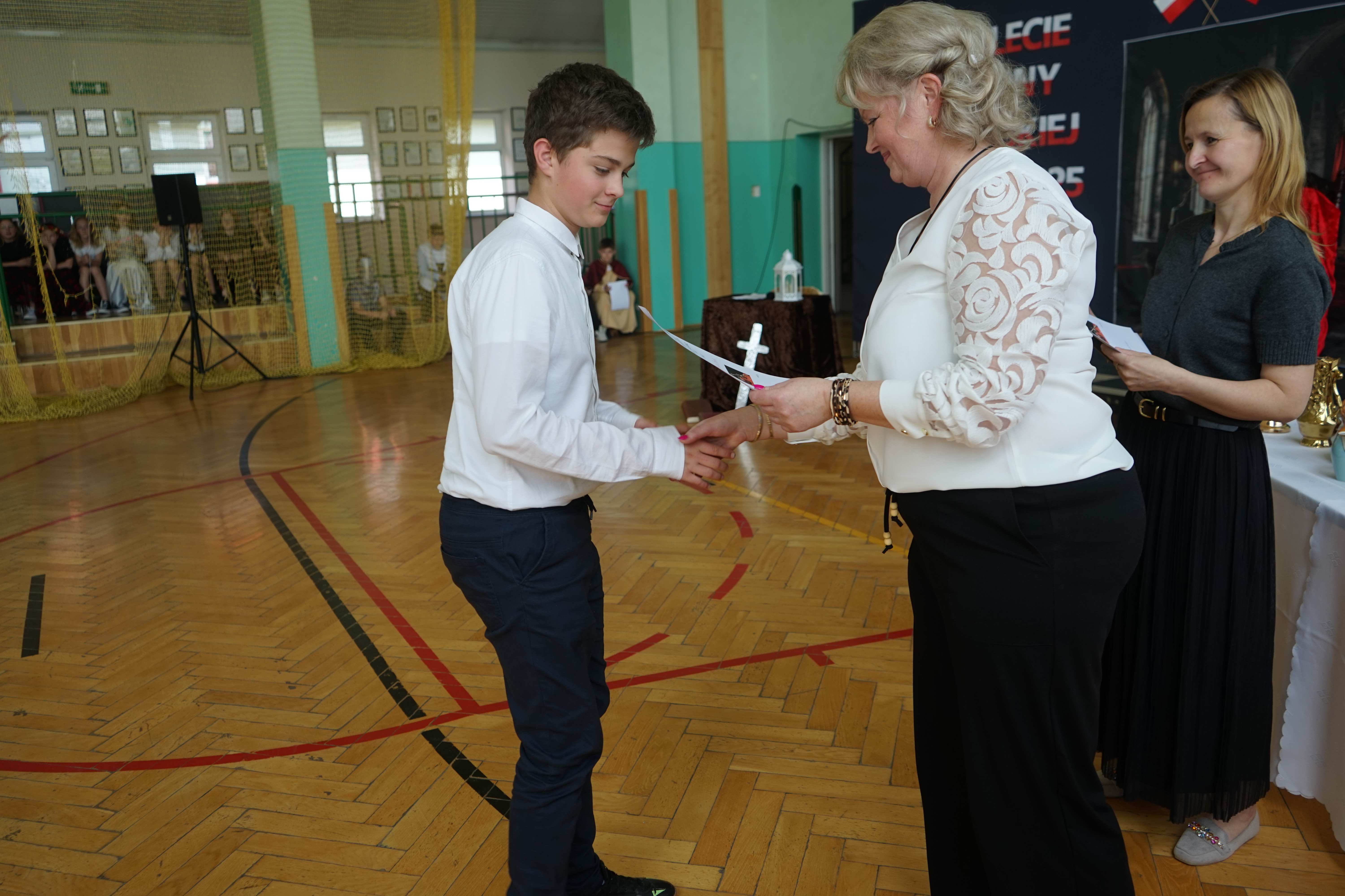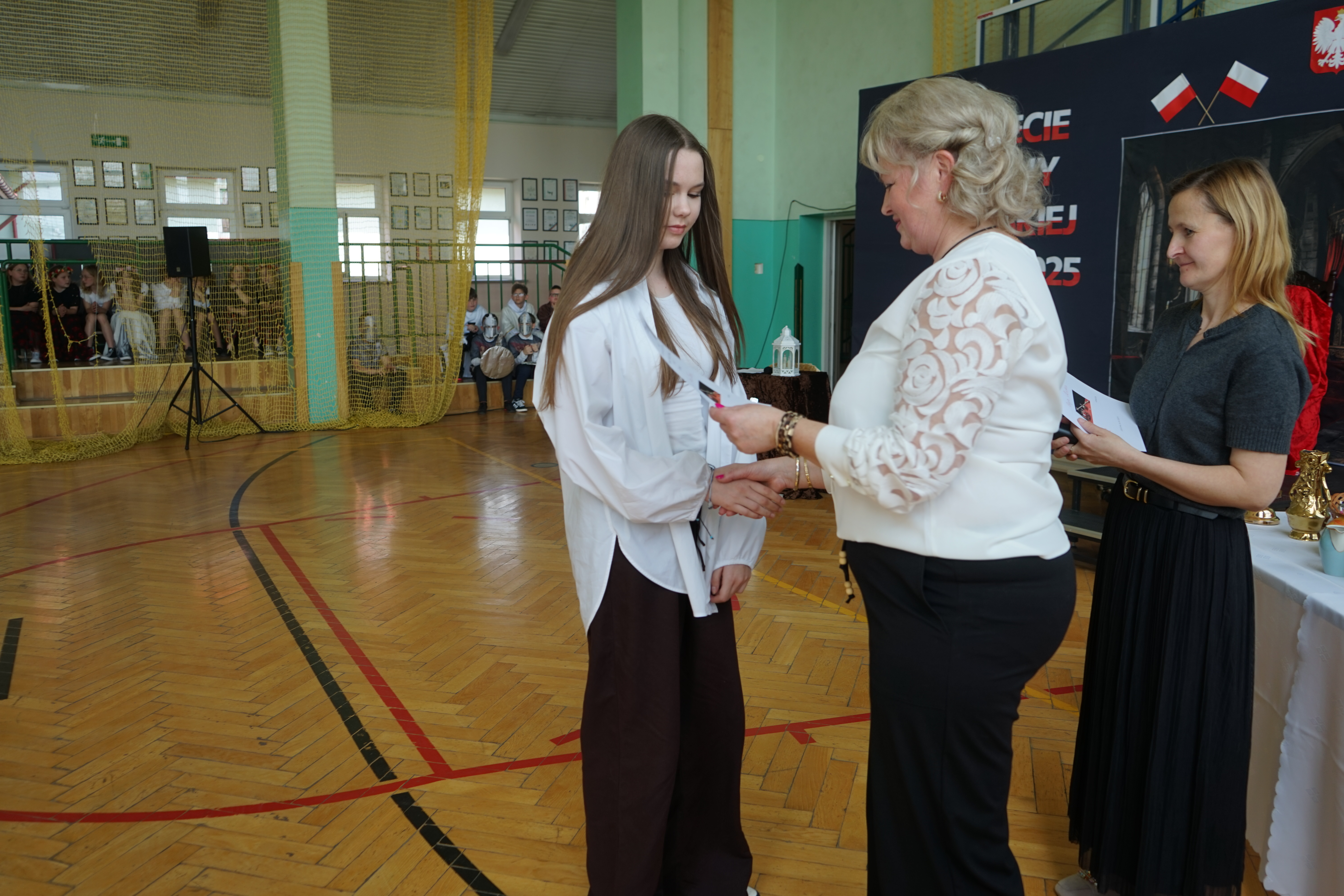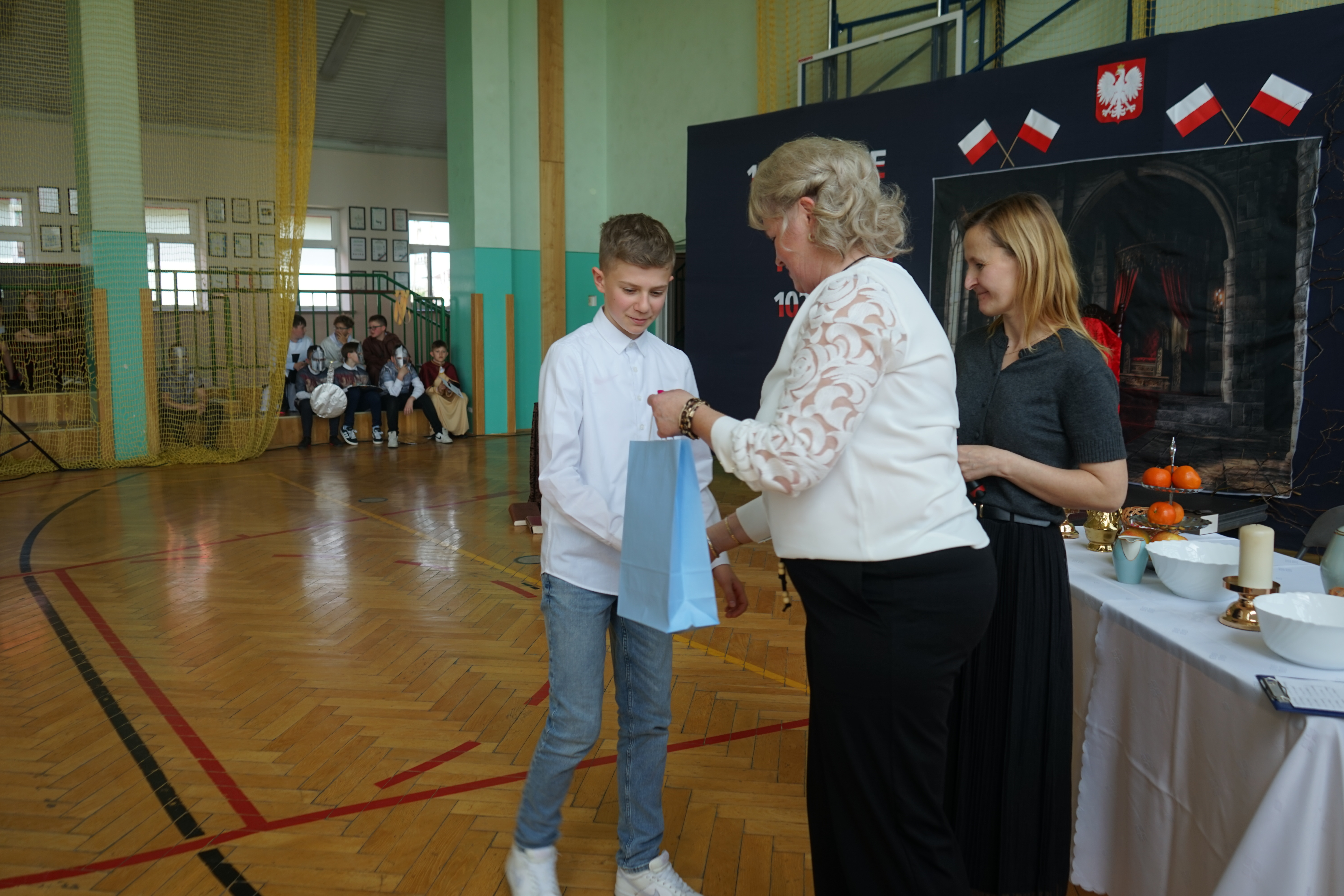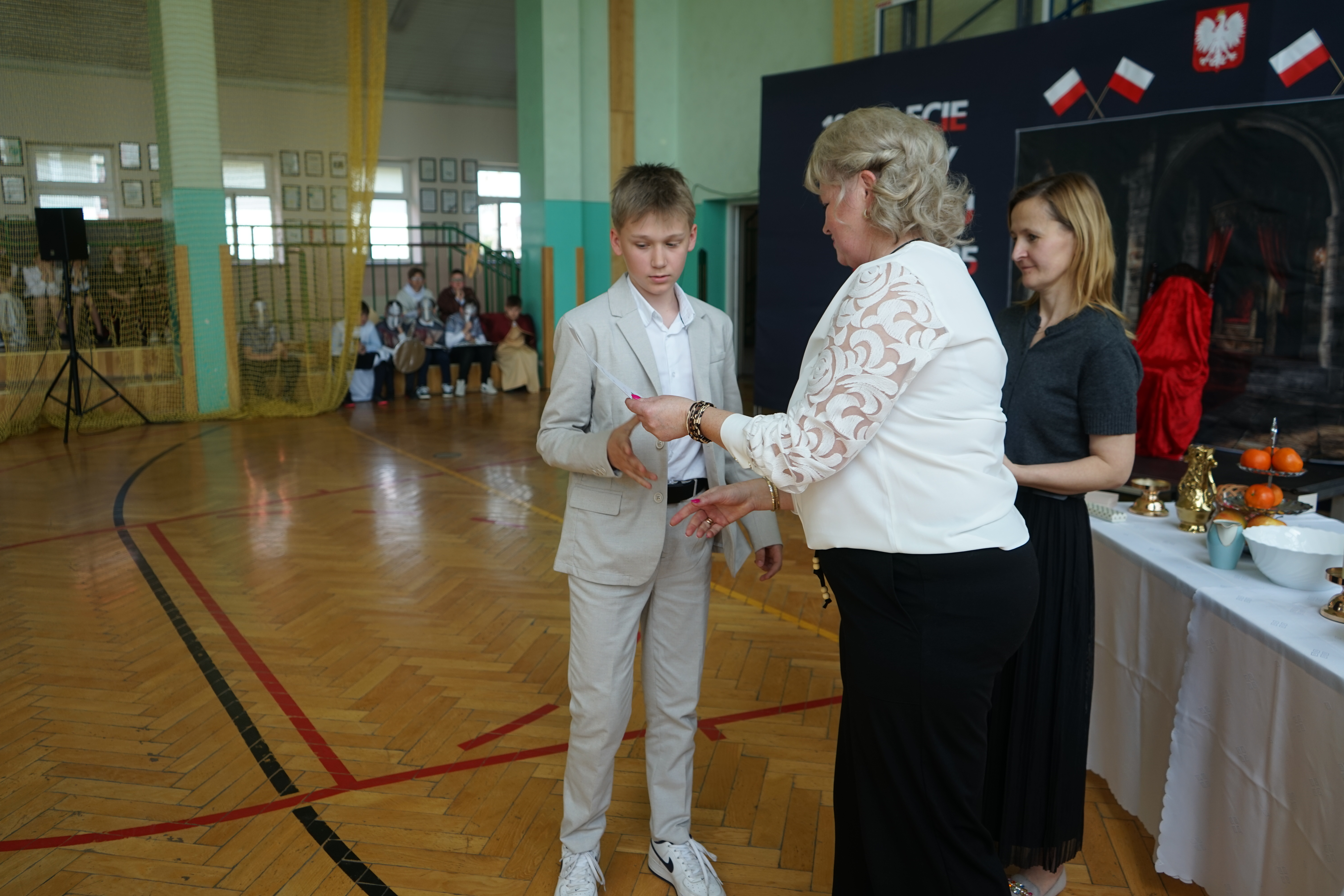 Aktualności 338 28-04-2025 Tysięczna rocznica pierwszej koronacji w Polsce to świetna okazja do zorganizowania konkursu historycznego. Dlatego też 24 kwietnia br. (gdyż prawdopodobnie w kwietniu, w Wielkanoc 1025 roku odbyła się koronacja Bolesława Chrobrego), w naszej szkole odbył się Gminny Konkurs Historyczny pt.: “1000-lecie pierwszej koronacji w Polsce”. Szkoły z terenu naszej gminy wyłoniły swoich reprezentantów, zatem w Leszczynie spotkali sie najlepsi znawcy życia i panowania Bolesława Chrobrego. Naszą szkołę reprezentowali: Natalia Halek – kl. VIII Franciszek Chojecki – kl. V Anna Ujejska – kl. V. Wszyscy uczniowie wykazali sie ogromną wiedzą o naszym pierwszym królu, pamiętali najdrobniejsze szczegóły, choć jedni okazali się wiedzieć troszkę więcej niż inni. Komisja po sprawdzeniu testu konkursowego wyłoniła zwycięzców, a pani Dyrektor wręczyła dyplomy i nagrody. Na podium uplasowali się: I miejsce – Anita Pytel – Kamionna II miejsce – Natalia Halek – Leszczyna II miejsce – Szymon Burkowicz – Kierlikówka III miejsce – Nikodem Leśniak – Trzciana III miejsce – Antoni Dziedzic – Łąkta Dolna Serdecznie gratulujemy wszystkim uczestnikom konkursu! 0.0 Ostatnia modyfikacja: poniedziaek 28 kwietnia 2025 19:27 Powiązane artykuły: Gminny Turniej Piłki Ręcznej chłopców klas 4-6 "Igrzyska Dzieci" 2026 I POWIATOWY KONKURS W UDZIELANIU PIERWSZEJ POMOCY PRZEDMEDYCZNEJ Gminny Konkurs Ortograficzny 2026 Nasze utalentowane laureatki Gminnego Konkursu Piosenki Anglojęzycznej „I can sing" Konkurs Recytatorski 2026 OGÓLNOPOLSKI STRAŻACKI KONKURS PLASTYCZNY 2026 Młodzi strażacy w akcji! Sukcesy w konkursie „Młodzież Zapobiega Pożarom" Igrzyska Młodzieży Gminny Turniej Piłki Ręcznej Chłopców 2026 Pierwszy Dzień Wiosny i Dzień Kolorowej Skarpetki w naszej szkole Gminny Turniej Tenisa Stołowego 2026 0