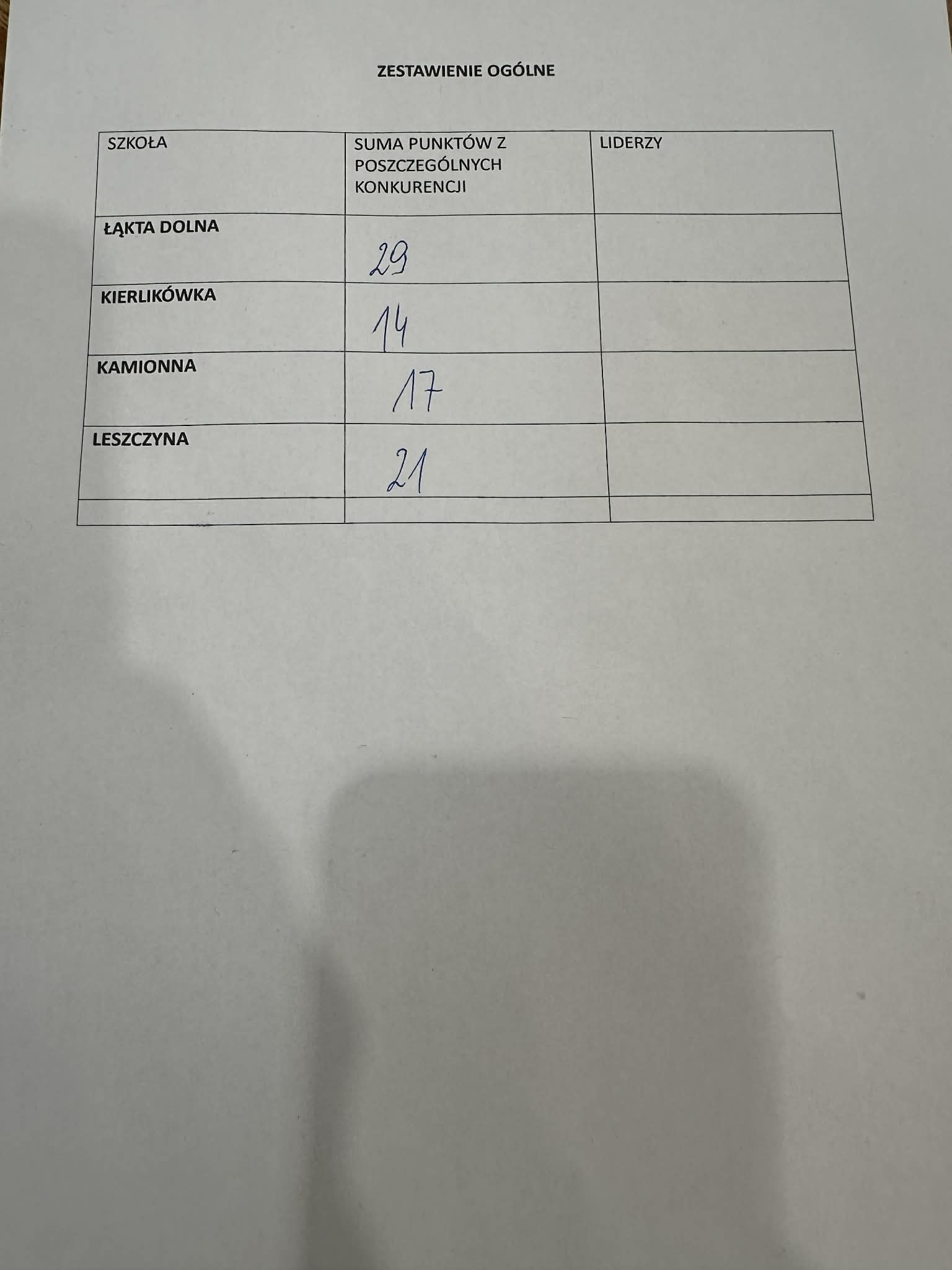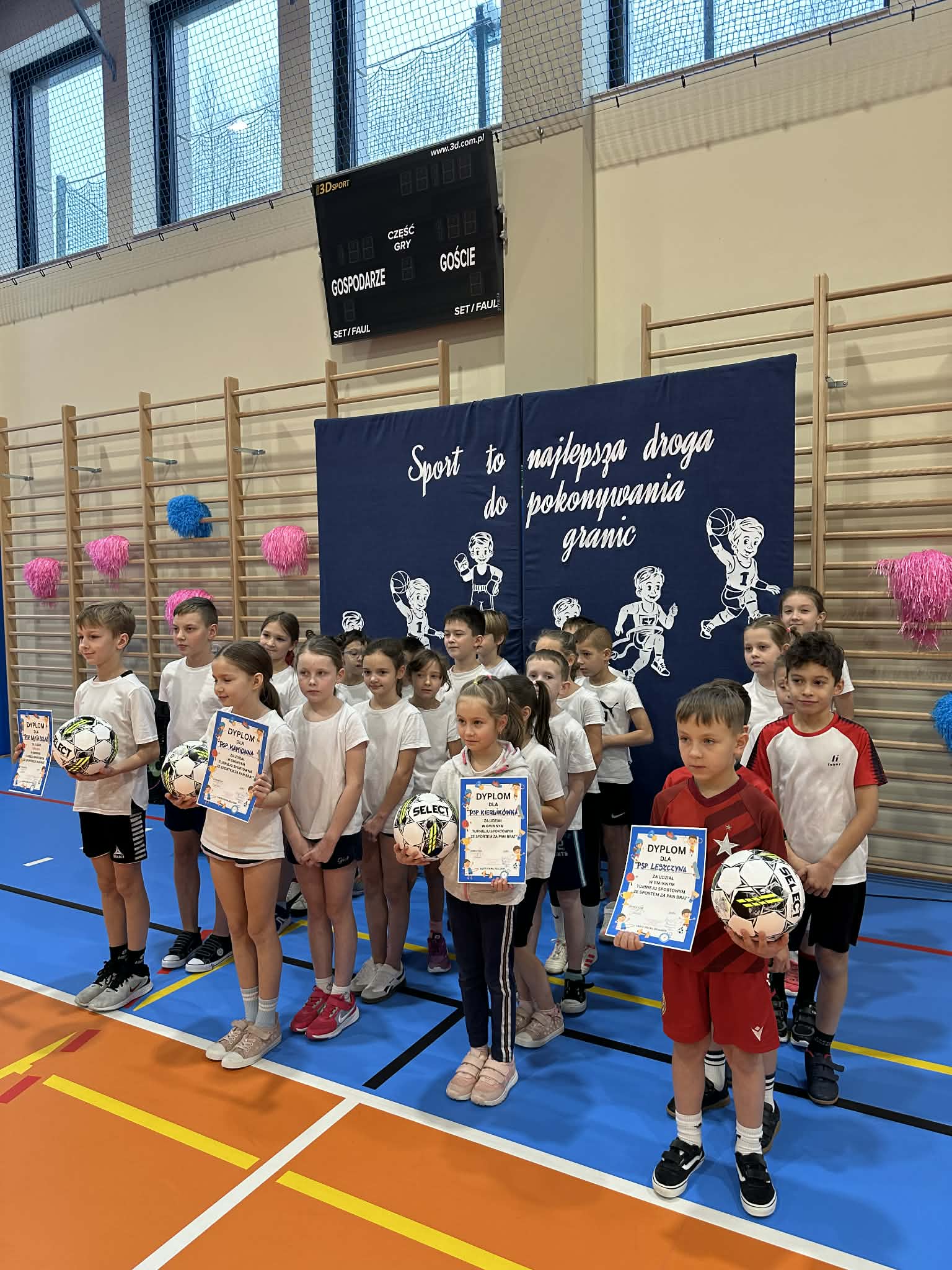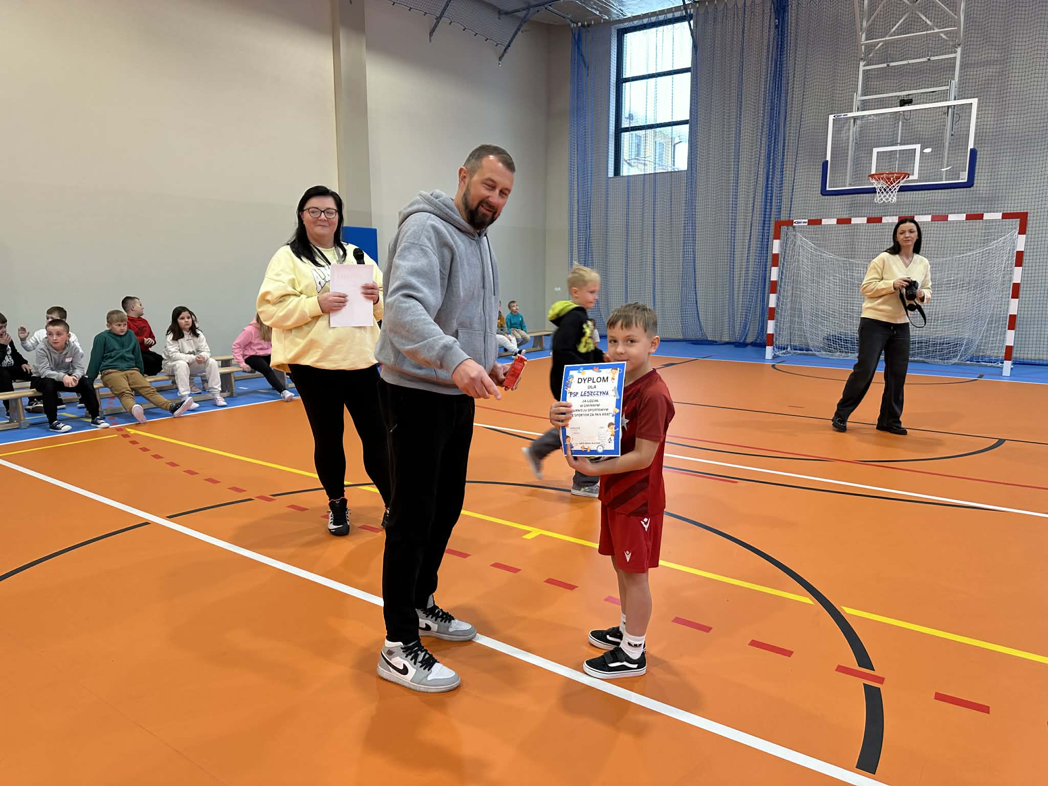Aktualności 69 26-11-2025 26 listopada uczniowie klas 1, 2, 3 naszej szkoły brali udział w Gminnym Turnieju Sportowym "ZE SPORTEM ZA PAN BRAT" który się odbył na sali gimnastycznej w Łąkcie Dolnej. Rywalizacja rozgrywała się między uczniami ( składy mieszane, dziewczęta i chłopcy ) szkół w Leszczynie, Kamionnej, Kierlikówce i Łąkcie Dolnej. Rywalizacja była bardzo zacięta, emocje sięgały zenitu, a doping dla każdej ze szkół był ogromny. Docelowo zawodnicy ze szkoły w Leszczynie w klasyfikacji punktowej zdobyli drugie miejsce, przegrywając tylko z drużyną z Łąkty Dolnej. Bardzo dziękujemy za wspaniałą postawę i godne reprezentowanie naszej szkoły. Skład drużyny: Klasa 1 - Jakub Kłósek - Ignacy Sroka Klasa 2 - Leon Czuban - Tobiasz Łukasik Klasa 3 - Nikola Karpiel - Hanna Chojecka 0.0 Ostatnia modyfikacja: -/- Powiązane artykuły: Gminny Turniej Piłki Ręcznej chłopców klas 4-6 "Igrzyska Dzieci" 2026 Gminny Konkurs Ortograficzny 2026 Igrzyska Młodzieży Gminny Turniej Piłki Ręcznej Chłopców 2026 Gminny Turniej Tenisa Stołowego 2026 Udział w ogólnopolskiej akcji BohaterON - 2025/2026 Olimpiada Mitologiczna 2025 Wyniki konkursu Alfik Matematyczny 2025 Boże Narodzenie 2025 - życzenia Akcja charytatywna „Paczuszka dla Maluszka" 2025 Jasełka i Wigilia - 2025 0