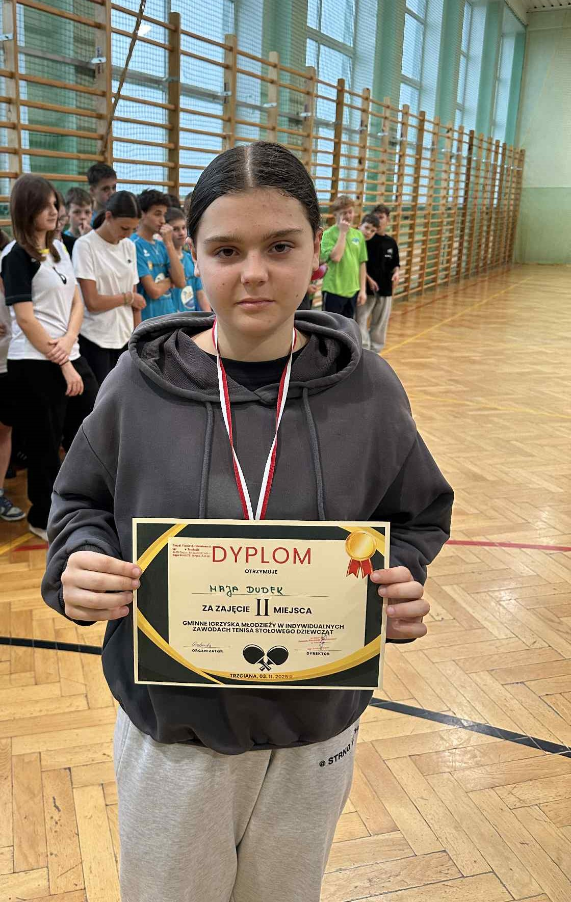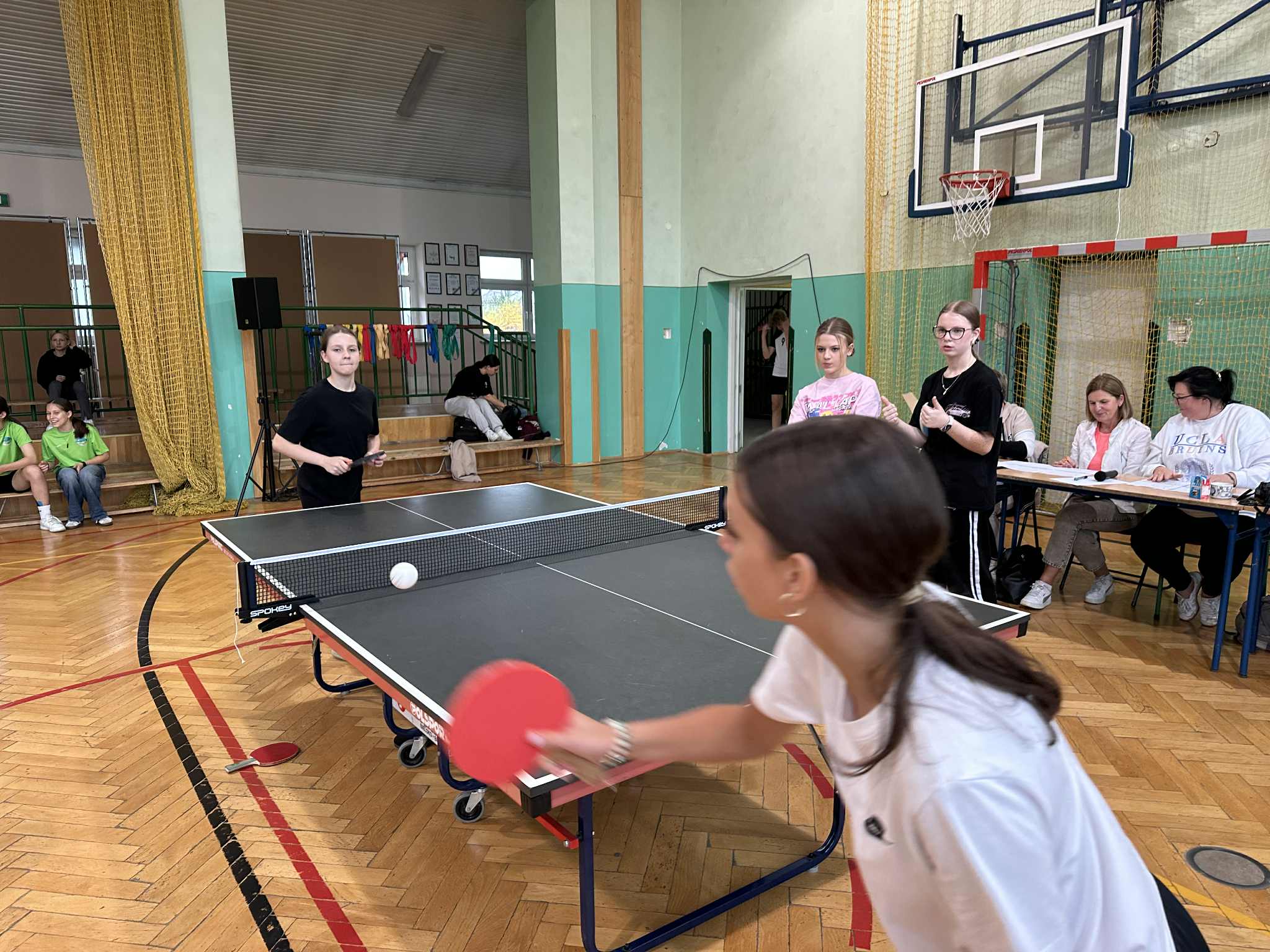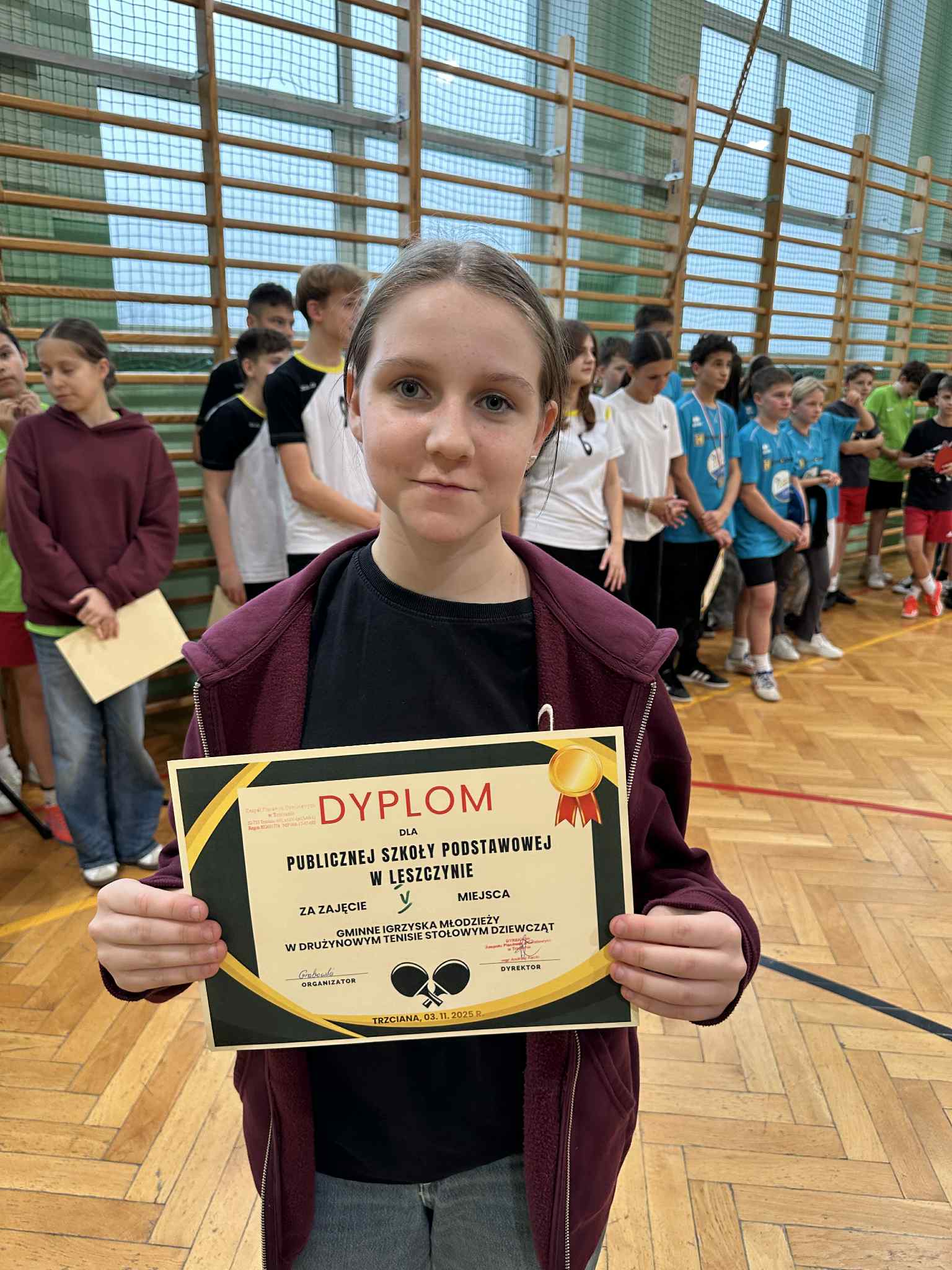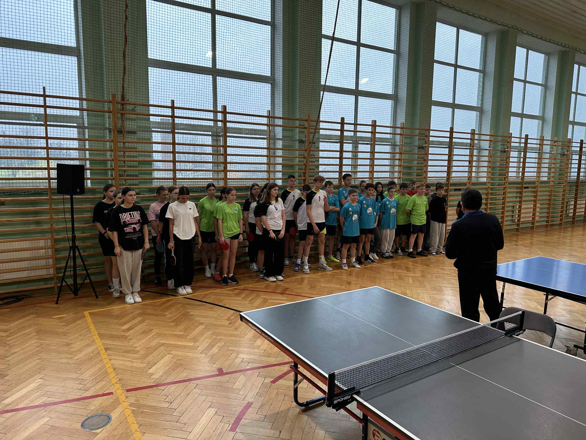 Aktualności 53 4-11-2025 3 listopada w naszej szkole odbył się Gminny Turniej Tenisa Stołowego, Igrzyska Młodzieży. W turnieju wzięły udział zawodniczki i zawodnicy klas 7-8 nie tylko naszej szkoły, ale również pozostałych szkół z terenu Gminy Trzciana ( Kamionna, Kierlikówka, Łąkta Dolna i Trzciana ). Docelowo reprezentanci naszej szkoły w klasyfikacji drużynowej zajęli piąte miejsce, zarówno dziewczęta jak i chłopcy. Indywidualnie nasza super reprezentantka Maja Dudek zajęła drugie miejsce indywidualnie w klasyfikacji dziewcząt i zakwalifikowała się do turnieju powiatowego, który się odbędzie 19 listopada 2025 roku w Rzezawie. Wielkie podziękowania dla uczniów, za godne reprezentowanie szkoły w Leszczynie. 0.0 Ostatnia modyfikacja: -/- Powiązane artykuły: Gminny Turniej Piłki Ręcznej chłopców klas 4-6 "Igrzyska Dzieci" 2026 Gminny Konkurs Ortograficzny 2026 Igrzyska Młodzieży Gminny Turniej Piłki Ręcznej Chłopców 2026 Gminny Turniej Tenisa Stołowego 2026 Udział w ogólnopolskiej akcji BohaterON - 2025/2026 Olimpiada Mitologiczna 2025 Wyniki konkursu Alfik Matematyczny 2025 Boże Narodzenie 2025 - życzenia Akcja charytatywna „Paczuszka dla Maluszka" 2025 Jasełka i Wigilia - 2025 0