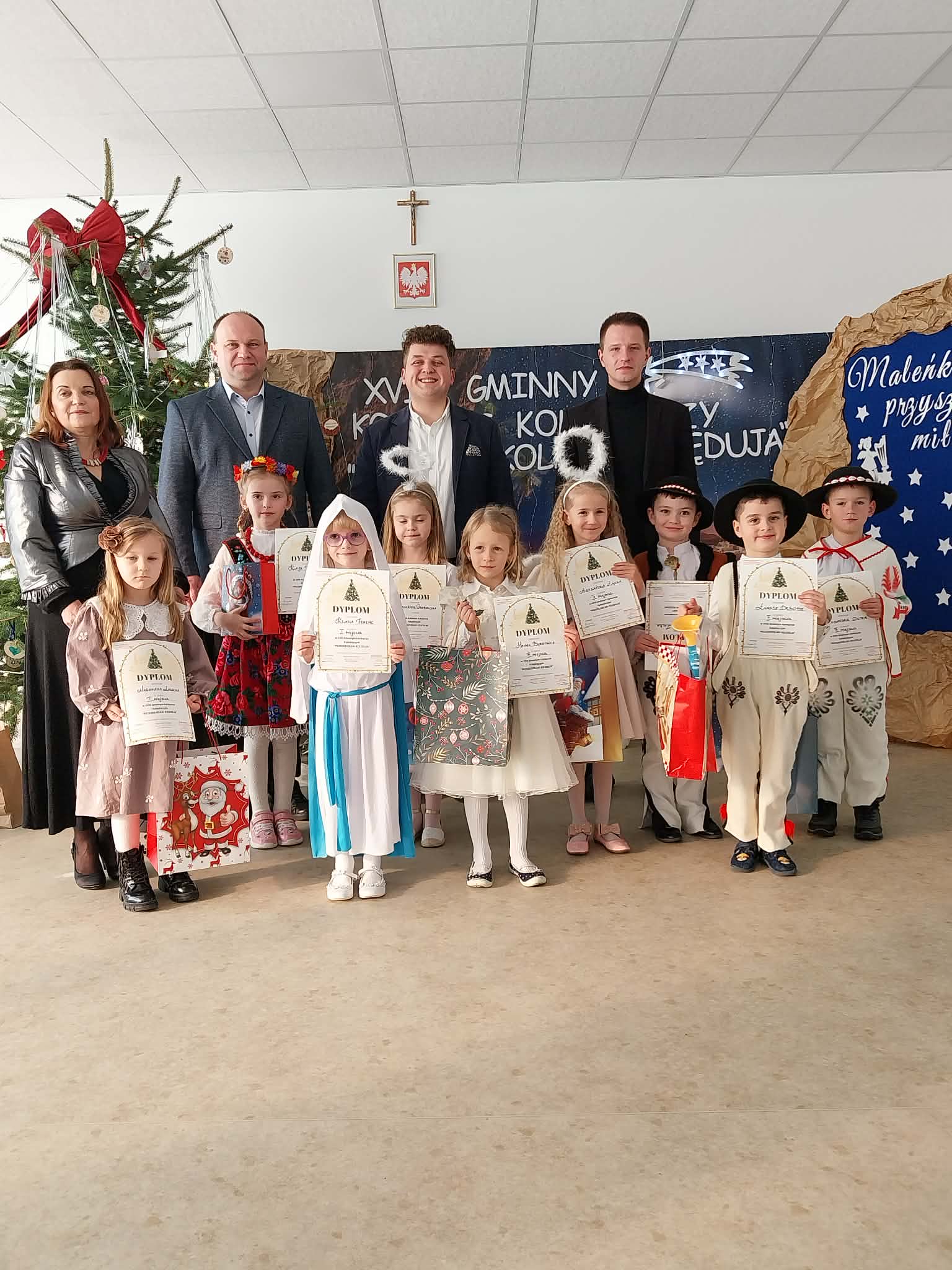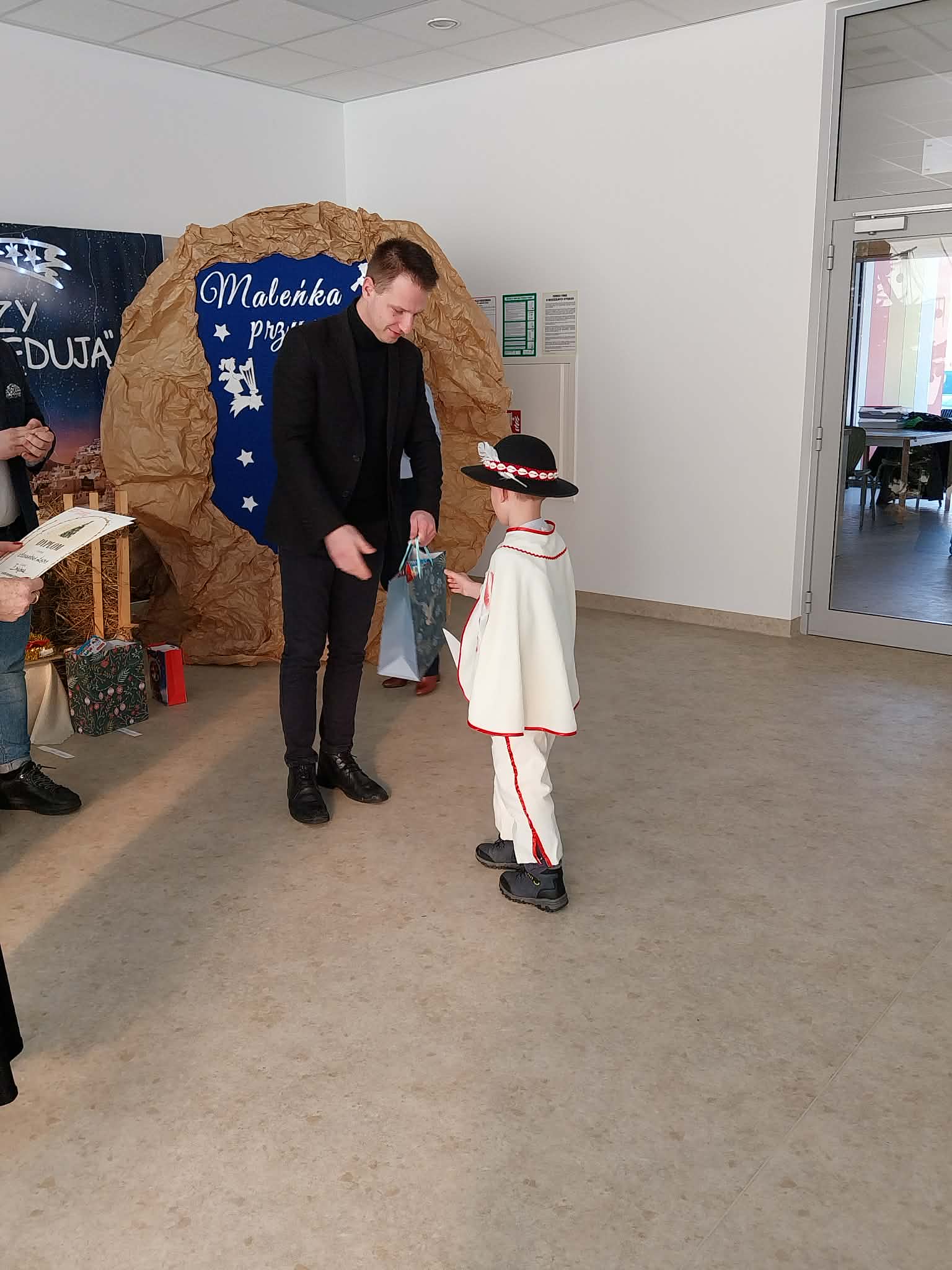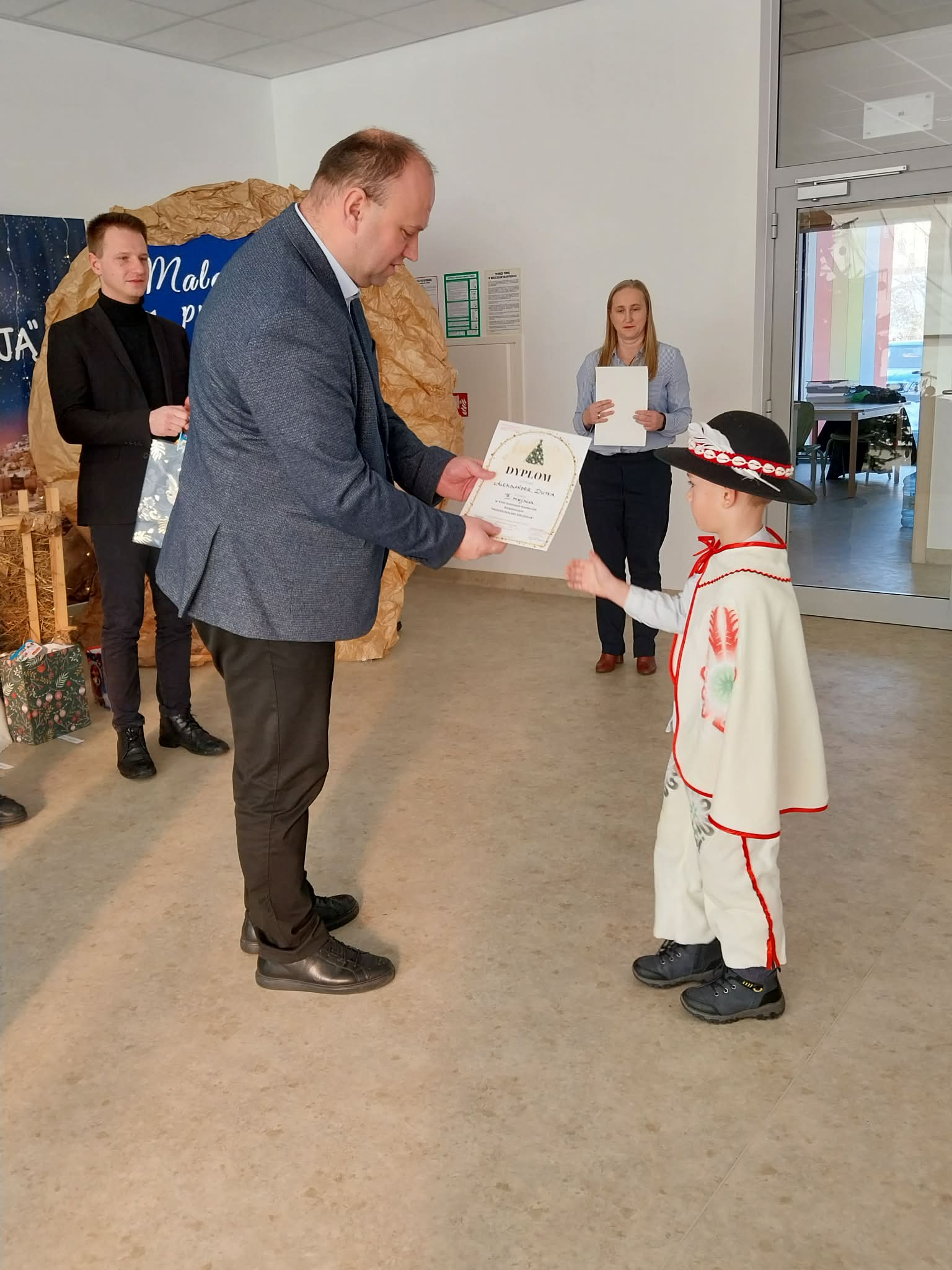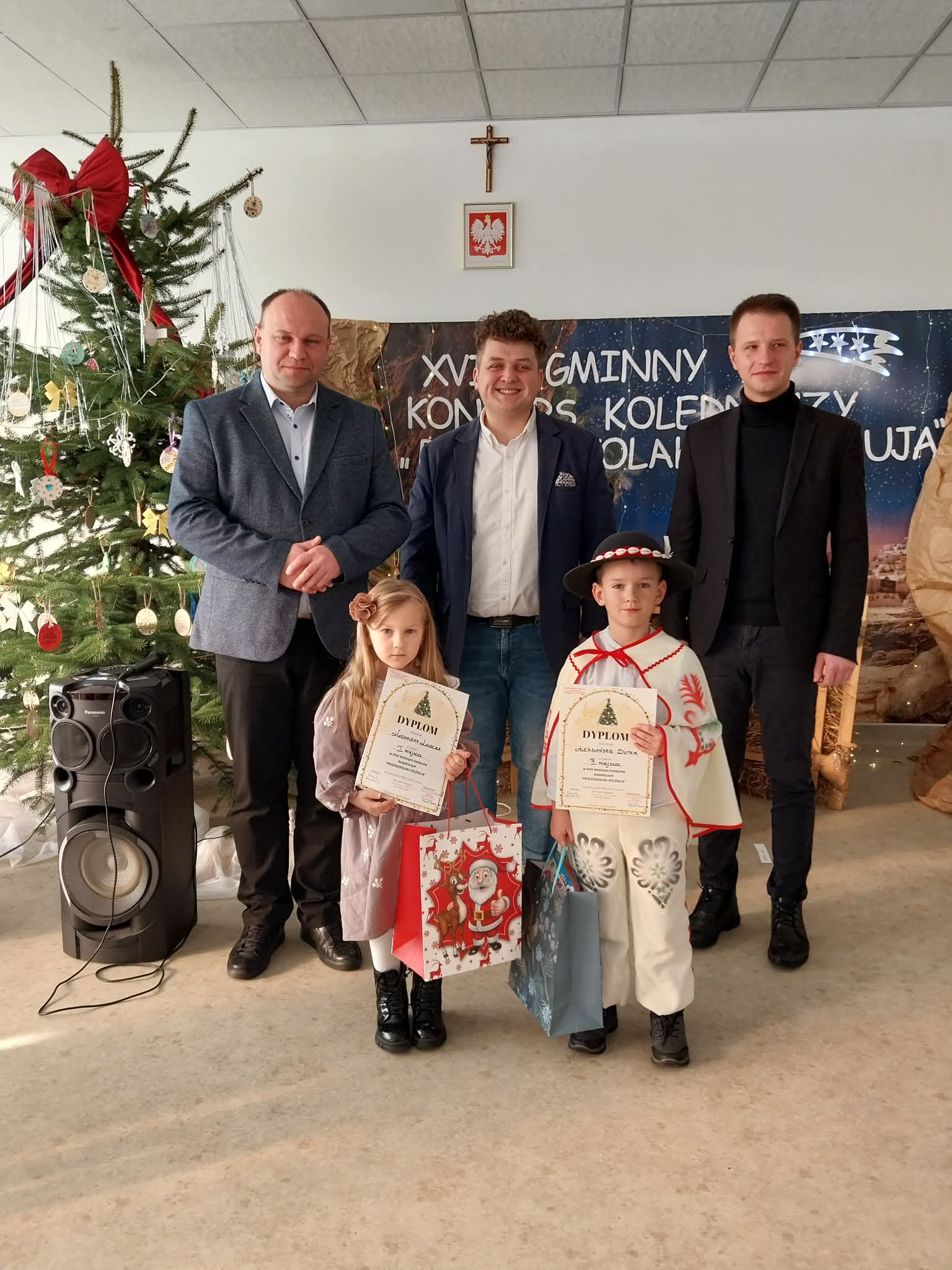 Aktualności 67 16-01-2026 16 stycznia 2026 roku w Publicznym Przedszkolu w Trzcianie odbył się XVIII Gminny Konkurs Kolęd i Pastorałek „ PRZEDSZKOLAKI KOLĘDUJĄ”. Celem konkursu jest kultywowanie tradycji świątecznych, popularyzacja piękna polskich kolęd i pastorałek, a także promowanie uzdolnionych wokalnie dzieci. Nasze przedszkole reprezentowały dwie osoby – Aleksander Dutka i Magdalena Lalecka. Jury po wysłuchaniu prezentacji artystycznych i uzgodnieniu werdyktu zaprezentowało wyniki konkursu. Okazało się, że nasi soliści zostali laureatami. Magdalena Lalecka zdobyła I miejsce w kategorii dzieci 5-letnich. Aleksander Dutka zdobył III miejsce w kategorii dzieci 6-letnich. Wszyscy uczestnicy konkursu otrzymali pamiątkowe dyplomy oraz nagrody rzeczowe. GRATULUJEMY !!!! 0.0 Ostatnia modyfikacja: -/- Powiązane artykuły: „ Z kolędą do… Betlejem „Szła kolęda w noc grudniową, pukała do domu" – Jasełka 2023 Hej kolęda, kolęda...- wspólne kolędowanie HEJ KOLĘDA......KOLĘDA! ABY DZIECI MOGŁY USŁYSZEĆ - KOLĘDA MISYJNA2014 0