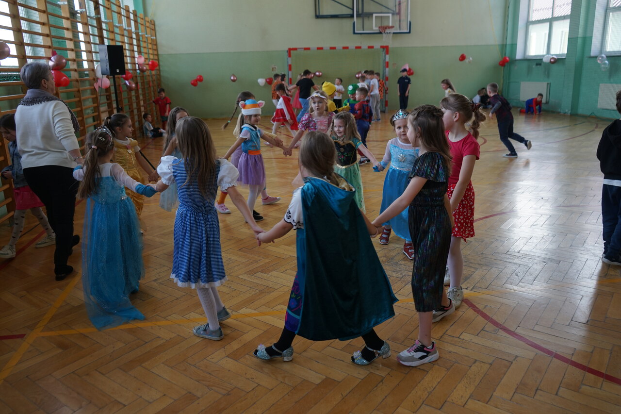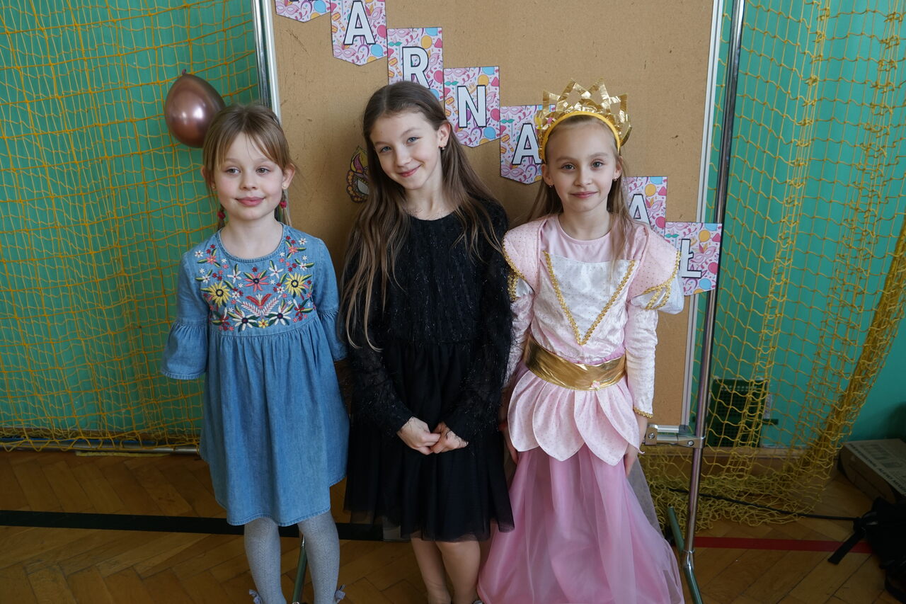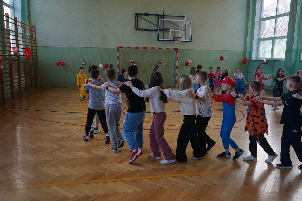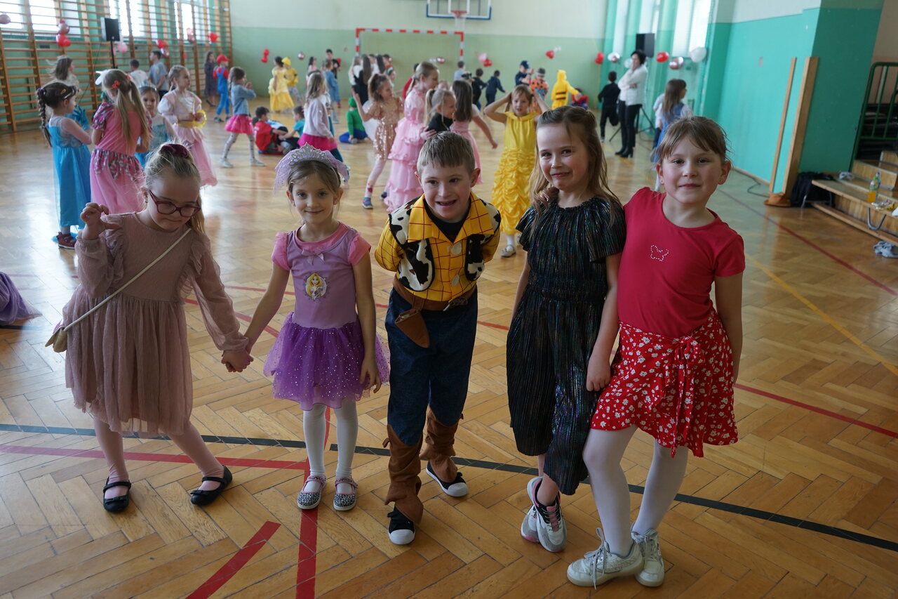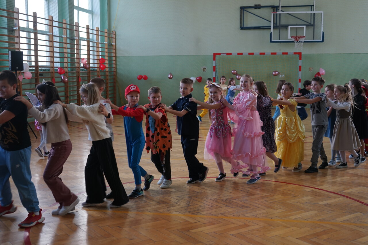 Aktualności 272 13-02-2025 Karnawał to miła, szalona tradycja pełna wrażeń, kolorów, dźwięków i smaków. Zabawa karnawałowa jest atrakcją bardzo lubianą przez dzieci, dostarcza im wielu przeżyć i radości. Tak też było w naszej szkole w środę 12 lutego 2025r. Na pięknie udekorowanej sali pojawiły się kolorowe postaci. Dzieci przebrane były za bohaterów znanych bajek, można było zobaczyć: wróżki, królewny, biedronki, motyle, księżniczki, rycerzy, piratów, policjantów, żołnierzy, piłkarzy, …nie sposób zliczyć i wymienić tych wszystkich postaci. Przy dźwiękach muzyki i utworach znanych i lubianych wykonawców dzieci mogły pobawić się ze szkolnymi przyjaciółmi. Podczas pląsów było bardzo kolorowo, wszyscy bawili się wesoło. Uczniowie klasy ósmej przygotowali ciekawe zabawy, podczas których było dużo śmiechu i radości. Nie zabrakło również okazji do wykonania pamiątkowych zdjęć w karnawałowych przebraniach. Miłą niespodziankę przygotowali rodzice. Każdy chętnie posmakował pysznych pączków, które jak nakazuje tradycja należy jeść w czasie karnawału i nie liczyć kalorii. Wesoła zabawa na pewno na długo zostanie w naszej pamięci. 0.0 Ostatnia modyfikacja: czwartek 13 lutego 2025 17:03 Powiązane artykuły: Udział w ogólnopolskiej akcji BohaterON - 2025/2026 Olimpiada Mitologiczna 2025 Karnawał 2026 Wyniki konkursu Alfik Matematyczny 2025 Boże Narodzenie 2025 - życzenia Akcja charytatywna „Paczuszka dla Maluszka" 2025 Jasełka i Wigilia - 2025 „Mała książka – wielki człowiek" - 2025 Spotkanie z podróżnikiem - Indie 2025 Paczuszka dla Maluszka - 2025 0