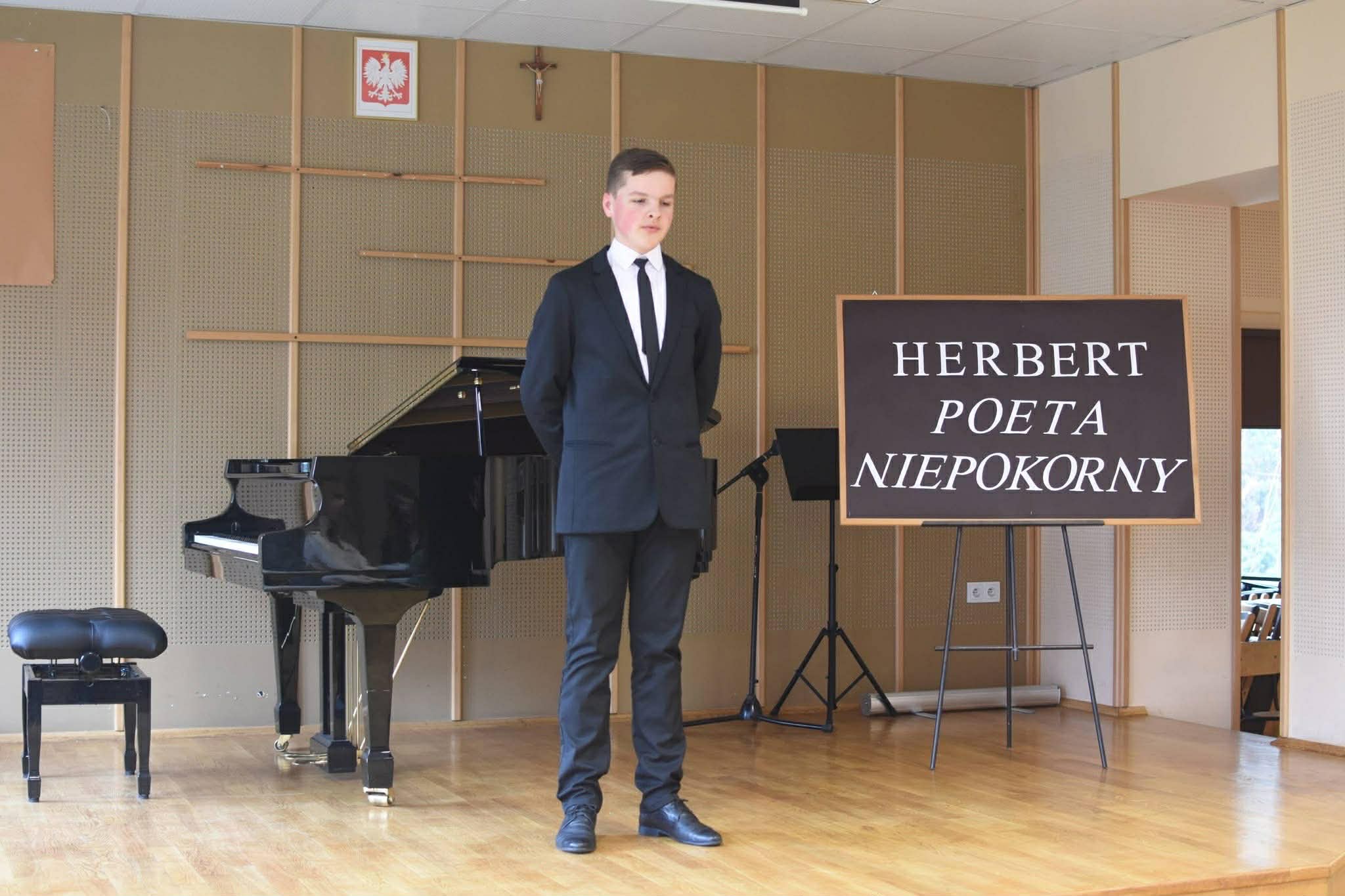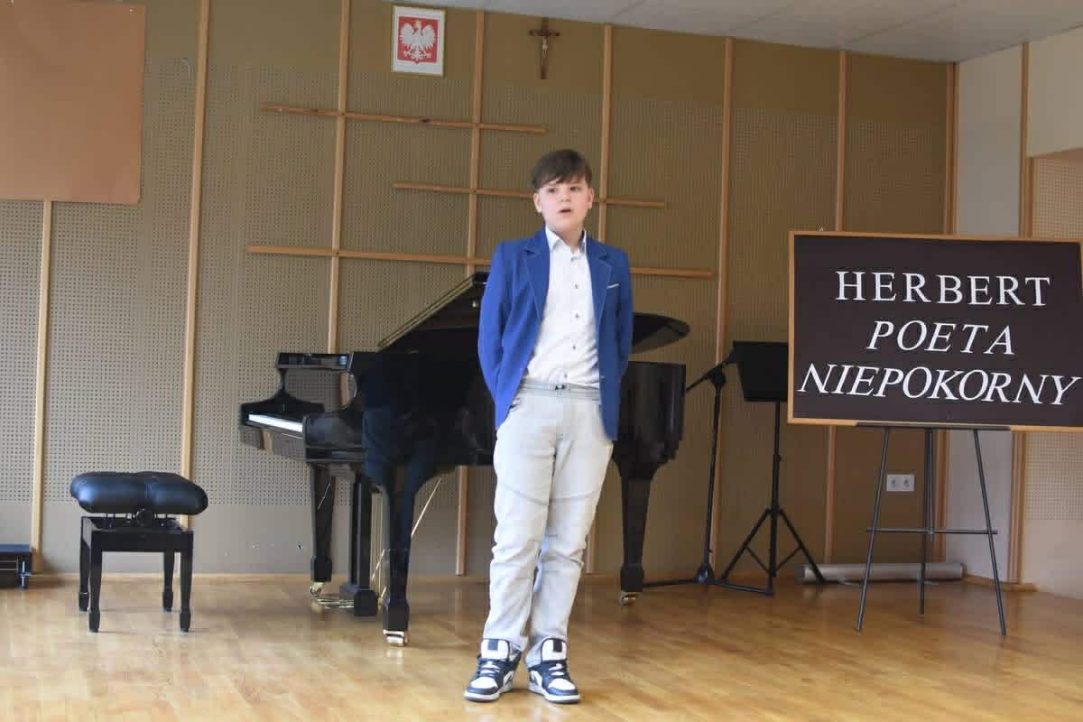 Aktualności 33 31-03-2026 27 marca tego roku w Publicznej Szkole Podstawowej w Trzcianie odbył się Konkurs Recytatorski pt. Zbigniew Herbert - poeta niepokorny. Naszą szkołę reprezentowali Julian Kurczak uczeń klasy siódmej oraz Jakub Pławecki uczeń klasy ósmej. Recytowali po dwa teksty.Celem konkursu było:popularyzowanie literatury pięknej,rozwijanie uzdolnień twórczych i doskonalenie umiejętności recytatorskich,rozbudzanie wrażliwości na piękno poezji oraz upowszechnianie kultury żywego słowa,zachęcanie do występów przed publicznością,uczenie rywalizacji w przyjaznej atmosferze.Niestety nie udało się nam zająć miejsca na podium, ale Julian Kurczak otrzymał wyróżnienie. Wielkie gratulacje!Od lat jurorami konkursu są: profesor Monika Rasiewicz - polska aktorka teatralna, filmowa, pedagog oraz reżyserka związana z krakowskimi scenami, w tym Teatrem Bagatela i Teatrem im. Słowackiego. Wykładowczyni akademicka, specjalizująca się w sztuce słowa - oraz Joanna Grandys - absolwentka Szkoły Wokalno-Aktorskiej w Krakowie związana z Operą Krakowską, prowadząca zajęcia wokalno-aktorskie i rytmiczne dla dzieci oraz zajęcia z zakresu emisji i impostacji głosu, dykcji i zadań aktorskich, analizy i interpretacji wiersza oraz utworów wokalnych. Ukończyła Studium Terapii przez Sztukę przy Teatrze Ludowym w Krakowie.Zwycięzcy za włożony trud zostali nagrodzeni dyplomami oraz nagrodami rzeczowymi.Pozostali uczestnicy otrzymali dyplomy i drobne upominki. Serdecznie im gratulujemy i zachęcamy do udziału w kolejnej edycji konkursu. 0.0 Ostatnia modyfikacja: wtorek 31 marca 2026 20:23 Powiązane artykuły: Strażacka wiedza w praktyce – etap powiatowy OTWP 2026 Gminny Turniej Piłki Ręcznej chłopców klas 4-6 "Igrzyska Dzieci" 2026 I POWIATOWY KONKURS W UDZIELANIU PIERWSZEJ POMOCY PRZEDMEDYCZNEJ Gminny Konkurs Ortograficzny 2026 Wielkanoc 2026 - życzenia Nasze utalentowane laureatki Gminnego Konkursu Piosenki Anglojęzycznej „I can sing" Apel Wielkanocny 2026 OGÓLNOPOLSKI STRAŻACKI KONKURS PLASTYCZNY 2026 Młodzi strażacy w akcji! Sukcesy w konkursie „Młodzież Zapobiega Pożarom" Igrzyska Młodzieży Gminny Turniej Piłki Ręcznej Chłopców 2026 0