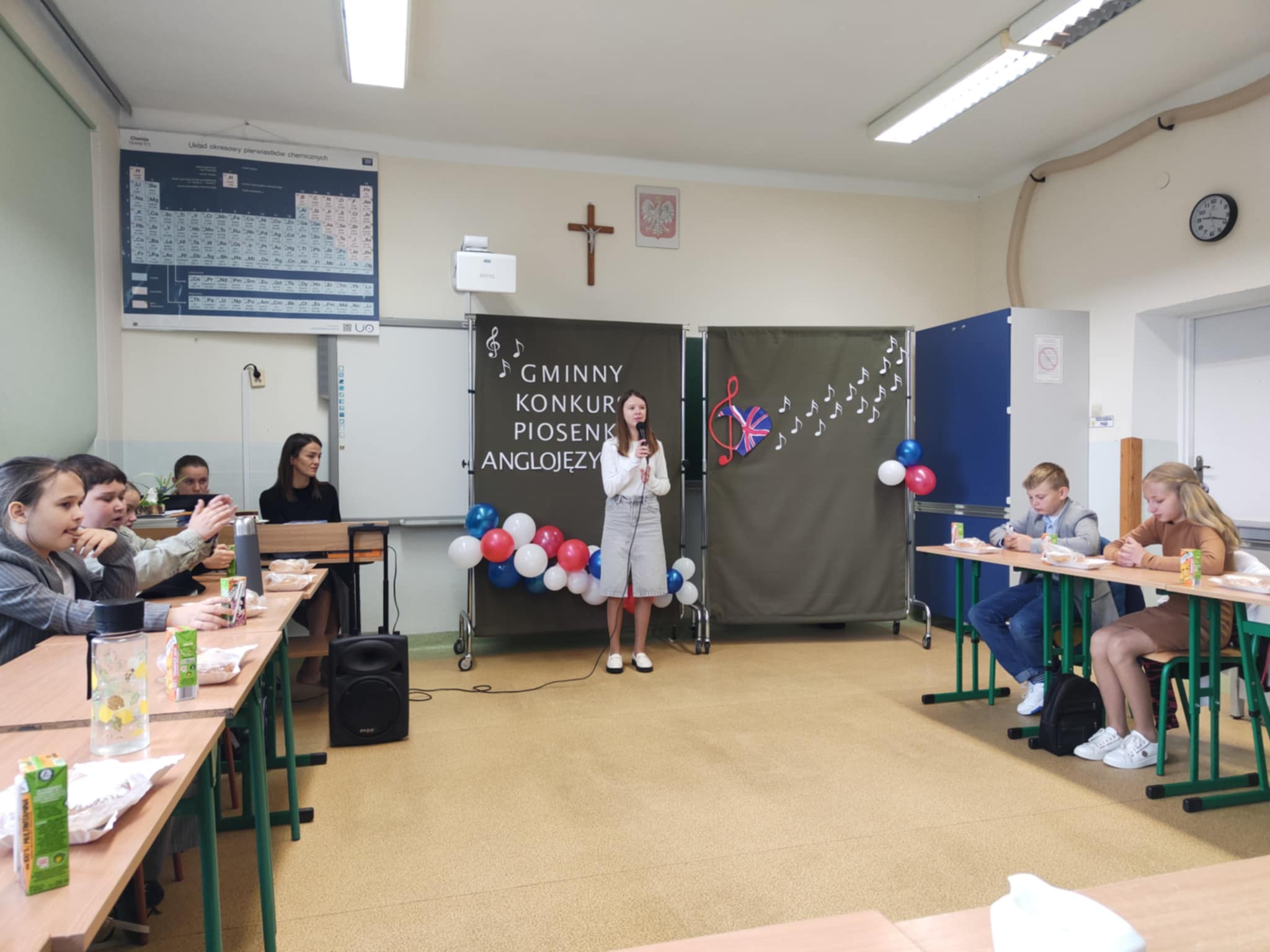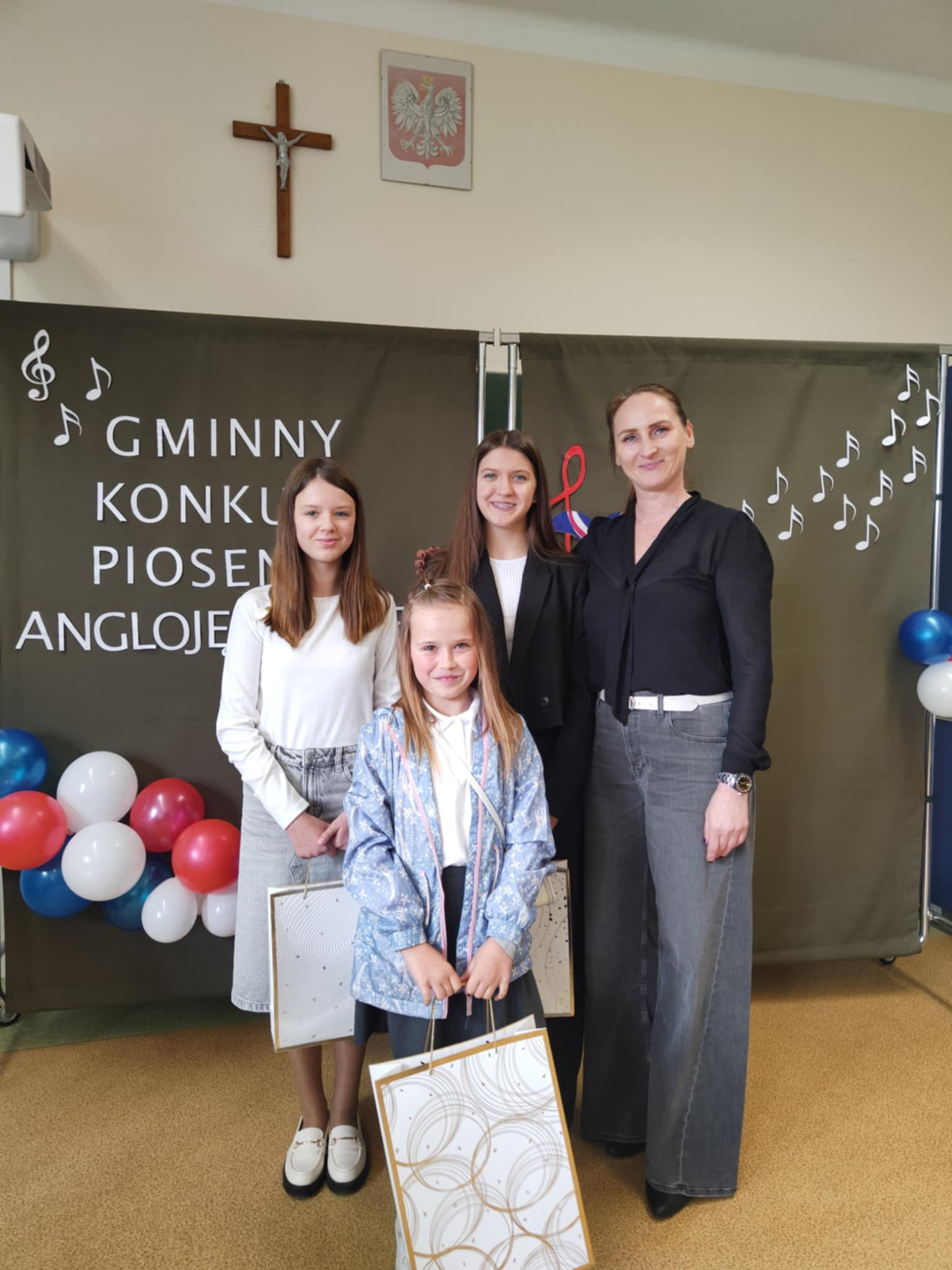 Aktualności 188 19-05-2025 W dniu dzisiejszym uczennice naszej szkoły, znakomite wokalistki, wzięły udział w Gminnym Konkursie Piosenki Angielskiej „I can sing”, którego organizatorem była PSP w Kierlikówce. Tegoroczna edycja dostarczyła wielu emocji i niezapomnianych wrażeń. Uczestnicy rywalizowali w różnych kategoriach wiekowych, prezentując swoje umiejętności wokalne, interpretacyjne i językowe. Poziom konkursu był wyjątkowo wysoki, a jury miało niełatwe zadanie wybierając najlepszych spośród utalentowanych wykonawców. Nasze uczennice wykazały się charyzmą sceniczną i doskonałą techniką wokalną, czym zdobyły serca słuchaczy i jury uzyskując bardzo wysokie miejsca: Kategoria klasy I-III - Alicja Trościanko zdobyła I miejsce wykonując utwór „I can do it” Kategoria klasy IV-VI – Antonina Dutka zdobyła miejsce II występując z piosenką „The Glow” Kategoria klasy VII-VIII – Malwina Chojecka miejsce I za wykonanie utworu „My heart will go on” Wszyscy uczestnicy konkursu pokazali, że muzyka jest nie tylko pasją, ale też sposobem na wyrażenie siebie. Gratulujemy zwycięzcom oraz wszystkim uczestnikom, którzy swoją odwagą i talentem przyczynili się do stworzenia niezapomnianej atmosfery tego konkursu! 0.0 Ostatnia modyfikacja: -/- Powiązane artykuły: Gminny Turniej Piłki Ręcznej chłopców klas 4-6 "Igrzyska Dzieci" 2026 I POWIATOWY KONKURS W UDZIELANIU PIERWSZEJ POMOCY PRZEDMEDYCZNEJ Gminny Konkurs Ortograficzny 2026 Nasze utalentowane laureatki Gminnego Konkursu Piosenki Anglojęzycznej „I can sing" Konkurs Recytatorski 2026 OGÓLNOPOLSKI STRAŻACKI KONKURS PLASTYCZNY 2026 Młodzi strażacy w akcji! Sukcesy w konkursie „Młodzież Zapobiega Pożarom" Igrzyska Młodzieży Gminny Turniej Piłki Ręcznej Chłopców 2026 Gminny Turniej Tenisa Stołowego 2026 Wyniki konkursu Alfik Matematyczny 2025 0
