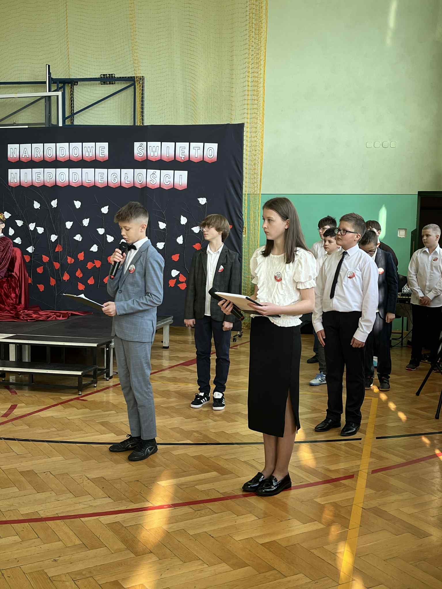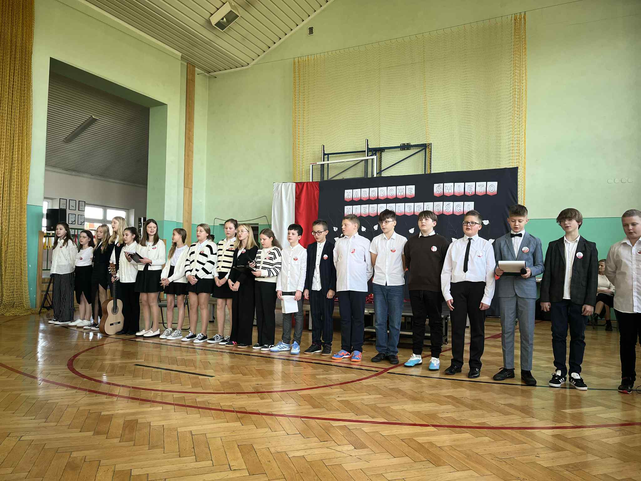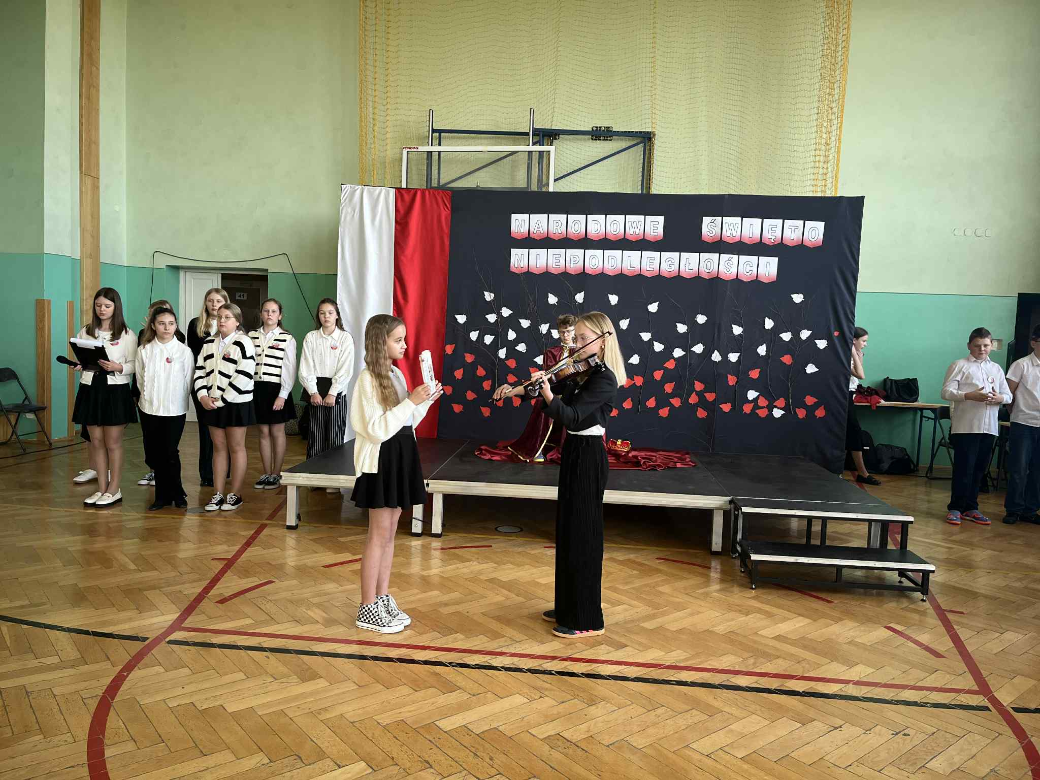 Aktualności 88 7-11-2025 Tegoroczne Święto Niepodległości uczciliśmy pod hasłem “Za tę wolność …” Uczniowie klasy VI przygotowali przedstawienie teatralne pt.: “To nie była bajka”, w którym to zarysowano dzieje Polski, kiedy to nasze państwo zniknęło z map swiata na 123 lata. I mimo, że to nie była bajka, zupełnie jak w bajce Polska powróciła na mapy Europy i świata, jak za dotknięciem czarodziejskiej różdżki, odzyskała status suwerennego, niepodległego państwa. A 11 listopada stał sie dla Polaków dniem upamiętniającym odzyskanie przez Polskę wolności. Nasza uroczystość została uświetniona przez piękne utwory muzyczne, śpiew, grę na instrumentach, wiersze i przede wszystkim piękną postawę, którą dodatkowo podkreśliły galowe stroje i patriotyczne przypinki. 0.0 Ostatnia modyfikacja: -/- Powiązane artykuły: Udział w ogólnopolskiej akcji BohaterON - 2025/2026 Olimpiada Mitologiczna 2025 Wyniki konkursu Alfik Matematyczny 2025 Boże Narodzenie 2025 - życzenia Akcja charytatywna „Paczuszka dla Maluszka" 2025 Jasełka i Wigilia - 2025 „Mała książka – wielki człowiek" - 2025 Spotkanie z podróżnikiem - Indie 2025 Paczuszka dla Maluszka - 2025 OTRZĘSINY KLASY 4 I ZABAWA ANDRZEJKOWA – 26.11.2025r. 0