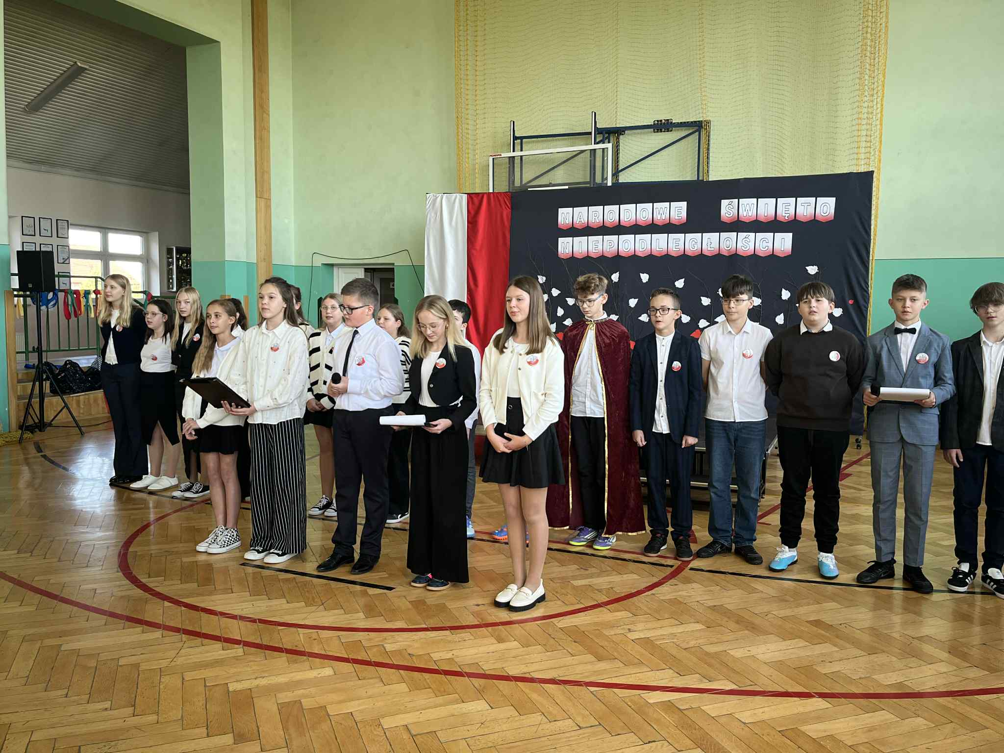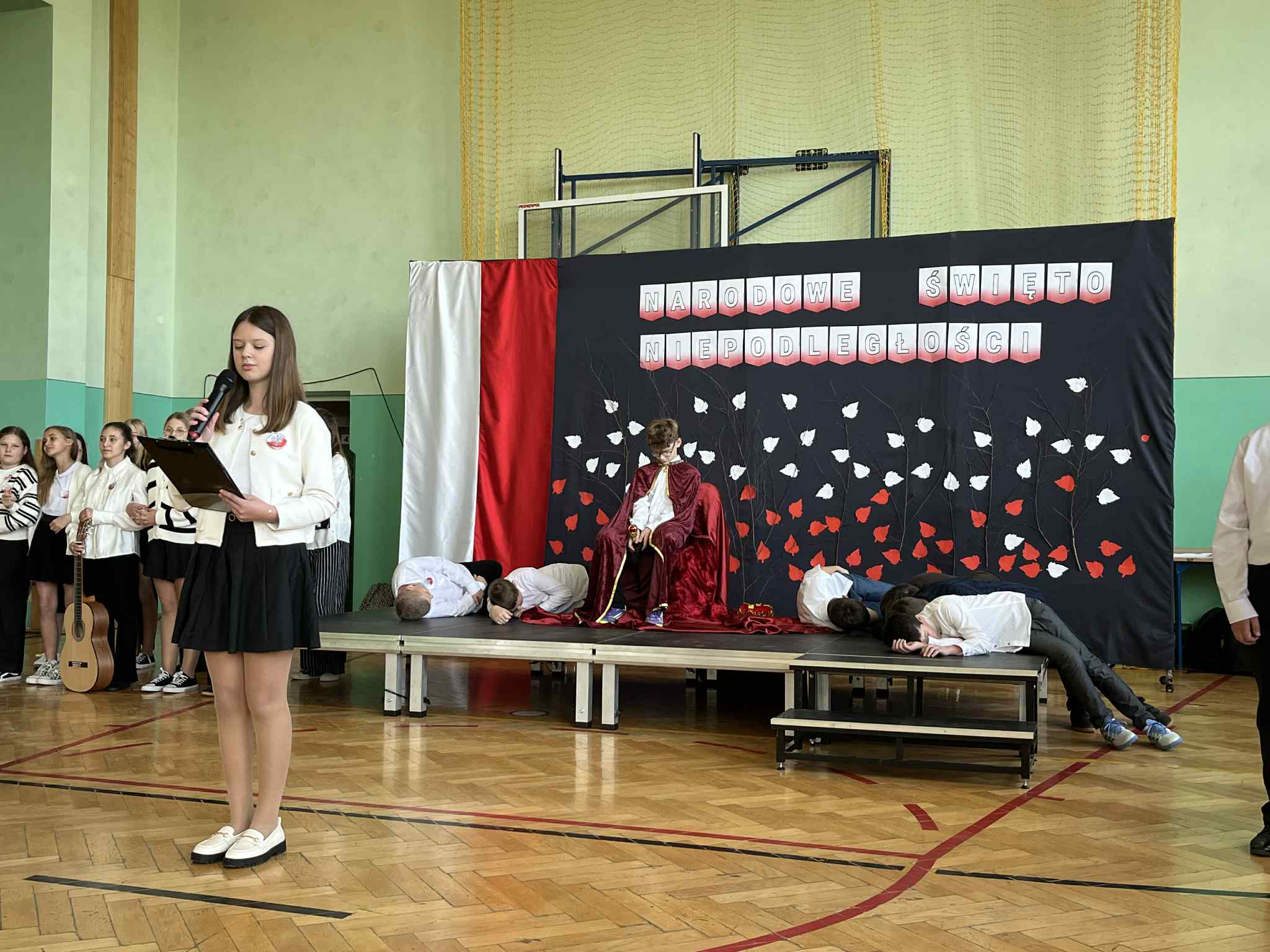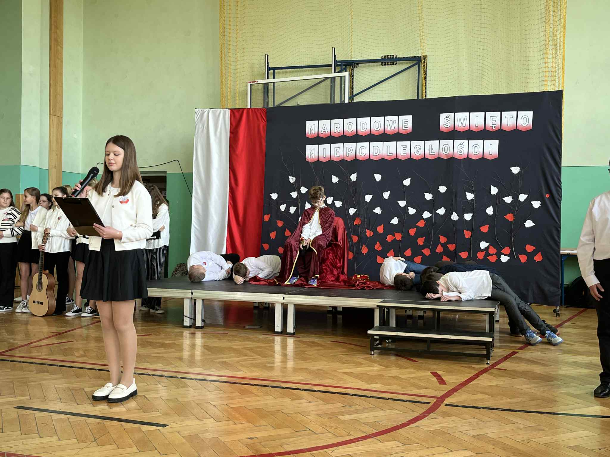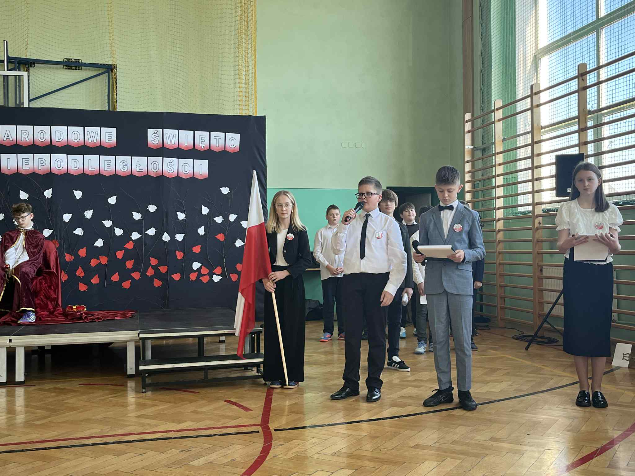 Aktualności 88 7-11-2025 Tegoroczne Święto Niepodległości uczciliśmy pod hasłem “Za tę wolność …” Uczniowie klasy VI przygotowali przedstawienie teatralne pt.: “To nie była bajka”, w którym to zarysowano dzieje Polski, kiedy to nasze państwo zniknęło z map swiata na 123 lata. I mimo, że to nie była bajka, zupełnie jak w bajce Polska powróciła na mapy Europy i świata, jak za dotknięciem czarodziejskiej różdżki, odzyskała status suwerennego, niepodległego państwa. A 11 listopada stał sie dla Polaków dniem upamiętniającym odzyskanie przez Polskę wolności. Nasza uroczystość została uświetniona przez piękne utwory muzyczne, śpiew, grę na instrumentach, wiersze i przede wszystkim piękną postawę, którą dodatkowo podkreśliły galowe stroje i patriotyczne przypinki. 0.0 Ostatnia modyfikacja: -/- Powiązane artykuły: Udział w ogólnopolskiej akcji BohaterON - 2025/2026 Olimpiada Mitologiczna 2025 Wyniki konkursu Alfik Matematyczny 2025 Boże Narodzenie 2025 - życzenia Akcja charytatywna „Paczuszka dla Maluszka" 2025 Jasełka i Wigilia - 2025 „Mała książka – wielki człowiek" - 2025 Spotkanie z podróżnikiem - Indie 2025 Paczuszka dla Maluszka - 2025 OTRZĘSINY KLASY 4 I ZABAWA ANDRZEJKOWA – 26.11.2025r. 0