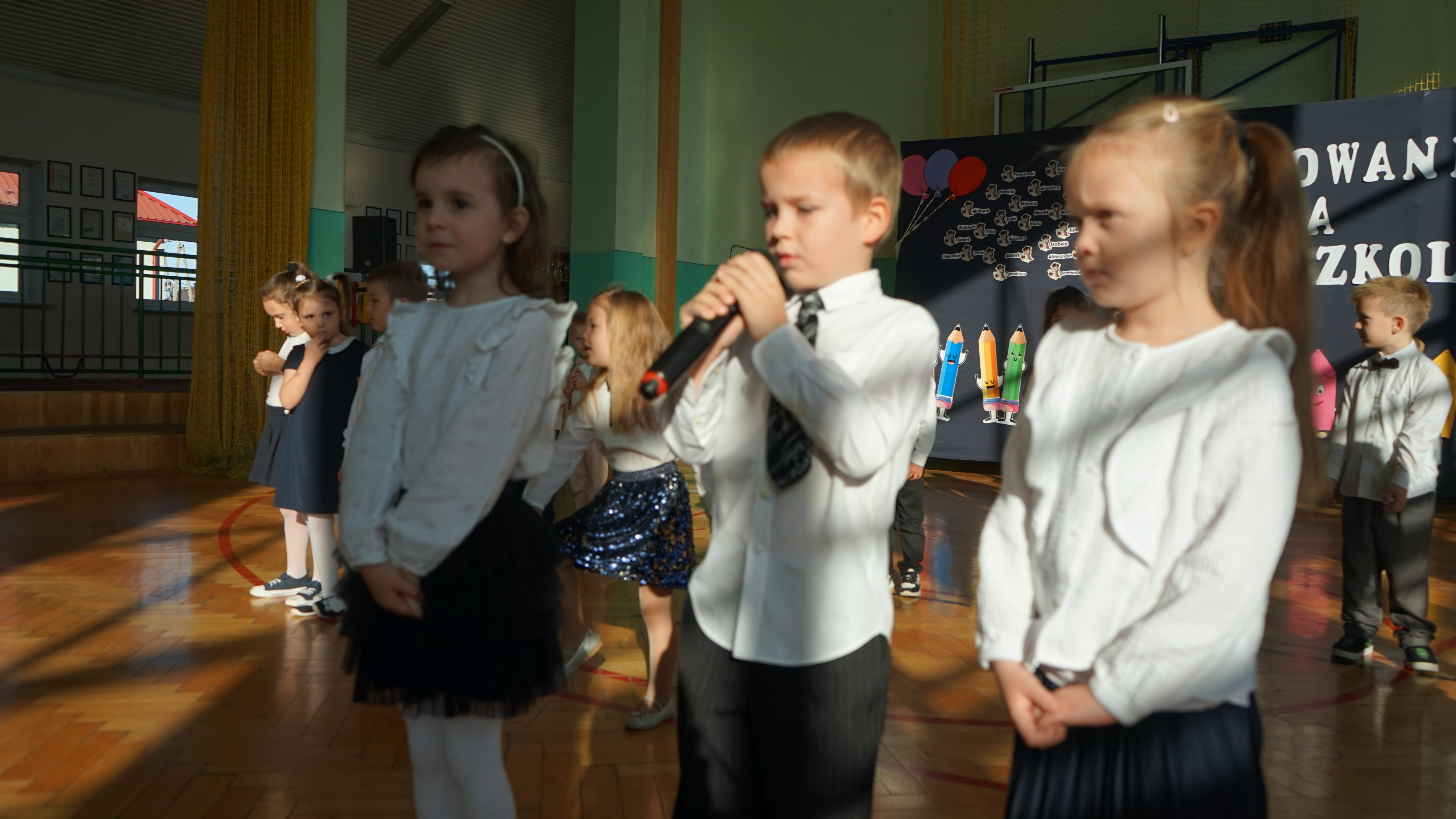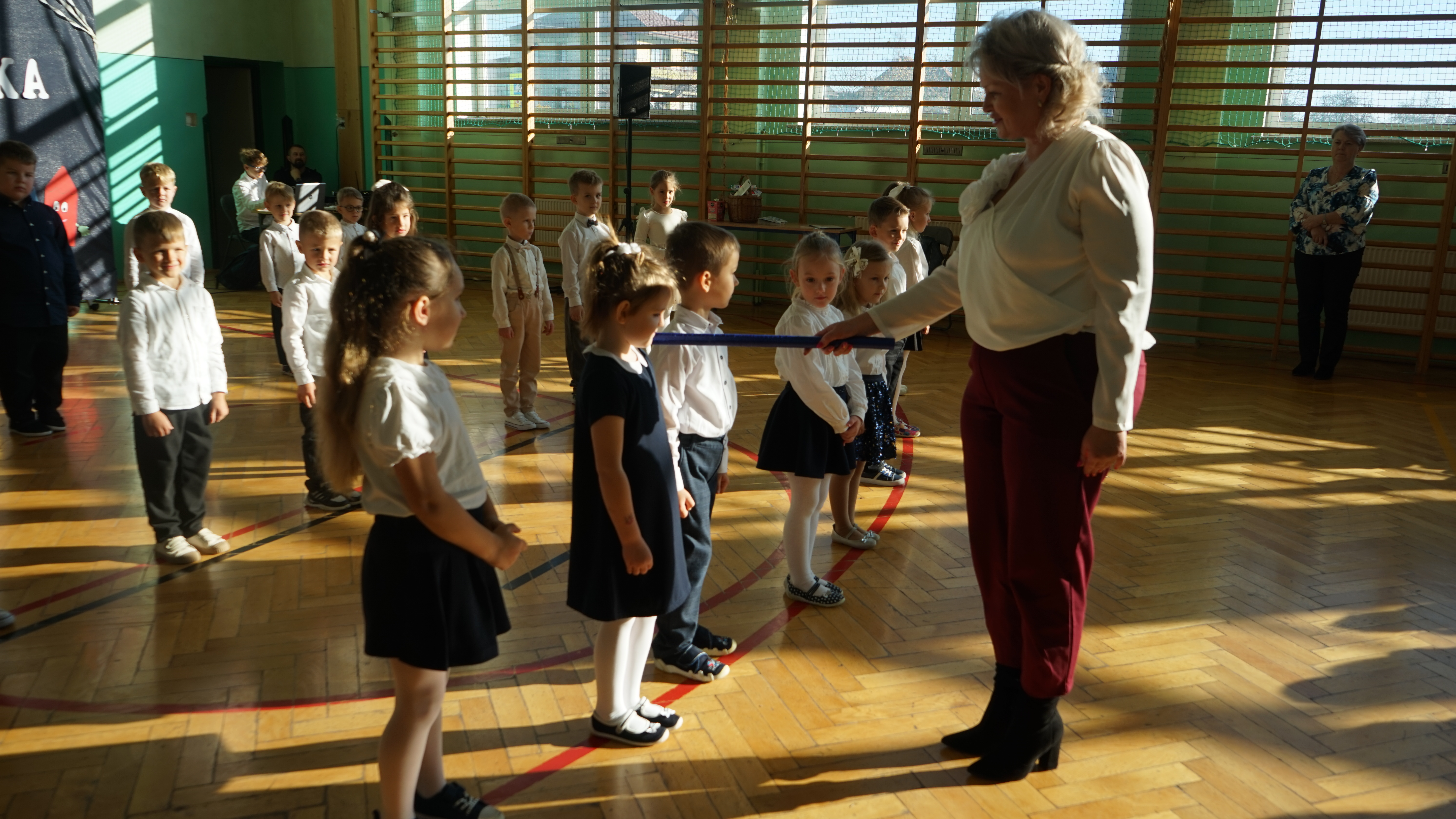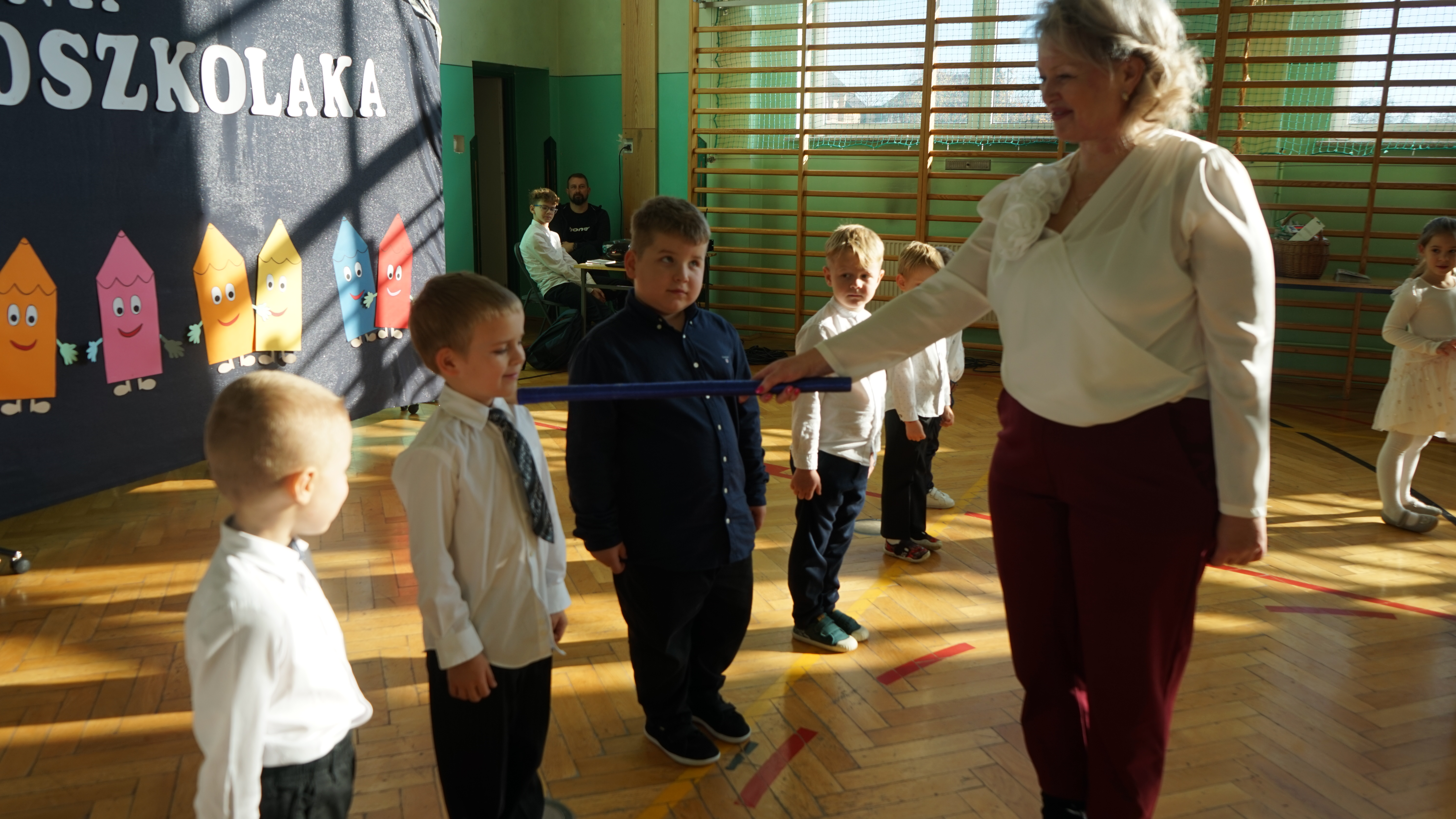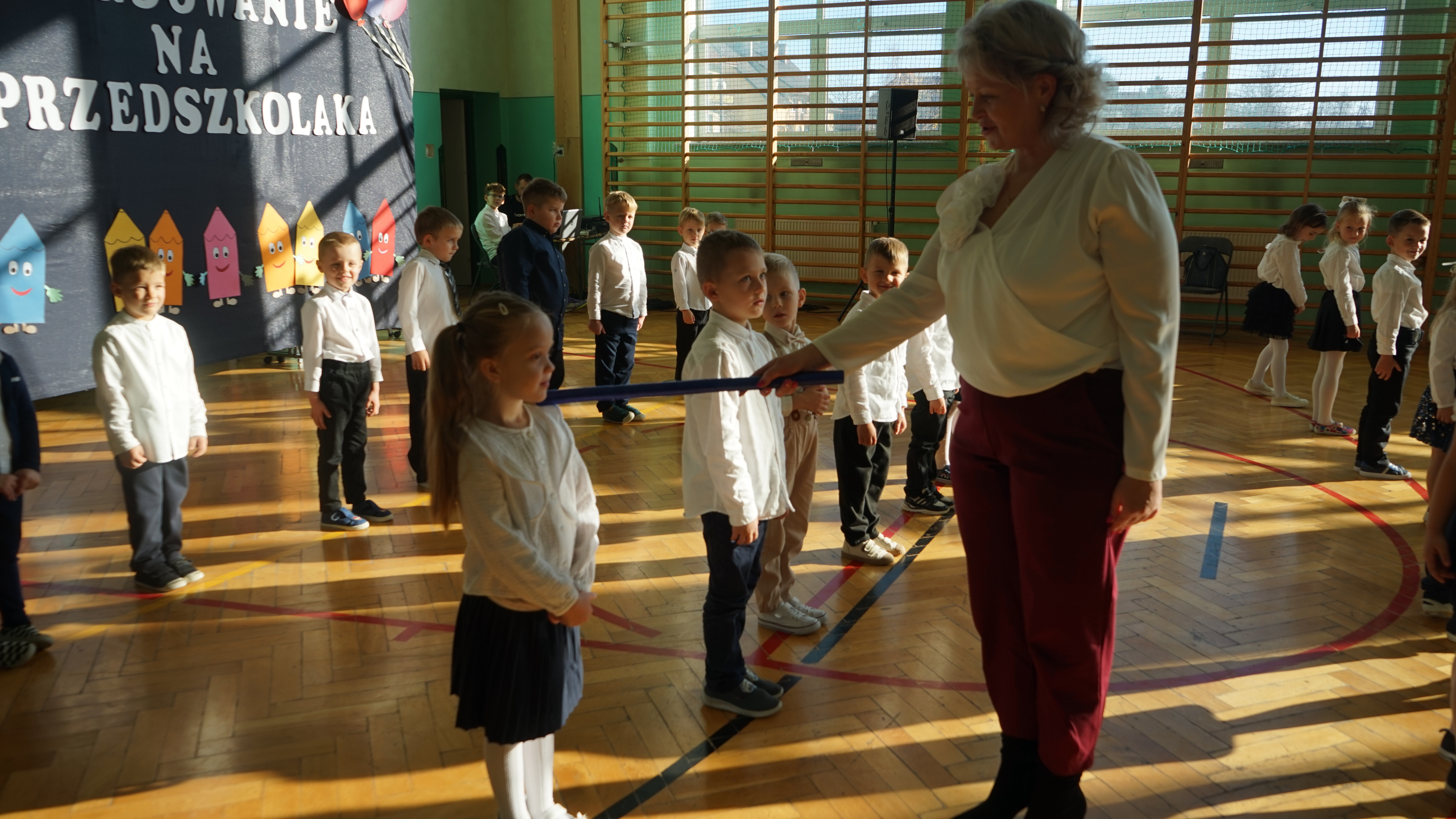 Aktualności 192 7-11-2025 5 listopada 2025 roku w naszej szkole odbyła się uroczystość Pasowania na przedszkolaka dzieci z oddziału przedszkolnego. Jest to bardzo ważne i wyjątkowe wydarzenie w życiu zarówno dzieci jak i ich rodziców, a także nauczycieli. Zaproszeni goście – pani dyrektor Anna Dziedzic, przewodnicząca Rady Rodziców – pani Katarzyna Mucha, proboszcz parafii – ksiądz Sławomir Sosnowski, rodzice dzieci oraz koledzy i koleżanki z klas I, II, III mogli podziwiać umiejętności wokalne, recytatorskie, a także taneczne naszych przedszkolaków. Po części artystycznej dzieci złożyły uroczyste ślubowanie, a pani dyrektor dokonała pasowania. Dla przedszkolaków było to wielkie przeżycie, a dla rodziców powód do dumy i zadowolenia ze swoich pociech. Najmilszą chwilą dla dzieci było wręczenie pamiątkowych dyplomów i upominków przygotowanych przez panią dyrektor, Radę Rodziców oraz rodziców dzieci przedszkolnych. Uroczystość została zakończona sesją fotograficzną oraz słodkim poczęstunkiem przygotowanym przez rodziców. Życzymy dzieciom uśmiechów i radości z bycia przedszkolakiem. Odkrywania swoich zainteresowań, poznawania nowych przyjaciół, zdobywania nowych umiejętności. Niech każdy dzień będzie dla was wyjątkowy. 0.0 Ostatnia modyfikacja: pitek 07 listopada 2025 19:20 Powiązane artykuły: Udział w ogólnopolskiej akcji BohaterON - 2025/2026 Olimpiada Mitologiczna 2025 Wyniki konkursu Alfik Matematyczny 2025 Boże Narodzenie 2025 - życzenia Akcja charytatywna „Paczuszka dla Maluszka" 2025 Jasełka i Wigilia - 2025 „Mała książka – wielki człowiek" - 2025 Spotkanie z podróżnikiem - Indie 2025 Paczuszka dla Maluszka - 2025 OTRZĘSINY KLASY 4 I ZABAWA ANDRZEJKOWA – 26.11.2025r. 0