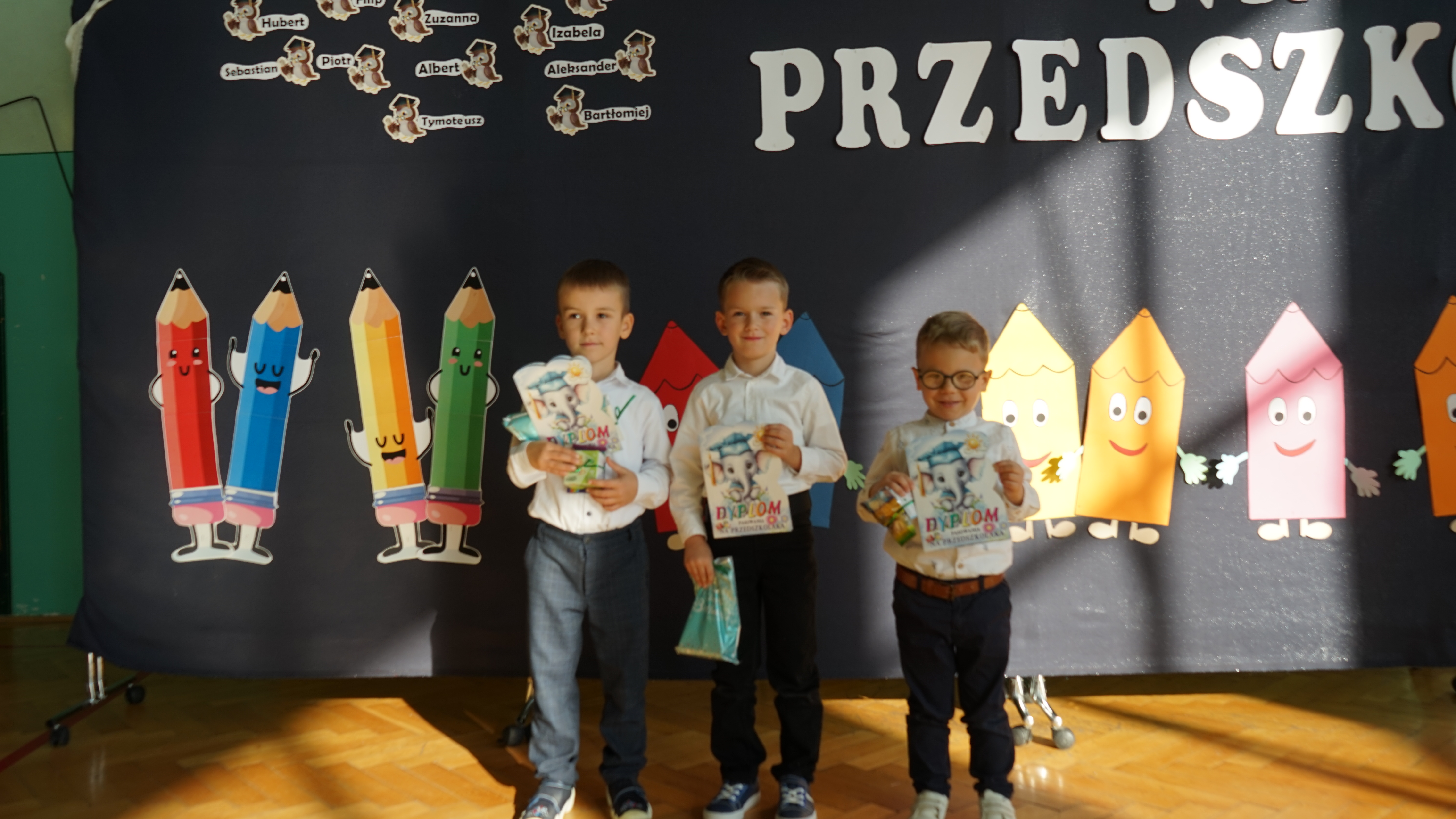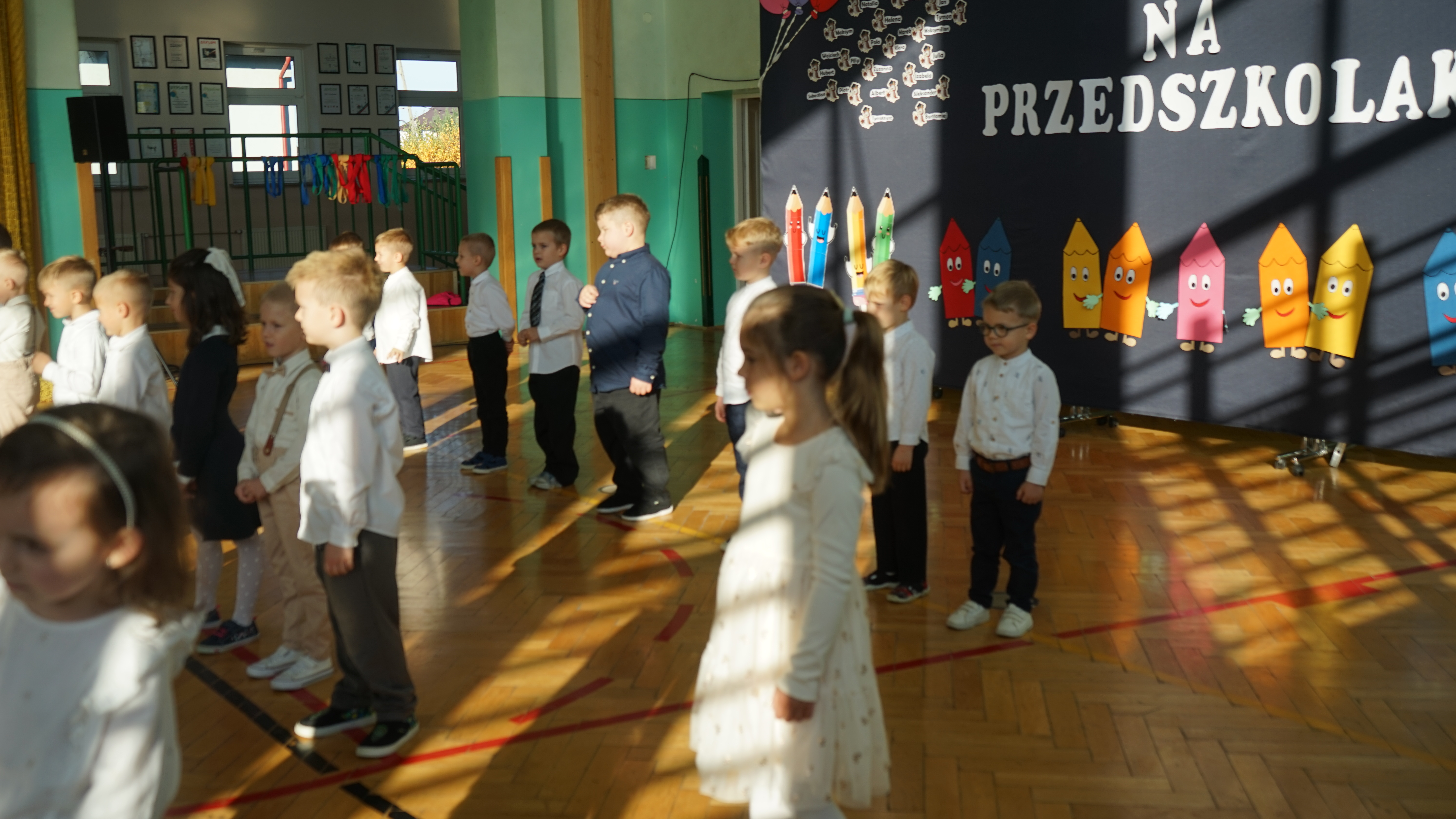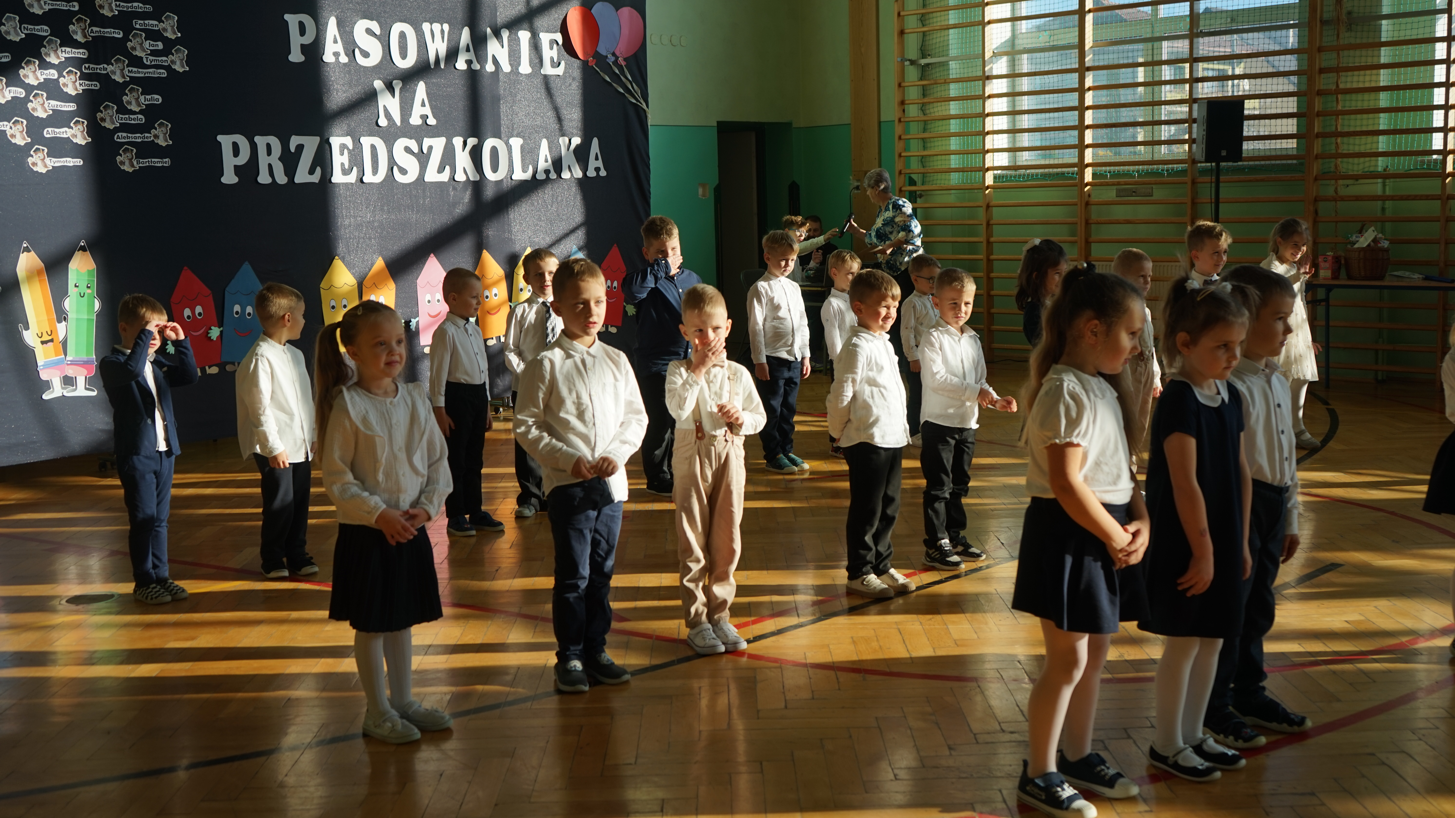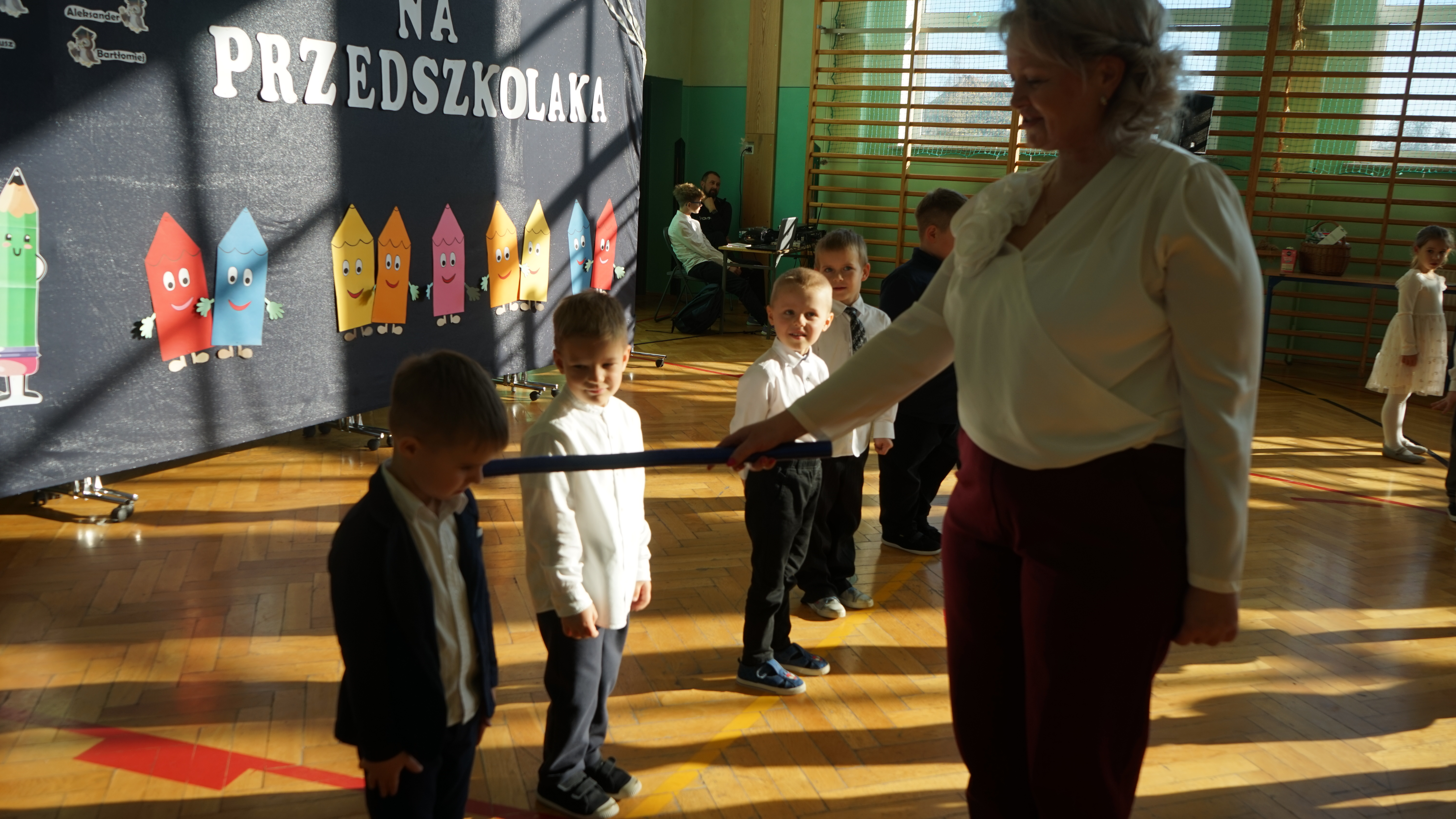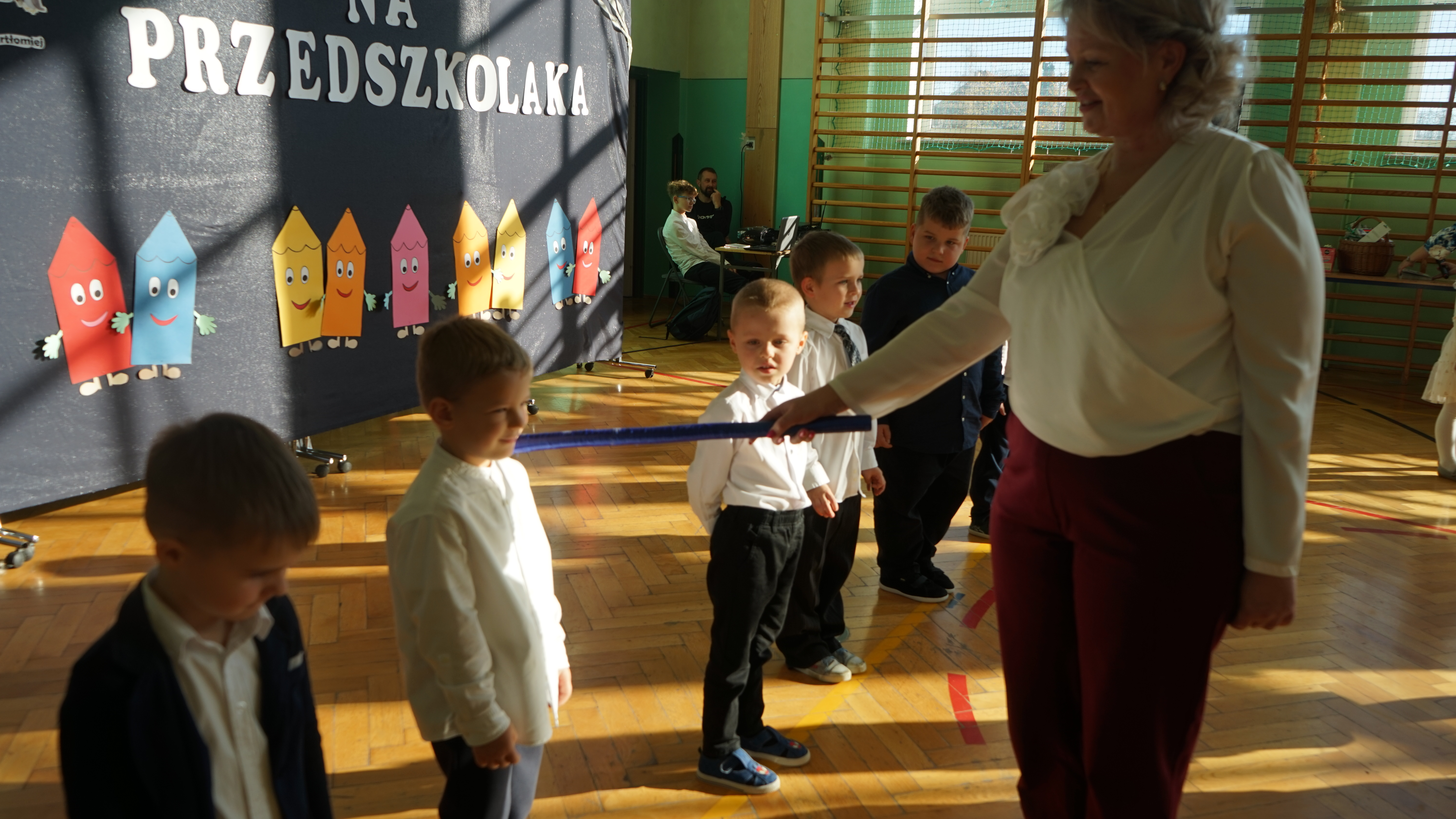 Aktualności 192 7-11-2025 5 listopada 2025 roku w naszej szkole odbyła się uroczystość Pasowania na przedszkolaka dzieci z oddziału przedszkolnego. Jest to bardzo ważne i wyjątkowe wydarzenie w życiu zarówno dzieci jak i ich rodziców, a także nauczycieli. Zaproszeni goście – pani dyrektor Anna Dziedzic, przewodnicząca Rady Rodziców – pani Katarzyna Mucha, proboszcz parafii – ksiądz Sławomir Sosnowski, rodzice dzieci oraz koledzy i koleżanki z klas I, II, III mogli podziwiać umiejętności wokalne, recytatorskie, a także taneczne naszych przedszkolaków. Po części artystycznej dzieci złożyły uroczyste ślubowanie, a pani dyrektor dokonała pasowania. Dla przedszkolaków było to wielkie przeżycie, a dla rodziców powód do dumy i zadowolenia ze swoich pociech. Najmilszą chwilą dla dzieci było wręczenie pamiątkowych dyplomów i upominków przygotowanych przez panią dyrektor, Radę Rodziców oraz rodziców dzieci przedszkolnych. Uroczystość została zakończona sesją fotograficzną oraz słodkim poczęstunkiem przygotowanym przez rodziców. Życzymy dzieciom uśmiechów i radości z bycia przedszkolakiem. Odkrywania swoich zainteresowań, poznawania nowych przyjaciół, zdobywania nowych umiejętności. Niech każdy dzień będzie dla was wyjątkowy. 0.0 Ostatnia modyfikacja: pitek 07 listopada 2025 19:20 Powiązane artykuły: Udział w ogólnopolskiej akcji BohaterON - 2025/2026 Olimpiada Mitologiczna 2025 Wyniki konkursu Alfik Matematyczny 2025 Boże Narodzenie 2025 - życzenia Akcja charytatywna „Paczuszka dla Maluszka" 2025 Jasełka i Wigilia - 2025 „Mała książka – wielki człowiek" - 2025 Spotkanie z podróżnikiem - Indie 2025 Paczuszka dla Maluszka - 2025 OTRZĘSINY KLASY 4 I ZABAWA ANDRZEJKOWA – 26.11.2025r. 0