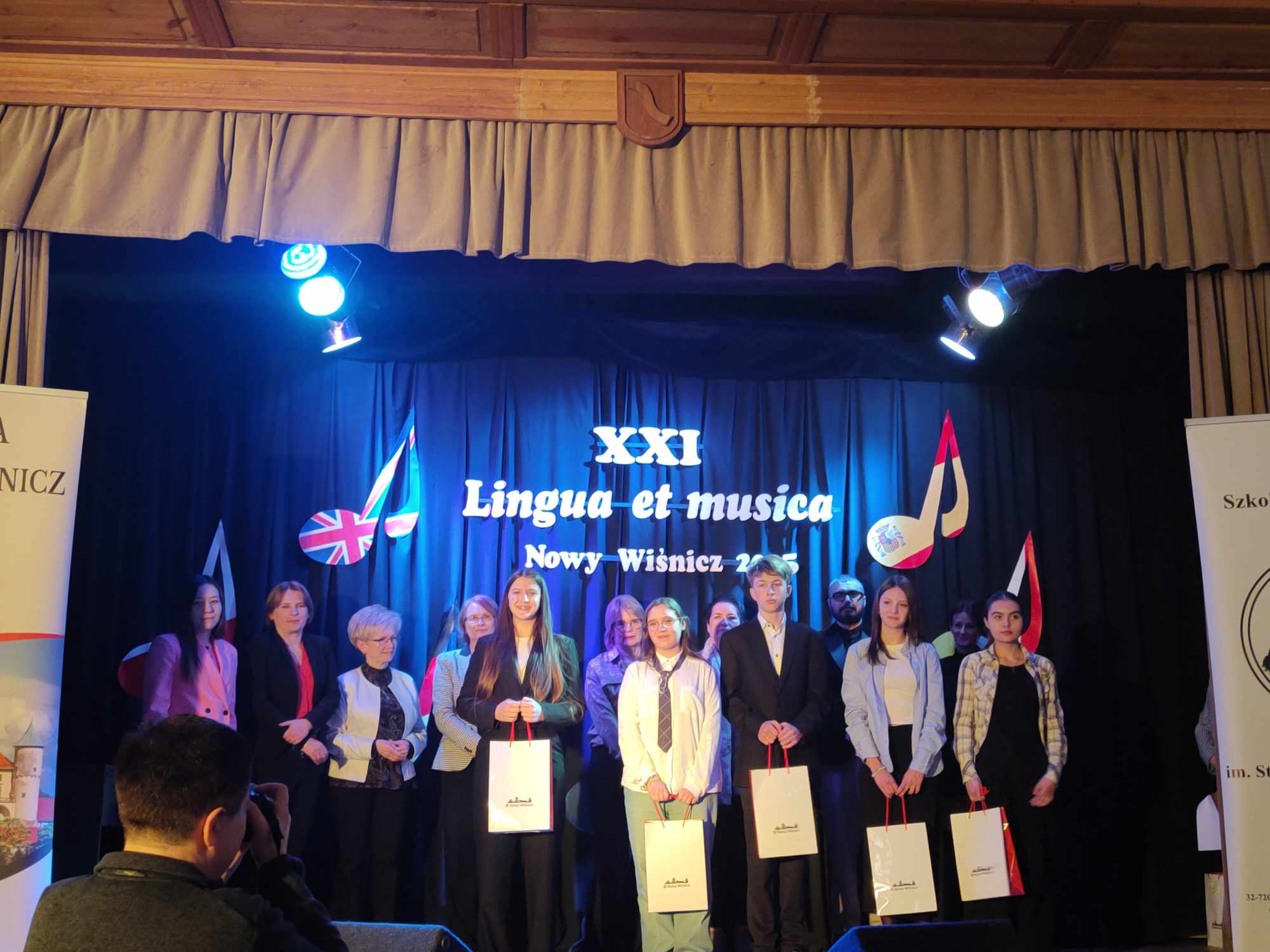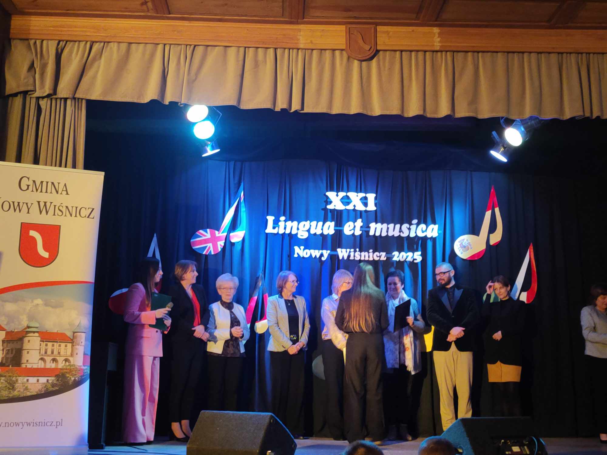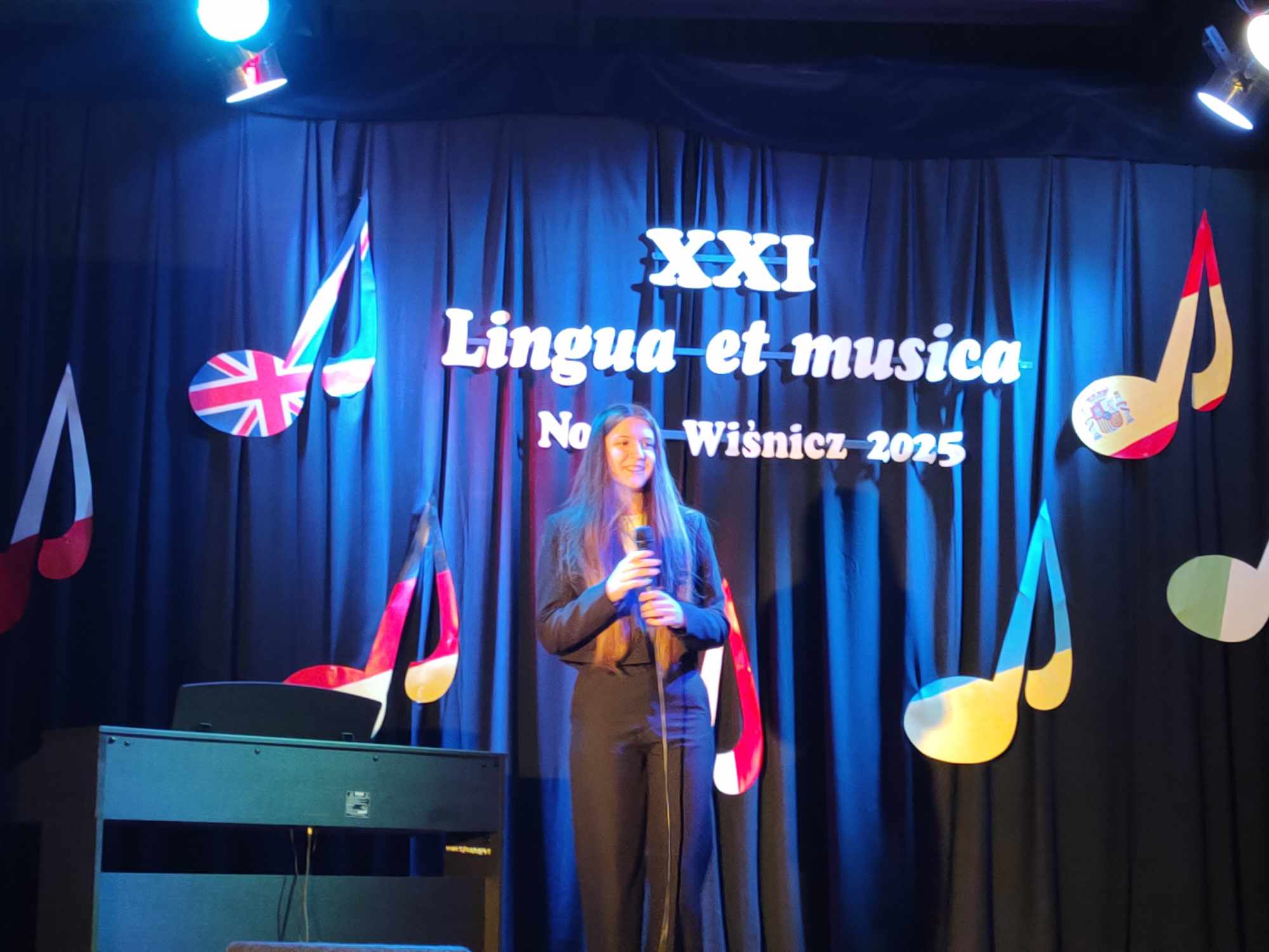Aktualności 259 9-04-2025 W niezwykle emocjonującej rywalizacji XXI Powiatowego Konkursu Piosenki Obcojęzycznej „Lingua et Musica” uczennica klasy VIII Malwina Chojecka sięgnęła po najwyższe laury, zdobywając zasłużone pierwsze miejsce. Konkurs, który odbył się 9 kwietnia br. w Miejskim Ośrodku Kultury w Nowym Wiśniczu i zgromadził 20 utalentowanych uczestników z całego powiatu, w tym solistów i zespoły, które prezentowały różnorodny repertuar i wysoki poziom artystyczny w języku angielskim, hiszpańskim i niemieckim. Malwina zachwyciła zarówno publiczność, jak i jury swoją wyjątkową interpretacją piosenki Celine Dion „My heart will go on”, którą wykonała z ogromnym zaangażowaniem i techniczną perfekcją. Jej głos, pełen emocji i ekspresji, podkreślił piękno anglojęzycznej muzyki, czym zaskarbiła sobie uznanie wszystkich zgromadzonych. Gratulacje dla Malwinki i rodziców uczennicy za ten wspaniały sukces oraz za promowanie kultury muzycznej i języka angielskiego na tak wysokim poziomie. To osiągnięcie jest dowodem na to, że talent i ciężka praca przynoszą owoce. Życzymy dalszych sukcesów na muzycznej ścieżce! 0.0 Ostatnia modyfikacja: roda 09 kwietnia 2025 14:14 Powiązane artykuły: I POWIATOWY KONKURS W UDZIELANIU PIERWSZEJ POMOCY PRZEDMEDYCZNEJ Nasze utalentowane laureatki Gminnego Konkursu Piosenki Anglojęzycznej „I can sing" Młodzi strażacy w akcji! Sukcesy w konkursie „Młodzież Zapobiega Pożarom" Gminny Festiwal Piosenki Dziecięcej "Ja po prostu mam talent" 2025 Muzyczna magia języka angielskiego – Gminny Konkurs Piosenki pełen talentów! Szkolne eliminacje Konkursu Piosenki Angielskiej Sukcesy uczniów w Gminnym Konkursie Czytelniczym Sukces Szymona Kurczaka w Małopolskim Konkursie Języka Angielskiego XXIII edycja Konkursu Piosenki "Ja po prostu mam talent" Sukces uczennicy klasy 2 w Gminnym Konkursie Czytelniczym „Z Bajem w świecie lektur" 0