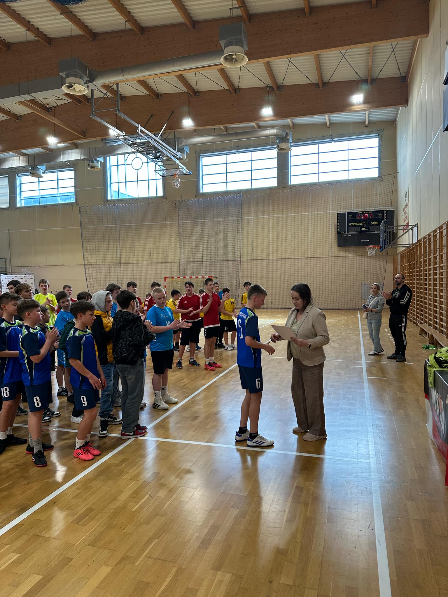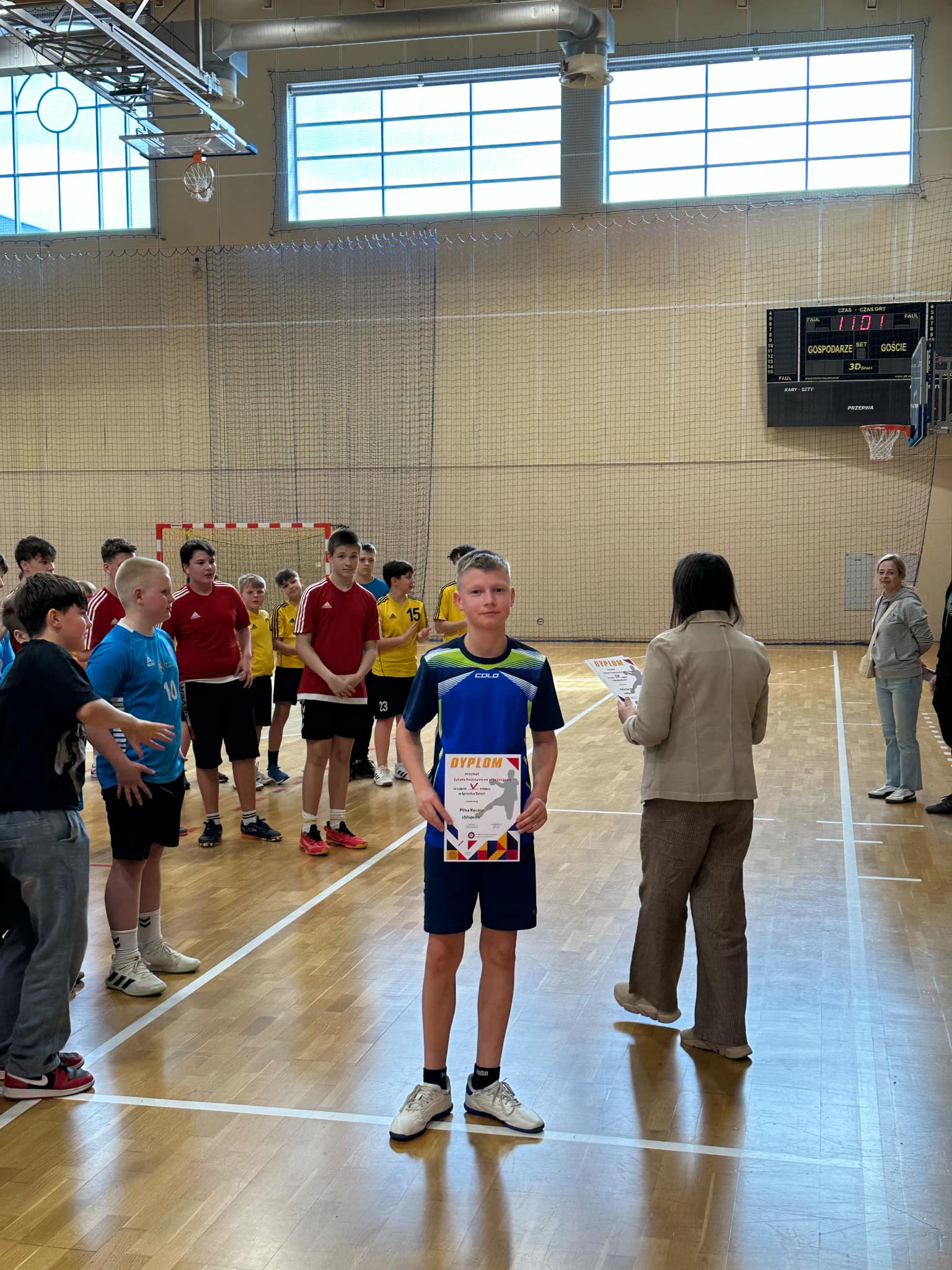 Aktualności 177 8-04-2025 8 kwietnia 2025r. na hali Widowiskowo Sportowej w Bochni, odbył się Powiatowy Turniej Piłki Ręcznej chłopców, Igrzyska Dzieci. W turnieju wzięło udział 5 drużyn z Leszczyny, Nowego Wiśnicza, Gawłówka oraz PSP2 i PSP4 z Bochni. Nasi reprezentanci po wielkich bojach ostatecznie zdobyli 5 miejsce. Skład drużyny: 1. Leon Kłósek 2. Franciszek Chojecki 3. Kasjan Burkowicz 4. Julian Kurczak 5. Hubert Kurczak 6. Igor Cebula 7. Adrian Zym Serdecznie dziękujemy zawodnikom za reprezentowanie szkoły oraz gminy Trzciana!!! 0.0 Ostatnia modyfikacja: -/- Powiązane artykuły: Strażacka wiedza w praktyce – etap powiatowy OTWP 2026 Gminny Turniej Piłki Ręcznej chłopców klas 4-6 "Igrzyska Dzieci" 2026 I POWIATOWY KONKURS W UDZIELANIU PIERWSZEJ POMOCY PRZEDMEDYCZNEJ Igrzyska Młodzieży Gminny Turniej Piłki Ręcznej Chłopców 2026 Gminne Zawody Piłki Ręcznej dziewcząt Igrzyska Młodzieży 2026 Gminny Turniej Tenisa Stołowego 2026 Udział w ogólnopolskiej akcji BohaterON - 2025/2026 Olimpiada Mitologiczna 2025 Wyniki konkursu Alfik Matematyczny 2025 Boże Narodzenie 2025 - życzenia 0