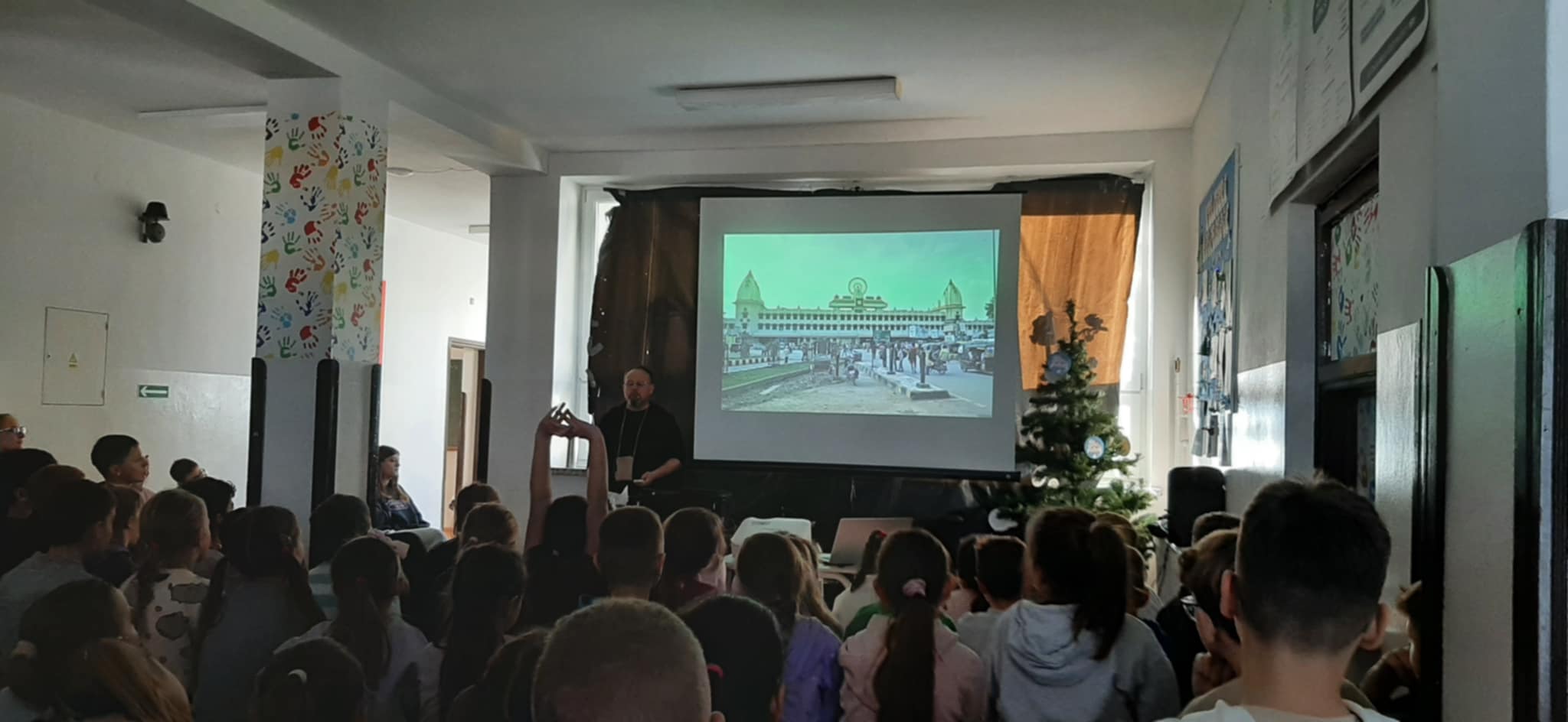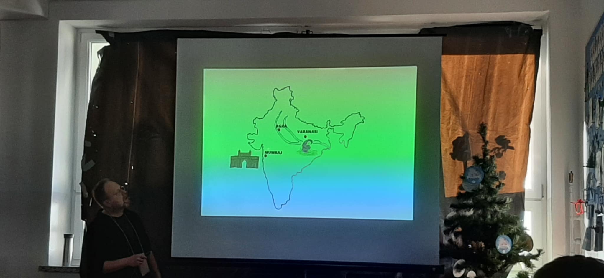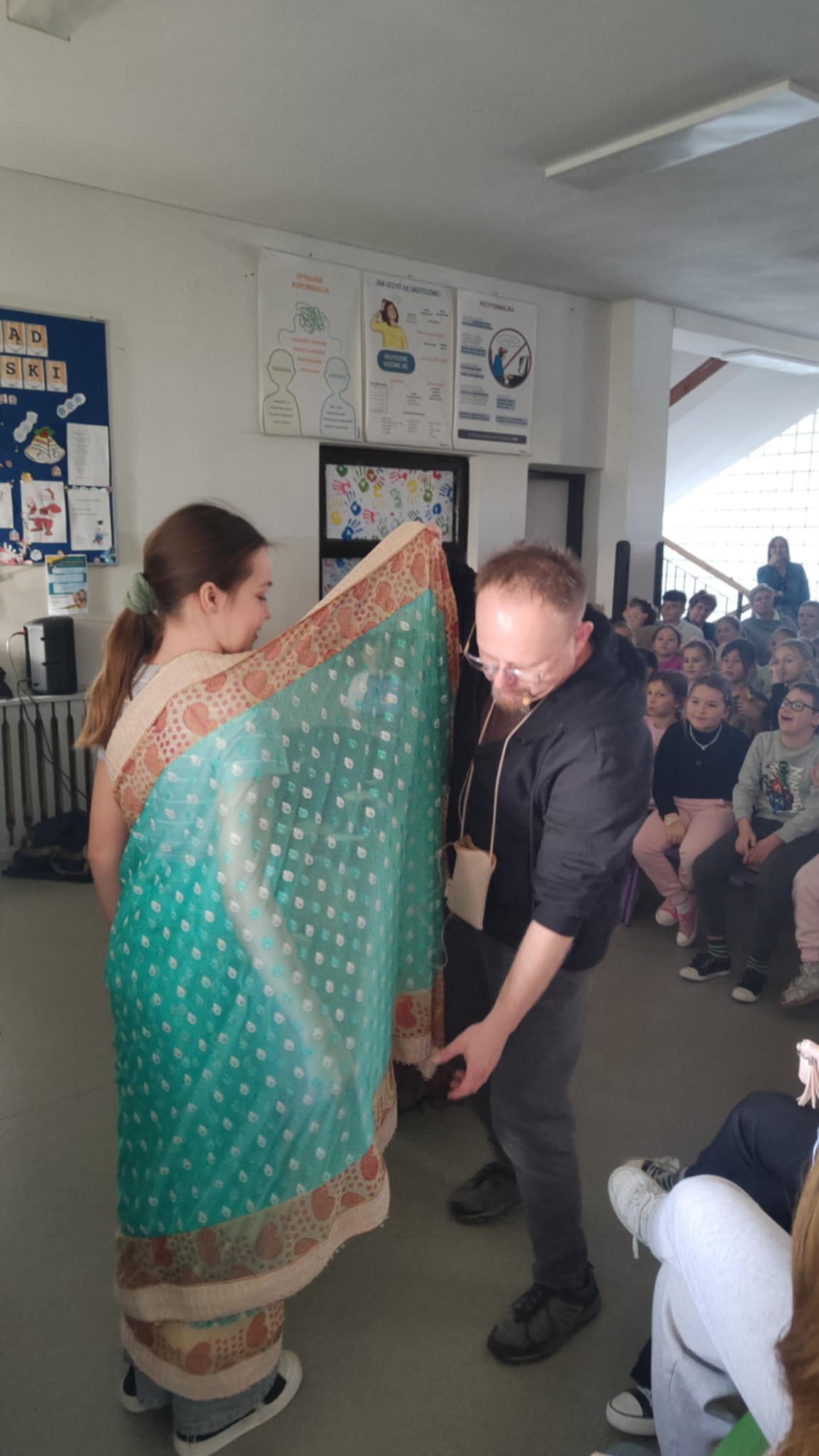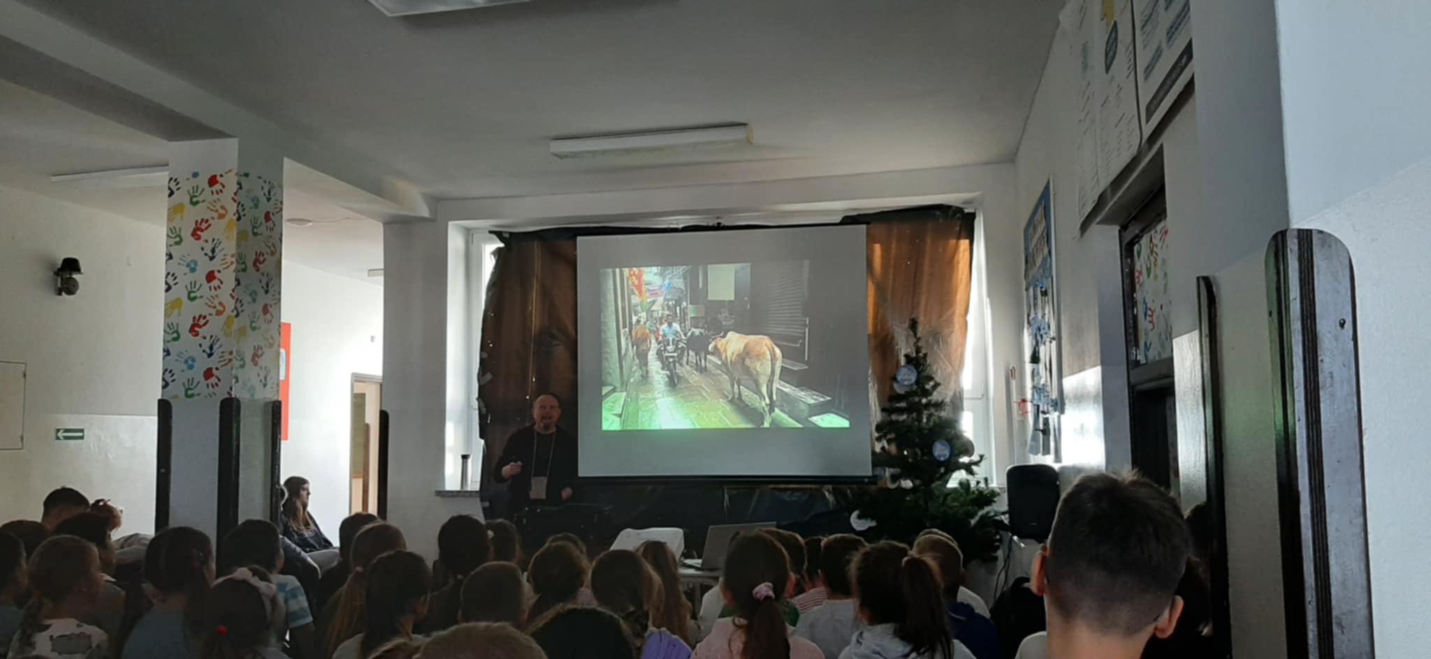 Aktualności 90 4-12-2025 Dzisiaj tj. 04 grudnia 2025 roku naszą szkołę odwiedził pan Maciej Kras z grupy podróżników Trzask. Uczniowie naszej szkoły odbyli fascynującą podróż do Indii w ramach „Spotkań z podróżnikiem”. Dzięki opowieściom pana Macieja mogliśmy wtopić się w tłumy przechodniów codziennie zalewających największe miasta Indii, odwiedzić duchową stolicę Indii – Waranasi, Złotą Świątynie Sikhów w Amritsarze, spędzić kilka chwil w świątyni Karni Mata, w której świętym zwierzęciem jest szczur. Odbyliśmy także podróż po Gangesie – świętej rzece milionów Hindusów, podziwialiśmy wspaniały Taj Mahal – według wielu najpiękniejszy pomnik miłości na Ziemi, zobaczyliśmy pełne przepychu pałace oraz dzielnicy nędzy. Pan Dariusz pokazał nam dwa oblicza tego państwa. Jedno to piękne - egzotyczne krajobrazy, wspaniałe zabytkowe miasta, bogate pałace i świątynie takie jak np. okazałe Tadż Mahal – mauzoleum z białego marmuru, Pałac Wiatrów w Dżajpurze czy Złota Świątynia Sikhów w Amritsarze. Drugie oblicze Indii to dzielnice nędzy, gdzie miliony biednych ludzi koczuje na brudnych ulicach pełnych odchodów i stert odpadów, miedzy którymi świnie wyszukują resztek jedzenia. Pan Podróżnik opowiadał o różnych zwyczajach, obyczajach i wierzeniach. Nieodłącznym elementem indyjskiej wiary, życia i codzienności są m.in. tzw. święte krowy, które mogą swobodnie poruszać się po ulicach miast, sati - rytualne samospalenia, czy przynależność do kast. Ważnym ośrodkiem kultu wyznawców hinduizmu i buddyzmu jest Waranasi - miejsce znane z rytualnych kąpieli w świętej rzece Ganges. Bardzo interesująca była opowieść o Karni Mata - świątyni szczurów w Deshnok, gdzie żyje około 20 000 tych gryzoni. Szczury traktowane są tu iście po królewsku - kapłani opiekują się nimi, karmią, a Hindusi pielgrzymują do tej świątyni, przynosząc dary i oddają cześć jej mieszkańcom. Do tej świątyni można wejść tylko boso. Jedna z uczennic miała okazję przymierzyć sari – tradycyjny strój kobiety. Dziękujemy za fantastyczną lekcję geografii. Koordynatorem spotkania była pani mgr Alicja Mucha. 0.0 Ostatnia modyfikacja: -/- Powiązane artykuły: Udział w ogólnopolskiej akcji BohaterON - 2025/2026 Olimpiada Mitologiczna 2025 Wyniki konkursu Alfik Matematyczny 2025 Boże Narodzenie 2025 - życzenia Akcja charytatywna „Paczuszka dla Maluszka" 2025 Jasełka i Wigilia - 2025 „Mała książka – wielki człowiek" - 2025 Paczuszka dla Maluszka - 2025 Spotkanie uczniów z przedstawicielem firmy Traszkan OTRZĘSINY KLASY 4 I ZABAWA ANDRZEJKOWA – 26.11.2025r. 0