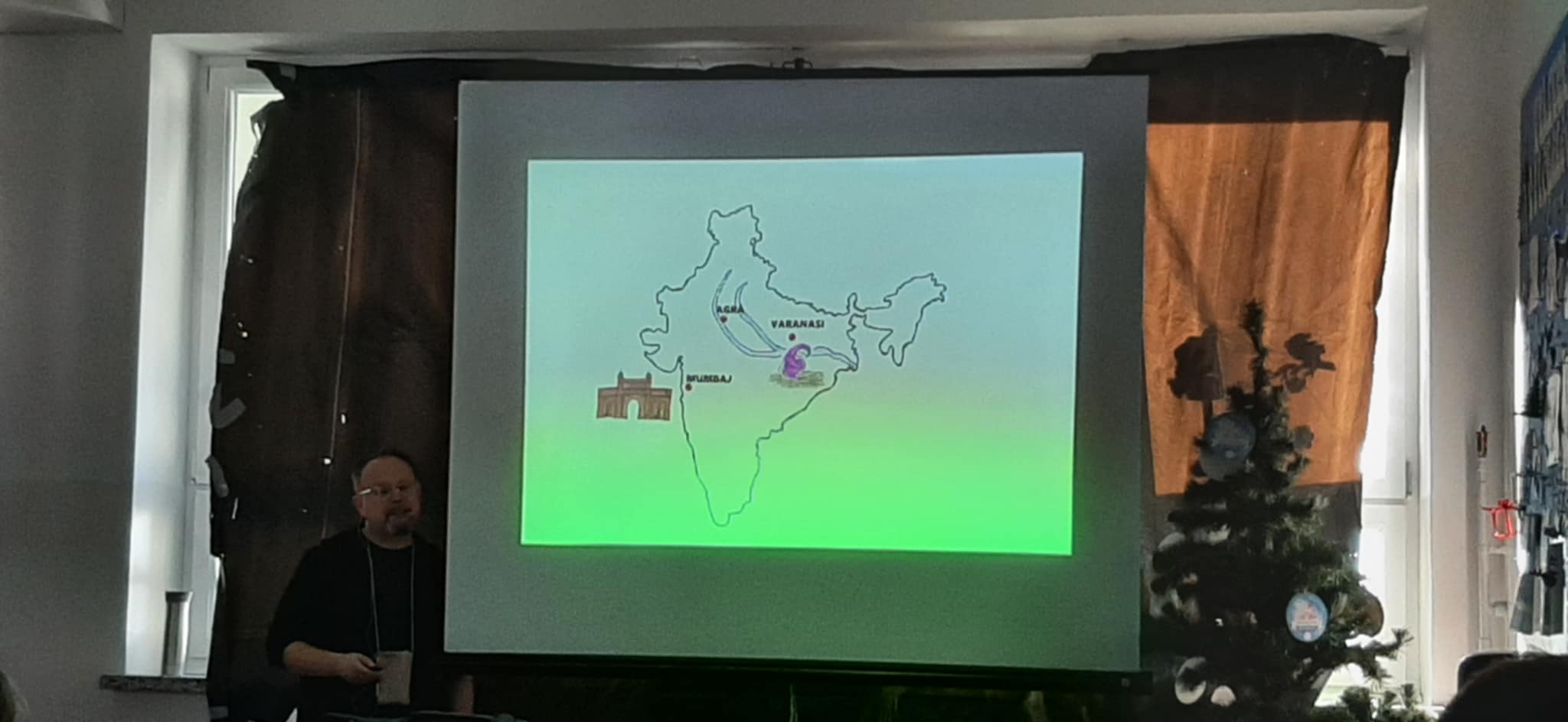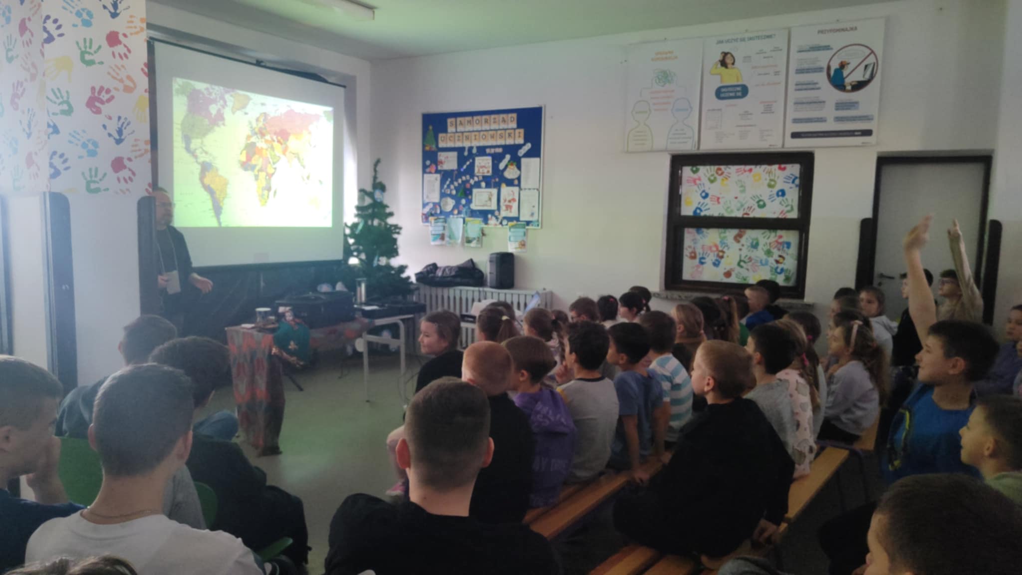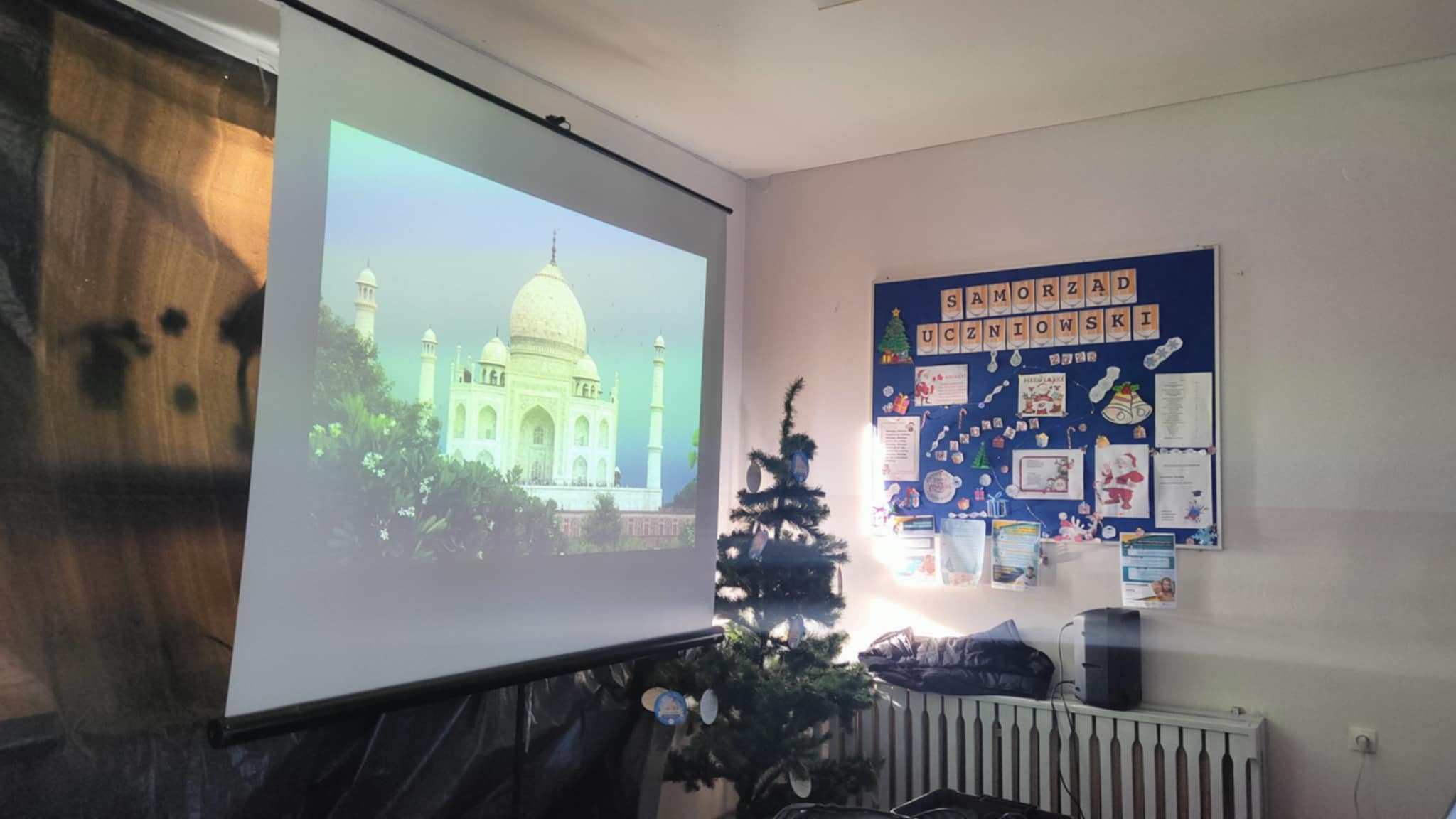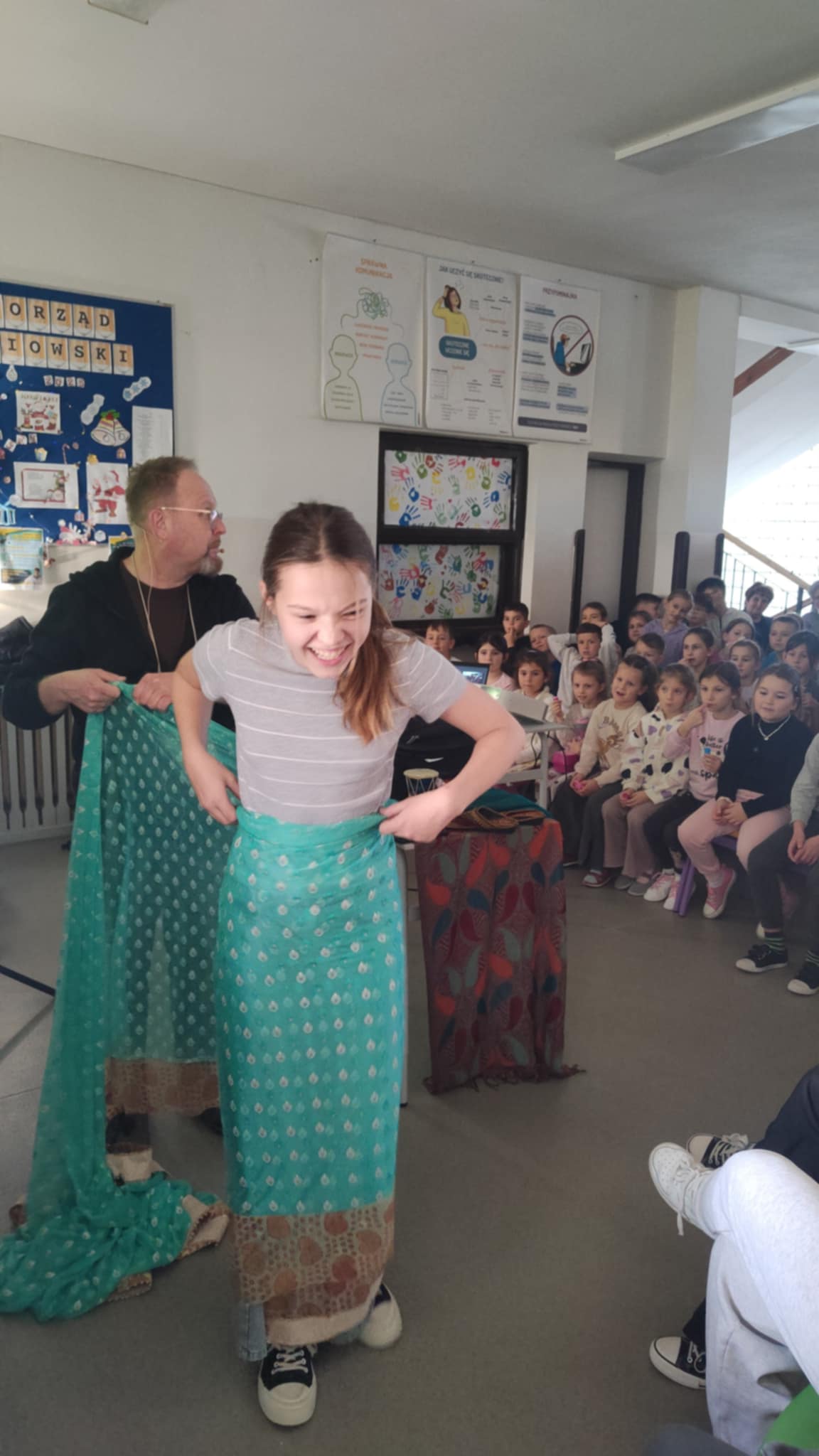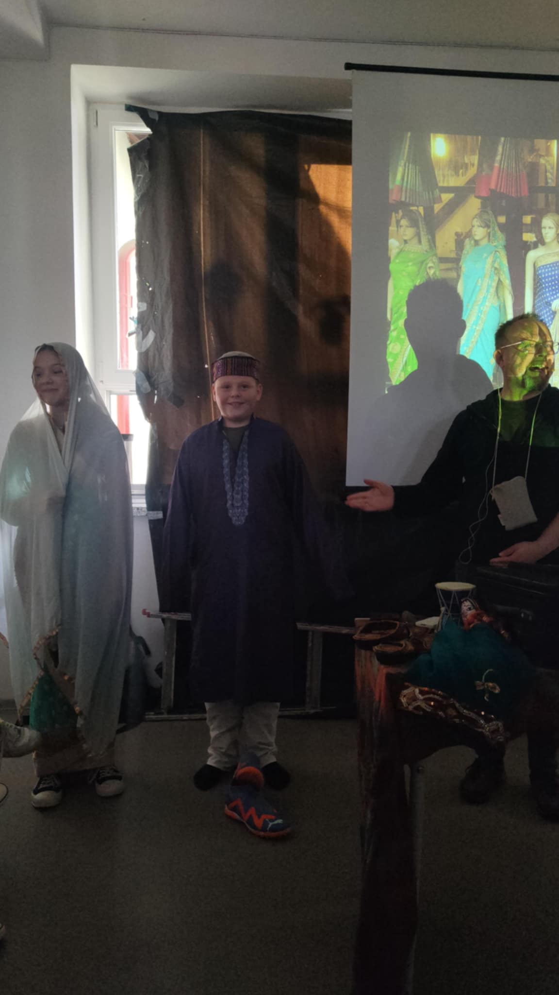 Aktualności 90 4-12-2025 Dzisiaj tj. 04 grudnia 2025 roku naszą szkołę odwiedził pan Maciej Kras z grupy podróżników Trzask. Uczniowie naszej szkoły odbyli fascynującą podróż do Indii w ramach „Spotkań z podróżnikiem”. Dzięki opowieściom pana Macieja mogliśmy wtopić się w tłumy przechodniów codziennie zalewających największe miasta Indii, odwiedzić duchową stolicę Indii – Waranasi, Złotą Świątynie Sikhów w Amritsarze, spędzić kilka chwil w świątyni Karni Mata, w której świętym zwierzęciem jest szczur. Odbyliśmy także podróż po Gangesie – świętej rzece milionów Hindusów, podziwialiśmy wspaniały Taj Mahal – według wielu najpiękniejszy pomnik miłości na Ziemi, zobaczyliśmy pełne przepychu pałace oraz dzielnicy nędzy. Pan Dariusz pokazał nam dwa oblicza tego państwa. Jedno to piękne - egzotyczne krajobrazy, wspaniałe zabytkowe miasta, bogate pałace i świątynie takie jak np. okazałe Tadż Mahal – mauzoleum z białego marmuru, Pałac Wiatrów w Dżajpurze czy Złota Świątynia Sikhów w Amritsarze. Drugie oblicze Indii to dzielnice nędzy, gdzie miliony biednych ludzi koczuje na brudnych ulicach pełnych odchodów i stert odpadów, miedzy którymi świnie wyszukują resztek jedzenia. Pan Podróżnik opowiadał o różnych zwyczajach, obyczajach i wierzeniach. Nieodłącznym elementem indyjskiej wiary, życia i codzienności są m.in. tzw. święte krowy, które mogą swobodnie poruszać się po ulicach miast, sati - rytualne samospalenia, czy przynależność do kast. Ważnym ośrodkiem kultu wyznawców hinduizmu i buddyzmu jest Waranasi - miejsce znane z rytualnych kąpieli w świętej rzece Ganges. Bardzo interesująca była opowieść o Karni Mata - świątyni szczurów w Deshnok, gdzie żyje około 20 000 tych gryzoni. Szczury traktowane są tu iście po królewsku - kapłani opiekują się nimi, karmią, a Hindusi pielgrzymują do tej świątyni, przynosząc dary i oddają cześć jej mieszkańcom. Do tej świątyni można wejść tylko boso. Jedna z uczennic miała okazję przymierzyć sari – tradycyjny strój kobiety. Dziękujemy za fantastyczną lekcję geografii. Koordynatorem spotkania była pani mgr Alicja Mucha. 0.0 Ostatnia modyfikacja: -/- Powiązane artykuły: Udział w ogólnopolskiej akcji BohaterON - 2025/2026 Olimpiada Mitologiczna 2025 Wyniki konkursu Alfik Matematyczny 2025 Boże Narodzenie 2025 - życzenia Akcja charytatywna „Paczuszka dla Maluszka" 2025 Jasełka i Wigilia - 2025 „Mała książka – wielki człowiek" - 2025 Paczuszka dla Maluszka - 2025 Spotkanie uczniów z przedstawicielem firmy Traszkan OTRZĘSINY KLASY 4 I ZABAWA ANDRZEJKOWA – 26.11.2025r. 0
