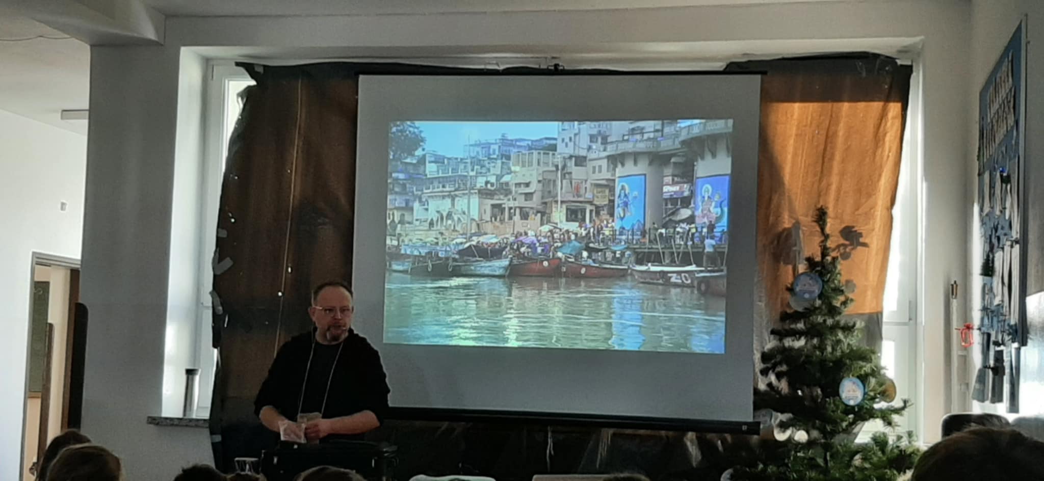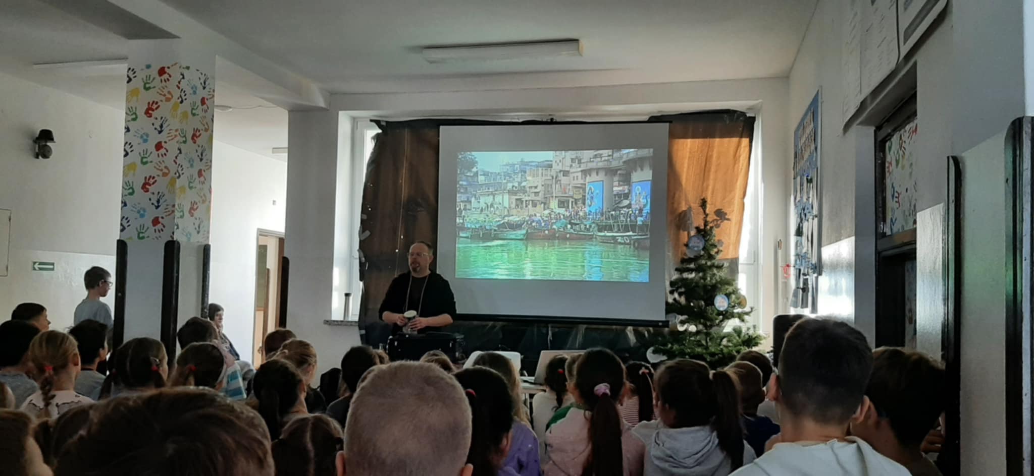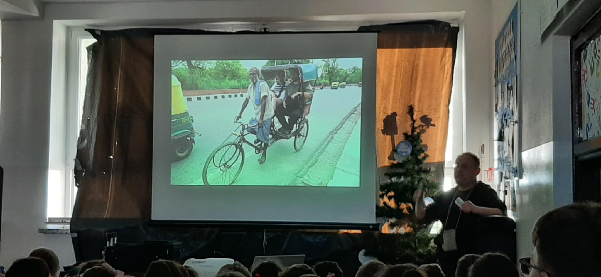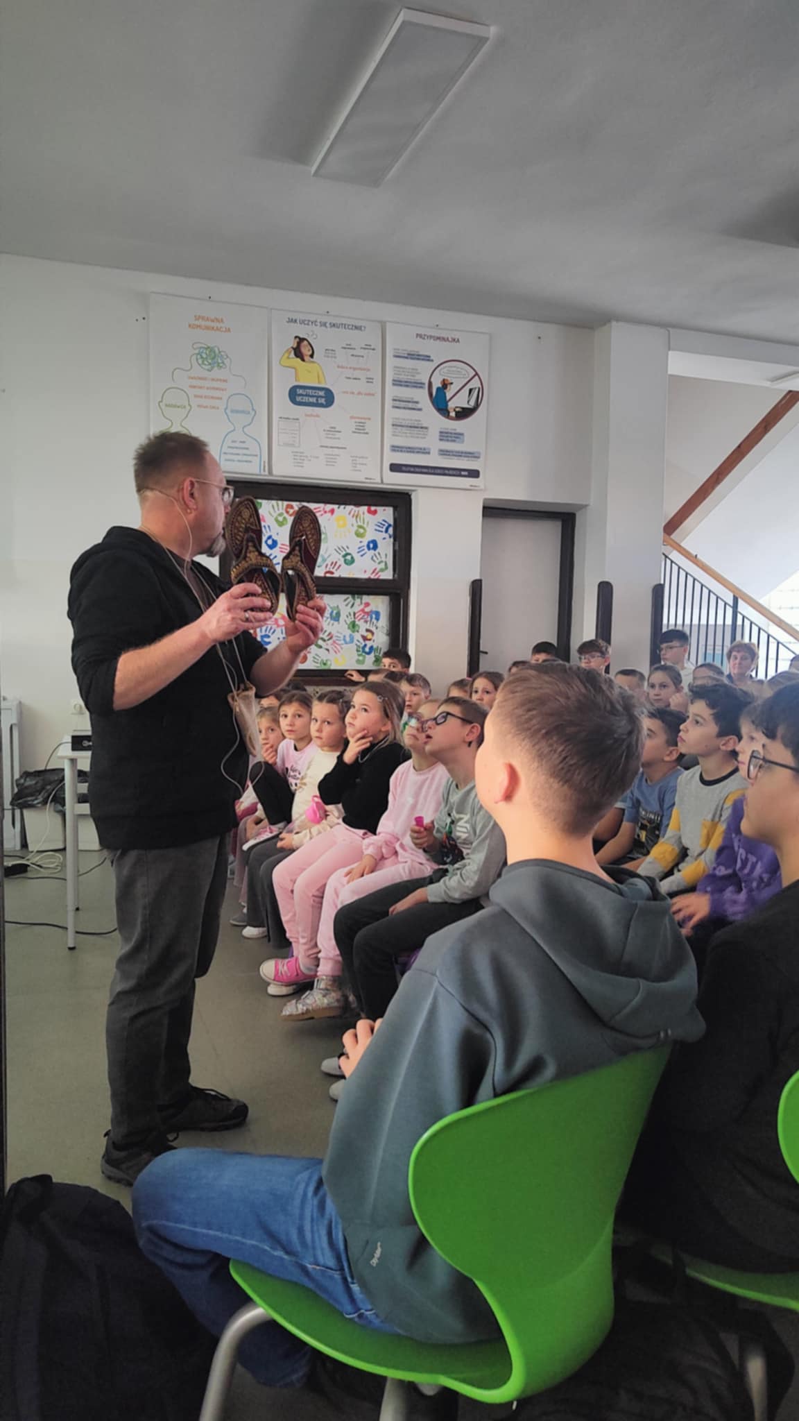 Aktualności 90 4-12-2025 Dzisiaj tj. 04 grudnia 2025 roku naszą szkołę odwiedził pan Maciej Kras z grupy podróżników Trzask. Uczniowie naszej szkoły odbyli fascynującą podróż do Indii w ramach „Spotkań z podróżnikiem”. Dzięki opowieściom pana Macieja mogliśmy wtopić się w tłumy przechodniów codziennie zalewających największe miasta Indii, odwiedzić duchową stolicę Indii – Waranasi, Złotą Świątynie Sikhów w Amritsarze, spędzić kilka chwil w świątyni Karni Mata, w której świętym zwierzęciem jest szczur. Odbyliśmy także podróż po Gangesie – świętej rzece milionów Hindusów, podziwialiśmy wspaniały Taj Mahal – według wielu najpiękniejszy pomnik miłości na Ziemi, zobaczyliśmy pełne przepychu pałace oraz dzielnicy nędzy. Pan Dariusz pokazał nam dwa oblicza tego państwa. Jedno to piękne - egzotyczne krajobrazy, wspaniałe zabytkowe miasta, bogate pałace i świątynie takie jak np. okazałe Tadż Mahal – mauzoleum z białego marmuru, Pałac Wiatrów w Dżajpurze czy Złota Świątynia Sikhów w Amritsarze. Drugie oblicze Indii to dzielnice nędzy, gdzie miliony biednych ludzi koczuje na brudnych ulicach pełnych odchodów i stert odpadów, miedzy którymi świnie wyszukują resztek jedzenia. Pan Podróżnik opowiadał o różnych zwyczajach, obyczajach i wierzeniach. Nieodłącznym elementem indyjskiej wiary, życia i codzienności są m.in. tzw. święte krowy, które mogą swobodnie poruszać się po ulicach miast, sati - rytualne samospalenia, czy przynależność do kast. Ważnym ośrodkiem kultu wyznawców hinduizmu i buddyzmu jest Waranasi - miejsce znane z rytualnych kąpieli w świętej rzece Ganges. Bardzo interesująca była opowieść o Karni Mata - świątyni szczurów w Deshnok, gdzie żyje około 20 000 tych gryzoni. Szczury traktowane są tu iście po królewsku - kapłani opiekują się nimi, karmią, a Hindusi pielgrzymują do tej świątyni, przynosząc dary i oddają cześć jej mieszkańcom. Do tej świątyni można wejść tylko boso. Jedna z uczennic miała okazję przymierzyć sari – tradycyjny strój kobiety. Dziękujemy za fantastyczną lekcję geografii. Koordynatorem spotkania była pani mgr Alicja Mucha. 0.0 Ostatnia modyfikacja: -/- Powiązane artykuły: Udział w ogólnopolskiej akcji BohaterON - 2025/2026 Olimpiada Mitologiczna 2025 Wyniki konkursu Alfik Matematyczny 2025 Boże Narodzenie 2025 - życzenia Akcja charytatywna „Paczuszka dla Maluszka" 2025 Jasełka i Wigilia - 2025 „Mała książka – wielki człowiek" - 2025 Paczuszka dla Maluszka - 2025 Spotkanie uczniów z przedstawicielem firmy Traszkan OTRZĘSINY KLASY 4 I ZABAWA ANDRZEJKOWA – 26.11.2025r. 0