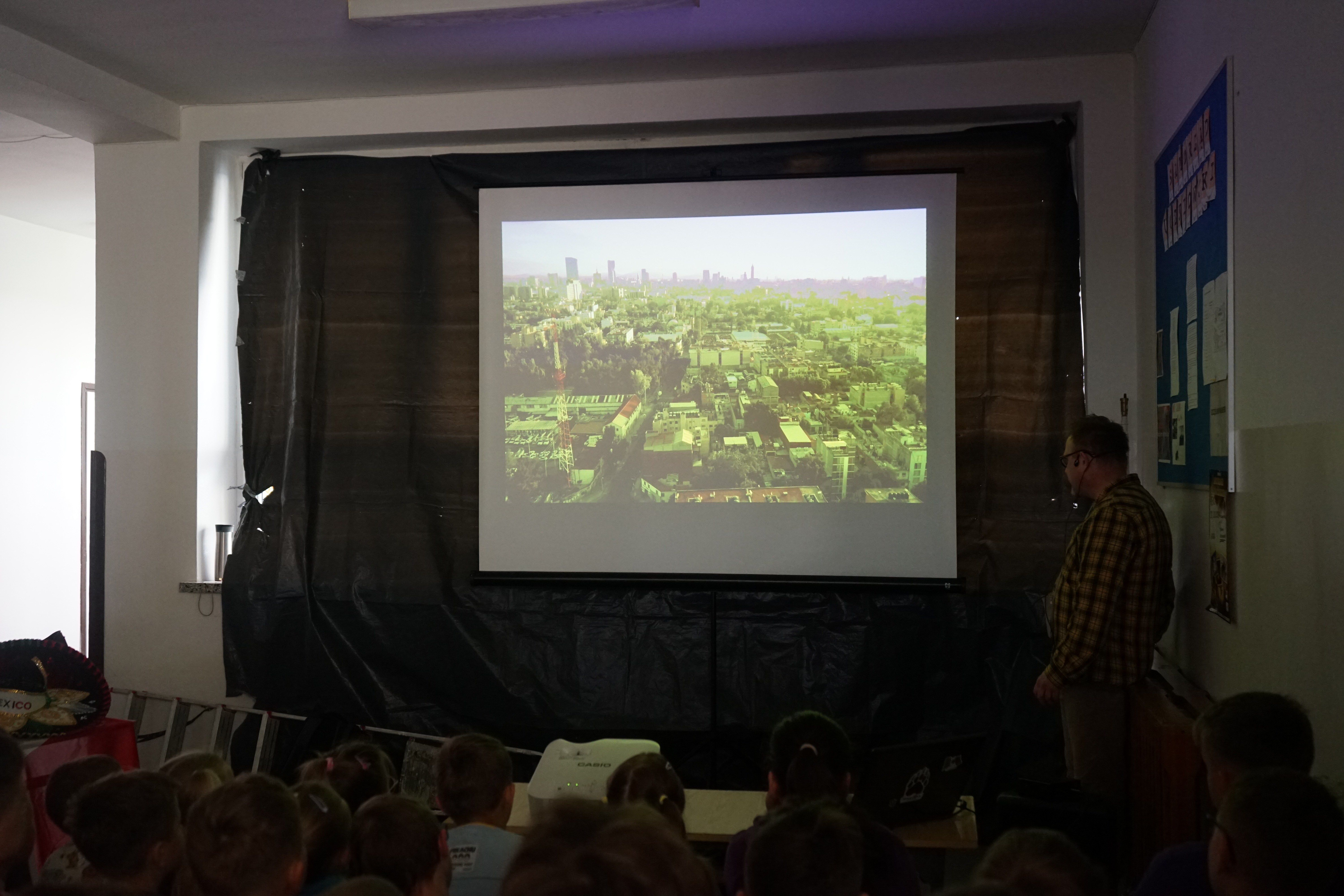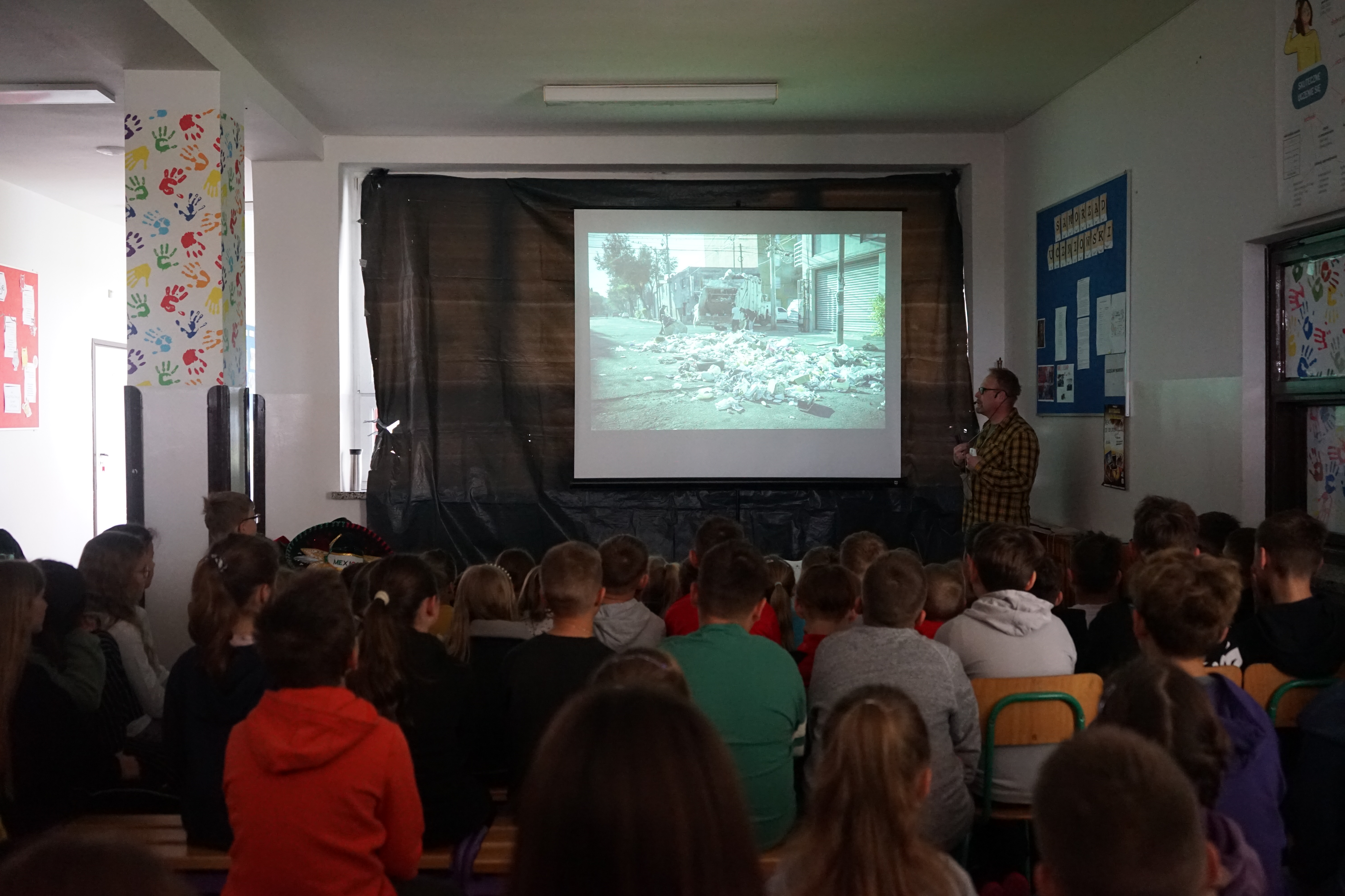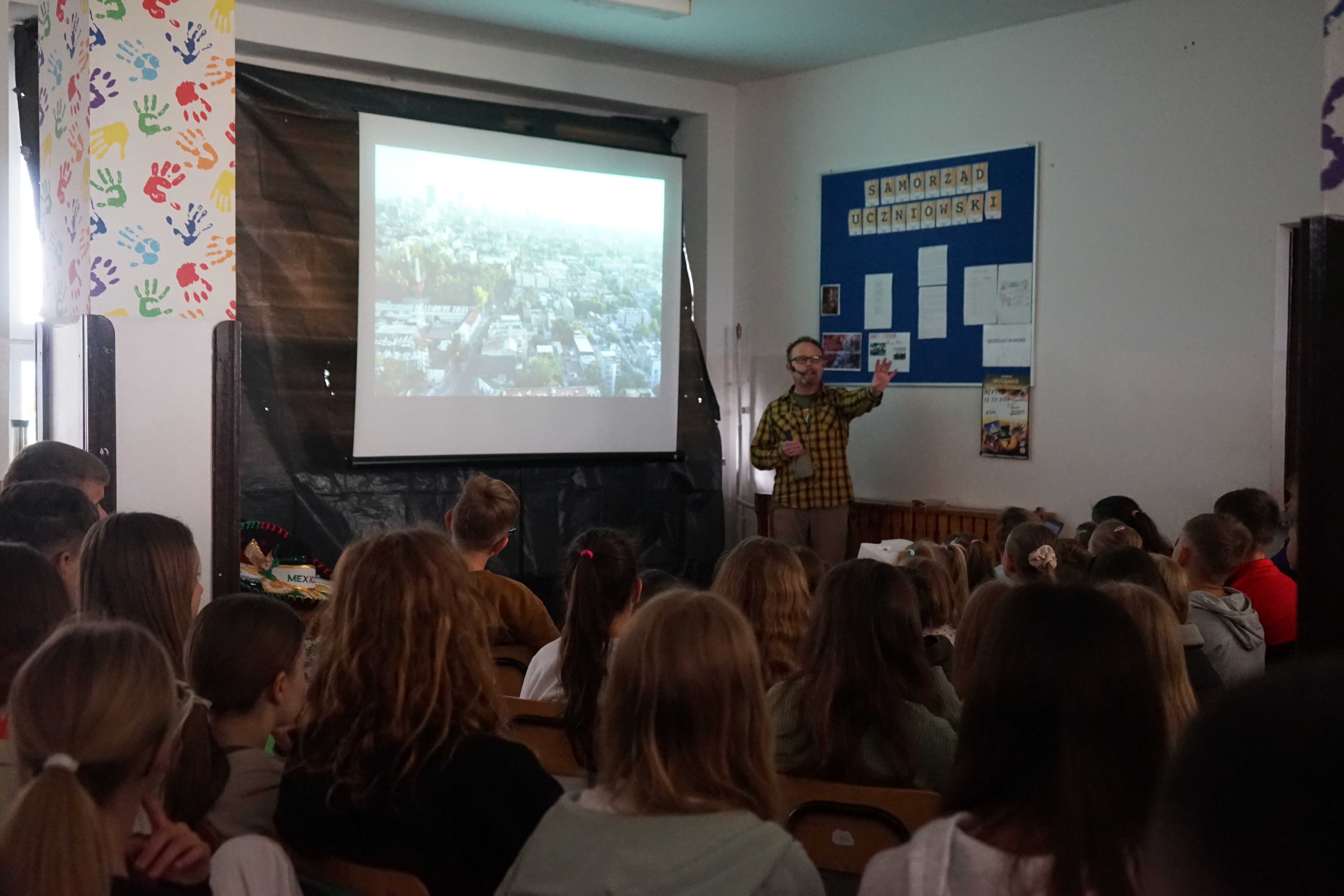 Aktualności 127 22-05-2025 „MEKSYKAŃSKIE TAJEMNICE, czyli w krainie Majów, ulicznych gangów i… najostrzejszej papryki na świecie” – spotkanie z podróżnikiem 22 maja 2025 roku odbyło się spotkanie z podróżnikiem Maciejem Krasem z grupy Trzask pl. Zabrał on wszystkich w niezwykłą podróż. W tym roku wirtualnie odwiedziliśmy Meksyk. Podczas prezentacji zwiedziliśmy stolicę kraju – Mexico City, metropolię zamieszkałą przez około 20 milionów mieszkańców, poznaliśmy legendę o założeniu miasta, dowiedzieliśmy się wielu interesujących informacji na temat codziennego życia mieszkańców Meksyku – podróży metrem, zakupów na targu, lokalnych potraw oraz przysmaków – świerszczy oraz larw gusano. Wędrowaliśmy po zatłoczonych i głośnych ulicach Meksyku. Oglądaliśmy na ścianach budynków murale przedstawiające uśmiechnięte szkielety, ubrane w tradycyjne stroje. Zobaczyliśmy najgrubsze drzewo świata oraz uprawy agawy, a także dowiedzieliśmy się, co Meksykanie robią z wielkich kaktusów. Pod koniec spotkania dotarliśmy na Jukatan, czyli najpopularniejszej wśród turystów części kraju i zobaczyliśmy wiele podziemnych rzek i jaskiń. Oczywiście ujrzeliśmy Chichen Itza, czyli ruiny starożytnego miasta Majów z piramidą Pierzastego Węża – jeden z siedmiu cudów świata. Poznaliśmy także historię wymarłej cywilizacji Azteków. Była to opowieść o lasach tropikalnych, dziedzictwie Majów a także wulkanach, które kryją w sobie niesamowite piękno. Jak zwykle nie zabrakło ciekawych strojów i wyrobów. To było nie tylko spotkanie, ale prawdziwa lekcja geografii, historii i kultury! 0.0 Ostatnia modyfikacja: -/- Powiązane artykuły: Spotkanie z podróżnikiem - Indie 2025 Spotkanie uczniów z przedstawicielem firmy Traszkan Spotkanie z policją w naszej szkole Wigilijne spotkanie w naszej szkole SPOTKANIE Z MIKOŁAJEM !!! Spotkanie z Jolantą Kobiela - Gurgul Spotkanie z podróżnikiem - EGIPT Spotkanie z policją klas 0-3 Spotkanie kolędowe dla seniorów 2024 Spotkanie z przedstawicielami służb mundurowych 0