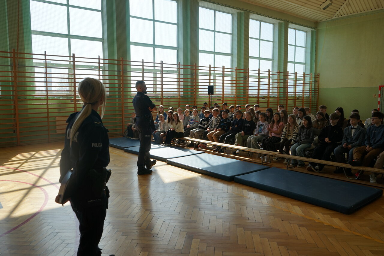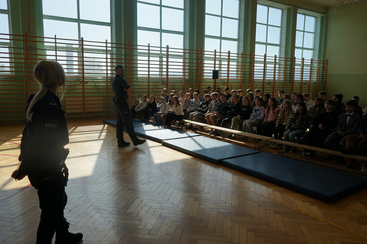 Aktualności 203 16-04-2025 W środę (16 kwietnia br.) Policjanci Zespołu ds. Nieletnich Komendy Powiatowej Policji w Bochni spotkali się z uczniami klas 4-8 Szkoły Podstawowej w Leszczynie W ramach prowadzonych prelekcji mundurowi omówili najważniejsze zagadnienia związane z cyberprzemocą, odpowiedzialnością prawną nieletnich oraz przemocą rówieśniczą. Wśród omawianych tematów policjanci zwrócili szczególną uwagę na zjawisko cyberprzemocy. Zjawisko to ma bardzo szeroki zakres, w którym należy zawrzeć m.in. zachowania, w których za pośrednictwem Internetu ma miejsce m.in. obrażanie, uporczywe nękanie, prześladowanie, publikowanie czy rozsyłanie filmów, które kogoś ośmieszają. Policjanci przypomnieli wszystkim o bezwzględnym stosowaniu się do zasad i norm regulujących funkcjonowanie jednostki w społeczeństwie. Ostrzegli także, iż nieprzestrzeganie prawa może doprowadzić do poważnych konsekwencji, np. nadzoru kuratora bądź skierowania sprawy do sądu rodzinnego. 0.0 Ostatnia modyfikacja: roda 16 kwietnia 2025 18:32 Powiązane artykuły: Pierwszy Dzień Wiosny i Dzień Kolorowej Skarpetki w naszej szkole Warsztaty z policjantką w naszej szkole! Spotkanie z podróżnikiem - Indie 2025 Spotkanie uczniów z przedstawicielem firmy Traszkan Spotkanie z Podróżnikiem - MEKSYK OBCHODY 1000-LECIA KORONY POLSKIEJ W NASZEJ SZKOLE GMINNY KONKURS HISTORYCZNY W NASZEJ SZKOLE Wiosenne porządki w naszej szkole DZIEŃ BABCI I DZIADKA W NASZEJ SZKOLE Wigilijne spotkanie w naszej szkole 0