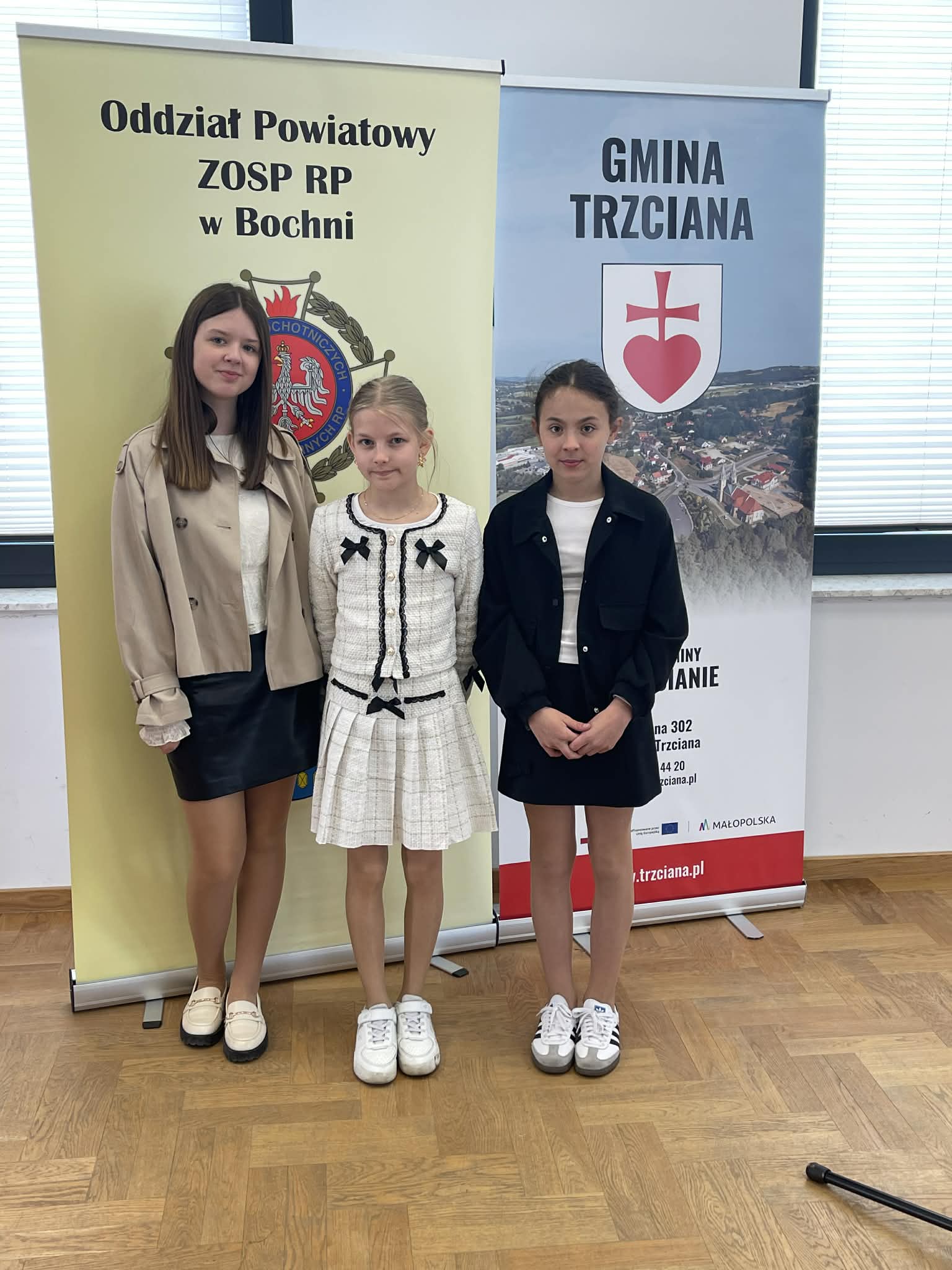 Aktualności 16 15-04-2026 Dnia 14 kwietnia 2026 roku uczennice naszej szkoły wzięły udział w etapie powiatowym Ogólnopolskiego Turnieju Wiedzy Pożarniczej (OTWP), który odbył się w Trzcianie. Naszą szkołę reprezentowały: Zuzanna Kłósek i Lena Jaworska z klasy IV oraz Antonina Dutka z klasy VI. Celem konkursu było popularyzowanie wiedzy z zakresu ochrony przeciwpożarowej, kształtowanie umiejętności właściwego zachowania się w sytuacjach zagrożenia, a także rozwijanie zainteresowań związanych z działalnością straży pożarnej. Konkurs miał również na celu promowanie zasad bezpieczeństwa oraz poszerzanie wiedzy na temat przyczyn powstawania pożarów i sposobów ich zapobiegania. Uczestnicy konkursu zmierzyli się z testem pisemnym składającym się z 30 pytań. Pytania dotyczyły m.in. zasad udzielania pierwszej pomocy, znajomości sprzętu gaśniczego, organizacji ochrony przeciwpożarowej oraz ogólnych zasad bezpieczeństwa. Do kolejnego etapu zakwalifikowało się 5 najlepszych uczestników z każdej grupy wiekowej, którzy zmierzyli się z pytaniami ustnymi. Nasze uczennice wykazały się dużą wiedzą i zaangażowaniem, godnie reprezentując szkołę. Za udział w konkursie otrzymały pamiątkowe nagrody rzeczowe. Udział w konkursie był dla uczennic cennym doświadczeniem, które pozwoliło im poszerzyć wiedzę oraz sprawdzić swoje umiejętności w rywalizacji z rówieśnikami. Zdobyte doświadczenie z pewnością zaowocuje w przyszłości i zachęci do dalszego rozwijania zainteresowań w dziedzinie ochrony przeciwpożarowej. 0.0 Ostatnia modyfikacja: -/- Powiązane artykuły: Gminny Turniej Piłki Ręcznej chłopców klas 4-6 "Igrzyska Dzieci" 2026 I POWIATOWY KONKURS W UDZIELANIU PIERWSZEJ POMOCY PRZEDMEDYCZNEJ Gminny Konkurs Ortograficzny 2026 Wielkanoc 2026 - życzenia Konkurs Recytatorski 2026 Apel Wielkanocny 2026 OGÓLNOPOLSKI STRAŻACKI KONKURS PLASTYCZNY 2026 Igrzyska Młodzieży Gminny Turniej Piłki Ręcznej Chłopców 2026 I Dzień Wiosny 2026 Gminne Zawody Piłki Ręcznej dziewcząt Igrzyska Młodzieży 2026 0