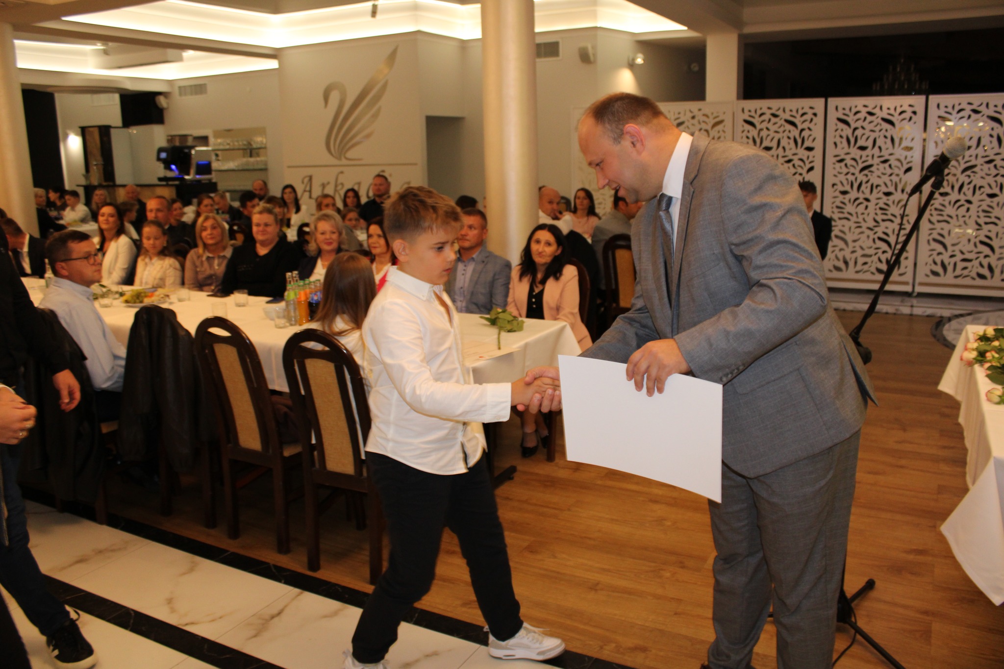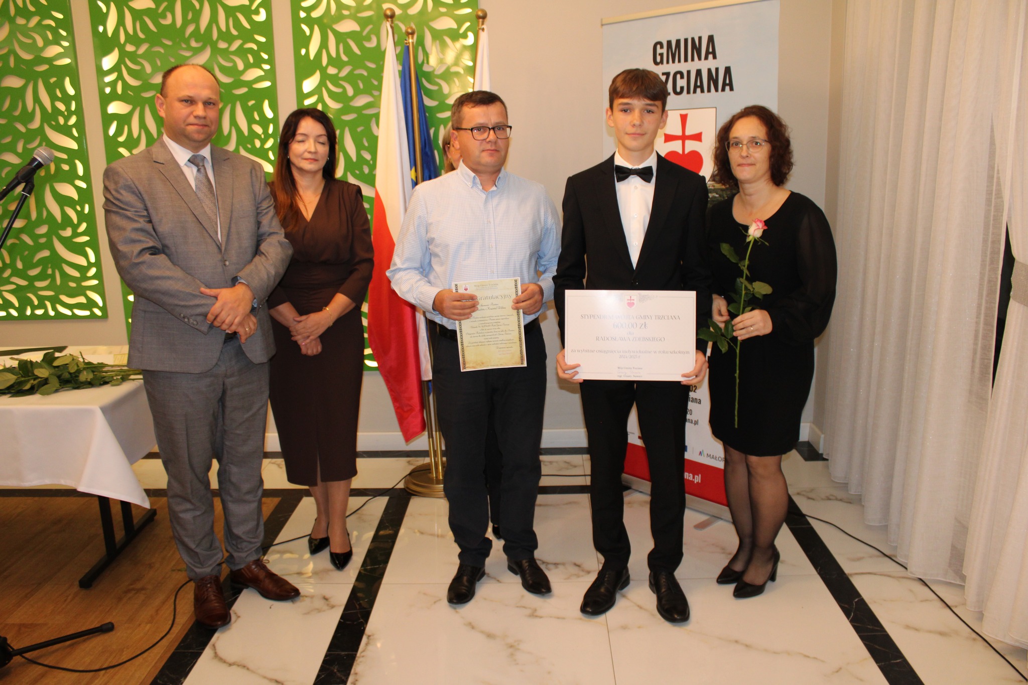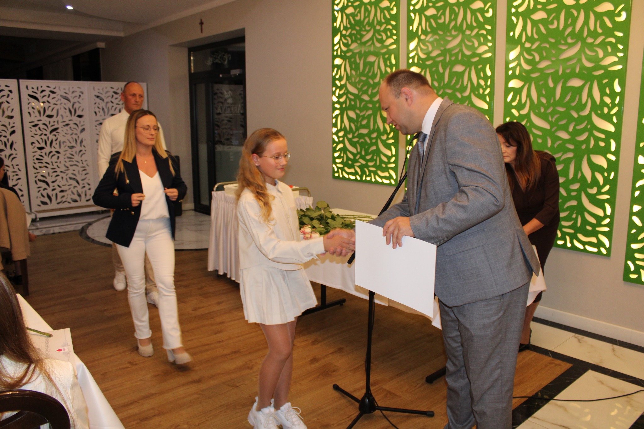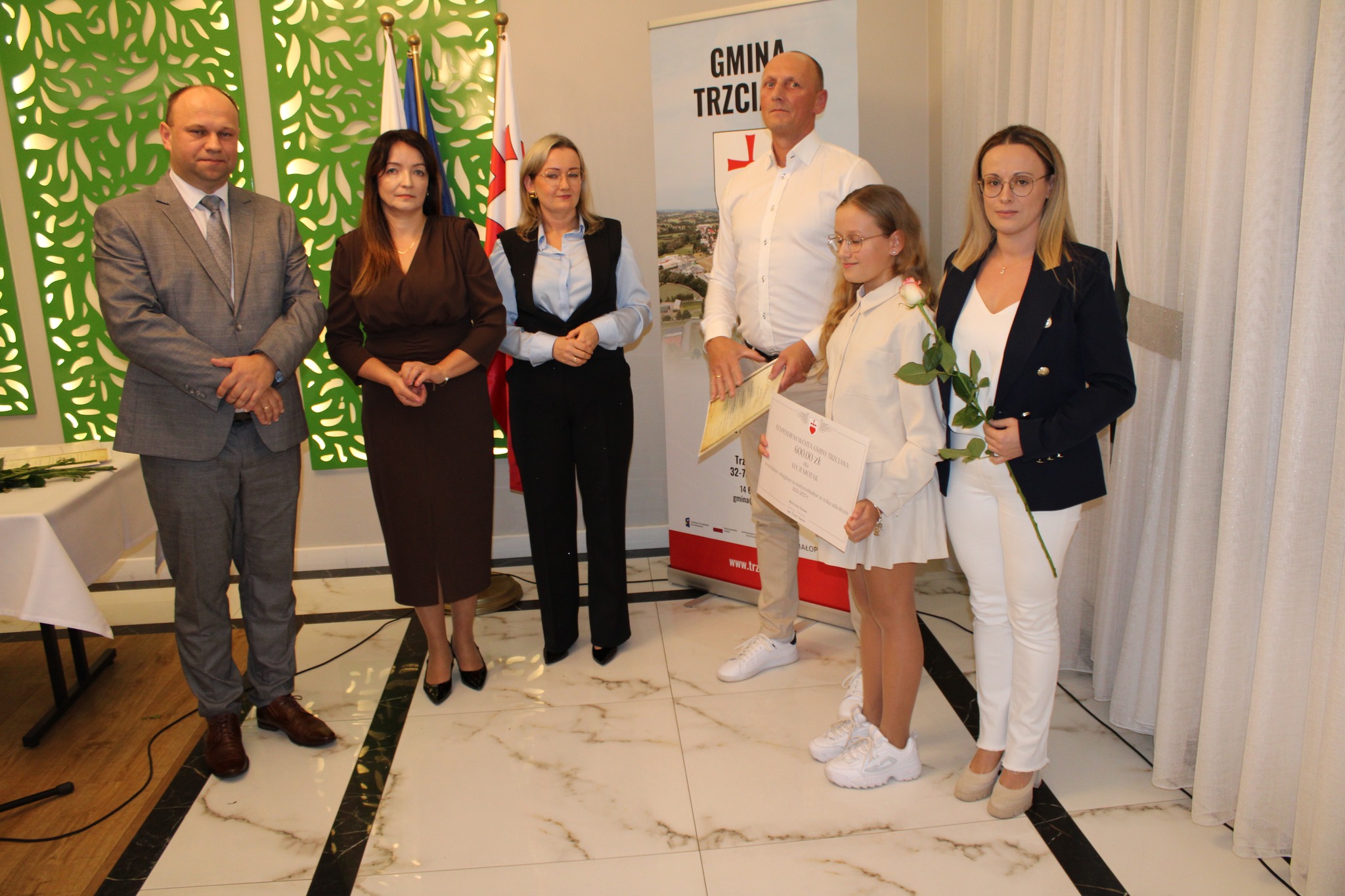 Aktualności 141 15-10-2025 W dniu 7 października 2025 r. odbyła się uroczystość na której Wójt Gminy Trzciana Cezary Stawarz wręczył uczniom symboliczne czeki potwierdzające przyznanie ,,Stypendium Wójta Gminy Trzciana’’. Razem z Kierownikiem GZOS w Trzcianie Panią Beatą Mordarską oraz Zastępcą Kierownika RISKiR Panią Karoliną Madej-Kaczmarczyk, na podstawie decyzji Komisji Stypendialnej wręczył 41 nagród Wójta Gminy Trzciana. Nagrodzeni zostali uczniowie w kategorii: za wybitne wyniki w nauce - 32 stypendia, za osiągnięcia indywidualne - artystyczne - 4 stypendia oraz za osiągnięcia indywidualne - artystyczne - 5 stypendiów. Stypendia Wójta Gminy Trzciana przyznawane są zgodnie z Uchwałą Nr XL/374/23 Rady Gminy Trzciana z dnia 30 czerwca 2023 r. Zamierzeniem przyjętego programu wspierania edukacji uzdolnionych uczniów jest motywowanie i nagradzanie uczniów oraz promowanie pozytywnych wzorców wśród społeczności uczniowskiej, a także w środowisku lokalnym. Przeznaczono na ten cel 26 500,00 złotych. Stypendium Wójta Gminy Trzciana w kategorii ,, za wybitne osiągnięcia indywidualne - naukowe ’’ otrzymał: Szymon Kurczak - uczeń PSP im. Gen. Władysława Andersa w Leszczynie, Stypendium Wójta Gminy Trzciana w kategorii ,, za wybitne wyniki w nauce” otrzymali: uczniowie Publicznej Szkoły Podstawowej im. Gen. Władysława Andersa w Leszczynie, kierowanej przez Dyrektora szkoły Panią mgr Annę Dziedzic - Maksym Bernady, - Franciszek Chojecki, - Natalia Halek, - Leon Kłósek, - Łucja Motak, - Radosław Zdebski. Z ogromną radością i dumą składamy serdeczne gratulacje wszystkim Stypendystom. Wasze osiągnięcia oraz zaangażowanie są dowodem na to że pasja, ciężka praca i wytrwałość prowadzą do sukcesu. Uzyskane wyniki są powodem do dumy. Wasza postawa jest inspiracją, a otrzymane wyróżnienie to również mobilizacja do dalszego rozwoju. Życzymy Wam dalszych sukcesów, motywacji oraz wielu okazji do realizacji swoich marzeń. Brawo! Jesteśmy z Was dumni. 0.0 Ostatnia modyfikacja: -/- Powiązane artykuły: Udział w ogólnopolskiej akcji BohaterON - 2025/2026 Olimpiada Mitologiczna 2025 Wyniki konkursu Alfik Matematyczny 2025 Boże Narodzenie 2025 - życzenia Akcja charytatywna „Paczuszka dla Maluszka" 2025 Jasełka i Wigilia - 2025 „Mała książka – wielki człowiek" - 2025 Spotkanie z podróżnikiem - Indie 2025 Paczuszka dla Maluszka - 2025 OTRZĘSINY KLASY 4 I ZABAWA ANDRZEJKOWA – 26.11.2025r. 0