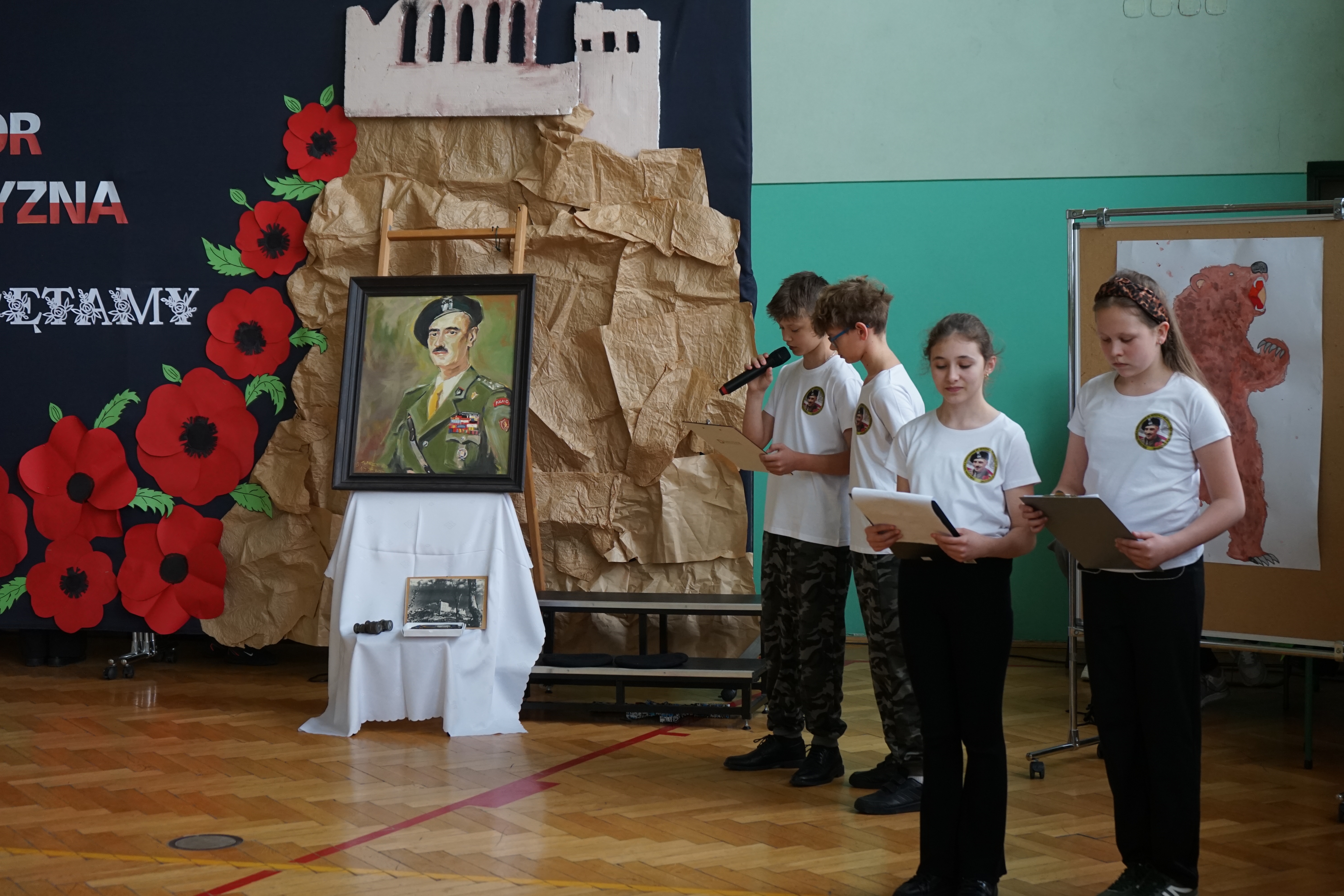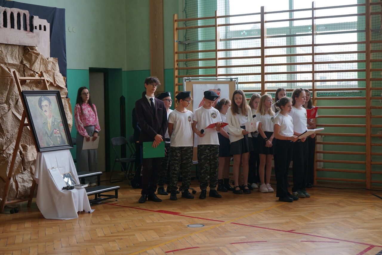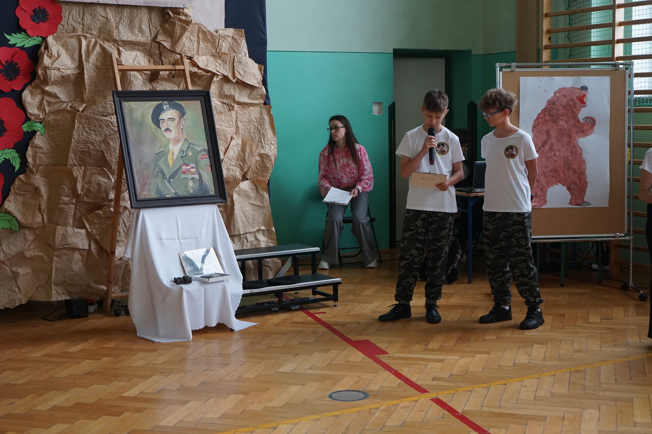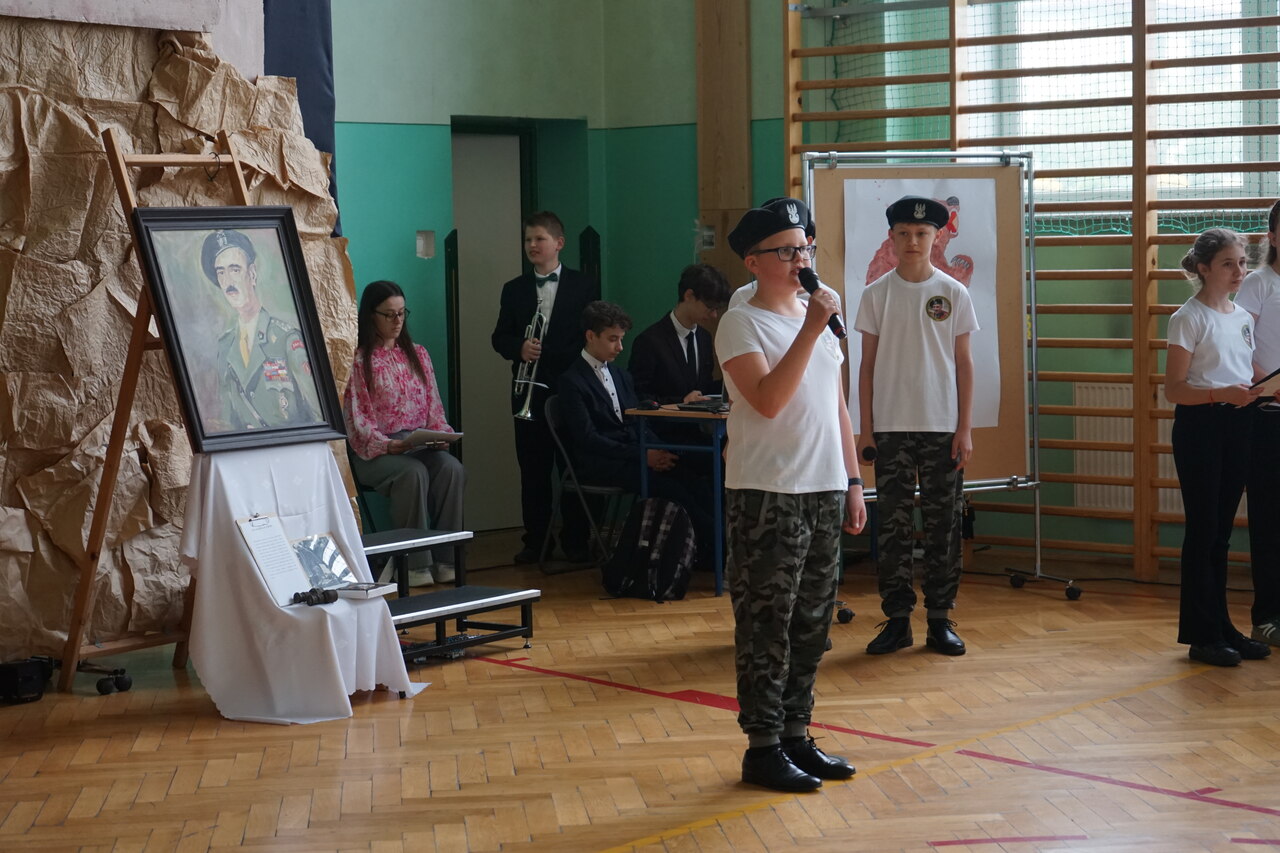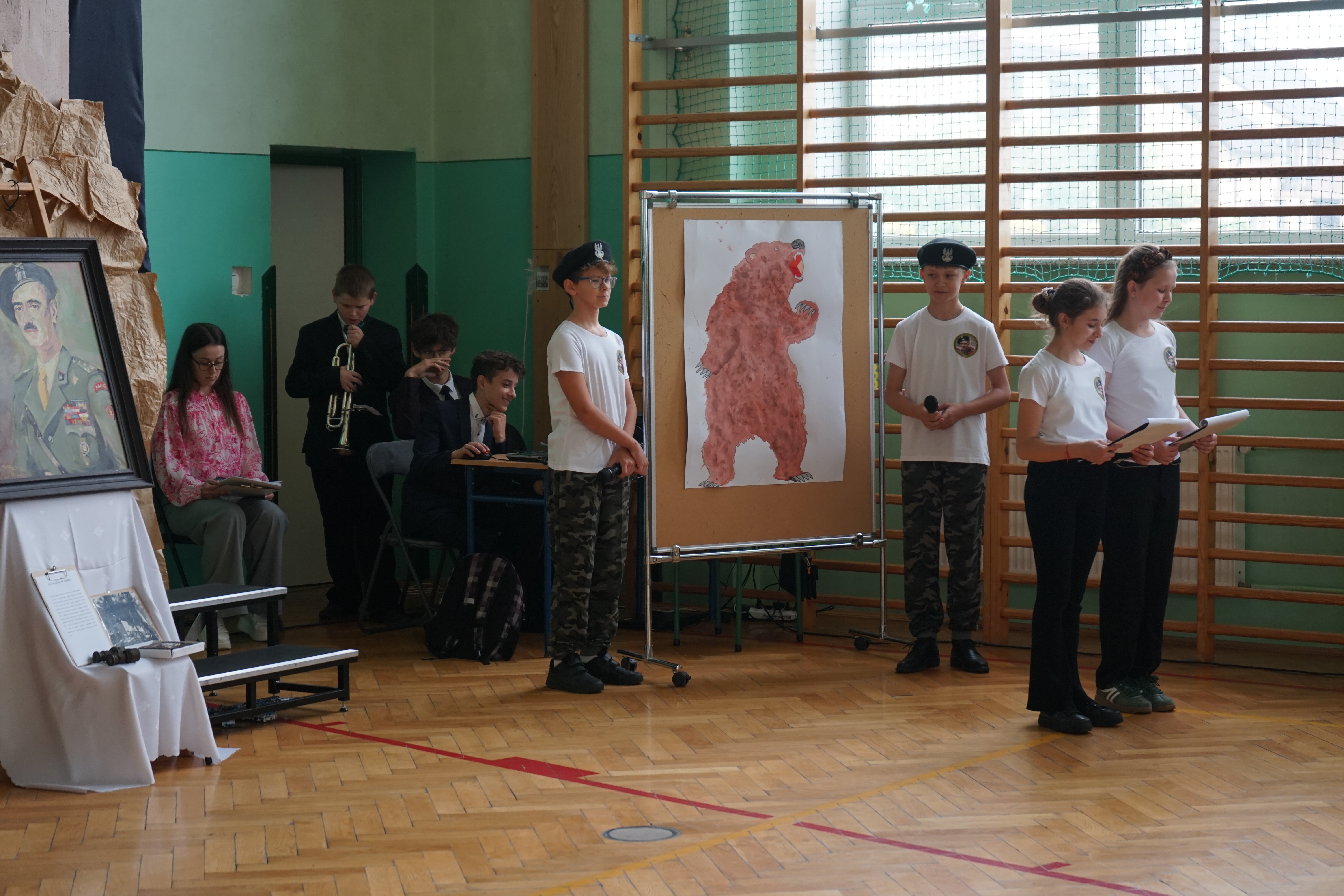 Aktualności 188 20-05-2025 20.05.2025 r. obchodziliśmy w naszej szkole Święto Patrona Szkoły - gen. Władysława Andersa. O godz. 8.15 udaliśmy się do kościoła parafialnego, aby uczestniczyć w uroczystej mszy św., podczas której modliliśmy się za całą społeczność szkolną, powodzenie w nauce i pracy oraz za duszę patrona i żołnierzy, którzy walczyli za wolność naszej ojczyzny. Ksiądz Proboszcz w słowie skierowanym do wszystkich zebranych uświadomił nam, kim jest bohater we współczesnym świecie, co to znaczy być dobrym uczniem, patriotą; zwrócił uwagę na najważniejsze wartości, podkreślając, że prawdziwa miłość Boga jest fundamentem miłości do drugiego człowieka i do ojczyzny. Po powrocie do szkoły nauczyciele oraz uczniowie odśpiewali hymn państwowy, a następnie złożono wiązankę pod tablicą upamiętniającą gen. Władysława Andersa. Następnie w sali gimnastycznej odbyła się uroczysta akademia, poświęcona generałowi Andersowi- dowódcy Armii Polskiej na Wschodzie w czasie II wojny światowej i żołnierzom II Korpusu. Przy tej okazji warto wspomnieć, że 12 maja minęła 55 rocznica śmierci generała, a 18 maja obchodzono 81 rocznicę zdobycia Monte Cassino. Tym razem uczniowie klasy 5 wcielili się w rolę uczestników wycieczki po muzeum II wojny światowej, gdzie spotkała ich niesamowita przygoda. Magiczne berety przeniosły ich do 1944 roku, do klasztornego wzgórza. Tam, początkowo pilnując niedźwiedzia Wojtka, stali się uczestnikami słynnej bitwy o Monte Cassino i bohaterami pomagającymi jednemu z żołnierzy wbić polską flagę na szczycie klasztoru. Wszyscy z wielką dumą odśpiewali hymn naszej szkoły czyli najsłynniejszą pieśń z okresu II wojny światowej – „Czerwone maki na Monte Cassino". Chwile niezwykłego wzruszenia i zadumy zapewnili nam uczniowie klasy 7, którzy wykonali piękny taniec patriotyczny oraz pieśń „ O Panie, któryś jest na niebie” w wykonaniu naszej solistki Malwiny Chojeckiej. Po zakończeniu akademii głos zabrała pani Dyrektor Anna Dziedzic, która podkreśliła, że ten dzień jest dla nas najważniejszym dniem w życiu szkoły oraz okazją do upamiętnienia znaczenia i wkładu generała w historię Polski. Życzyła wszystkim, aby w życiu kierować się wartościami, w które mocno wierzył gen. Anders , bo wiara i ufność Bogu, życie zgodne z zasadami, czyste sumienie i miłość do ojczyzny, w tym do naszej „ małej ojczyzny – Leszczyny” to droga do dobrego życia, do dokonywania odpowiednich wyborów, do pokonywania trudności i realizacji zamierzonych celów. Jest to również sposobność do integracji społeczności szkolnej oraz do budowania więzi między uczniami, nauczycielami i pracownikami szkoły poprzez wspólne obchody i celebrację życia i dokonań patrona. Po części oficjalnej uczniowie udali się wraz z wychowawcami do klas, gdzie zorganizowano maraton filmowy. 0.0 Ostatnia modyfikacja: -/- Powiązane artykuły: Udział w ogólnopolskiej akcji BohaterON - 2025/2026 Olimpiada Mitologiczna 2025 Wyniki konkursu Alfik Matematyczny 2025 Boże Narodzenie 2025 - życzenia Akcja charytatywna „Paczuszka dla Maluszka" 2025 Jasełka i Wigilia - 2025 „Mała książka – wielki człowiek" - 2025 Spotkanie z podróżnikiem - Indie 2025 Paczuszka dla Maluszka - 2025 OTRZĘSINY KLASY 4 I ZABAWA ANDRZEJKOWA – 26.11.2025r. 0