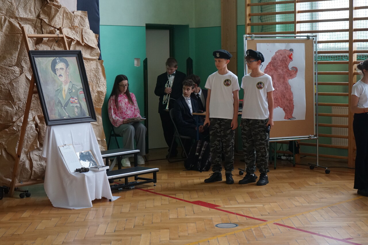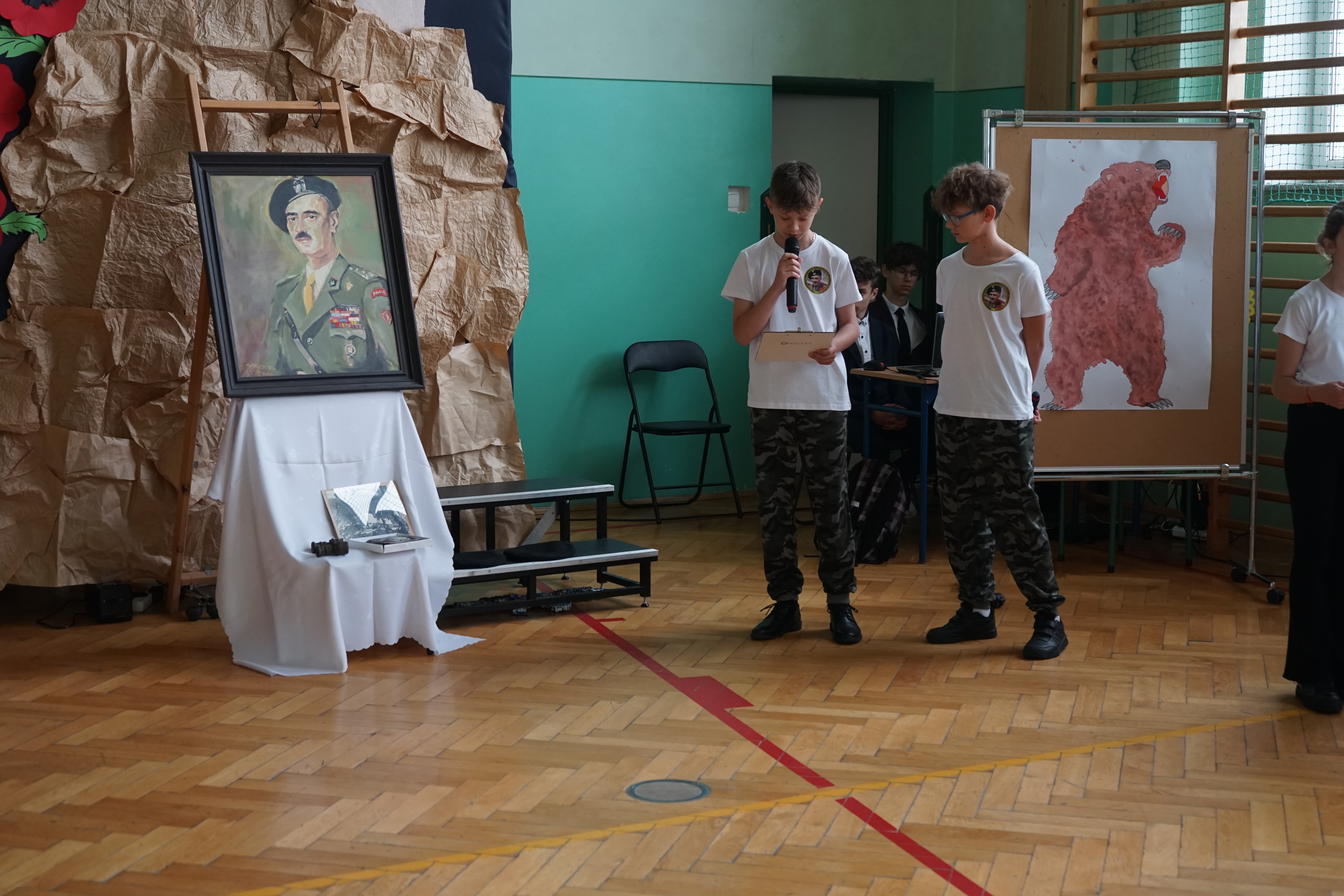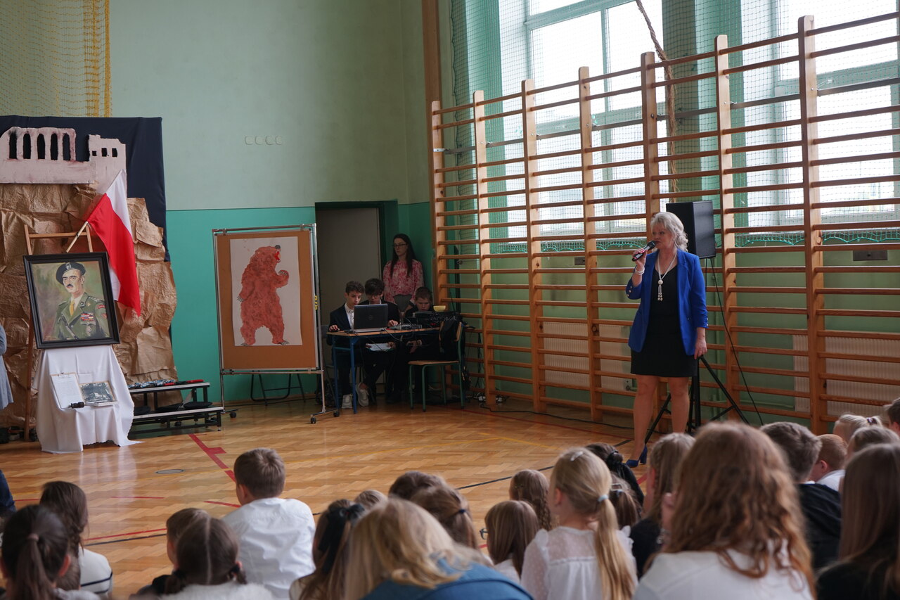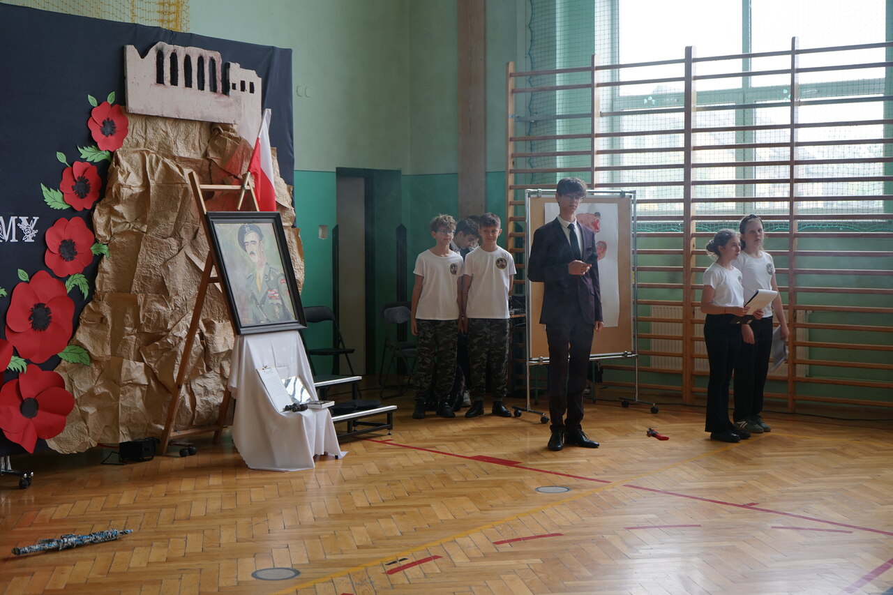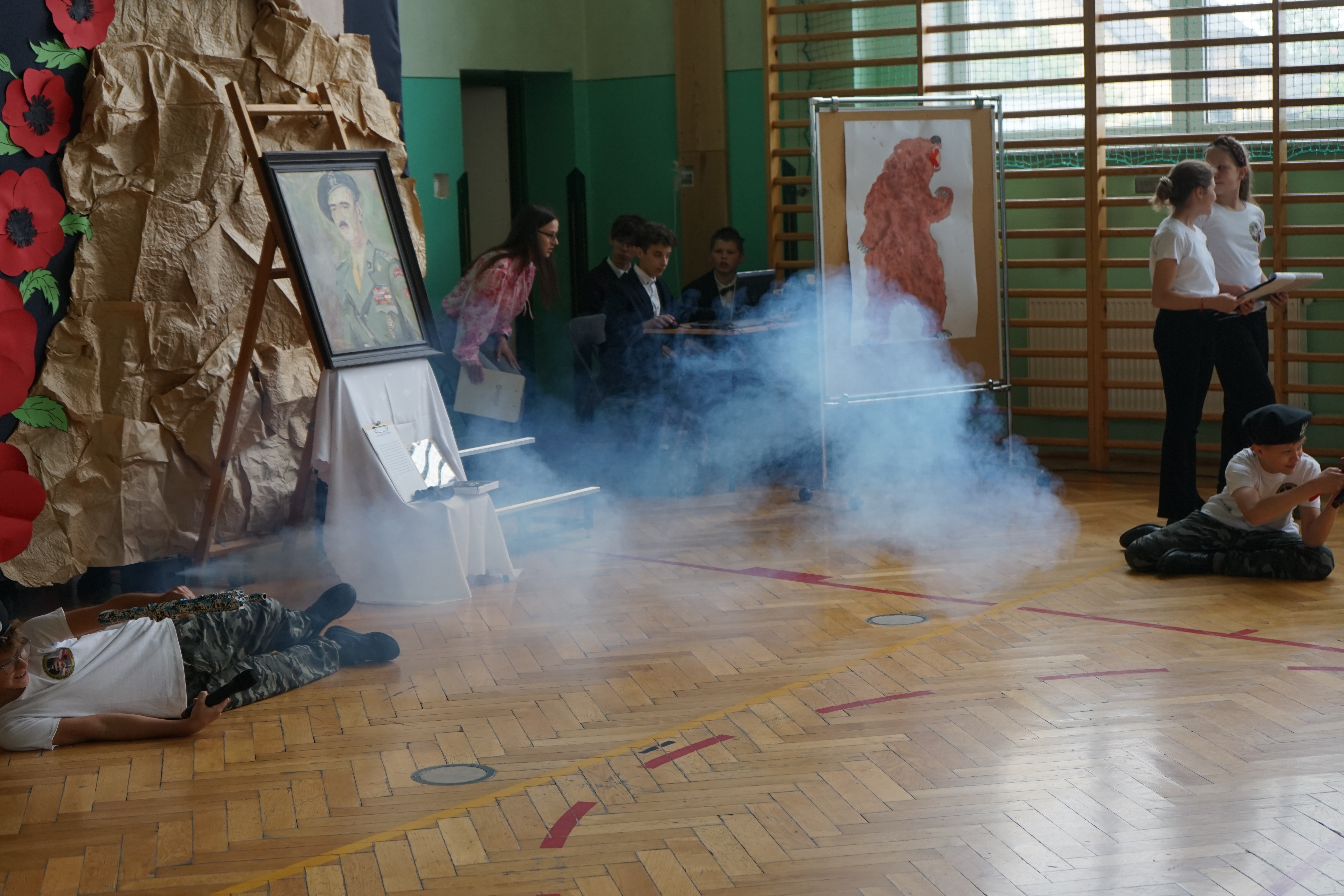Aktualności 188 20-05-2025 20.05.2025 r. obchodziliśmy w naszej szkole Święto Patrona Szkoły - gen. Władysława Andersa. O godz. 8.15 udaliśmy się do kościoła parafialnego, aby uczestniczyć w uroczystej mszy św., podczas której modliliśmy się za całą społeczność szkolną, powodzenie w nauce i pracy oraz za duszę patrona i żołnierzy, którzy walczyli za wolność naszej ojczyzny. Ksiądz Proboszcz w słowie skierowanym do wszystkich zebranych uświadomił nam, kim jest bohater we współczesnym świecie, co to znaczy być dobrym uczniem, patriotą; zwrócił uwagę na najważniejsze wartości, podkreślając, że prawdziwa miłość Boga jest fundamentem miłości do drugiego człowieka i do ojczyzny. Po powrocie do szkoły nauczyciele oraz uczniowie odśpiewali hymn państwowy, a następnie złożono wiązankę pod tablicą upamiętniającą gen. Władysława Andersa. Następnie w sali gimnastycznej odbyła się uroczysta akademia, poświęcona generałowi Andersowi- dowódcy Armii Polskiej na Wschodzie w czasie II wojny światowej i żołnierzom II Korpusu. Przy tej okazji warto wspomnieć, że 12 maja minęła 55 rocznica śmierci generała, a 18 maja obchodzono 81 rocznicę zdobycia Monte Cassino. Tym razem uczniowie klasy 5 wcielili się w rolę uczestników wycieczki po muzeum II wojny światowej, gdzie spotkała ich niesamowita przygoda. Magiczne berety przeniosły ich do 1944 roku, do klasztornego wzgórza. Tam, początkowo pilnując niedźwiedzia Wojtka, stali się uczestnikami słynnej bitwy o Monte Cassino i bohaterami pomagającymi jednemu z żołnierzy wbić polską flagę na szczycie klasztoru. Wszyscy z wielką dumą odśpiewali hymn naszej szkoły czyli najsłynniejszą pieśń z okresu II wojny światowej – „Czerwone maki na Monte Cassino". Chwile niezwykłego wzruszenia i zadumy zapewnili nam uczniowie klasy 7, którzy wykonali piękny taniec patriotyczny oraz pieśń „ O Panie, któryś jest na niebie” w wykonaniu naszej solistki Malwiny Chojeckiej. Po zakończeniu akademii głos zabrała pani Dyrektor Anna Dziedzic, która podkreśliła, że ten dzień jest dla nas najważniejszym dniem w życiu szkoły oraz okazją do upamiętnienia znaczenia i wkładu generała w historię Polski. Życzyła wszystkim, aby w życiu kierować się wartościami, w które mocno wierzył gen. Anders , bo wiara i ufność Bogu, życie zgodne z zasadami, czyste sumienie i miłość do ojczyzny, w tym do naszej „ małej ojczyzny – Leszczyny” to droga do dobrego życia, do dokonywania odpowiednich wyborów, do pokonywania trudności i realizacji zamierzonych celów. Jest to również sposobność do integracji społeczności szkolnej oraz do budowania więzi między uczniami, nauczycielami i pracownikami szkoły poprzez wspólne obchody i celebrację życia i dokonań patrona. Po części oficjalnej uczniowie udali się wraz z wychowawcami do klas, gdzie zorganizowano maraton filmowy. 0.0 Ostatnia modyfikacja: -/- Powiązane artykuły: Udział w ogólnopolskiej akcji BohaterON - 2025/2026 Olimpiada Mitologiczna 2025 Wyniki konkursu Alfik Matematyczny 2025 Boże Narodzenie 2025 - życzenia Akcja charytatywna „Paczuszka dla Maluszka" 2025 Jasełka i Wigilia - 2025 „Mała książka – wielki człowiek" - 2025 Spotkanie z podróżnikiem - Indie 2025 Paczuszka dla Maluszka - 2025 OTRZĘSINY KLASY 4 I ZABAWA ANDRZEJKOWA – 26.11.2025r. 0