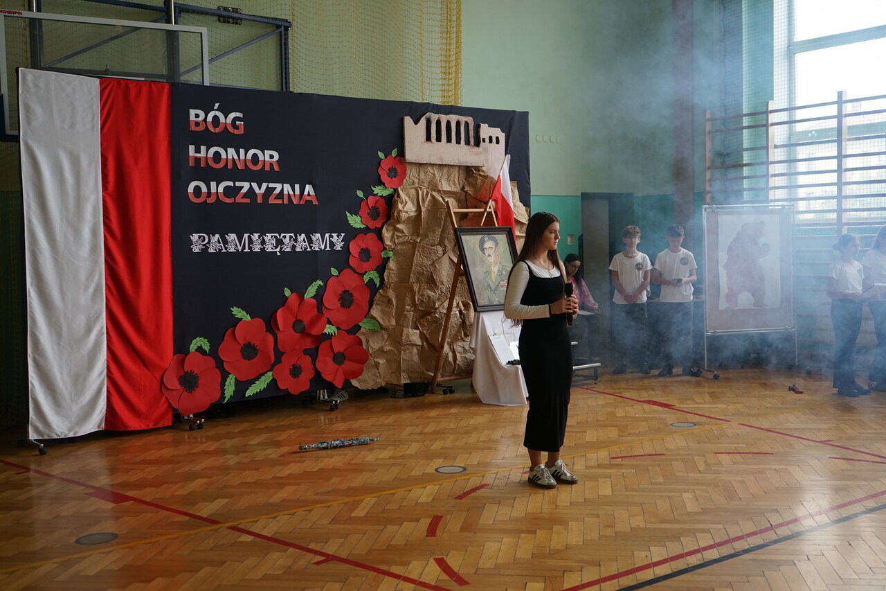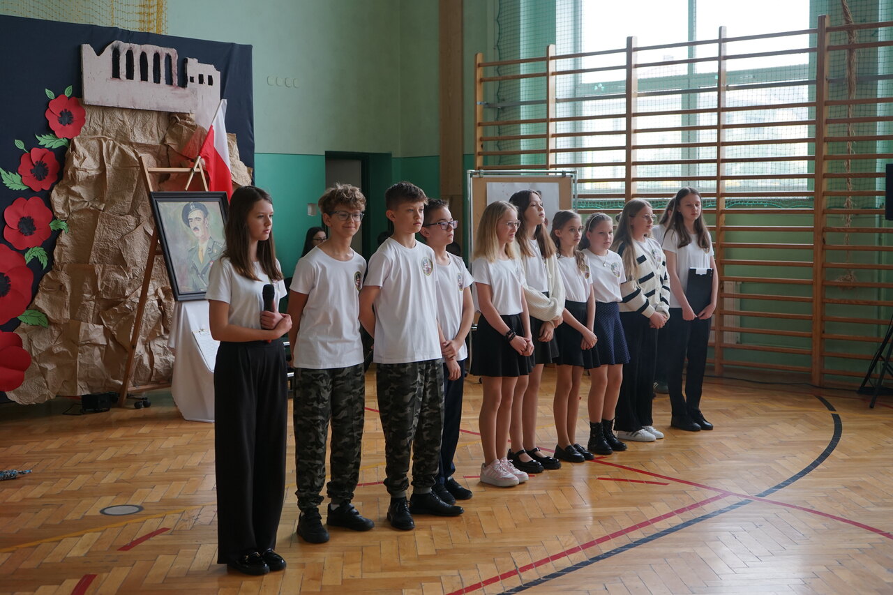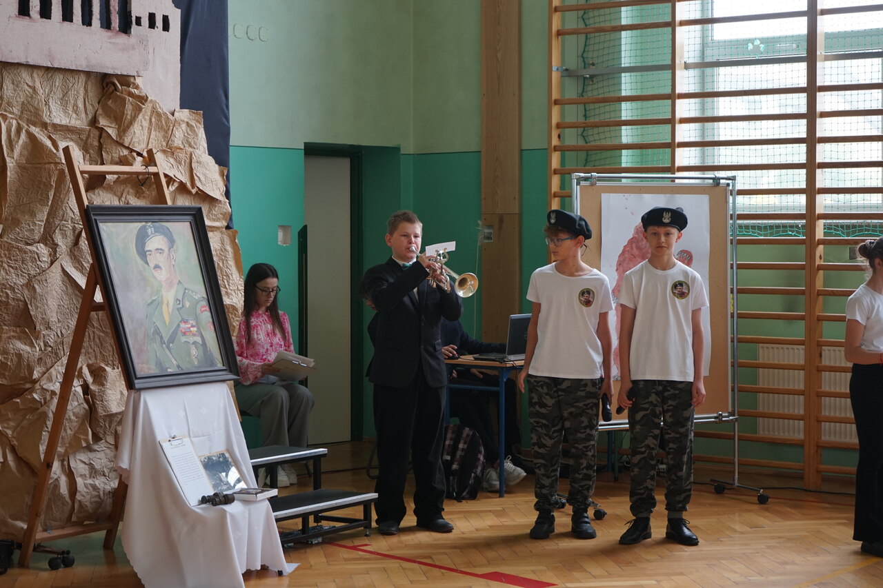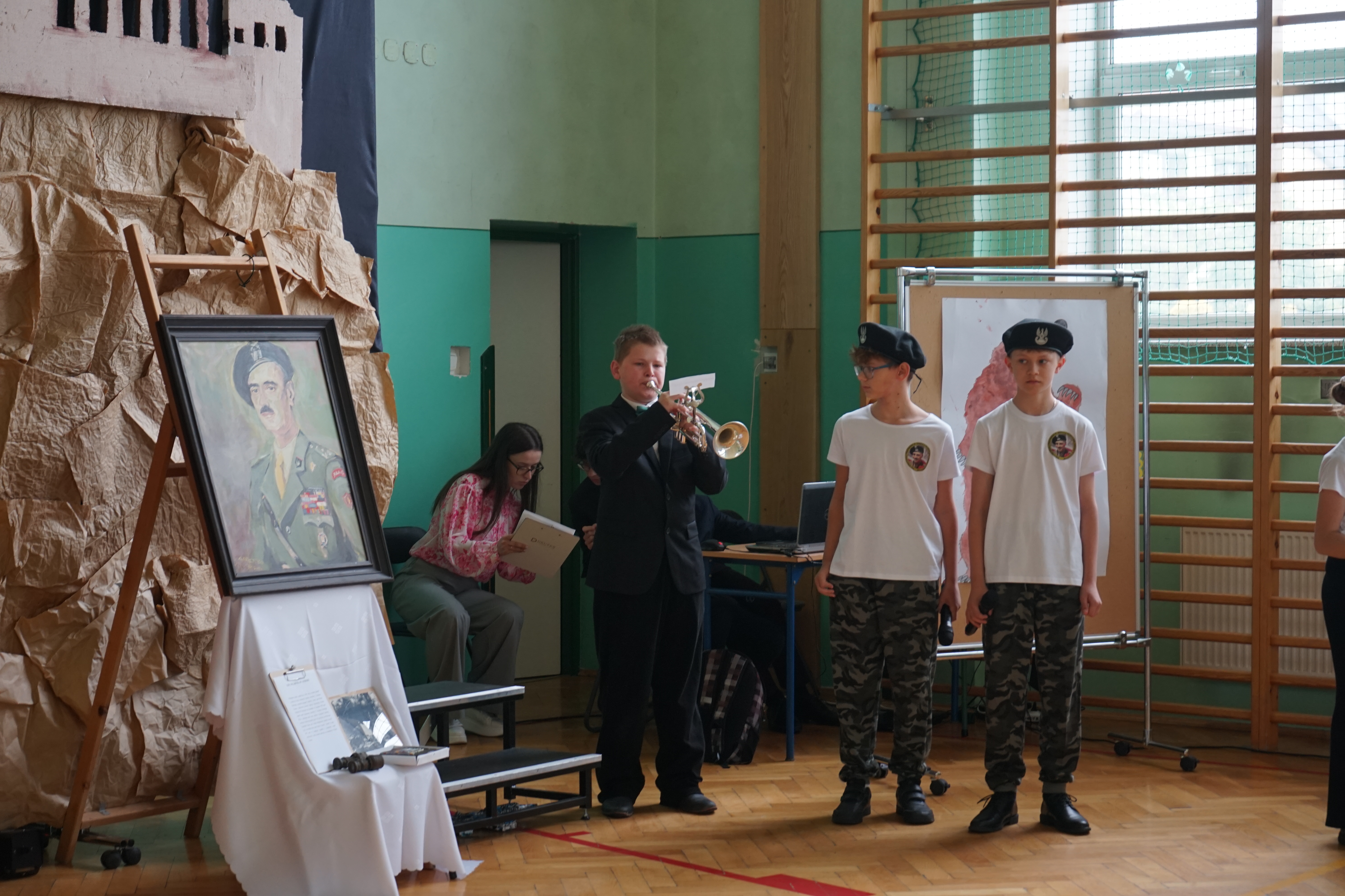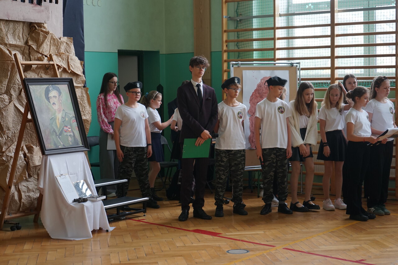 Aktualności 188 20-05-2025 20.05.2025 r. obchodziliśmy w naszej szkole Święto Patrona Szkoły - gen. Władysława Andersa. O godz. 8.15 udaliśmy się do kościoła parafialnego, aby uczestniczyć w uroczystej mszy św., podczas której modliliśmy się za całą społeczność szkolną, powodzenie w nauce i pracy oraz za duszę patrona i żołnierzy, którzy walczyli za wolność naszej ojczyzny. Ksiądz Proboszcz w słowie skierowanym do wszystkich zebranych uświadomił nam, kim jest bohater we współczesnym świecie, co to znaczy być dobrym uczniem, patriotą; zwrócił uwagę na najważniejsze wartości, podkreślając, że prawdziwa miłość Boga jest fundamentem miłości do drugiego człowieka i do ojczyzny. Po powrocie do szkoły nauczyciele oraz uczniowie odśpiewali hymn państwowy, a następnie złożono wiązankę pod tablicą upamiętniającą gen. Władysława Andersa. Następnie w sali gimnastycznej odbyła się uroczysta akademia, poświęcona generałowi Andersowi- dowódcy Armii Polskiej na Wschodzie w czasie II wojny światowej i żołnierzom II Korpusu. Przy tej okazji warto wspomnieć, że 12 maja minęła 55 rocznica śmierci generała, a 18 maja obchodzono 81 rocznicę zdobycia Monte Cassino. Tym razem uczniowie klasy 5 wcielili się w rolę uczestników wycieczki po muzeum II wojny światowej, gdzie spotkała ich niesamowita przygoda. Magiczne berety przeniosły ich do 1944 roku, do klasztornego wzgórza. Tam, początkowo pilnując niedźwiedzia Wojtka, stali się uczestnikami słynnej bitwy o Monte Cassino i bohaterami pomagającymi jednemu z żołnierzy wbić polską flagę na szczycie klasztoru. Wszyscy z wielką dumą odśpiewali hymn naszej szkoły czyli najsłynniejszą pieśń z okresu II wojny światowej – „Czerwone maki na Monte Cassino". Chwile niezwykłego wzruszenia i zadumy zapewnili nam uczniowie klasy 7, którzy wykonali piękny taniec patriotyczny oraz pieśń „ O Panie, któryś jest na niebie” w wykonaniu naszej solistki Malwiny Chojeckiej. Po zakończeniu akademii głos zabrała pani Dyrektor Anna Dziedzic, która podkreśliła, że ten dzień jest dla nas najważniejszym dniem w życiu szkoły oraz okazją do upamiętnienia znaczenia i wkładu generała w historię Polski. Życzyła wszystkim, aby w życiu kierować się wartościami, w które mocno wierzył gen. Anders , bo wiara i ufność Bogu, życie zgodne z zasadami, czyste sumienie i miłość do ojczyzny, w tym do naszej „ małej ojczyzny – Leszczyny” to droga do dobrego życia, do dokonywania odpowiednich wyborów, do pokonywania trudności i realizacji zamierzonych celów. Jest to również sposobność do integracji społeczności szkolnej oraz do budowania więzi między uczniami, nauczycielami i pracownikami szkoły poprzez wspólne obchody i celebrację życia i dokonań patrona. Po części oficjalnej uczniowie udali się wraz z wychowawcami do klas, gdzie zorganizowano maraton filmowy. 0.0 Ostatnia modyfikacja: -/- Powiązane artykuły: Udział w ogólnopolskiej akcji BohaterON - 2025/2026 Olimpiada Mitologiczna 2025 Wyniki konkursu Alfik Matematyczny 2025 Boże Narodzenie 2025 - życzenia Akcja charytatywna „Paczuszka dla Maluszka" 2025 Jasełka i Wigilia - 2025 „Mała książka – wielki człowiek" - 2025 Spotkanie z podróżnikiem - Indie 2025 Paczuszka dla Maluszka - 2025 OTRZĘSINY KLASY 4 I ZABAWA ANDRZEJKOWA – 26.11.2025r. 0