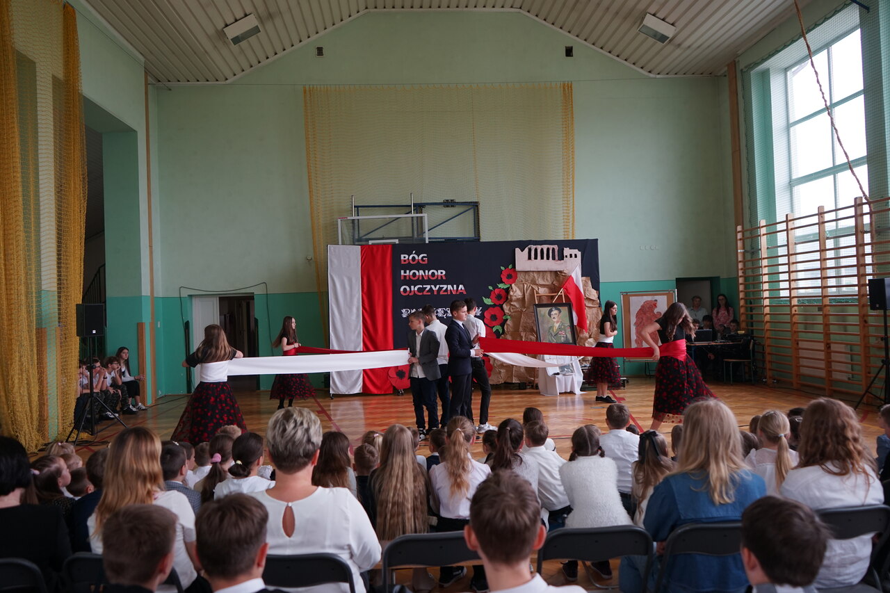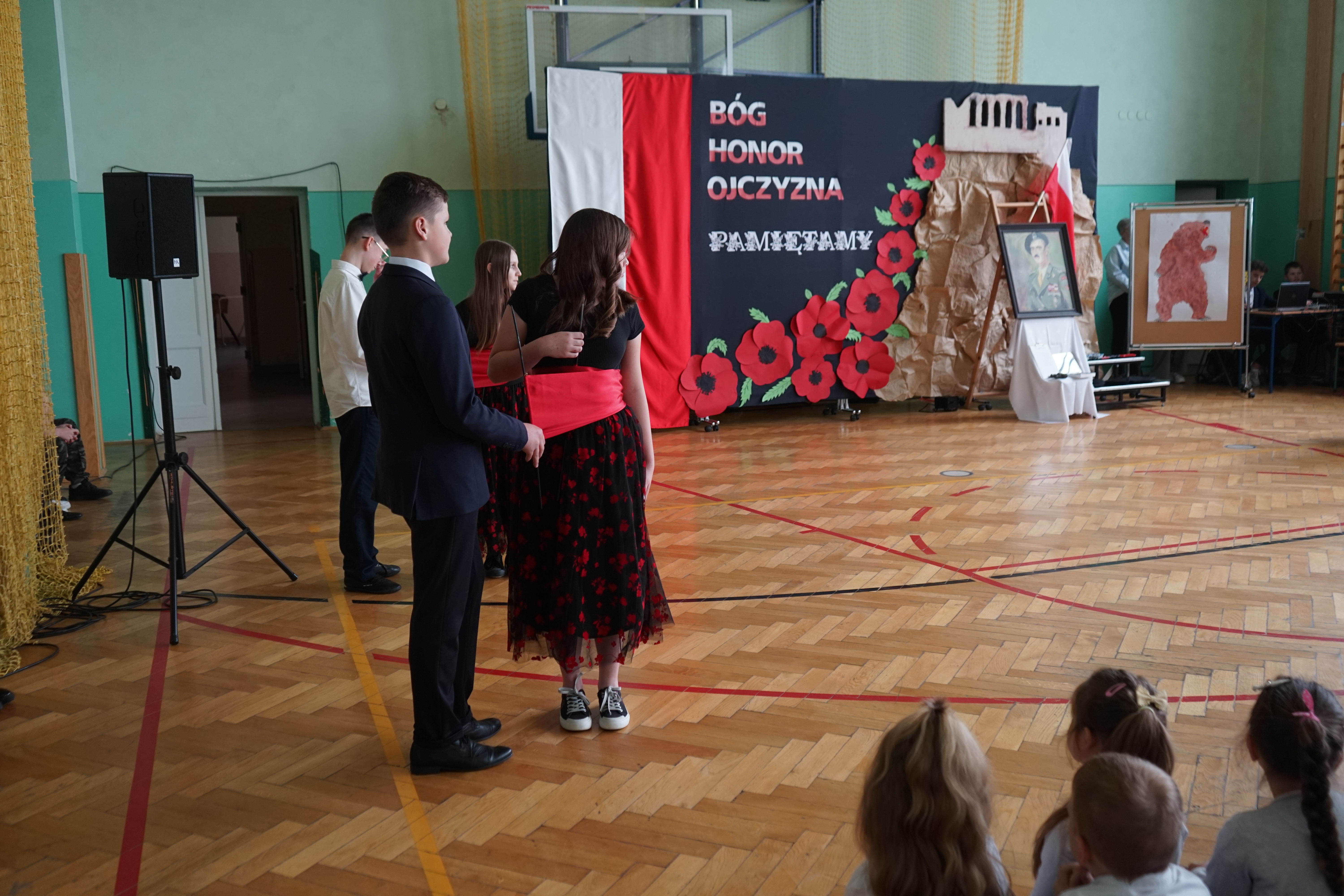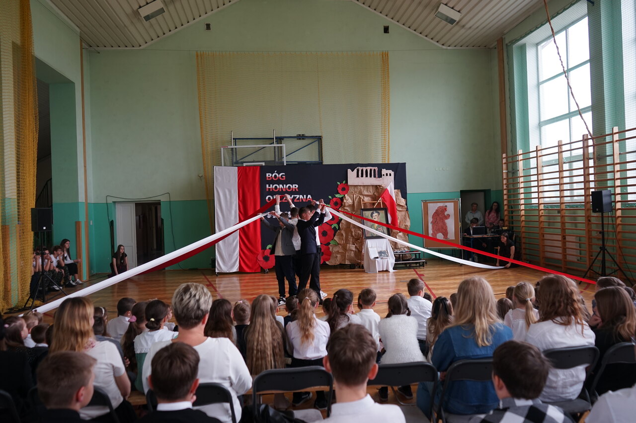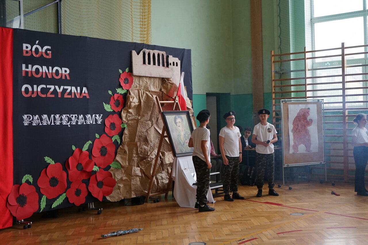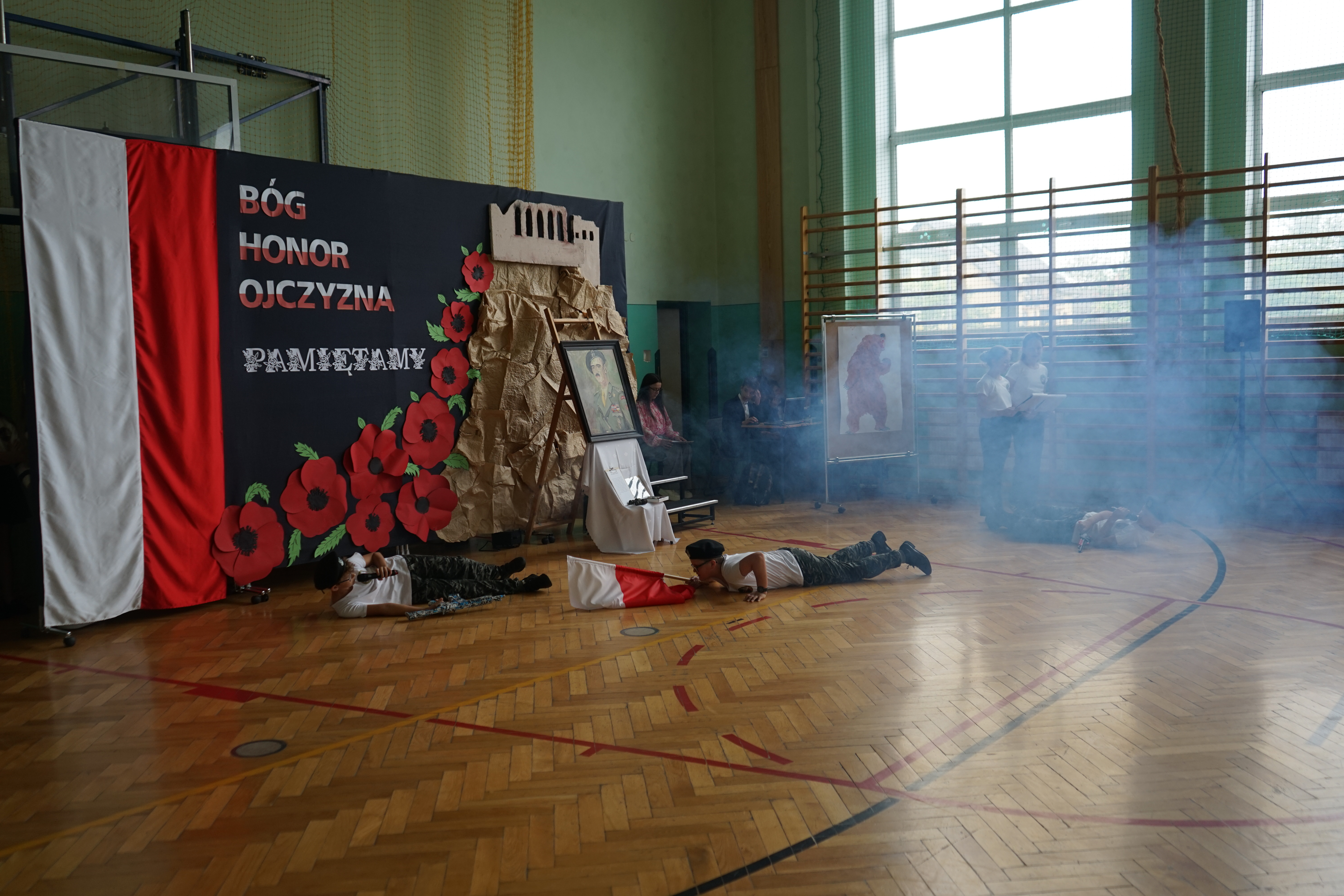 Aktualności 188 20-05-2025 20.05.2025 r. obchodziliśmy w naszej szkole Święto Patrona Szkoły - gen. Władysława Andersa. O godz. 8.15 udaliśmy się do kościoła parafialnego, aby uczestniczyć w uroczystej mszy św., podczas której modliliśmy się za całą społeczność szkolną, powodzenie w nauce i pracy oraz za duszę patrona i żołnierzy, którzy walczyli za wolność naszej ojczyzny. Ksiądz Proboszcz w słowie skierowanym do wszystkich zebranych uświadomił nam, kim jest bohater we współczesnym świecie, co to znaczy być dobrym uczniem, patriotą; zwrócił uwagę na najważniejsze wartości, podkreślając, że prawdziwa miłość Boga jest fundamentem miłości do drugiego człowieka i do ojczyzny. Po powrocie do szkoły nauczyciele oraz uczniowie odśpiewali hymn państwowy, a następnie złożono wiązankę pod tablicą upamiętniającą gen. Władysława Andersa. Następnie w sali gimnastycznej odbyła się uroczysta akademia, poświęcona generałowi Andersowi- dowódcy Armii Polskiej na Wschodzie w czasie II wojny światowej i żołnierzom II Korpusu. Przy tej okazji warto wspomnieć, że 12 maja minęła 55 rocznica śmierci generała, a 18 maja obchodzono 81 rocznicę zdobycia Monte Cassino. Tym razem uczniowie klasy 5 wcielili się w rolę uczestników wycieczki po muzeum II wojny światowej, gdzie spotkała ich niesamowita przygoda. Magiczne berety przeniosły ich do 1944 roku, do klasztornego wzgórza. Tam, początkowo pilnując niedźwiedzia Wojtka, stali się uczestnikami słynnej bitwy o Monte Cassino i bohaterami pomagającymi jednemu z żołnierzy wbić polską flagę na szczycie klasztoru. Wszyscy z wielką dumą odśpiewali hymn naszej szkoły czyli najsłynniejszą pieśń z okresu II wojny światowej – „Czerwone maki na Monte Cassino". Chwile niezwykłego wzruszenia i zadumy zapewnili nam uczniowie klasy 7, którzy wykonali piękny taniec patriotyczny oraz pieśń „ O Panie, któryś jest na niebie” w wykonaniu naszej solistki Malwiny Chojeckiej. Po zakończeniu akademii głos zabrała pani Dyrektor Anna Dziedzic, która podkreśliła, że ten dzień jest dla nas najważniejszym dniem w życiu szkoły oraz okazją do upamiętnienia znaczenia i wkładu generała w historię Polski. Życzyła wszystkim, aby w życiu kierować się wartościami, w które mocno wierzył gen. Anders , bo wiara i ufność Bogu, życie zgodne z zasadami, czyste sumienie i miłość do ojczyzny, w tym do naszej „ małej ojczyzny – Leszczyny” to droga do dobrego życia, do dokonywania odpowiednich wyborów, do pokonywania trudności i realizacji zamierzonych celów. Jest to również sposobność do integracji społeczności szkolnej oraz do budowania więzi między uczniami, nauczycielami i pracownikami szkoły poprzez wspólne obchody i celebrację życia i dokonań patrona. Po części oficjalnej uczniowie udali się wraz z wychowawcami do klas, gdzie zorganizowano maraton filmowy. 0.0 Ostatnia modyfikacja: -/- Powiązane artykuły: Udział w ogólnopolskiej akcji BohaterON - 2025/2026 Olimpiada Mitologiczna 2025 Wyniki konkursu Alfik Matematyczny 2025 Boże Narodzenie 2025 - życzenia Akcja charytatywna „Paczuszka dla Maluszka" 2025 Jasełka i Wigilia - 2025 „Mała książka – wielki człowiek" - 2025 Spotkanie z podróżnikiem - Indie 2025 Paczuszka dla Maluszka - 2025 OTRZĘSINY KLASY 4 I ZABAWA ANDRZEJKOWA – 26.11.2025r. 0