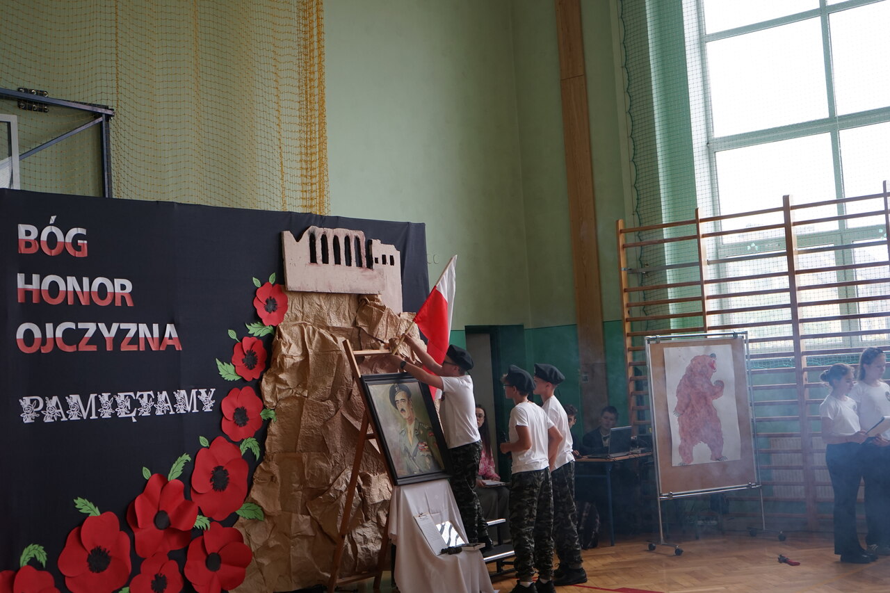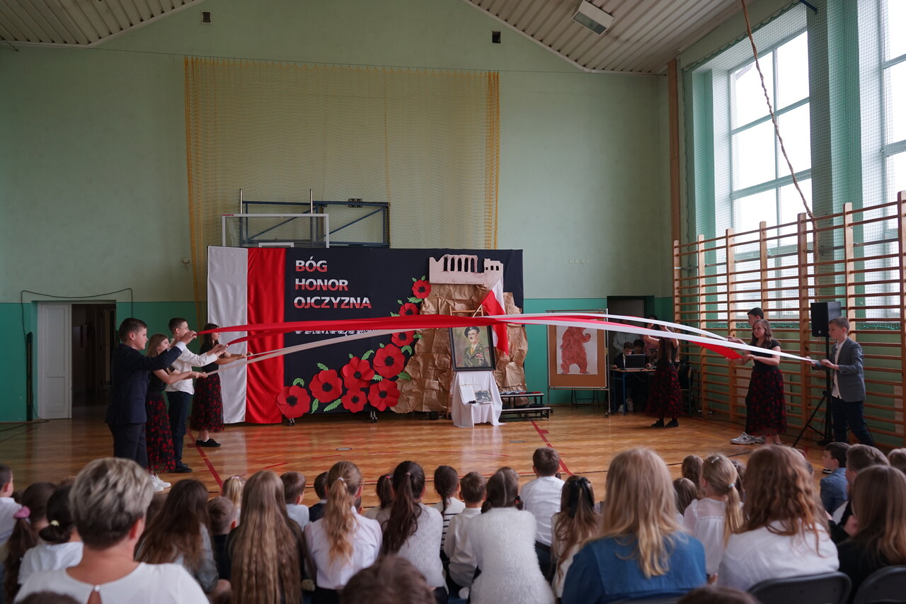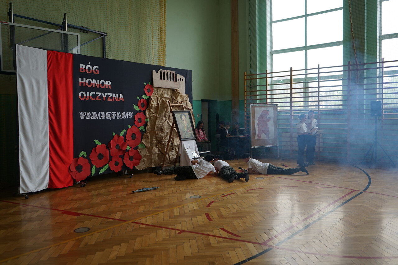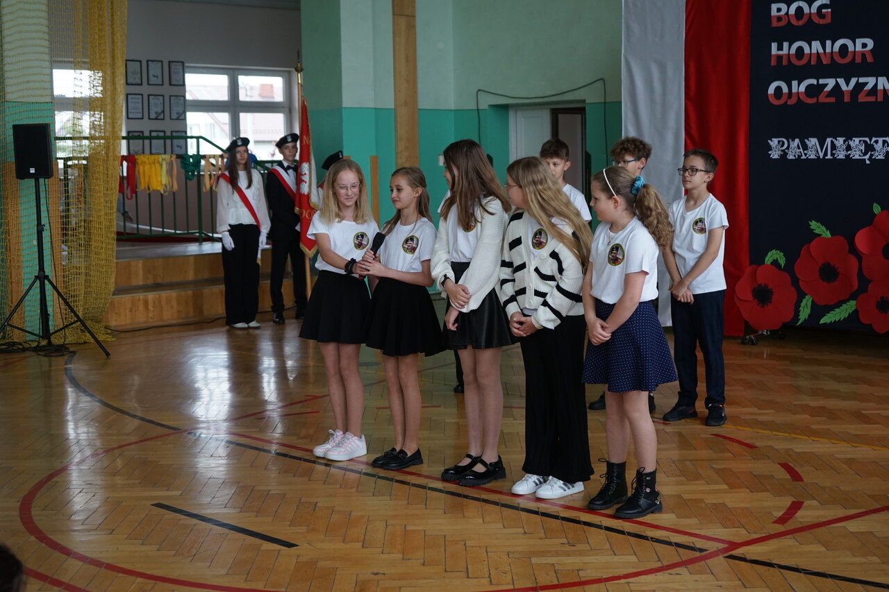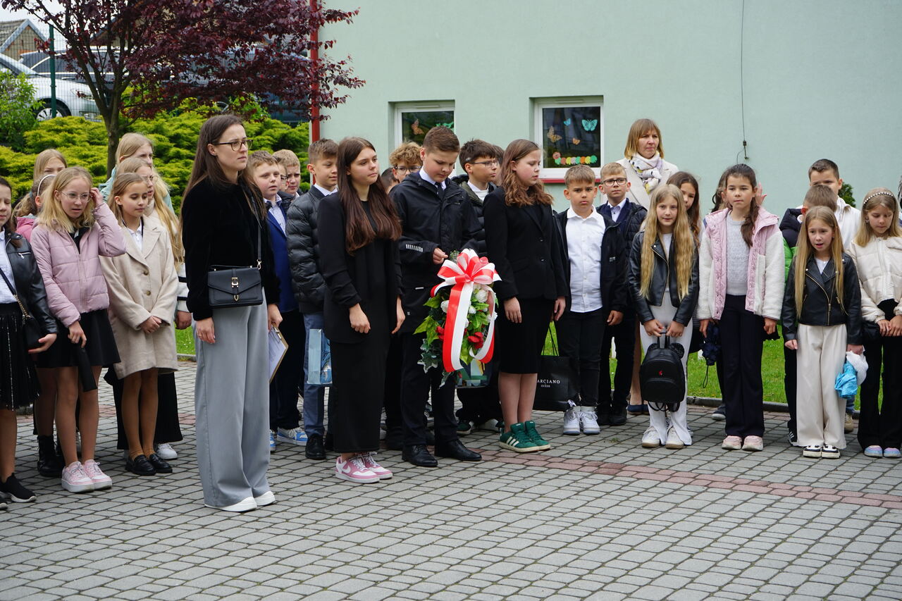 Aktualności 188 20-05-2025 20.05.2025 r. obchodziliśmy w naszej szkole Święto Patrona Szkoły - gen. Władysława Andersa. O godz. 8.15 udaliśmy się do kościoła parafialnego, aby uczestniczyć w uroczystej mszy św., podczas której modliliśmy się za całą społeczność szkolną, powodzenie w nauce i pracy oraz za duszę patrona i żołnierzy, którzy walczyli za wolność naszej ojczyzny. Ksiądz Proboszcz w słowie skierowanym do wszystkich zebranych uświadomił nam, kim jest bohater we współczesnym świecie, co to znaczy być dobrym uczniem, patriotą; zwrócił uwagę na najważniejsze wartości, podkreślając, że prawdziwa miłość Boga jest fundamentem miłości do drugiego człowieka i do ojczyzny. Po powrocie do szkoły nauczyciele oraz uczniowie odśpiewali hymn państwowy, a następnie złożono wiązankę pod tablicą upamiętniającą gen. Władysława Andersa. Następnie w sali gimnastycznej odbyła się uroczysta akademia, poświęcona generałowi Andersowi- dowódcy Armii Polskiej na Wschodzie w czasie II wojny światowej i żołnierzom II Korpusu. Przy tej okazji warto wspomnieć, że 12 maja minęła 55 rocznica śmierci generała, a 18 maja obchodzono 81 rocznicę zdobycia Monte Cassino. Tym razem uczniowie klasy 5 wcielili się w rolę uczestników wycieczki po muzeum II wojny światowej, gdzie spotkała ich niesamowita przygoda. Magiczne berety przeniosły ich do 1944 roku, do klasztornego wzgórza. Tam, początkowo pilnując niedźwiedzia Wojtka, stali się uczestnikami słynnej bitwy o Monte Cassino i bohaterami pomagającymi jednemu z żołnierzy wbić polską flagę na szczycie klasztoru. Wszyscy z wielką dumą odśpiewali hymn naszej szkoły czyli najsłynniejszą pieśń z okresu II wojny światowej – „Czerwone maki na Monte Cassino". Chwile niezwykłego wzruszenia i zadumy zapewnili nam uczniowie klasy 7, którzy wykonali piękny taniec patriotyczny oraz pieśń „ O Panie, któryś jest na niebie” w wykonaniu naszej solistki Malwiny Chojeckiej. Po zakończeniu akademii głos zabrała pani Dyrektor Anna Dziedzic, która podkreśliła, że ten dzień jest dla nas najważniejszym dniem w życiu szkoły oraz okazją do upamiętnienia znaczenia i wkładu generała w historię Polski. Życzyła wszystkim, aby w życiu kierować się wartościami, w które mocno wierzył gen. Anders , bo wiara i ufność Bogu, życie zgodne z zasadami, czyste sumienie i miłość do ojczyzny, w tym do naszej „ małej ojczyzny – Leszczyny” to droga do dobrego życia, do dokonywania odpowiednich wyborów, do pokonywania trudności i realizacji zamierzonych celów. Jest to również sposobność do integracji społeczności szkolnej oraz do budowania więzi między uczniami, nauczycielami i pracownikami szkoły poprzez wspólne obchody i celebrację życia i dokonań patrona. Po części oficjalnej uczniowie udali się wraz z wychowawcami do klas, gdzie zorganizowano maraton filmowy. 0.0 Ostatnia modyfikacja: -/- Powiązane artykuły: Udział w ogólnopolskiej akcji BohaterON - 2025/2026 Olimpiada Mitologiczna 2025 Wyniki konkursu Alfik Matematyczny 2025 Boże Narodzenie 2025 - życzenia Akcja charytatywna „Paczuszka dla Maluszka" 2025 Jasełka i Wigilia - 2025 „Mała książka – wielki człowiek" - 2025 Spotkanie z podróżnikiem - Indie 2025 Paczuszka dla Maluszka - 2025 OTRZĘSINY KLASY 4 I ZABAWA ANDRZEJKOWA – 26.11.2025r. 0
