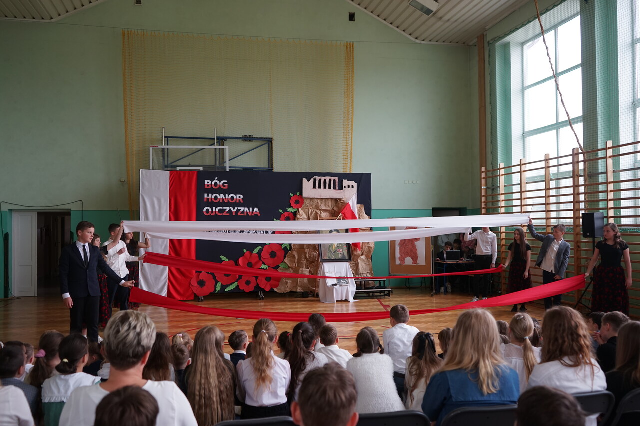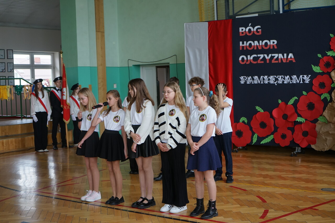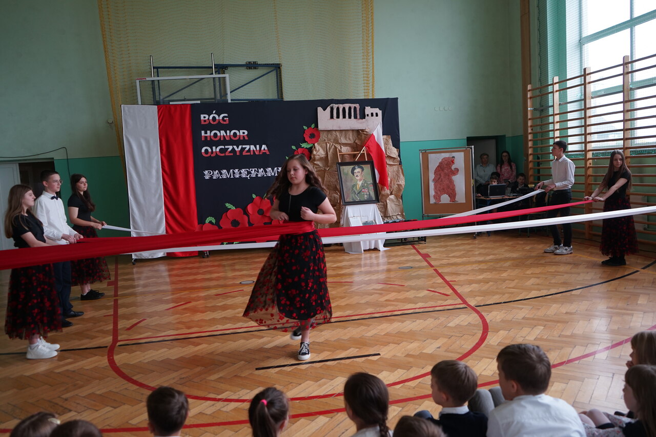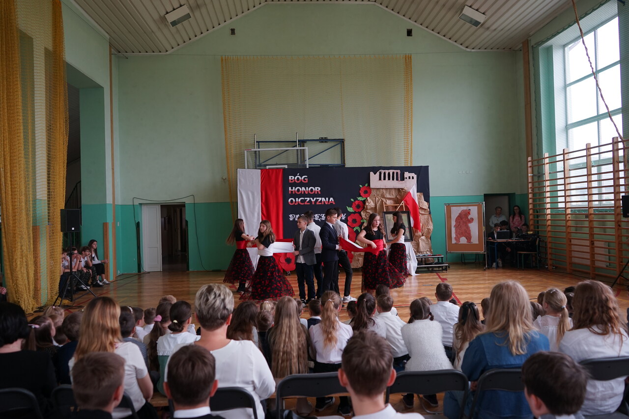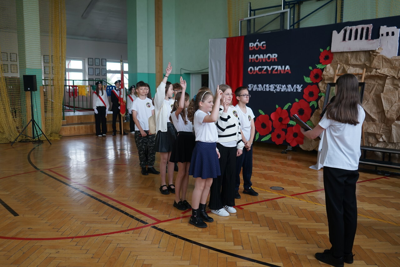 Aktualności 188 20-05-2025 20.05.2025 r. obchodziliśmy w naszej szkole Święto Patrona Szkoły - gen. Władysława Andersa. O godz. 8.15 udaliśmy się do kościoła parafialnego, aby uczestniczyć w uroczystej mszy św., podczas której modliliśmy się za całą społeczność szkolną, powodzenie w nauce i pracy oraz za duszę patrona i żołnierzy, którzy walczyli za wolność naszej ojczyzny. Ksiądz Proboszcz w słowie skierowanym do wszystkich zebranych uświadomił nam, kim jest bohater we współczesnym świecie, co to znaczy być dobrym uczniem, patriotą; zwrócił uwagę na najważniejsze wartości, podkreślając, że prawdziwa miłość Boga jest fundamentem miłości do drugiego człowieka i do ojczyzny. Po powrocie do szkoły nauczyciele oraz uczniowie odśpiewali hymn państwowy, a następnie złożono wiązankę pod tablicą upamiętniającą gen. Władysława Andersa. Następnie w sali gimnastycznej odbyła się uroczysta akademia, poświęcona generałowi Andersowi- dowódcy Armii Polskiej na Wschodzie w czasie II wojny światowej i żołnierzom II Korpusu. Przy tej okazji warto wspomnieć, że 12 maja minęła 55 rocznica śmierci generała, a 18 maja obchodzono 81 rocznicę zdobycia Monte Cassino. Tym razem uczniowie klasy 5 wcielili się w rolę uczestników wycieczki po muzeum II wojny światowej, gdzie spotkała ich niesamowita przygoda. Magiczne berety przeniosły ich do 1944 roku, do klasztornego wzgórza. Tam, początkowo pilnując niedźwiedzia Wojtka, stali się uczestnikami słynnej bitwy o Monte Cassino i bohaterami pomagającymi jednemu z żołnierzy wbić polską flagę na szczycie klasztoru. Wszyscy z wielką dumą odśpiewali hymn naszej szkoły czyli najsłynniejszą pieśń z okresu II wojny światowej – „Czerwone maki na Monte Cassino". Chwile niezwykłego wzruszenia i zadumy zapewnili nam uczniowie klasy 7, którzy wykonali piękny taniec patriotyczny oraz pieśń „ O Panie, któryś jest na niebie” w wykonaniu naszej solistki Malwiny Chojeckiej. Po zakończeniu akademii głos zabrała pani Dyrektor Anna Dziedzic, która podkreśliła, że ten dzień jest dla nas najważniejszym dniem w życiu szkoły oraz okazją do upamiętnienia znaczenia i wkładu generała w historię Polski. Życzyła wszystkim, aby w życiu kierować się wartościami, w które mocno wierzył gen. Anders , bo wiara i ufność Bogu, życie zgodne z zasadami, czyste sumienie i miłość do ojczyzny, w tym do naszej „ małej ojczyzny – Leszczyny” to droga do dobrego życia, do dokonywania odpowiednich wyborów, do pokonywania trudności i realizacji zamierzonych celów. Jest to również sposobność do integracji społeczności szkolnej oraz do budowania więzi między uczniami, nauczycielami i pracownikami szkoły poprzez wspólne obchody i celebrację życia i dokonań patrona. Po części oficjalnej uczniowie udali się wraz z wychowawcami do klas, gdzie zorganizowano maraton filmowy. 0.0 Ostatnia modyfikacja: -/- Powiązane artykuły: Udział w ogólnopolskiej akcji BohaterON - 2025/2026 Olimpiada Mitologiczna 2025 Wyniki konkursu Alfik Matematyczny 2025 Boże Narodzenie 2025 - życzenia Akcja charytatywna „Paczuszka dla Maluszka" 2025 Jasełka i Wigilia - 2025 „Mała książka – wielki człowiek" - 2025 Spotkanie z podróżnikiem - Indie 2025 Paczuszka dla Maluszka - 2025 OTRZĘSINY KLASY 4 I ZABAWA ANDRZEJKOWA – 26.11.2025r. 0