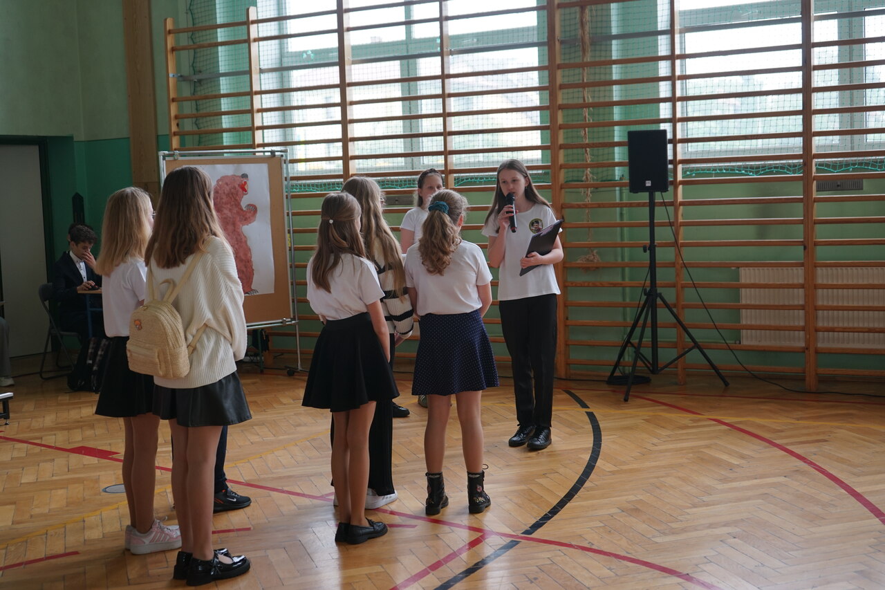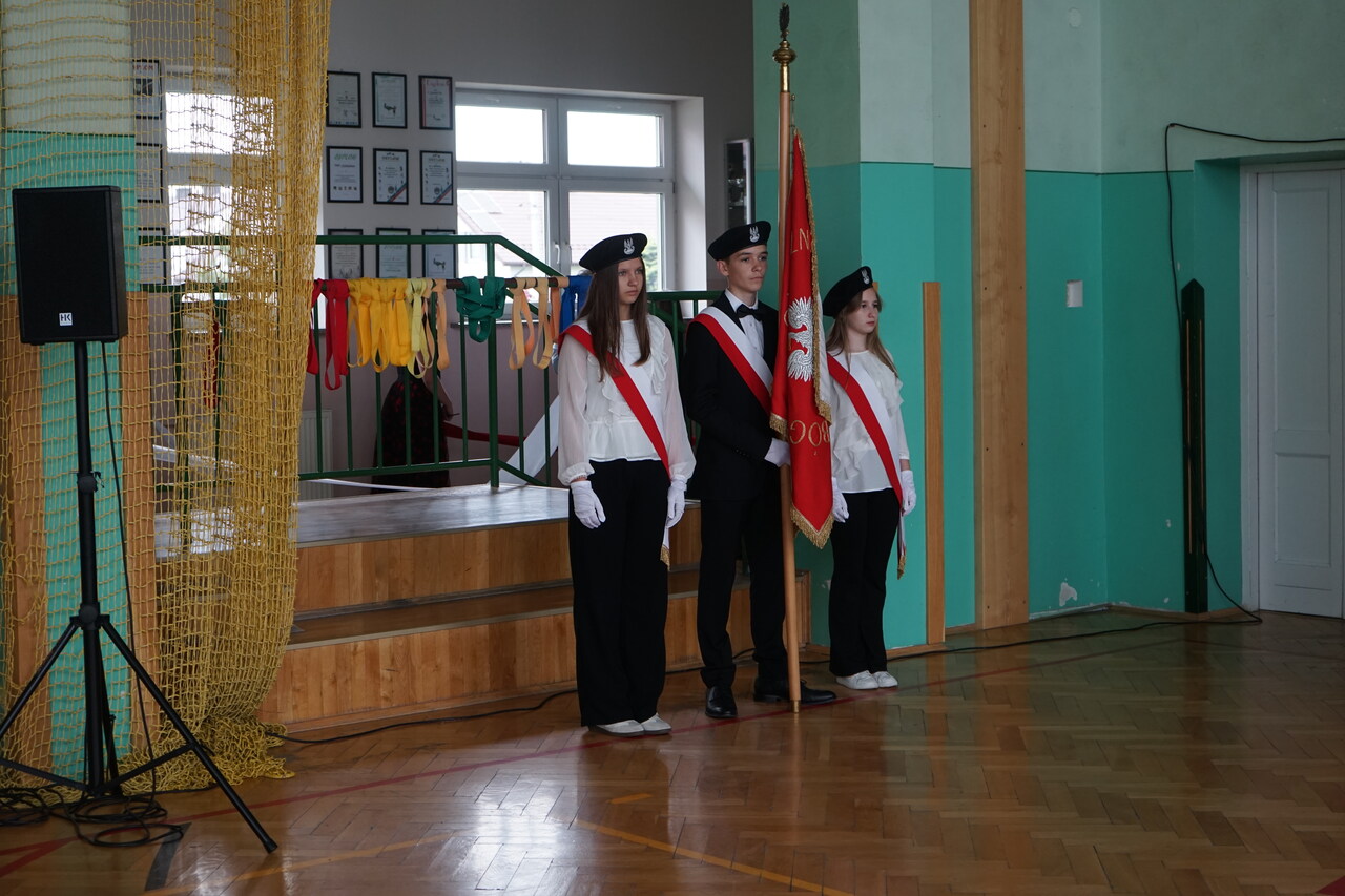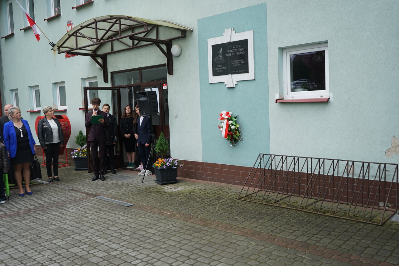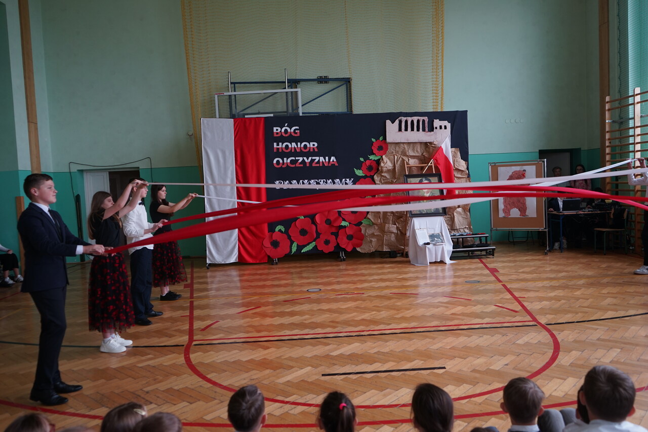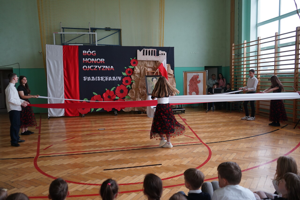 Aktualności 188 20-05-2025 20.05.2025 r. obchodziliśmy w naszej szkole Święto Patrona Szkoły - gen. Władysława Andersa. O godz. 8.15 udaliśmy się do kościoła parafialnego, aby uczestniczyć w uroczystej mszy św., podczas której modliliśmy się za całą społeczność szkolną, powodzenie w nauce i pracy oraz za duszę patrona i żołnierzy, którzy walczyli za wolność naszej ojczyzny. Ksiądz Proboszcz w słowie skierowanym do wszystkich zebranych uświadomił nam, kim jest bohater we współczesnym świecie, co to znaczy być dobrym uczniem, patriotą; zwrócił uwagę na najważniejsze wartości, podkreślając, że prawdziwa miłość Boga jest fundamentem miłości do drugiego człowieka i do ojczyzny. Po powrocie do szkoły nauczyciele oraz uczniowie odśpiewali hymn państwowy, a następnie złożono wiązankę pod tablicą upamiętniającą gen. Władysława Andersa. Następnie w sali gimnastycznej odbyła się uroczysta akademia, poświęcona generałowi Andersowi- dowódcy Armii Polskiej na Wschodzie w czasie II wojny światowej i żołnierzom II Korpusu. Przy tej okazji warto wspomnieć, że 12 maja minęła 55 rocznica śmierci generała, a 18 maja obchodzono 81 rocznicę zdobycia Monte Cassino. Tym razem uczniowie klasy 5 wcielili się w rolę uczestników wycieczki po muzeum II wojny światowej, gdzie spotkała ich niesamowita przygoda. Magiczne berety przeniosły ich do 1944 roku, do klasztornego wzgórza. Tam, początkowo pilnując niedźwiedzia Wojtka, stali się uczestnikami słynnej bitwy o Monte Cassino i bohaterami pomagającymi jednemu z żołnierzy wbić polską flagę na szczycie klasztoru. Wszyscy z wielką dumą odśpiewali hymn naszej szkoły czyli najsłynniejszą pieśń z okresu II wojny światowej – „Czerwone maki na Monte Cassino". Chwile niezwykłego wzruszenia i zadumy zapewnili nam uczniowie klasy 7, którzy wykonali piękny taniec patriotyczny oraz pieśń „ O Panie, któryś jest na niebie” w wykonaniu naszej solistki Malwiny Chojeckiej. Po zakończeniu akademii głos zabrała pani Dyrektor Anna Dziedzic, która podkreśliła, że ten dzień jest dla nas najważniejszym dniem w życiu szkoły oraz okazją do upamiętnienia znaczenia i wkładu generała w historię Polski. Życzyła wszystkim, aby w życiu kierować się wartościami, w które mocno wierzył gen. Anders , bo wiara i ufność Bogu, życie zgodne z zasadami, czyste sumienie i miłość do ojczyzny, w tym do naszej „ małej ojczyzny – Leszczyny” to droga do dobrego życia, do dokonywania odpowiednich wyborów, do pokonywania trudności i realizacji zamierzonych celów. Jest to również sposobność do integracji społeczności szkolnej oraz do budowania więzi między uczniami, nauczycielami i pracownikami szkoły poprzez wspólne obchody i celebrację życia i dokonań patrona. Po części oficjalnej uczniowie udali się wraz z wychowawcami do klas, gdzie zorganizowano maraton filmowy. 0.0 Ostatnia modyfikacja: -/- Powiązane artykuły: Udział w ogólnopolskiej akcji BohaterON - 2025/2026 Olimpiada Mitologiczna 2025 Wyniki konkursu Alfik Matematyczny 2025 Boże Narodzenie 2025 - życzenia Akcja charytatywna „Paczuszka dla Maluszka" 2025 Jasełka i Wigilia - 2025 „Mała książka – wielki człowiek" - 2025 Spotkanie z podróżnikiem - Indie 2025 Paczuszka dla Maluszka - 2025 OTRZĘSINY KLASY 4 I ZABAWA ANDRZEJKOWA – 26.11.2025r. 0