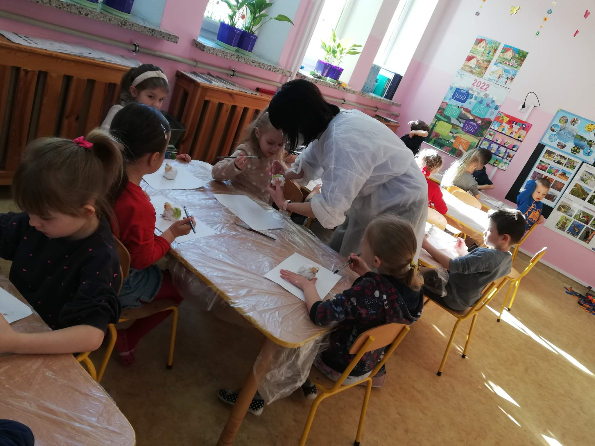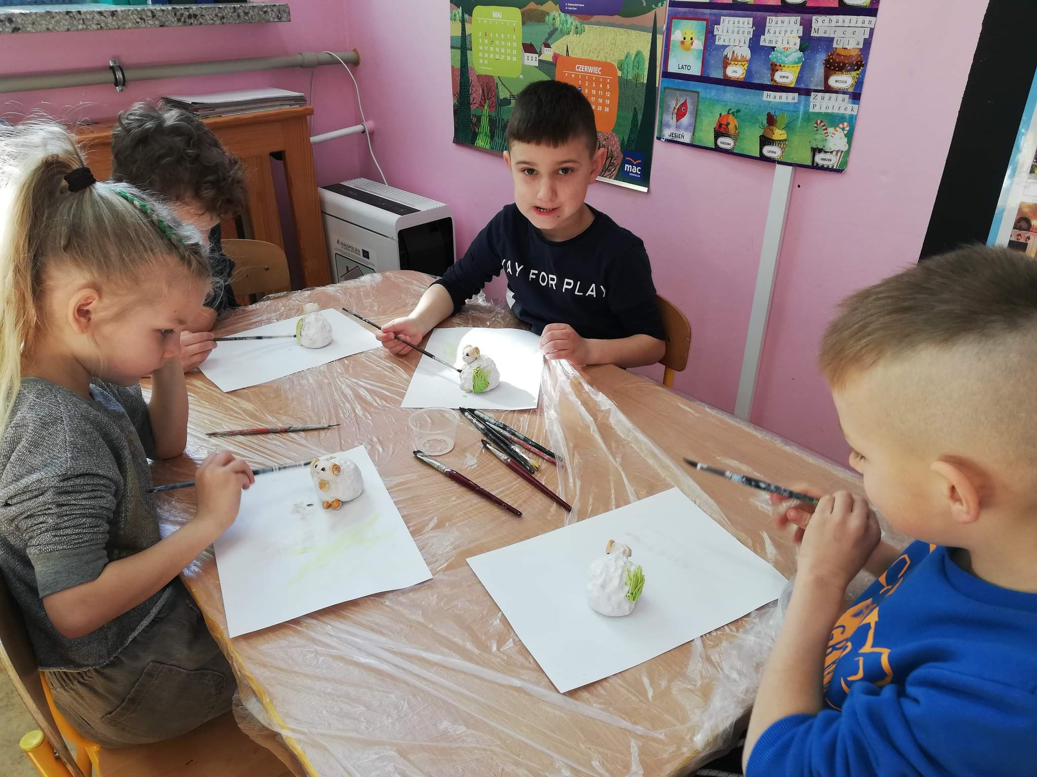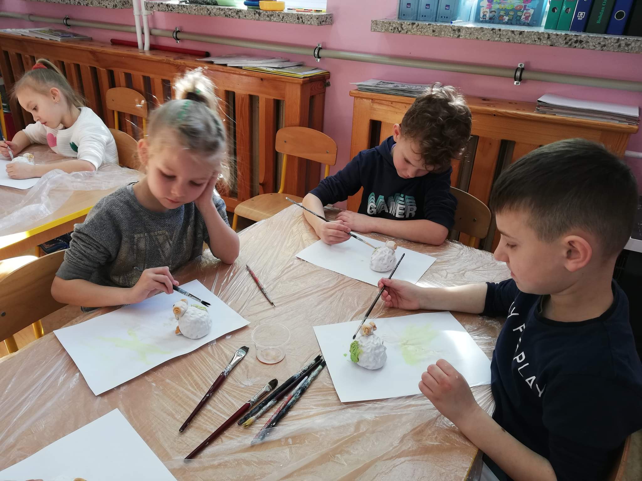 Aktualności 588 24-03-2022 W dniu 23 marca 2022 roku dzieci z oddziału przedszkolnego wzięły udział w warsztatach ceramicznych prowadzonych przez p. U. Mistarz. Tym razem przedszkolaki lepiły z gliny baranki wielkanocne. Pracując z ogromnym zaangażowaniem udało im sie stworzyć naprawdę ładne prace. Napewno te piękne baranki posłużą do wykonania świątecznych stroików i dekoracji wielkanocnych w ich rodzinnych domach. 0.0 Ostatnia modyfikacja: -/- Powiązane artykuły: Warsztaty z policjantką w naszej szkole! Warsztaty profilaktyczne! Warsztaty przyrodnicze - las w słoiku Warsztaty tematyczne dla nauczycieli WARSZTATY CZEKOLADOWE WARSZTATY CERAMICZNE 05.12.2023 WARSZTATY CERAMICZNE - DRUGIE SPOTKANIE Warsztaty ceramiczne 21.02.2023 Zapisy na warsztaty z użyciem modeli edukacyjnych bazujących na projektach Leonardo da Vinci Najnowocześniejszy sprzęt dydaktyczny – monitor interaktywny w oddziale przedszkolnym 0