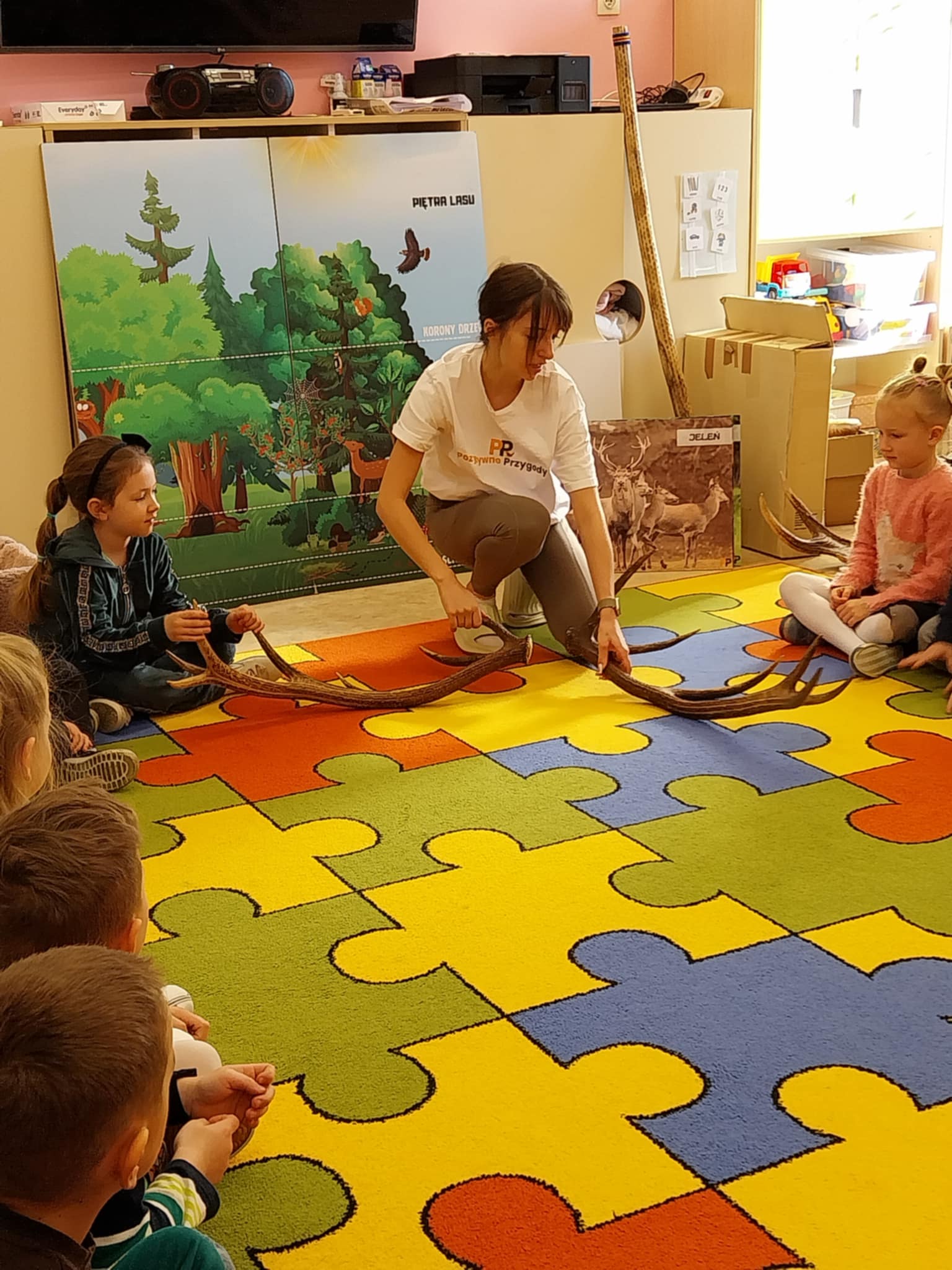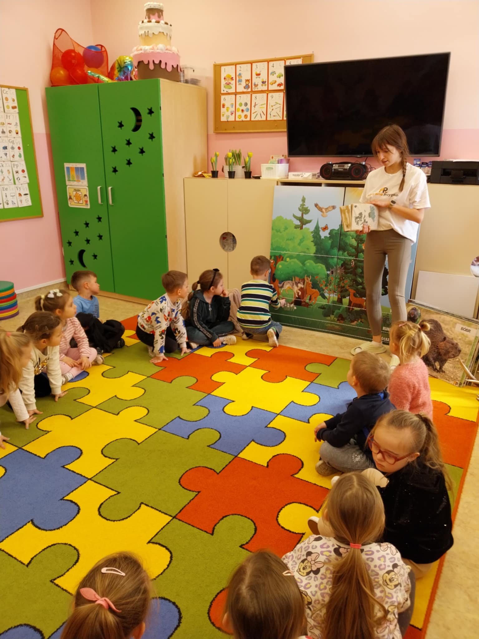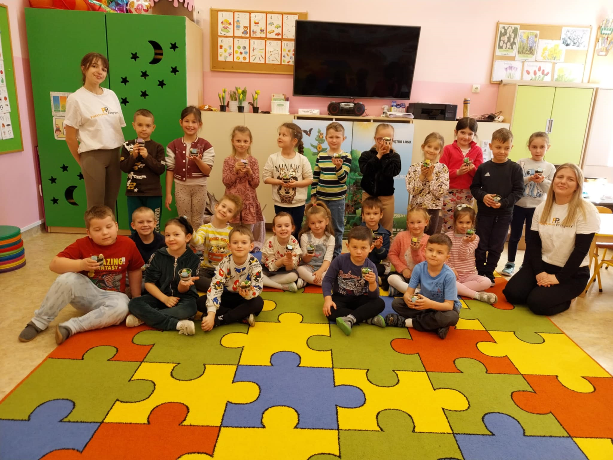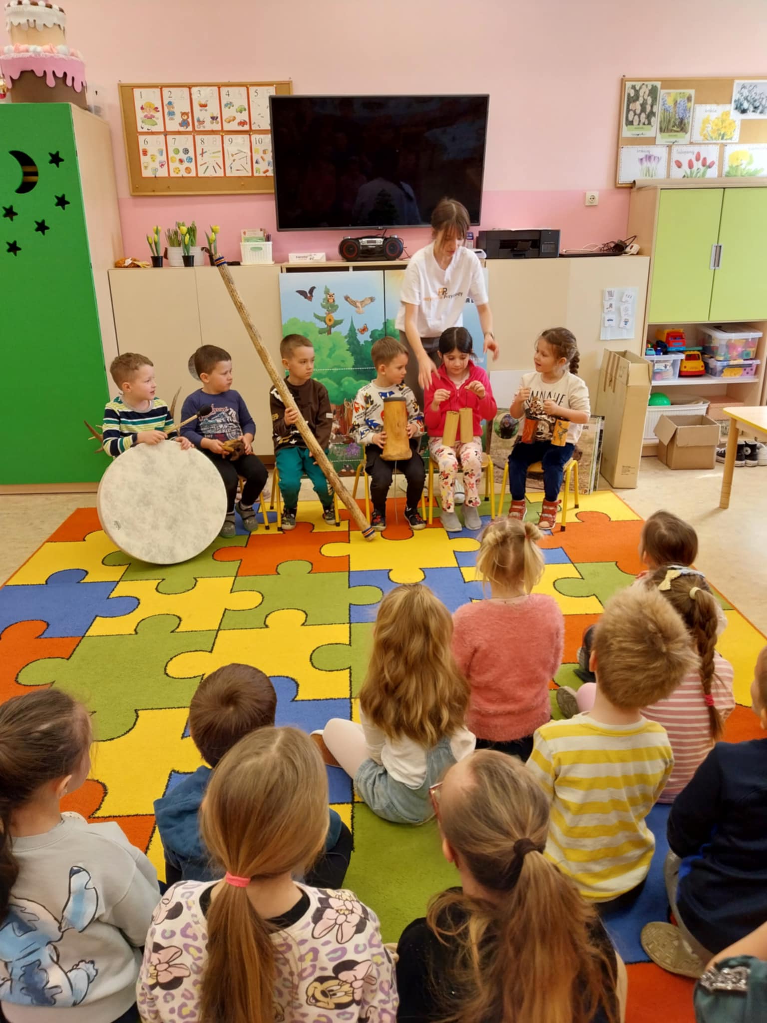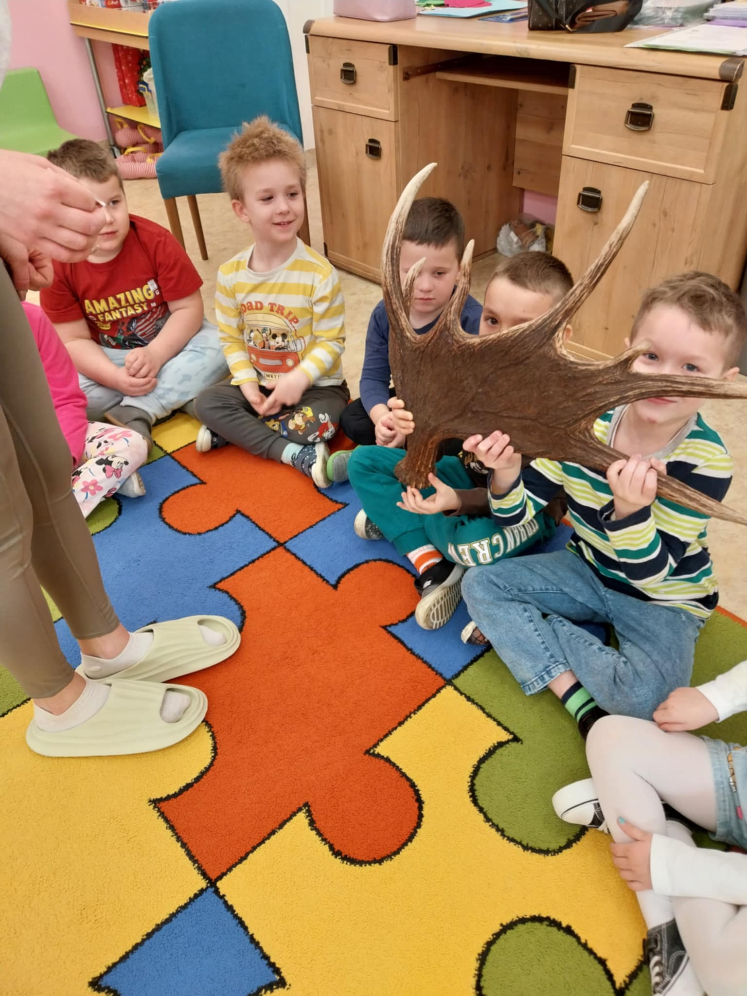 Aktualności 154 24-03-2025 21 marca 2025 roku dzieci z oddziału przedszkolnego uczestniczyły w warsztatach edukacyjnych – LEŚNE PRZYGODY. Tego typu warsztaty przyrodnicze dla dzieci dają szansę na poznawanie przyrody w placówkach edukacyjnych, łączą teorię z praktyką, rozwijają kreatywność, motorykę i umiejętność logicznego myślenia. W czasie tych zajęć dzieci odkrywały sekrety leśnych zwierząt i roślin, dowiedziały się co to jest las, kogo tam można spotkać. Poznały kilka najbardziej charakterystycznych mieszkańców lasu. Największą popularnością cieszył się pokaz poroży jeleniowatych( łosia, jelenia i sarny). Dużą atrakcją warsztatów była możliwość gry na niespotykanych instrumentach muzycznych. Ostatnim elementem zajęć była ciekawa praca plastyczna. Każde dziecko wykorzystując materiał przyrodniczy wykonało miniaturowy las w słoiku. Wykonaną pracę dzieci zabrały do domów. 0.0 Ostatnia modyfikacja: -/- Powiązane artykuły: Warsztaty z policjantką w naszej szkole! Warsztaty profilaktyczne! Warsztaty tematyczne dla nauczycieli WARSZTATY CZEKOLADOWE WARSZTATY CERAMICZNE 05.12.2023 WARSZTATY CERAMICZNE - DRUGIE SPOTKANIE Warsztaty ceramiczne 21.02.2023 Zapisy na warsztaty z użyciem modeli edukacyjnych bazujących na projektach Leonardo da Vinci Warsztaty ceramiczne w oddziale przedszkolnym Warsztaty chemiczno-biologiczne na Politechnice Krakowskiej dla uczniów klasy 5 i 6 0