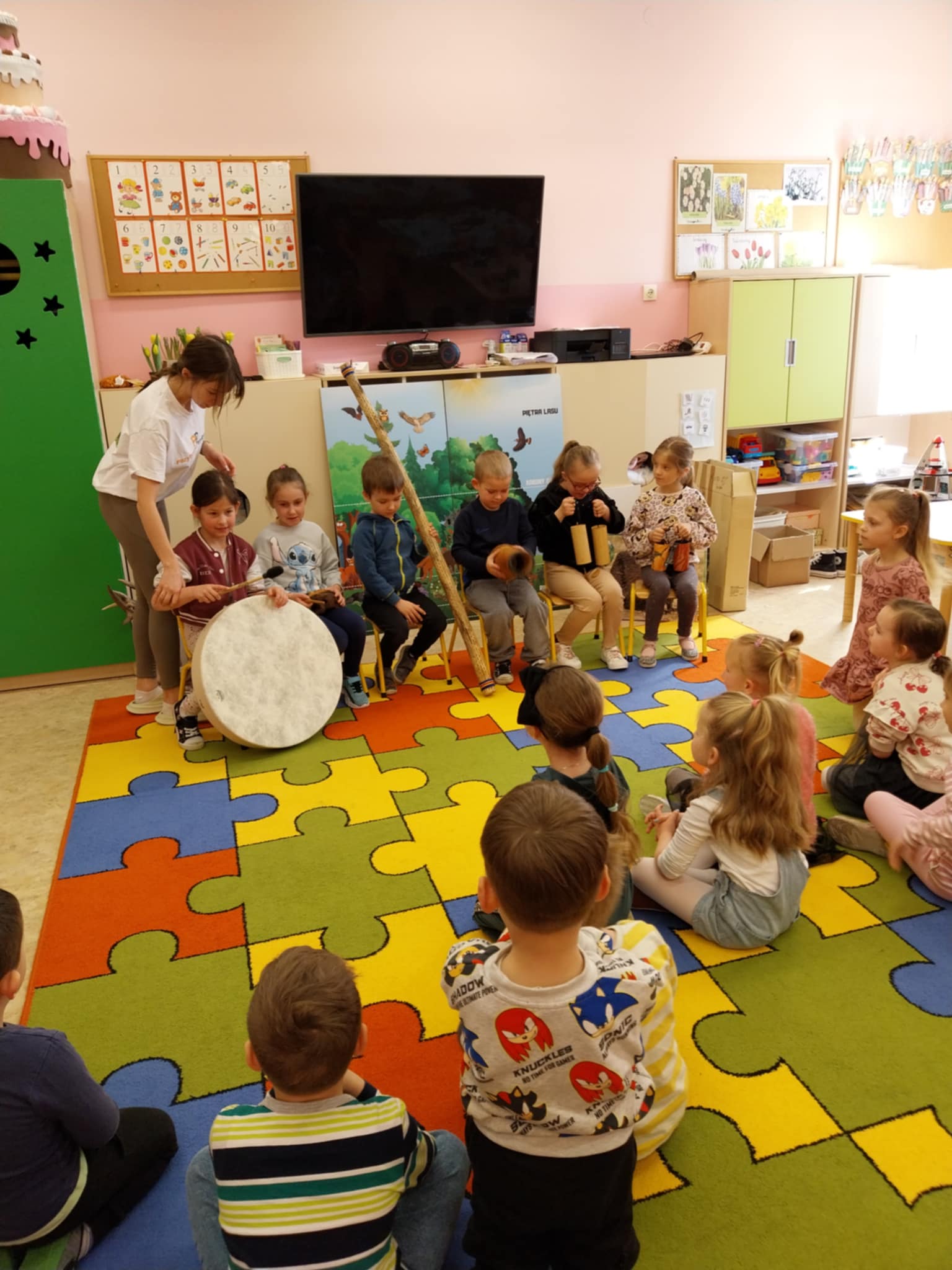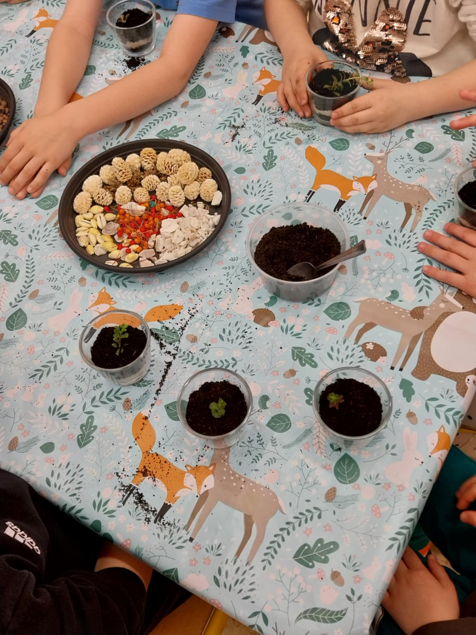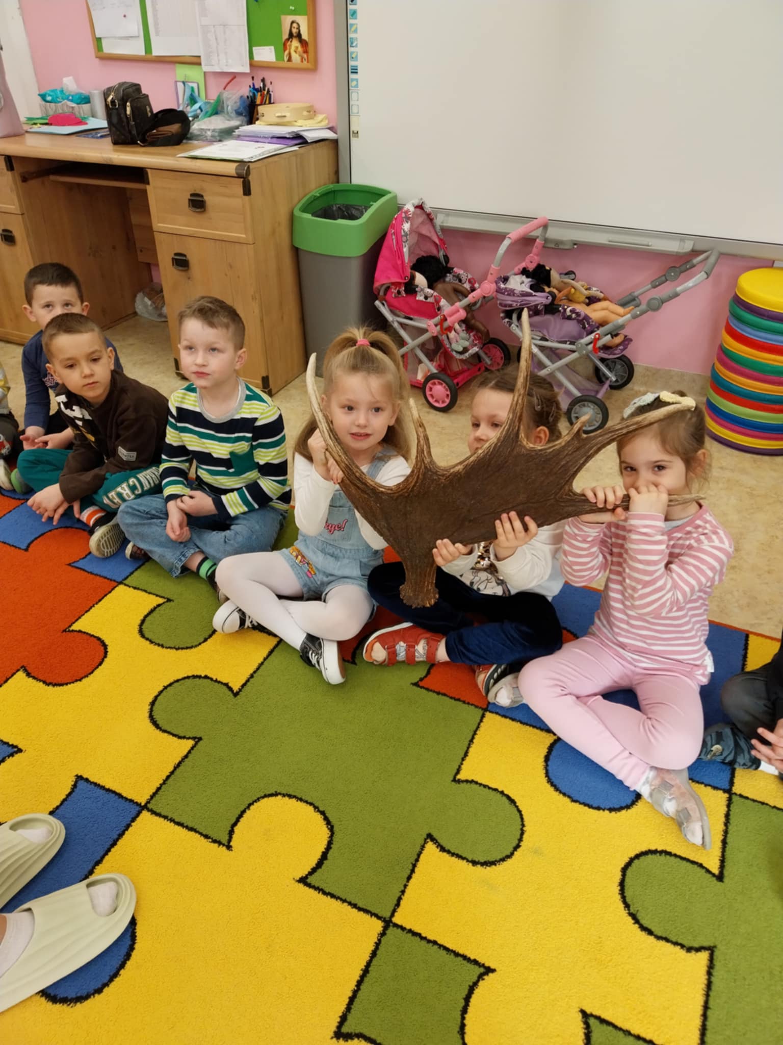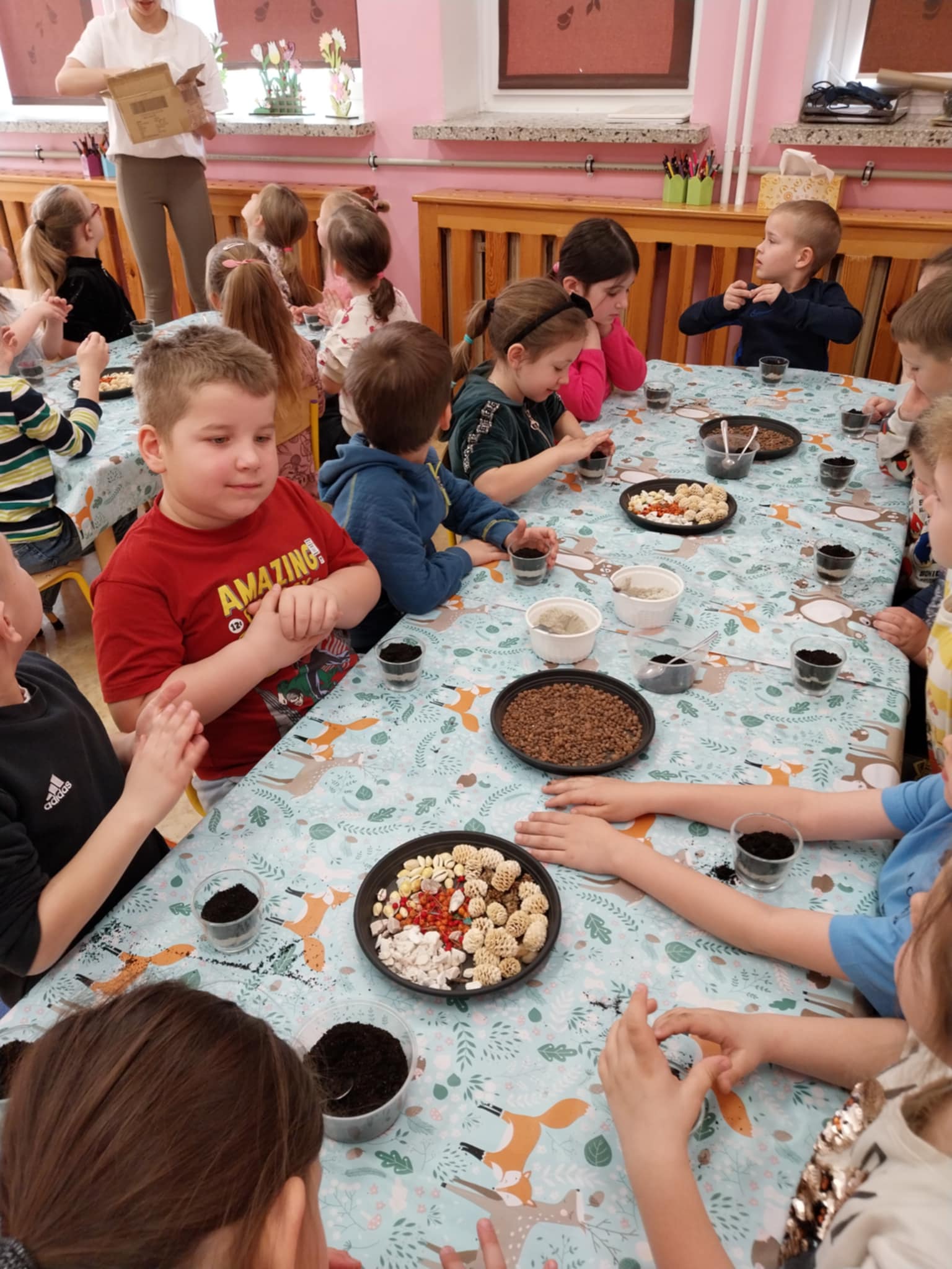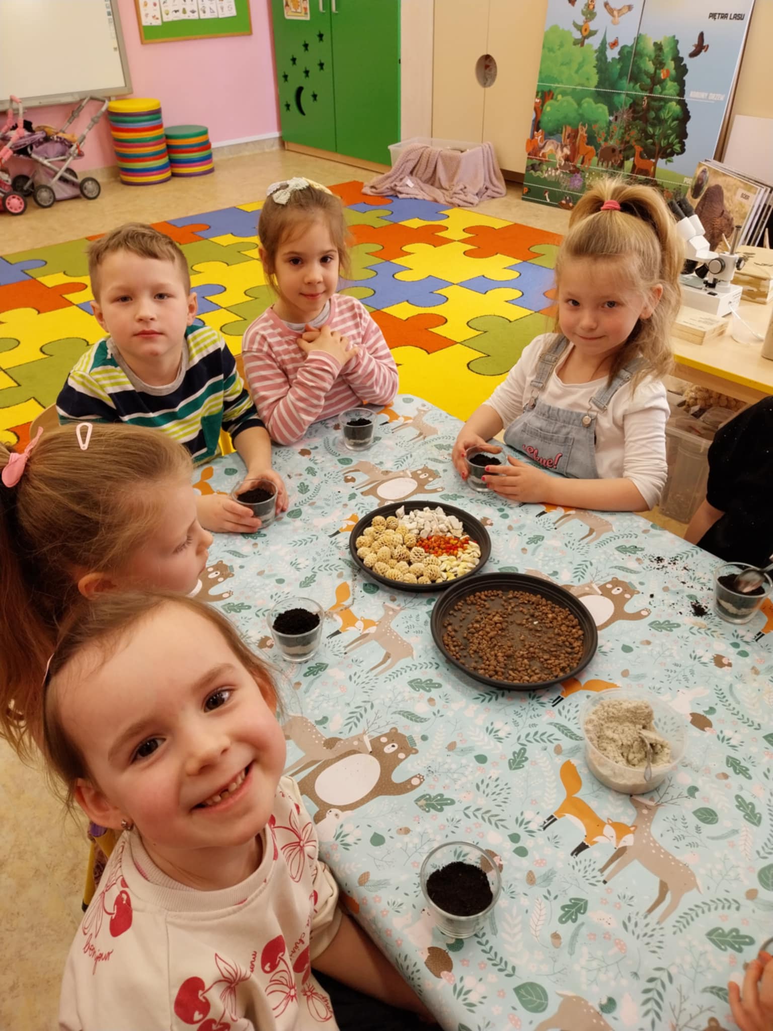 Aktualności 154 24-03-2025 21 marca 2025 roku dzieci z oddziału przedszkolnego uczestniczyły w warsztatach edukacyjnych – LEŚNE PRZYGODY. Tego typu warsztaty przyrodnicze dla dzieci dają szansę na poznawanie przyrody w placówkach edukacyjnych, łączą teorię z praktyką, rozwijają kreatywność, motorykę i umiejętność logicznego myślenia. W czasie tych zajęć dzieci odkrywały sekrety leśnych zwierząt i roślin, dowiedziały się co to jest las, kogo tam można spotkać. Poznały kilka najbardziej charakterystycznych mieszkańców lasu. Największą popularnością cieszył się pokaz poroży jeleniowatych( łosia, jelenia i sarny). Dużą atrakcją warsztatów była możliwość gry na niespotykanych instrumentach muzycznych. Ostatnim elementem zajęć była ciekawa praca plastyczna. Każde dziecko wykorzystując materiał przyrodniczy wykonało miniaturowy las w słoiku. Wykonaną pracę dzieci zabrały do domów. 0.0 Ostatnia modyfikacja: -/- Powiązane artykuły: Warsztaty z policjantką w naszej szkole! Warsztaty profilaktyczne! Warsztaty tematyczne dla nauczycieli WARSZTATY CZEKOLADOWE WARSZTATY CERAMICZNE 05.12.2023 WARSZTATY CERAMICZNE - DRUGIE SPOTKANIE Warsztaty ceramiczne 21.02.2023 Zapisy na warsztaty z użyciem modeli edukacyjnych bazujących na projektach Leonardo da Vinci Warsztaty ceramiczne w oddziale przedszkolnym Warsztaty chemiczno-biologiczne na Politechnice Krakowskiej dla uczniów klasy 5 i 6 0