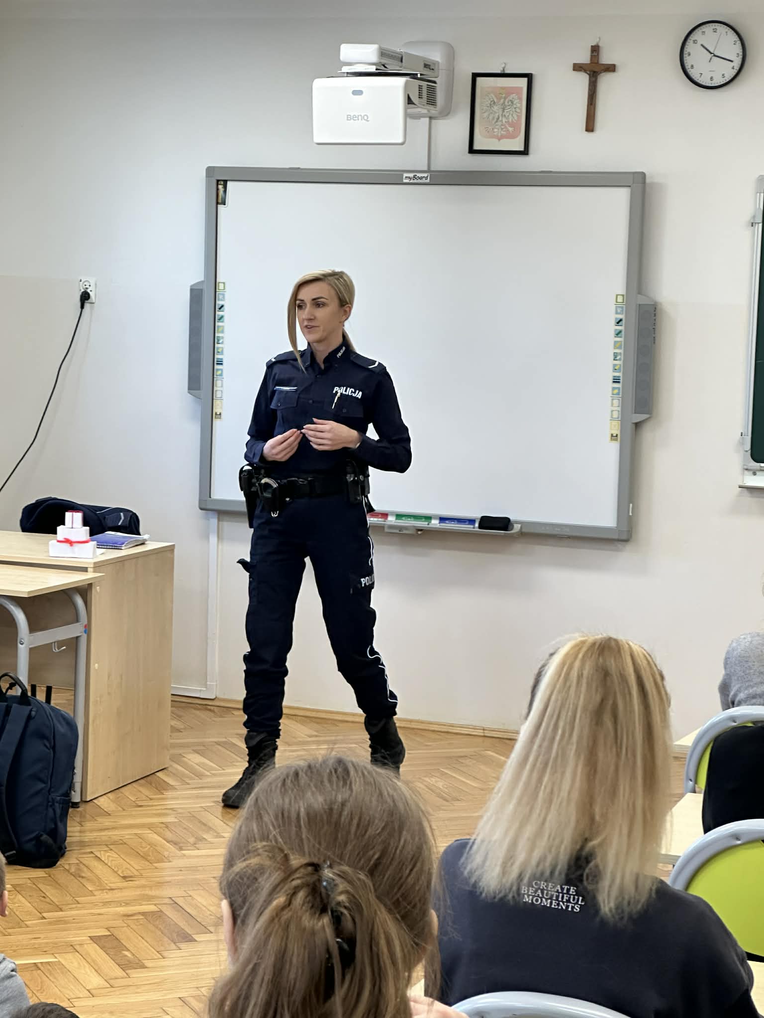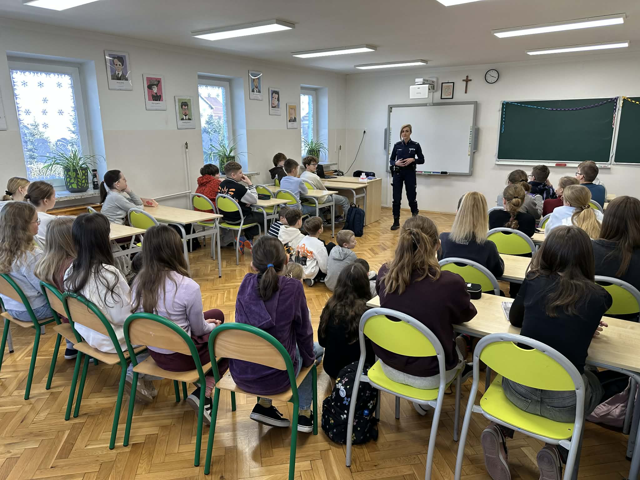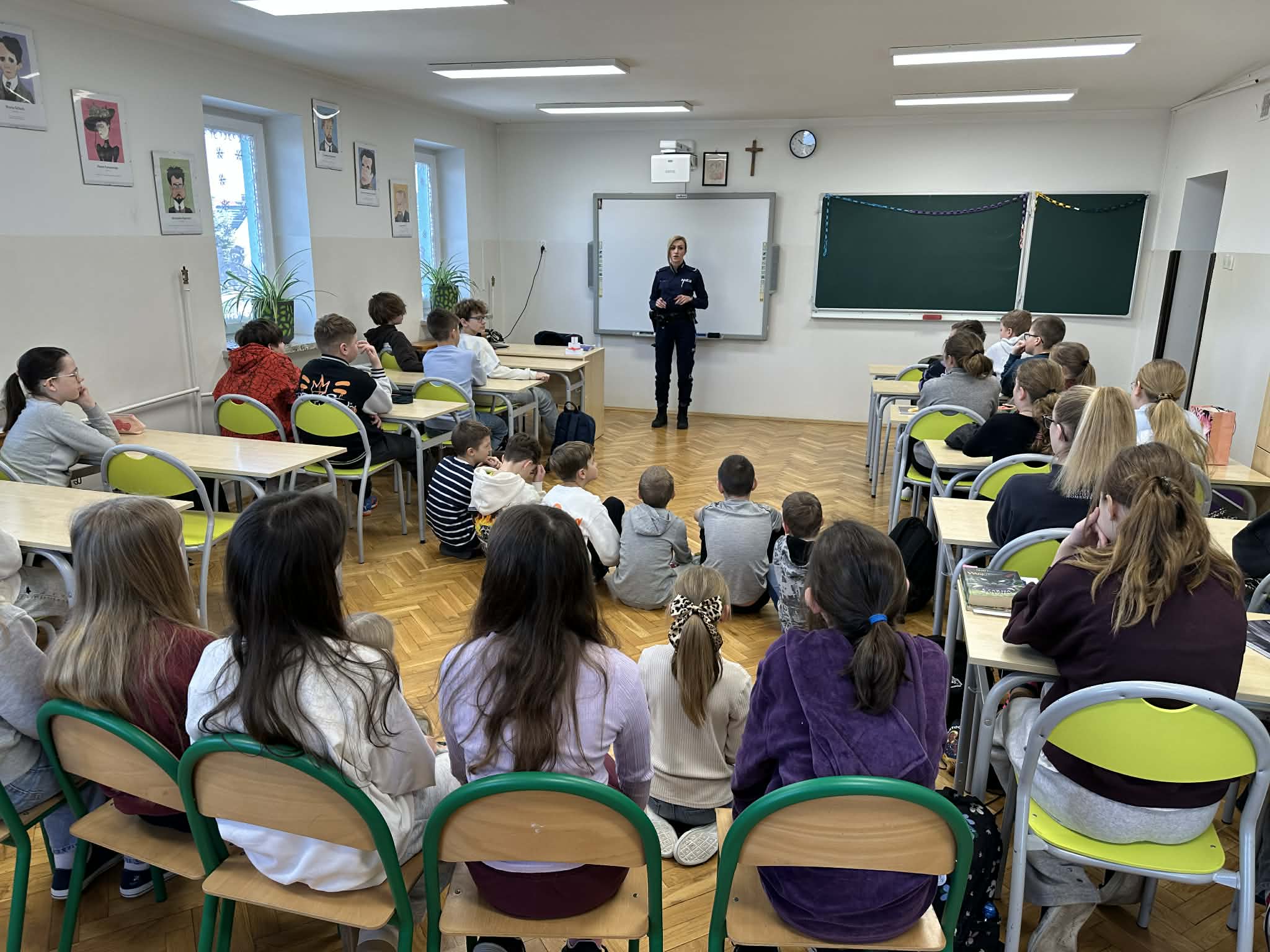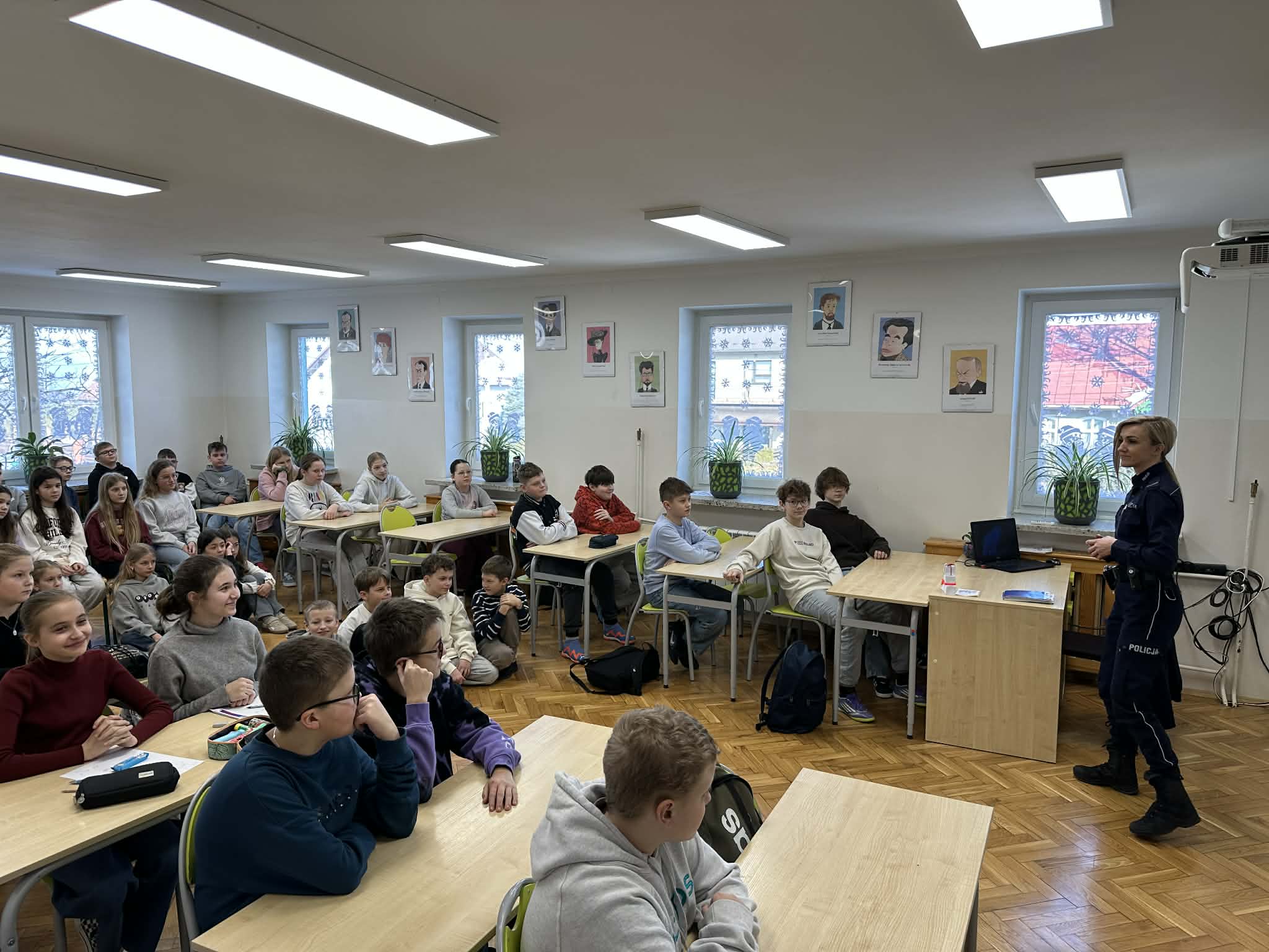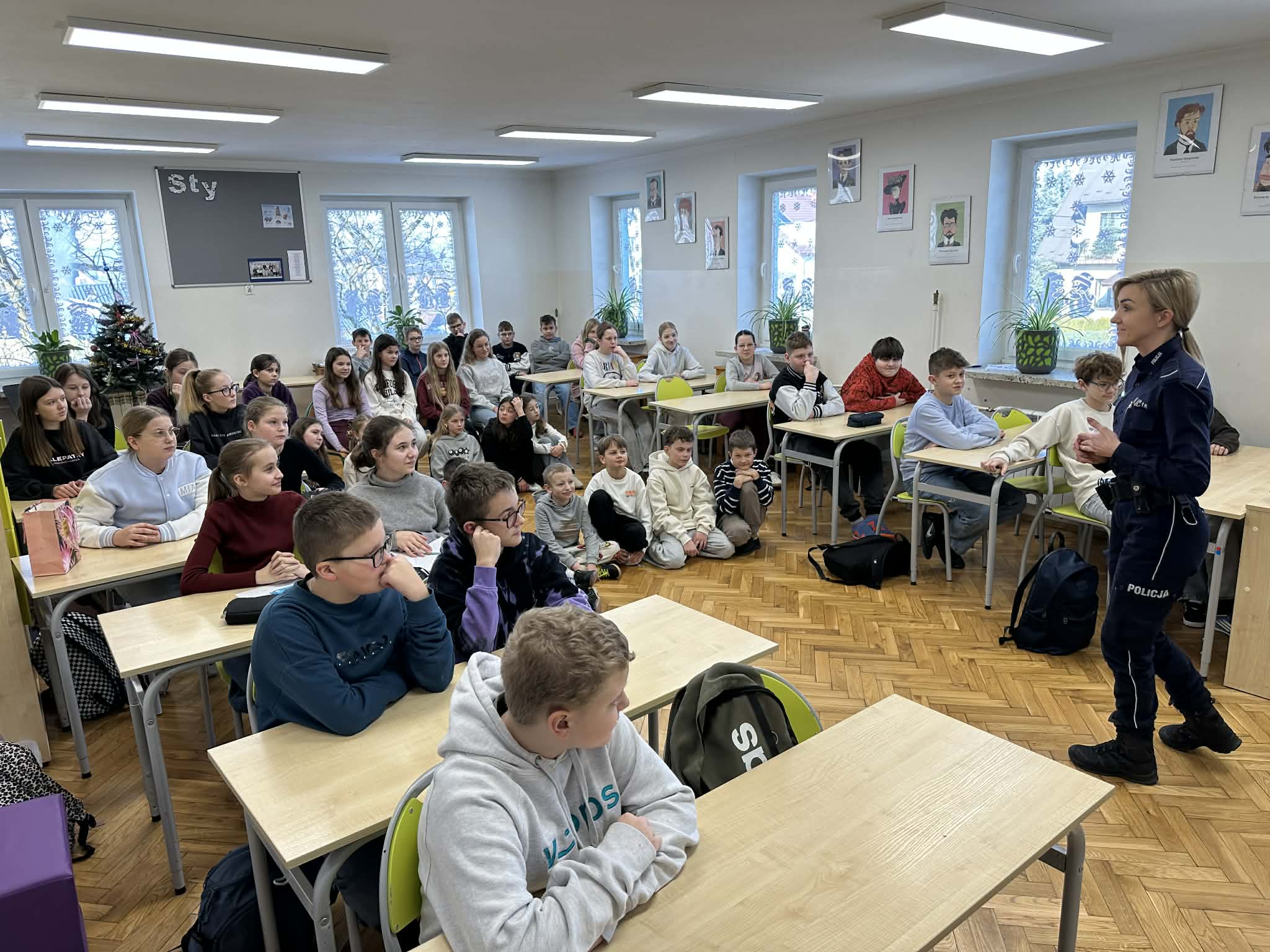 Aktualności 101 19-01-2026 19 stycznia odwiedziła nas policjantka, która przeprowadziła zajęcia z uczniami klas 4–6 oraz 7–8. Podczas spotkania poruszane były ważne i aktualne tematy, m.in.: - odpowiedzialność prawna i karna, - konsekwencje podejmowanych działań, - zagrożenia związane z używkami, - hejt i przemoc. Uczniowie aktywnie uczestniczyli w warsztatach, zadawali pytania i chętnie wchodzili w dyskusję. Dziękujemy za wartościową lekcję bezpieczeństwa! 0.0 Ostatnia modyfikacja: -/- Powiązane artykuły: Pierwszy Dzień Wiosny i Dzień Kolorowej Skarpetki w naszej szkole Warsztaty profilaktyczne! OBCHODY 1000-LECIA KORONY POLSKIEJ W NASZEJ SZKOLE GMINNY KONKURS HISTORYCZNY W NASZEJ SZKOLE Spotkanie z policją w naszej szkole Wiosenne porządki w naszej szkole Warsztaty przyrodnicze - las w słoiku DZIEŃ BABCI I DZIADKA W NASZEJ SZKOLE Wigilijne spotkanie w naszej szkole Warsztaty tematyczne dla nauczycieli 0