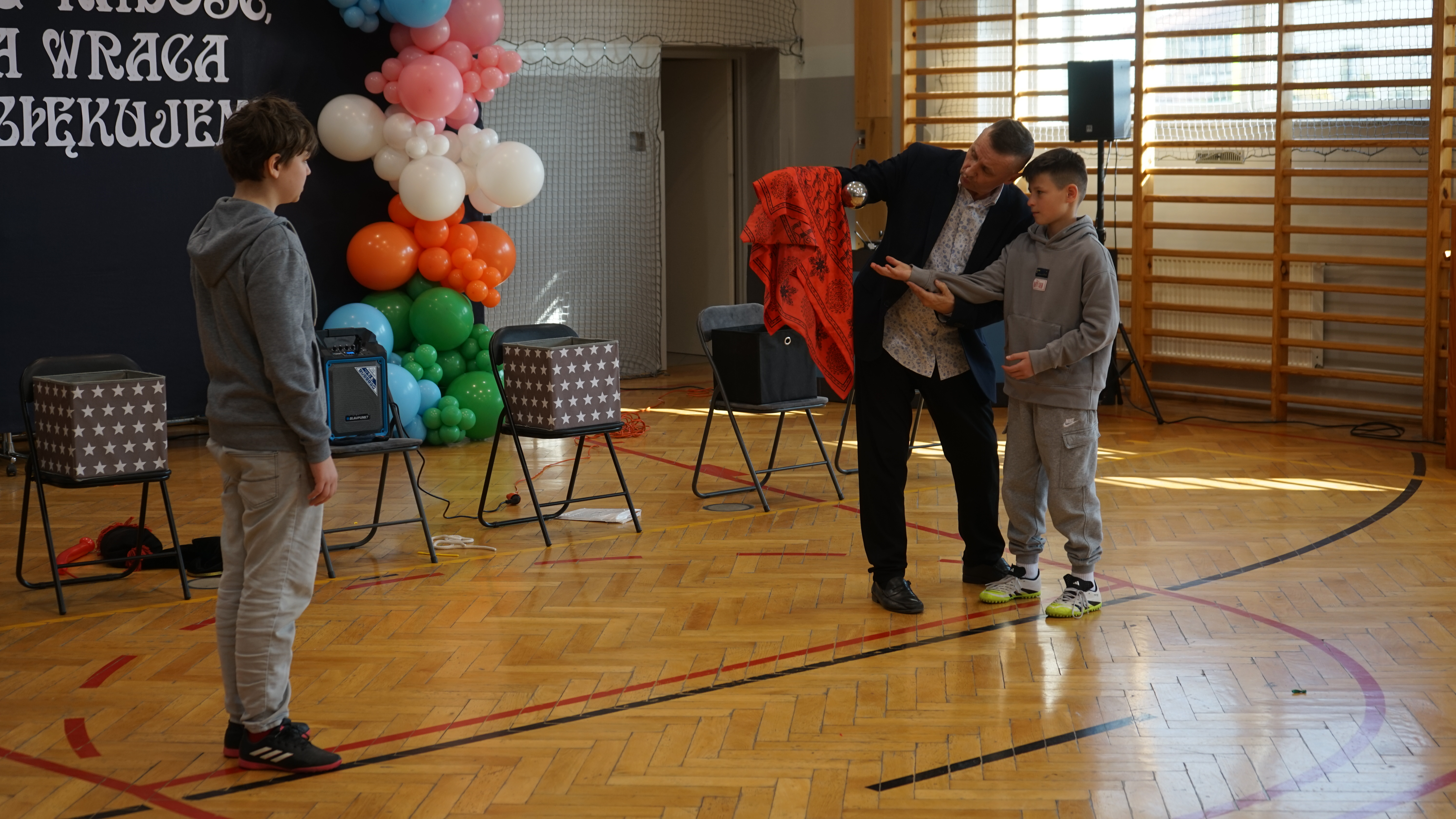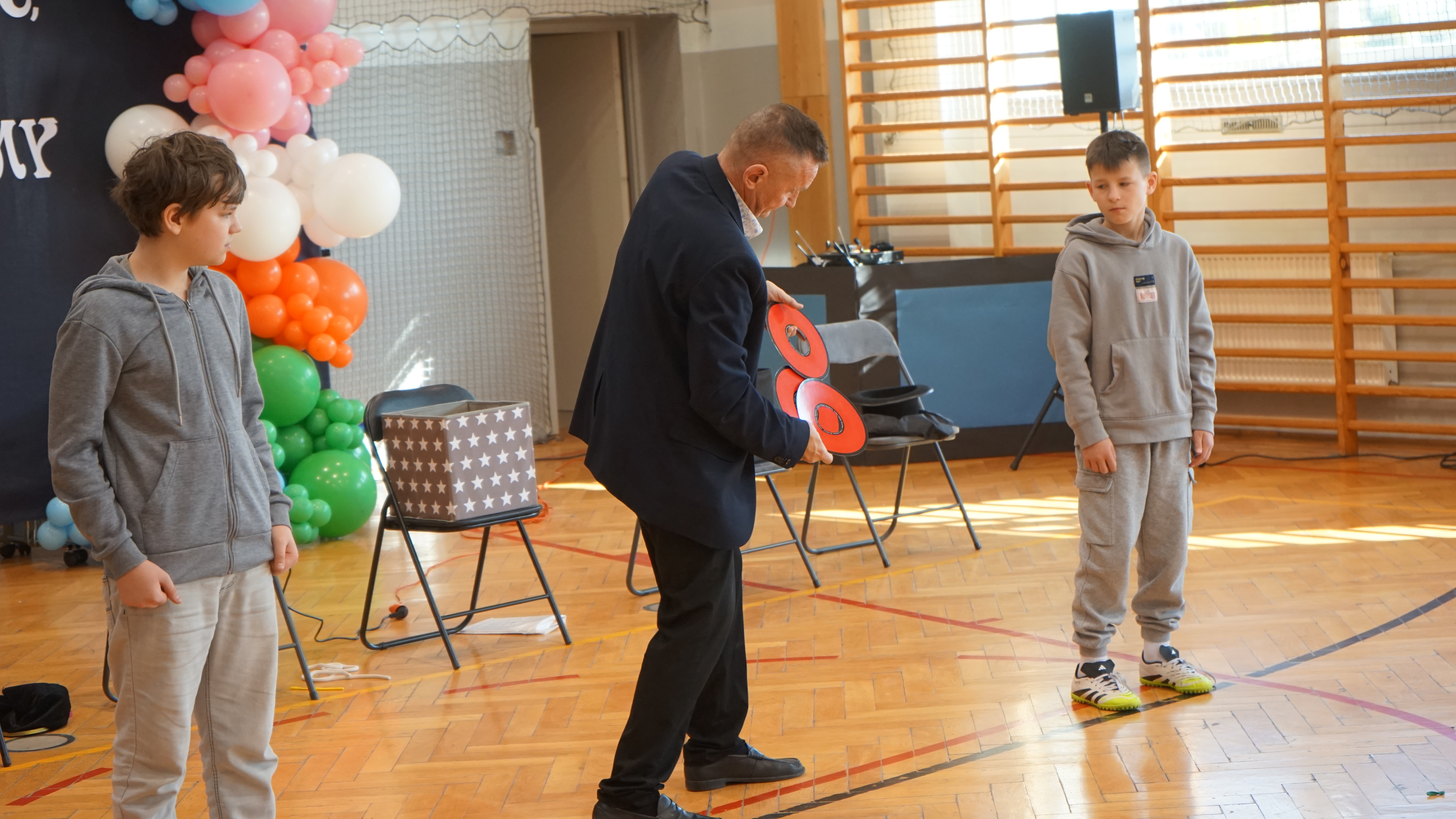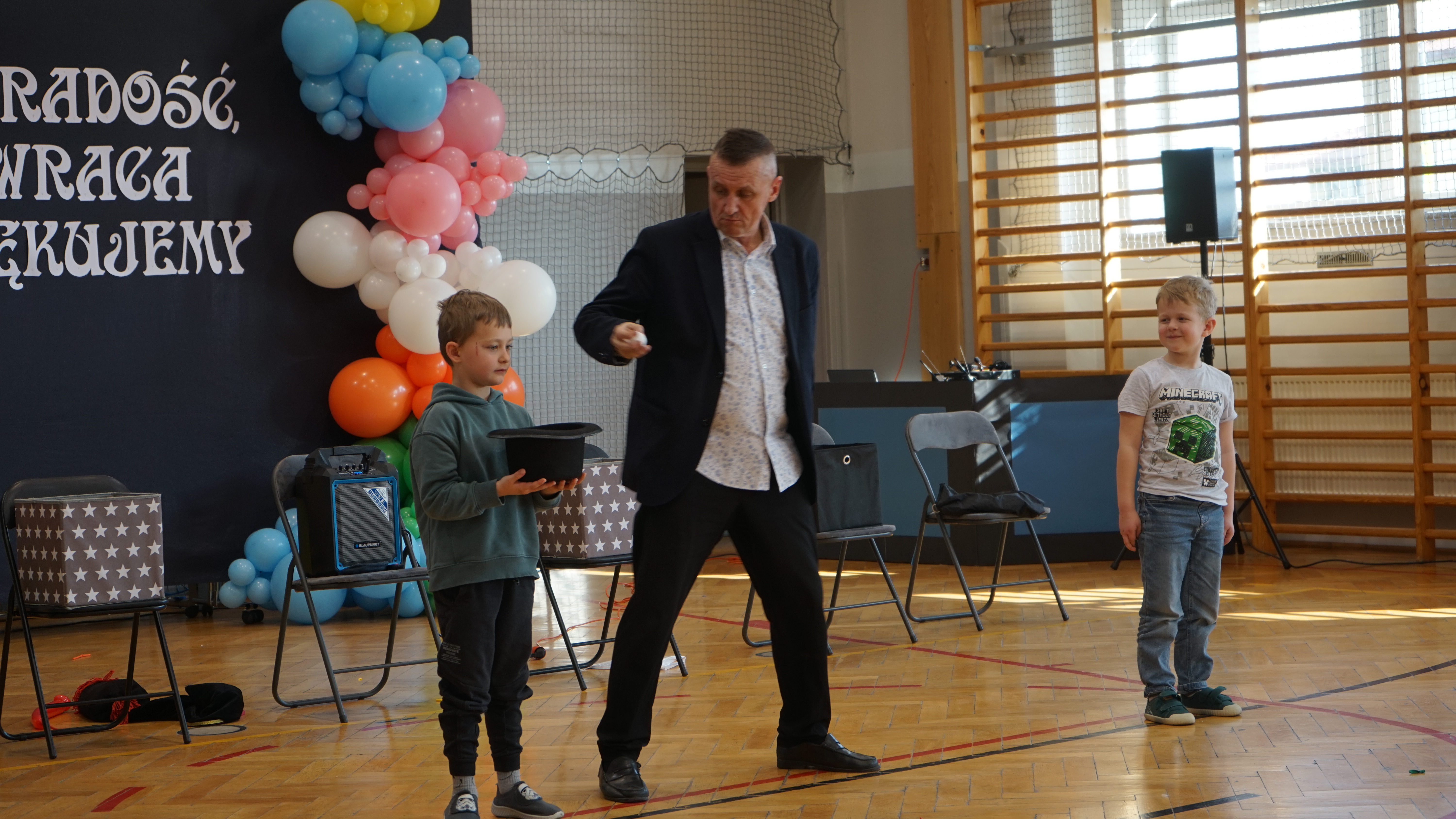 Aktualności 72 20-03-2026 W ostatnim czasie naszą szkołę odwiedził iluzjonista. Było to wyjątkowe spotkanie z magikiem, który zaprezentował uczniom pokaz pełen zabawnych i zaskakujących sztuczek. Występ dostarczył wszystkim wielu powodów do śmiechu i radości. Największą atrakcją było jednak to, że dzieci mogły aktywnie uczestniczyć w pokazie, wcielając się w rolę pomocników artysty. Dzięki temu każdy miał okazję poczuć się częścią występu i świetnie się bawić. 0.0 Ostatnia modyfikacja: pitek 20 marca 2026 16:17 Powiązane artykuły: Wizyta przedstawicieli KRUSU Wizyta przedstawicieli firmy Traszkan Edukacyjna wizyta uczniów z oddziału „0 Wizyta Św. Mikołaja 2022 Wizyta uczniów PSP Leszczyna w chorwackiej szkole – ERASMUS+ Wizyta naszych uczniów w Sejmie Rzeczypospolitej Polskiej Wizyta św. Mikołaja w naszej szkole 2021 Przewodnicząca Samorządu Uczniowskiego, Klaudia Karnaś z wizytą w Sejmie Rzeczypospolitej Polskiej Pokaz iluzjonisty Rafała Mulki Wizyta uczniów naszej szkoły w remizie OSP w Leszczynie 2020 0