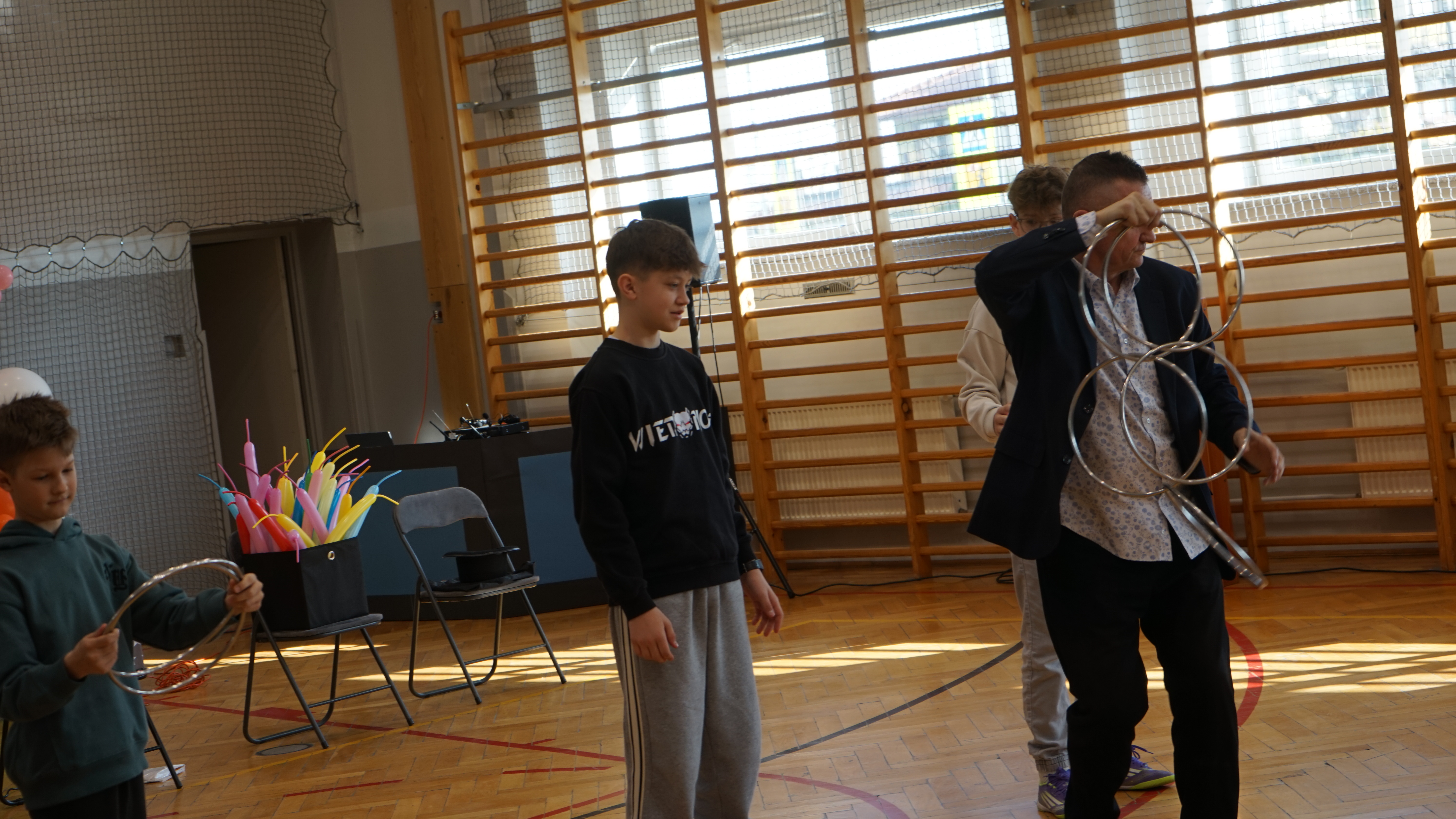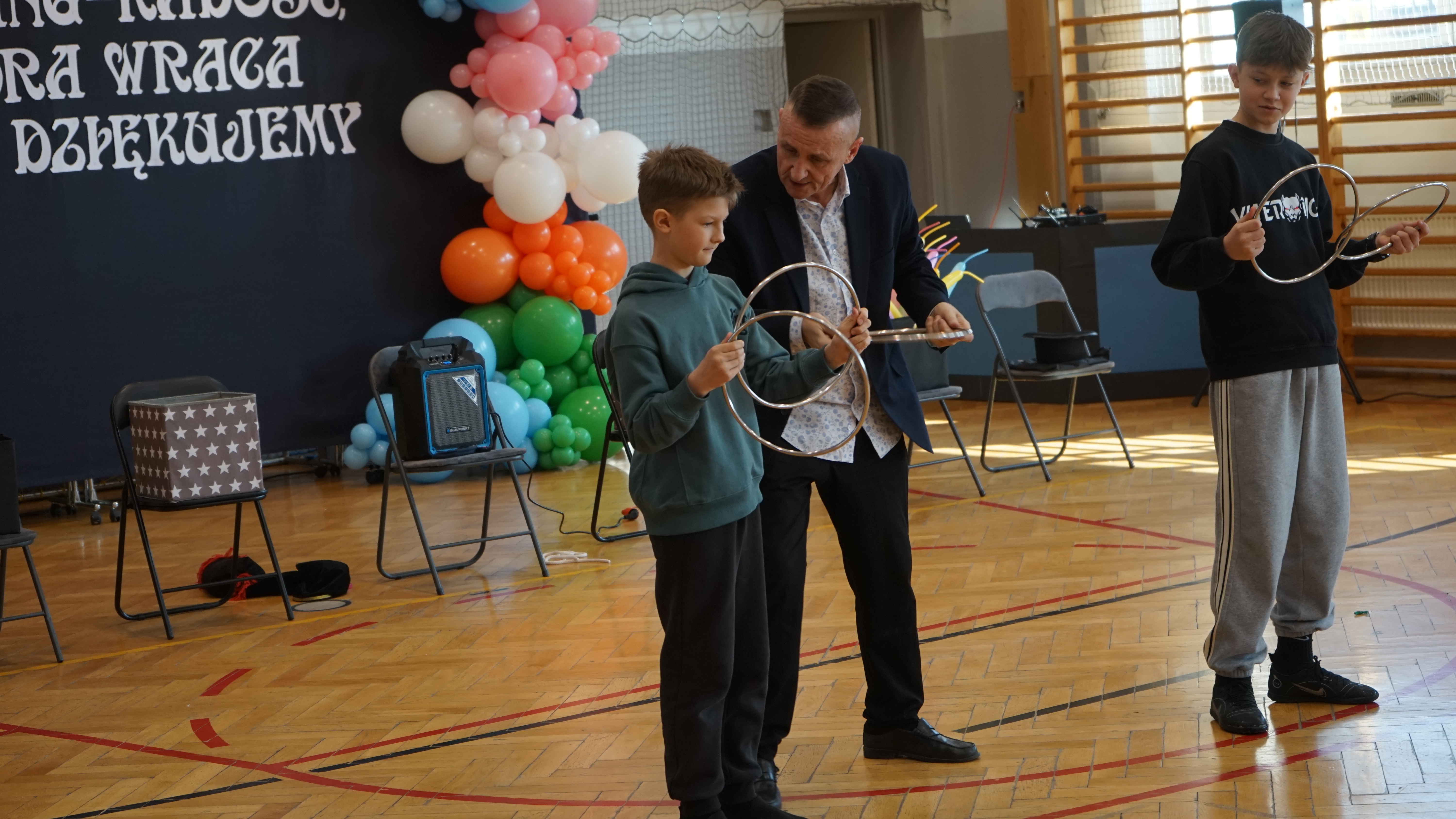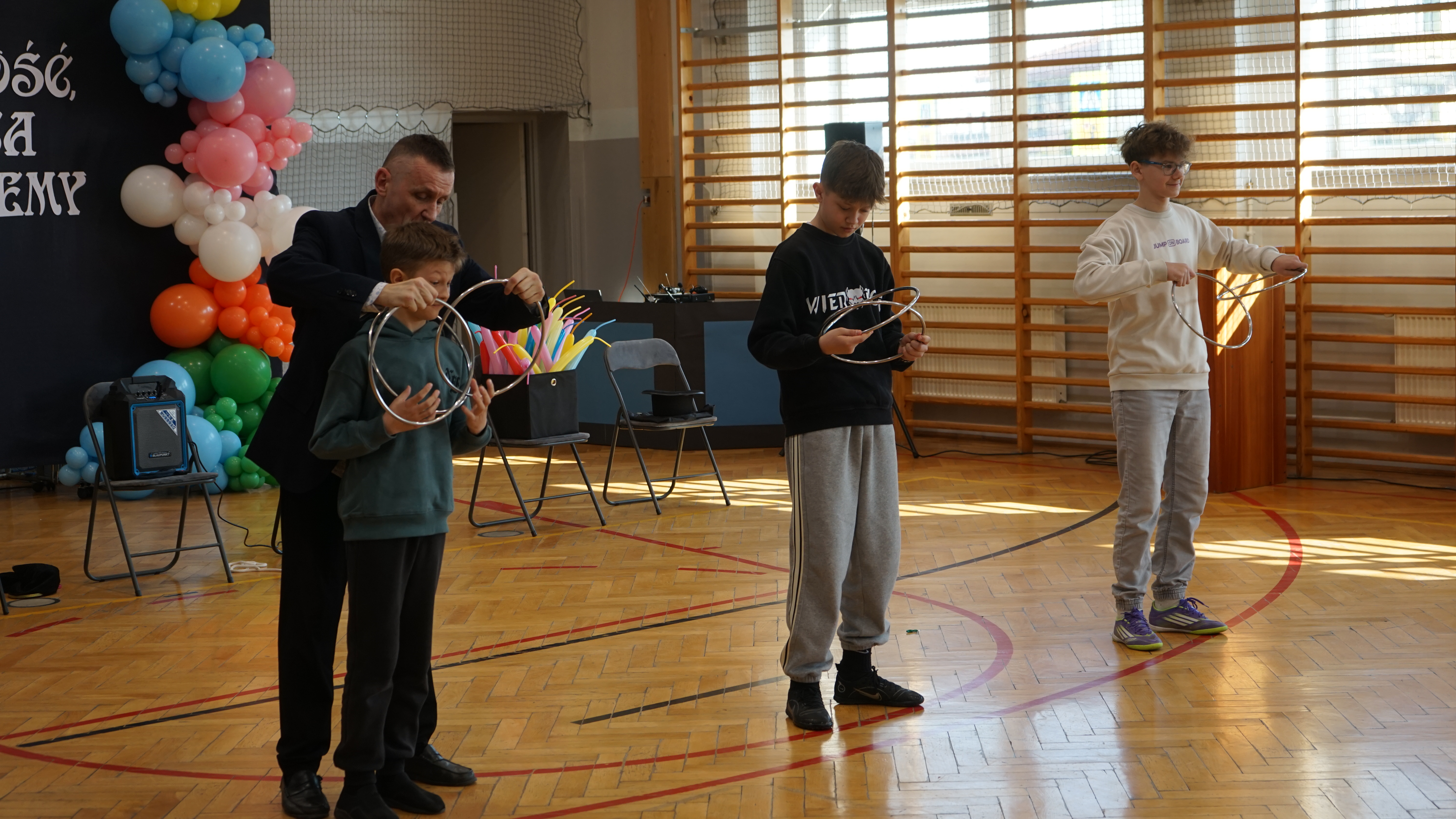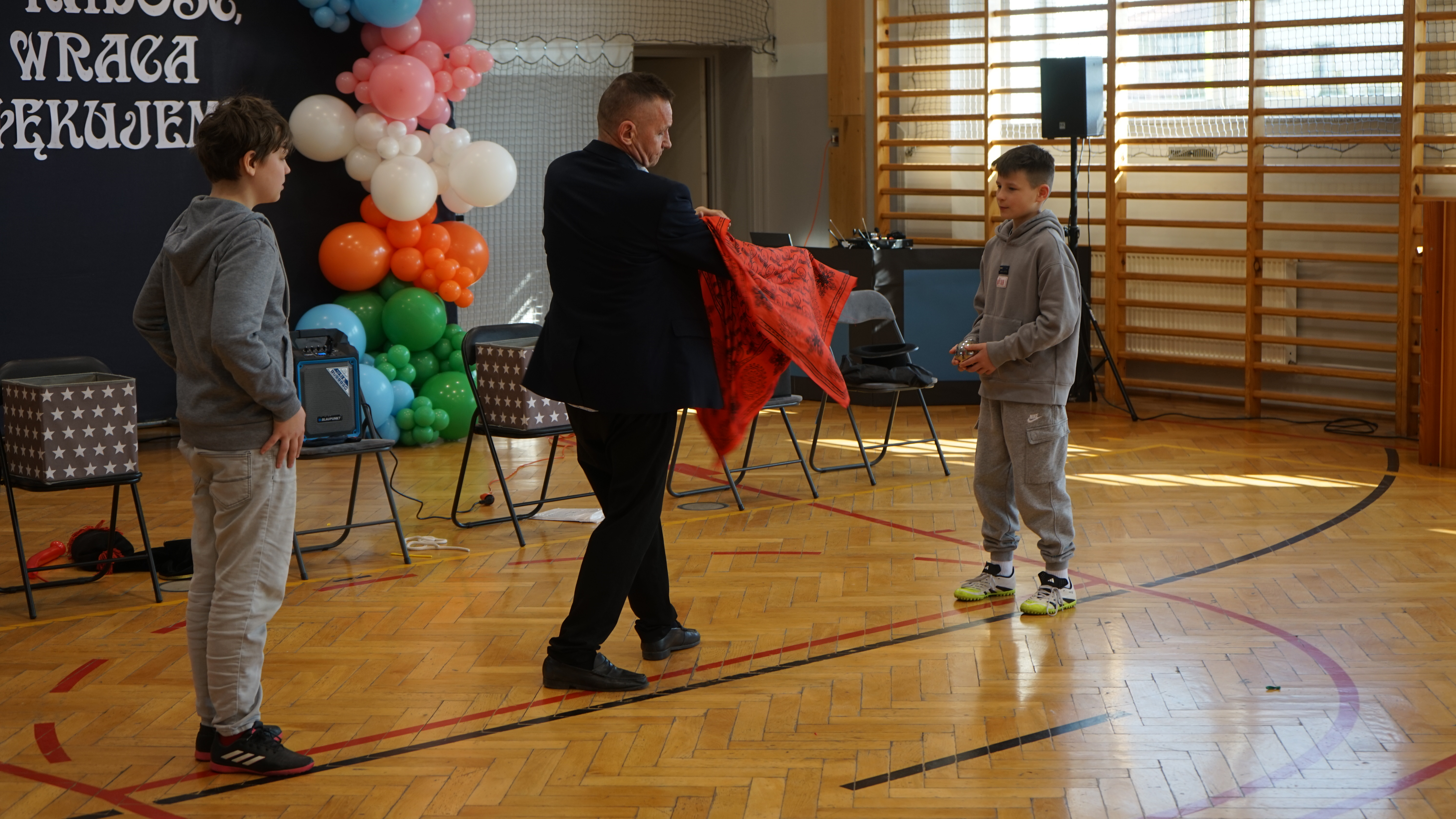 Aktualności 72 20-03-2026 W ostatnim czasie naszą szkołę odwiedził iluzjonista. Było to wyjątkowe spotkanie z magikiem, który zaprezentował uczniom pokaz pełen zabawnych i zaskakujących sztuczek. Występ dostarczył wszystkim wielu powodów do śmiechu i radości. Największą atrakcją było jednak to, że dzieci mogły aktywnie uczestniczyć w pokazie, wcielając się w rolę pomocników artysty. Dzięki temu każdy miał okazję poczuć się częścią występu i świetnie się bawić. 0.0 Ostatnia modyfikacja: pitek 20 marca 2026 16:17 Powiązane artykuły: Wizyta przedstawicieli KRUSU Wizyta przedstawicieli firmy Traszkan Edukacyjna wizyta uczniów z oddziału „0 Wizyta Św. Mikołaja 2022 Wizyta uczniów PSP Leszczyna w chorwackiej szkole – ERASMUS+ Wizyta naszych uczniów w Sejmie Rzeczypospolitej Polskiej Wizyta św. Mikołaja w naszej szkole 2021 Przewodnicząca Samorządu Uczniowskiego, Klaudia Karnaś z wizytą w Sejmie Rzeczypospolitej Polskiej Pokaz iluzjonisty Rafała Mulki Wizyta uczniów naszej szkoły w remizie OSP w Leszczynie 2020 0
