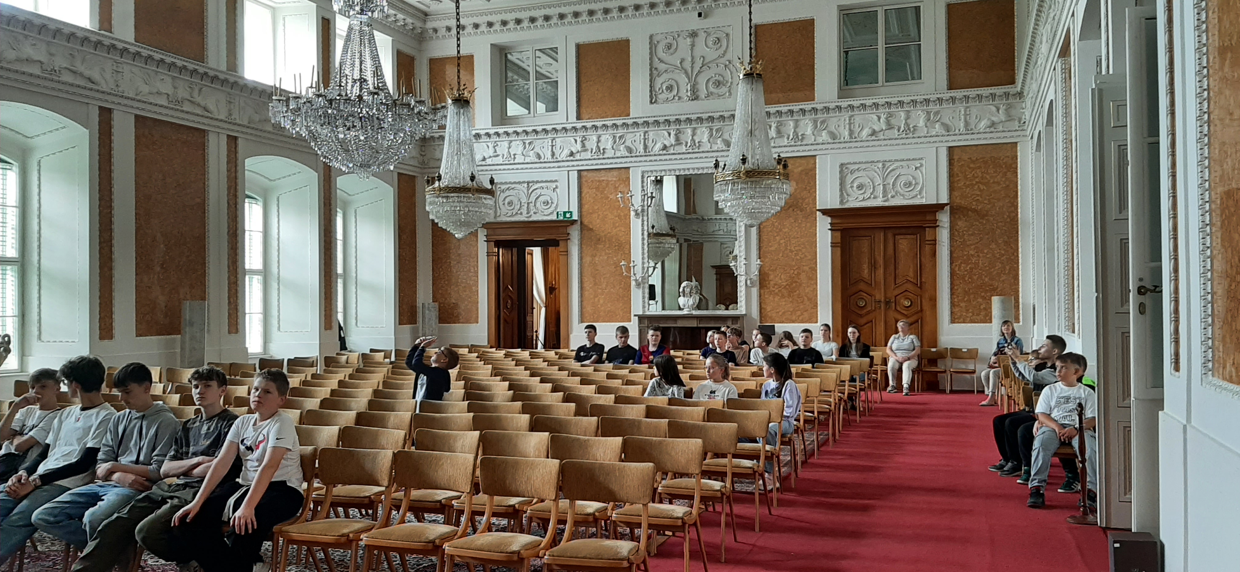 Aktualności 140 21-05-2025 W środę 21 maja 2025 roku wczesnym rankiem uczniowie klas IV – VIII naszej szkoły wraz z wychowawcami wybrali się na wycieczkę do Jasionki k/ Rzeszowa oraz Łańcuta. W Jasionce znajduje się Podkarpackie Centrum Nauki Łukasiewicz – to ośrodek popularyzujący naukę o wyjątkowej w skali kraju ofercie programowej powiązanej z inteligentnymi specjalizacjami województwa, w tym z: lotnictwem, kosmonautyką, informatyką i telekomunikacją oraz szeroko rozumianą jakością życia. To obiekt nowej generacji oraz przestrzeń dla umysłu, która daje tyle możliwości ile podpowie odważna wyobraźnia i niezaspokojona ciekawość odkrywcy. To miejsce dynamiczne i interaktywne, w którym można do woli eksperymentować, testować, pytać, doświadczać i rozwijać naukowe zainteresowania. Służy do tego prawie 200 interaktywnych eksponatów oraz 5 w pełni wyposażonych pracowni warsztatowych. Po 2 godzinnym eksplorowaniu tej przestrzeni udaliśmy się na małe co nieco w Mc Donaldzie. Kolejną atrakcją tego dnia był zamek w Łańcucie, wozownia i storczykarnia. Jest to jedna z najpiękniejszych rezydencji arystokratycznych w Polsce. Słynie ze znakomitych wnętrz mieszkalnych oraz niezwykle interesującej kolekcji pojazdów konnych. Zespół pałacowy otacza stary, malowniczy park w stylu angielskim, w którym wznoszą się liczne pawilony i zabudowania gospodarcze, ściśle niegdyś związane z codziennym życiem łańcuckiej rezydencji. Historia Łańcuta sięga wczesnego średniowiecza. Za datę lokacji miasta przyjmuje się rok 1349 i wiąże się ją z królem Kazimierzem Wielkim. Łańcut należał kolejno do Pileckich, Stadnickich, Lubomirskich i Potockich. W 2 poł. XVIII w. ówczesna właścicielka Łańcuta Izabella z Czartoryskich Lubomirska przekształciła fortecę w zespół pałacowo - parkowy. W Łańcucie pracowało wówczas wielu wybitnych artystów m.in. Szymon Bogumił Zug, Jan Christian Kamsetzer, Christian Piotr Aigner, Fryderyk Bauman i Vincenzo Brenna. Pod koniec XVIII w. Łańcut należał do najwspanialszych rezydencji w Polsce. Kwitło tutaj życie muzyczne i teatralne, bywało wielu znakomitych gości. Zamek łańcucki stał się miejscem spotkań towarzyskich. Bywali tu przedstawiciele rodów królewskich, arystokracja polska i zagraniczna oraz politycy. Podejmowano tutaj m.in. króla rumuńskiego Ferdynanda z małżonką oraz Jerzego księcia Kentu z żoną i przyjaciółmi. Tego dnia pogoda wyjątkowo nam sprzyjała. W godzinach wieczornych pełni wrażeń wróciliśmy do domu. Ten wspólny wyjazd długo pozostanie w naszej pamięci. 0.0 Ostatnia modyfikacja: roda 21 maja 2025 21:56 Powiązane artykuły: WYCIECZKA DO BOCHNI Udział w ogólnopolskiej akcji BohaterON - 2025/2026 Olimpiada Mitologiczna 2025 Wyniki konkursu Alfik Matematyczny 2025 Boże Narodzenie 2025 - życzenia Akcja charytatywna „Paczuszka dla Maluszka" 2025 Jasełka i Wigilia - 2025 „Mała książka – wielki człowiek" - 2025 Wycieczka uczniów klas 4–8 do Krakowa – 8 grudnia Spotkanie z podróżnikiem - Indie 2025 0