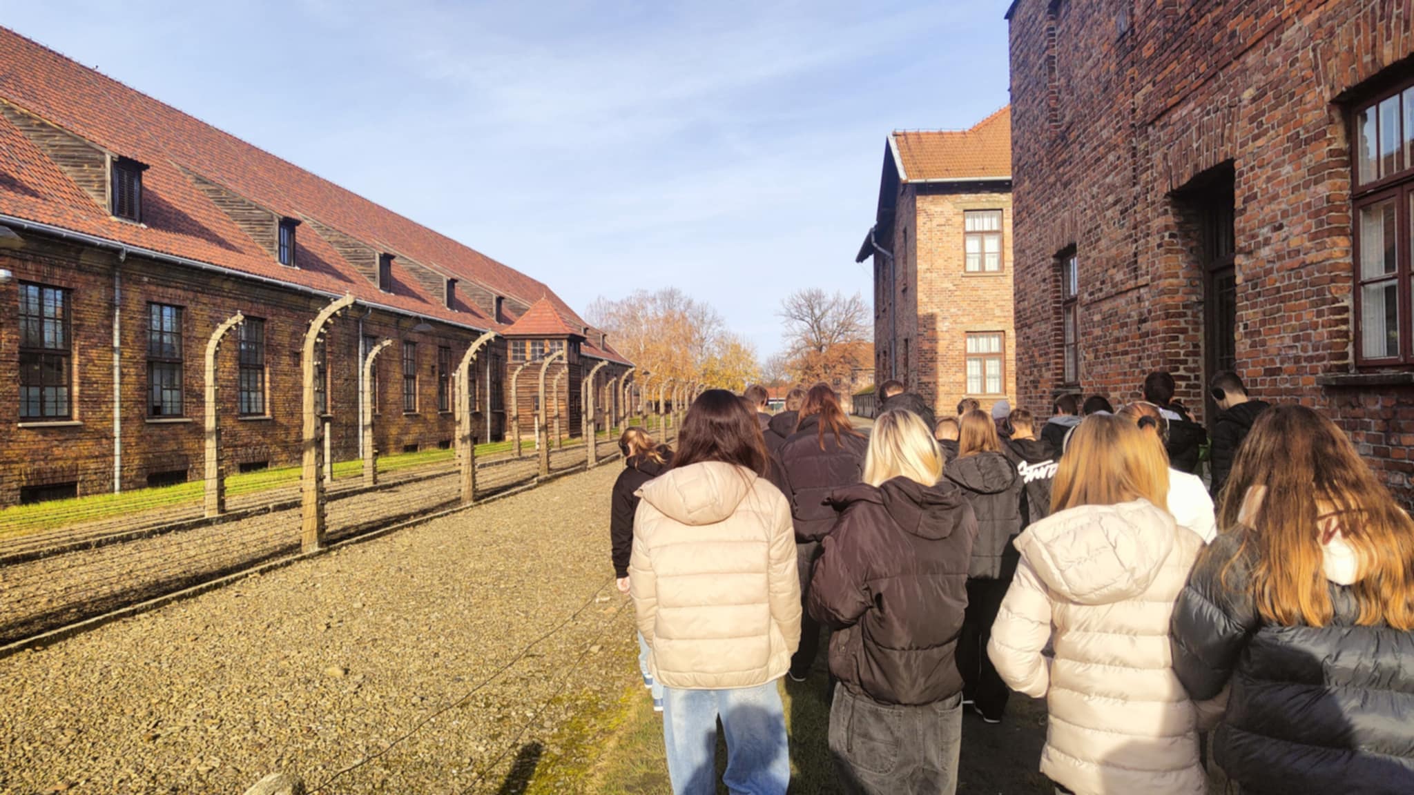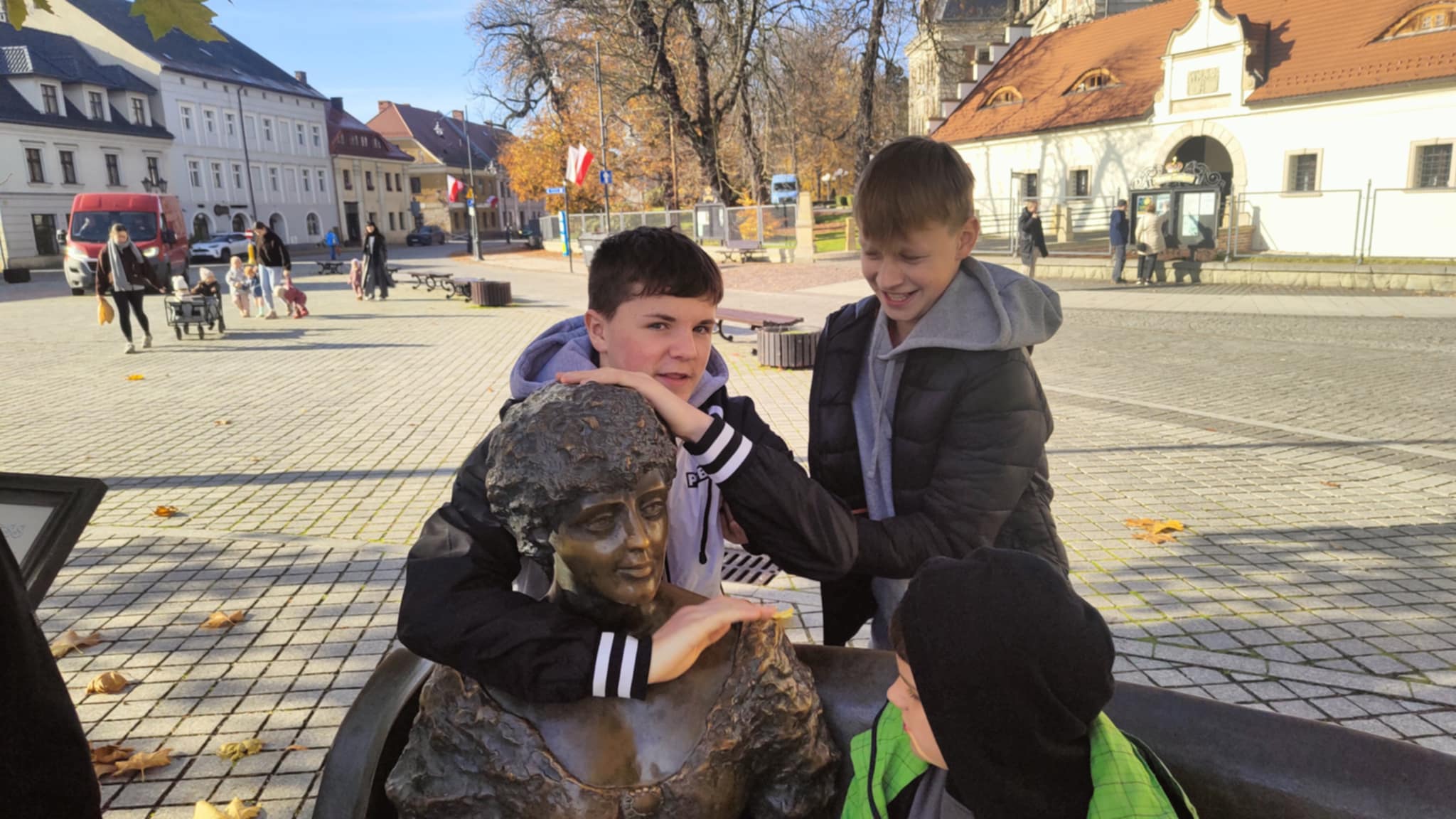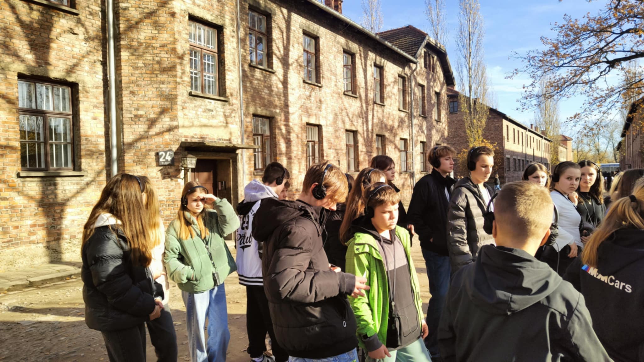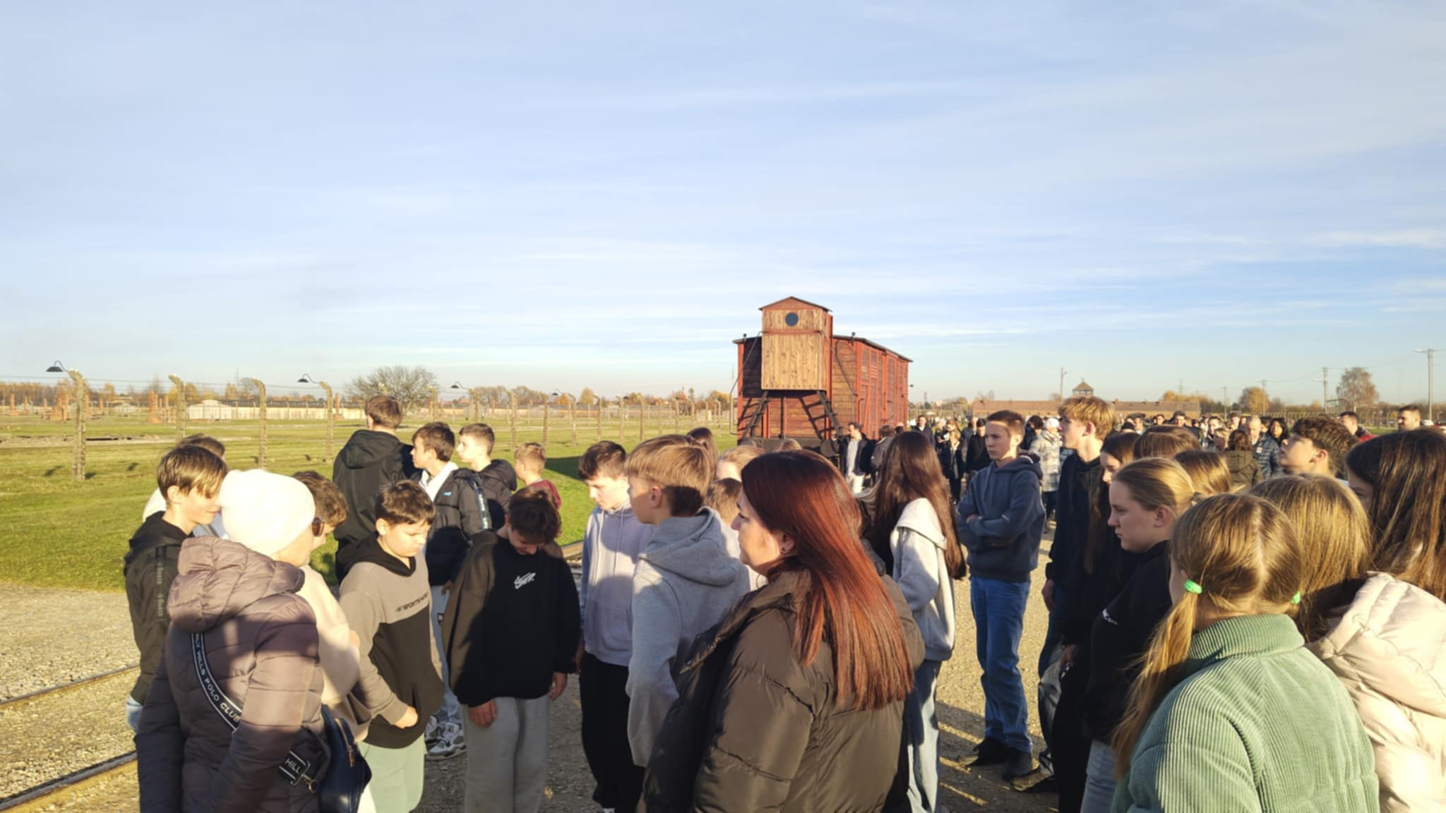 Aktualności 84 5-11-2025 W dniu 5 listopada uczniowie klas 7 i 8 naszej szkoły wraz z rówieśnikami ze szkoły w Zbydniowiu i Kierlikówki wzięli udział w wyjątkowej wycieczce edukacyjnej, której celem było pogłębienie wiedzy historycznej oraz poznanie ważnych miejsc pamięci narodowej. Program wycieczki obejmował wizytę w Miejscu Pamięci Auschwitz-Birkenau oraz zwiedzanie zamku w Pszczynie. Najpierw udaliśmy się do zamku w Pszczynie – jednego z najpiękniejszych zabytków architektury rezydencjonalnej w Polsce. Uczniowie zwiedzili bogato zdobione wnętrza, w tym salę lustrzaną, bibliotekę, apartamenty cesarskie oraz zbrojownię. Przewodnik opowiadał o historii zamku, jego dawnych właścicielach oraz roli, jaką pełnił w różnych okresach dziejów. Następnym punktem programu była wizyta w byłym niemieckim nazistowskim obozie koncentracyjnym i zagłady Auschwitz I oraz Auschwitz II-Birkenau. Uczniowie mieli okazję zobaczyć oryginalne baraki, rampę kolejową, celę św. Maksymiliana Kolbe oraz wystawy dokumentujące tragiczne losy więźniów. Przewodnik w sposób bardzo przejmujący opowiadał o historii obozu, co wywarło ogromne wrażenie na uczestnikach. Uczniowie przeszli przez bramę z napisem „Arbeit macht frei”, zobaczyli ruiny krematoriów, baraki oraz ogromny teren obozu, który ukazuje skalę tragedii. Wizyta w tym miejscu była dla wszystkich głębokim przeżyciem, skłaniającym do refleksji nad historią i wartością życia. Wycieczka była nie tylko lekcją historii, ale także okazją do zadumy, integracji i wspólnego przeżywania ważnych chwil. Uczniowie wrócili wzbogaceni o nowe doświadczenia, które na długo pozostaną w ich pamięci. 0.0 Ostatnia modyfikacja: -/- Powiązane artykuły: WYCIECZKA DO BOCHNI Wycieczka uczniów klas 4–8 do Krakowa – 8 grudnia Wycieczka do Sandomierza Wycieczka do Jasionki i Łańcuta 2025 Wycieczka szkolna na pływalnię do Nowego Wiśnicza Wycieczka - Kopalnia soli w Wieliczce 2024 Wycieczka do Krynicy - Zdrój Wycieczka do Zoo Wycieczka do Pragi Wycieczka autokarowa do Brzeska klas 0-2 0