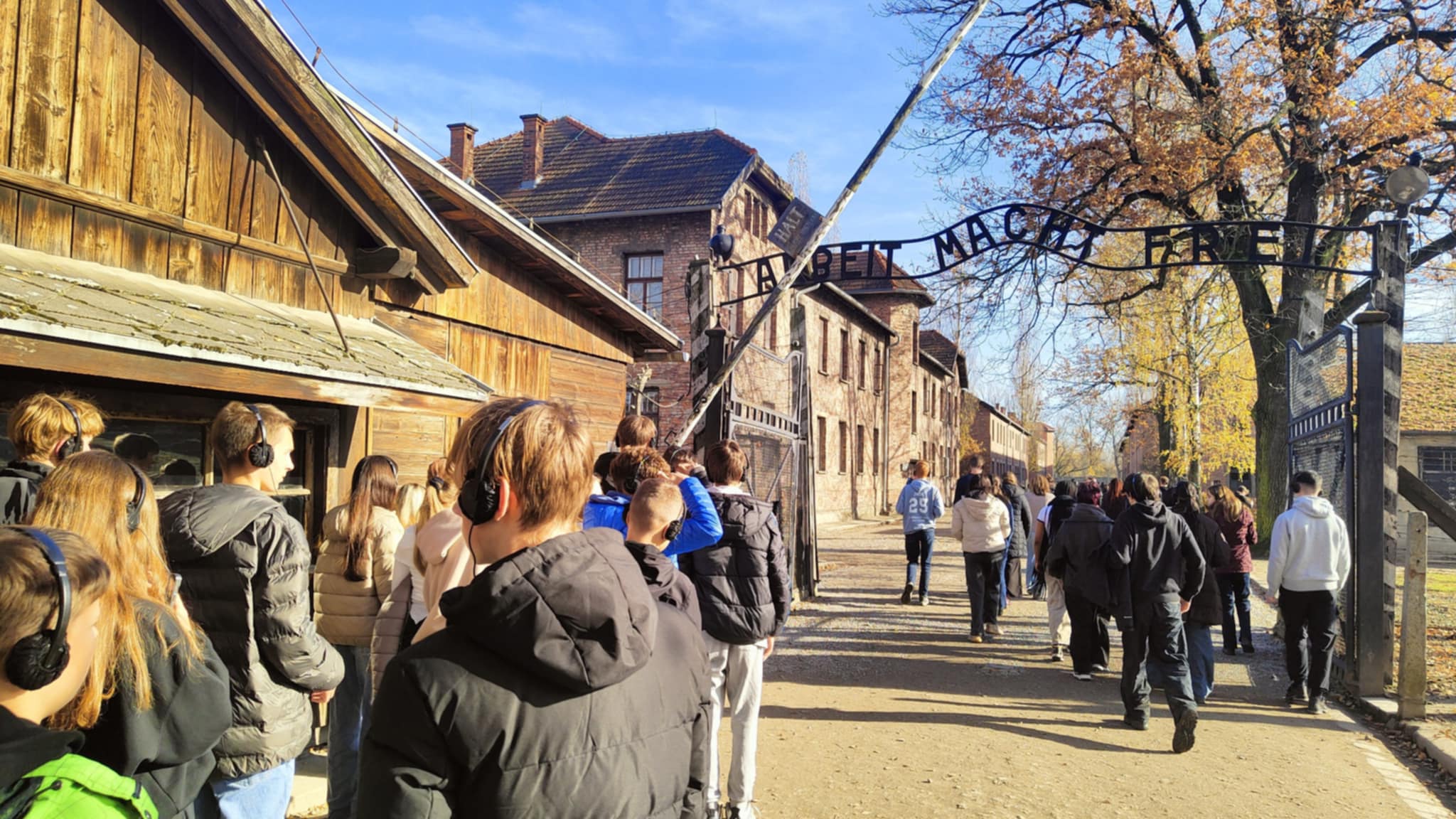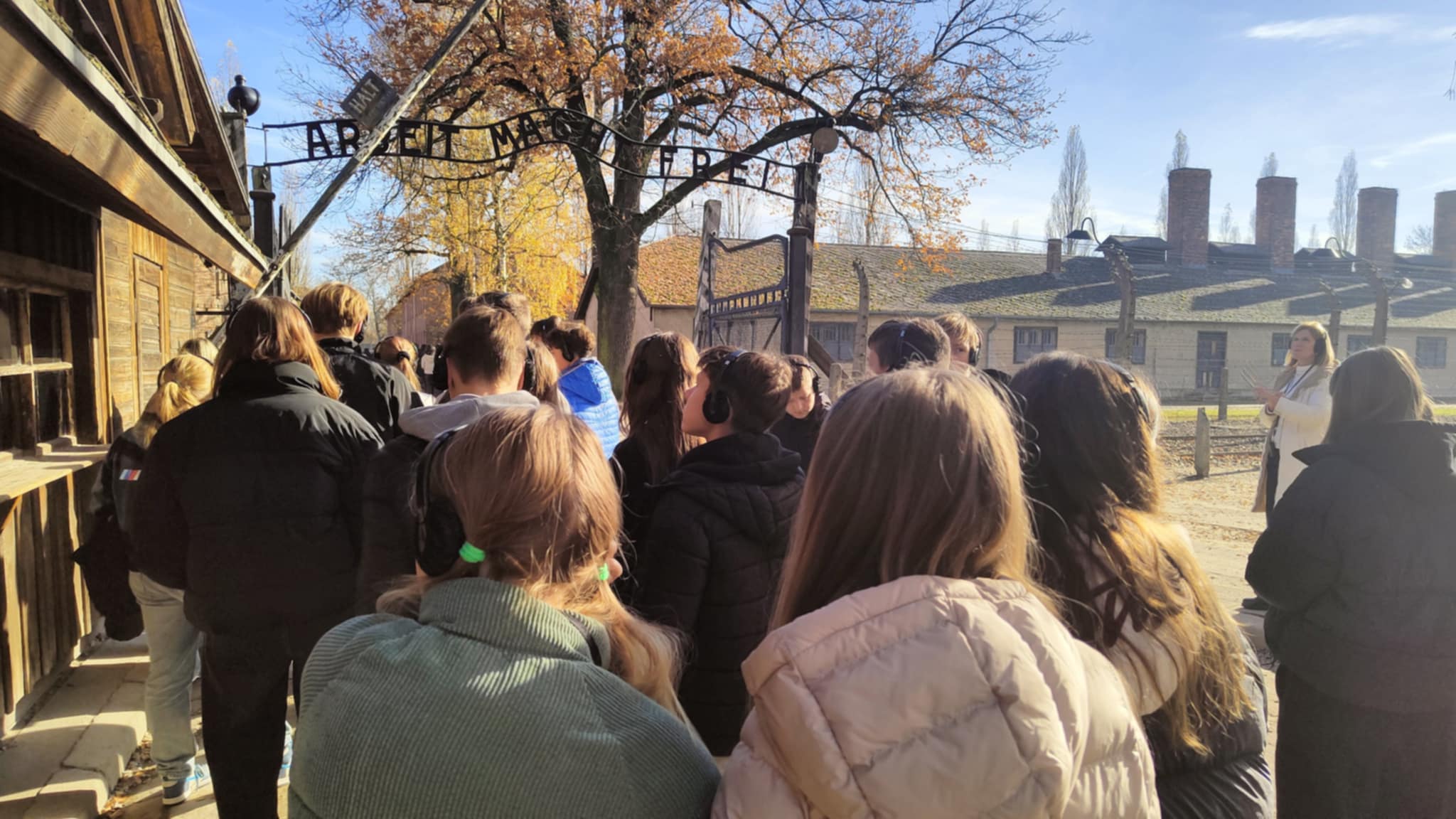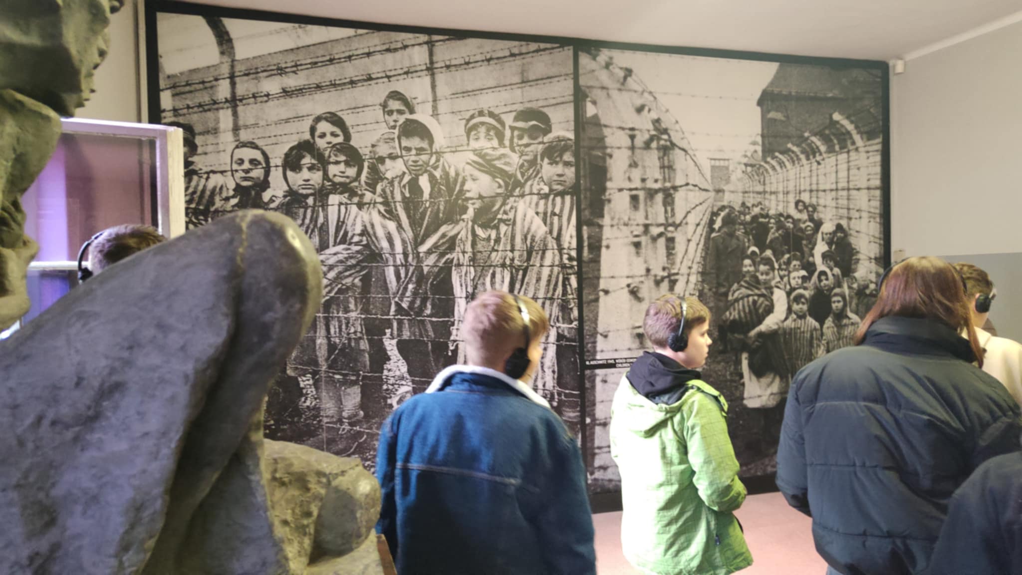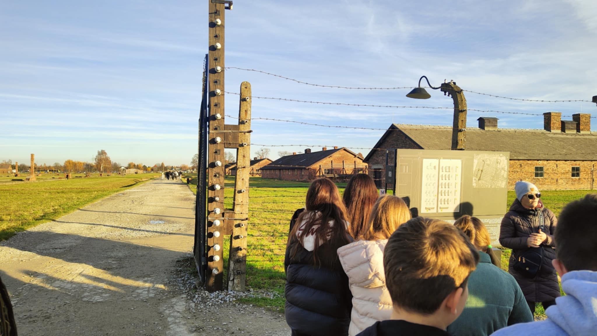 Aktualności 84 5-11-2025 W dniu 5 listopada uczniowie klas 7 i 8 naszej szkoły wraz z rówieśnikami ze szkoły w Zbydniowiu i Kierlikówki wzięli udział w wyjątkowej wycieczce edukacyjnej, której celem było pogłębienie wiedzy historycznej oraz poznanie ważnych miejsc pamięci narodowej. Program wycieczki obejmował wizytę w Miejscu Pamięci Auschwitz-Birkenau oraz zwiedzanie zamku w Pszczynie. Najpierw udaliśmy się do zamku w Pszczynie – jednego z najpiękniejszych zabytków architektury rezydencjonalnej w Polsce. Uczniowie zwiedzili bogato zdobione wnętrza, w tym salę lustrzaną, bibliotekę, apartamenty cesarskie oraz zbrojownię. Przewodnik opowiadał o historii zamku, jego dawnych właścicielach oraz roli, jaką pełnił w różnych okresach dziejów. Następnym punktem programu była wizyta w byłym niemieckim nazistowskim obozie koncentracyjnym i zagłady Auschwitz I oraz Auschwitz II-Birkenau. Uczniowie mieli okazję zobaczyć oryginalne baraki, rampę kolejową, celę św. Maksymiliana Kolbe oraz wystawy dokumentujące tragiczne losy więźniów. Przewodnik w sposób bardzo przejmujący opowiadał o historii obozu, co wywarło ogromne wrażenie na uczestnikach. Uczniowie przeszli przez bramę z napisem „Arbeit macht frei”, zobaczyli ruiny krematoriów, baraki oraz ogromny teren obozu, który ukazuje skalę tragedii. Wizyta w tym miejscu była dla wszystkich głębokim przeżyciem, skłaniającym do refleksji nad historią i wartością życia. Wycieczka była nie tylko lekcją historii, ale także okazją do zadumy, integracji i wspólnego przeżywania ważnych chwil. Uczniowie wrócili wzbogaceni o nowe doświadczenia, które na długo pozostaną w ich pamięci. 0.0 Ostatnia modyfikacja: -/- Powiązane artykuły: WYCIECZKA DO BOCHNI Wycieczka uczniów klas 4–8 do Krakowa – 8 grudnia Wycieczka do Sandomierza Wycieczka do Jasionki i Łańcuta 2025 Wycieczka szkolna na pływalnię do Nowego Wiśnicza Wycieczka - Kopalnia soli w Wieliczce 2024 Wycieczka do Krynicy - Zdrój Wycieczka do Zoo Wycieczka do Pragi Wycieczka autokarowa do Brzeska klas 0-2 0
