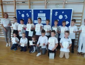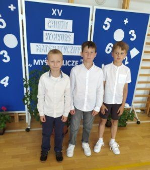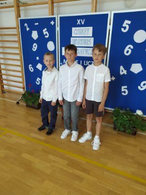 Aktualności 111 9-06-2025 5 czerwca 2025r. uczniowie klasy trzeciej wzięli udział w XV Gminnym Konkursie Matematycznym „Myślę i liczę” zorganizowanym przez PSP w Kamionnej. Celem konkursu jest kształtowanie umiejętności twórczego, logicznego myślenia, przygotowanie uczniów do wykorzystania wiedzy matematycznej przy rozwiązywaniu problemów, rozbudzanie i rozwijanie zainteresowania matematyką, stworzenie właściwej atmosfery, życzliwej rywalizacji. Test konkursowy zawierał 12 zadań o różnym stopniu trudności. Naszą szkołę reprezentowali uczniowie klasy trzeciej: - Nikodem Czuban - Adam Kłósek - Szymon Mikołąjek Uczniowie wykazali się znakomitymi umiejętnościami w rozwiązywaniu zadań o wysokim poziomie trudności, jednak nie udało im się zająć miejsca na podium. Wszystkim uczestnikom serdecznie gratulujemy i życzymy dalszych sukcesów! 0.0 Ostatnia modyfikacja: -/- Powiązane artykuły: Gminny Turniej Piłki Ręcznej chłopców klas 4-6 "Igrzyska Dzieci" 2026 I POWIATOWY KONKURS W UDZIELANIU PIERWSZEJ POMOCY PRZEDMEDYCZNEJ Gminny Konkurs Ortograficzny 2026 Nasze utalentowane laureatki Gminnego Konkursu Piosenki Anglojęzycznej „I can sing" Konkurs Recytatorski 2026 OGÓLNOPOLSKI STRAŻACKI KONKURS PLASTYCZNY 2026 Młodzi strażacy w akcji! Sukcesy w konkursie „Młodzież Zapobiega Pożarom" Igrzyska Młodzieży Gminny Turniej Piłki Ręcznej Chłopców 2026 Gminny Turniej Tenisa Stołowego 2026 Wyniki konkursu Alfik Matematyczny 2025 0